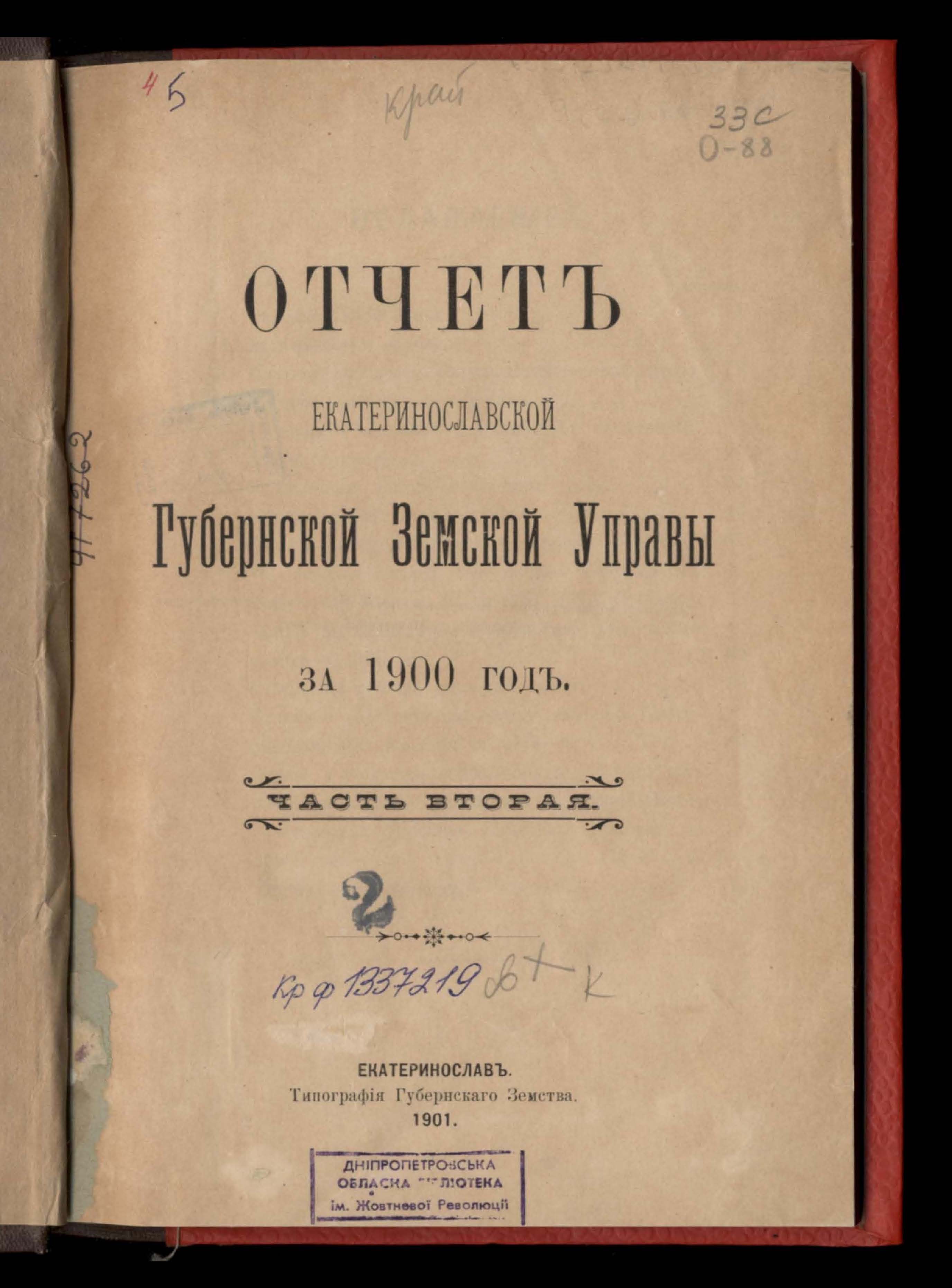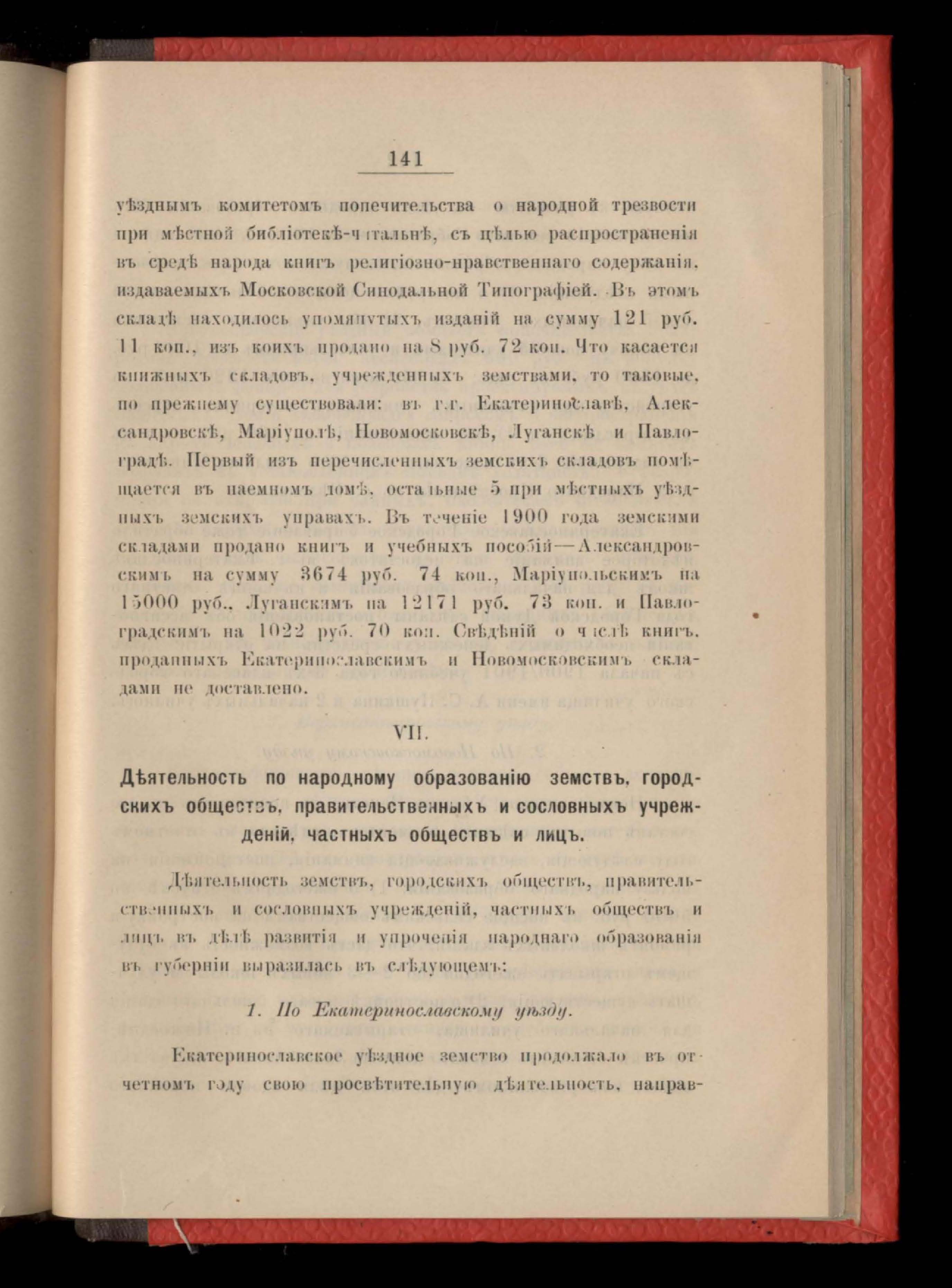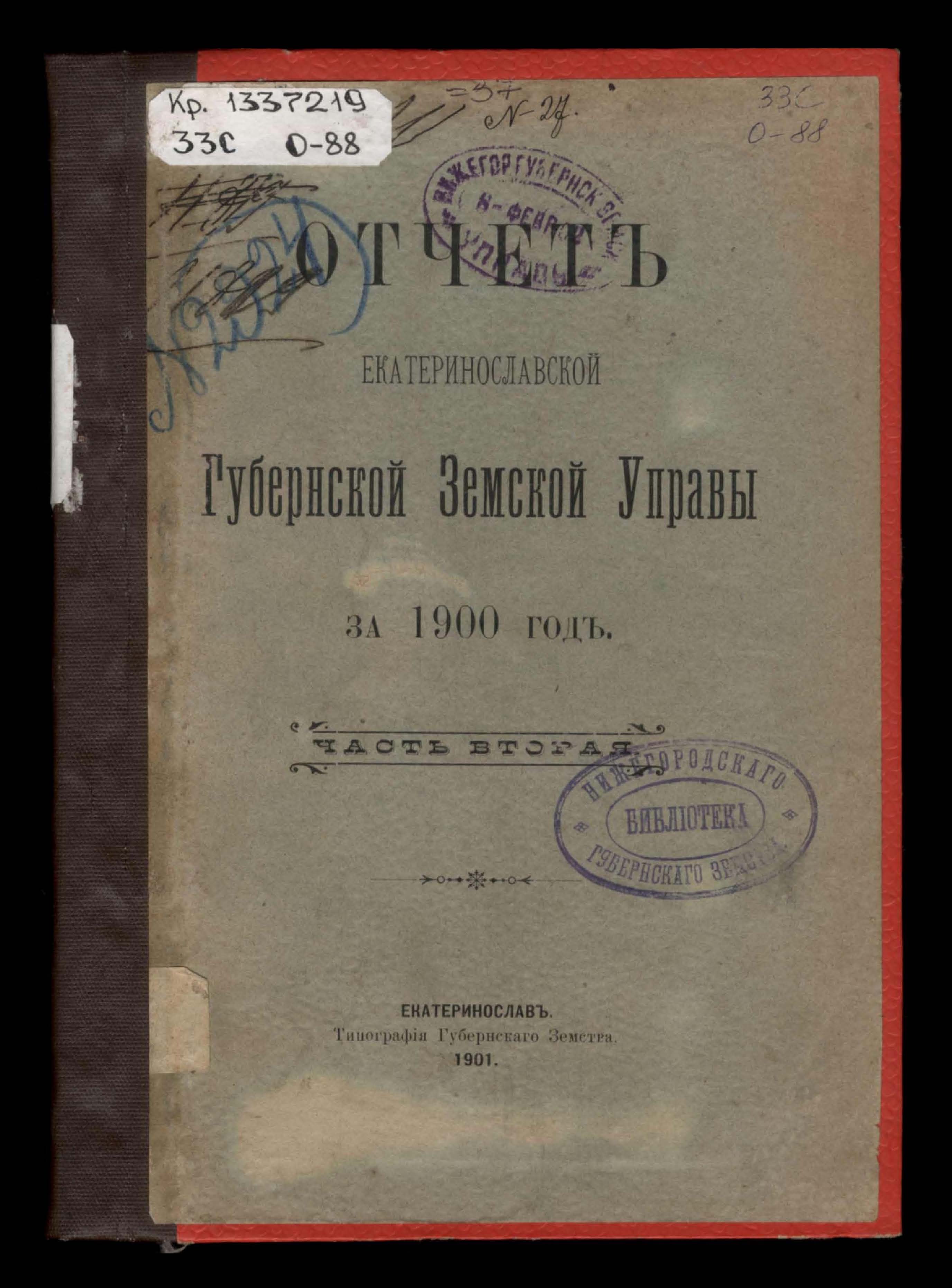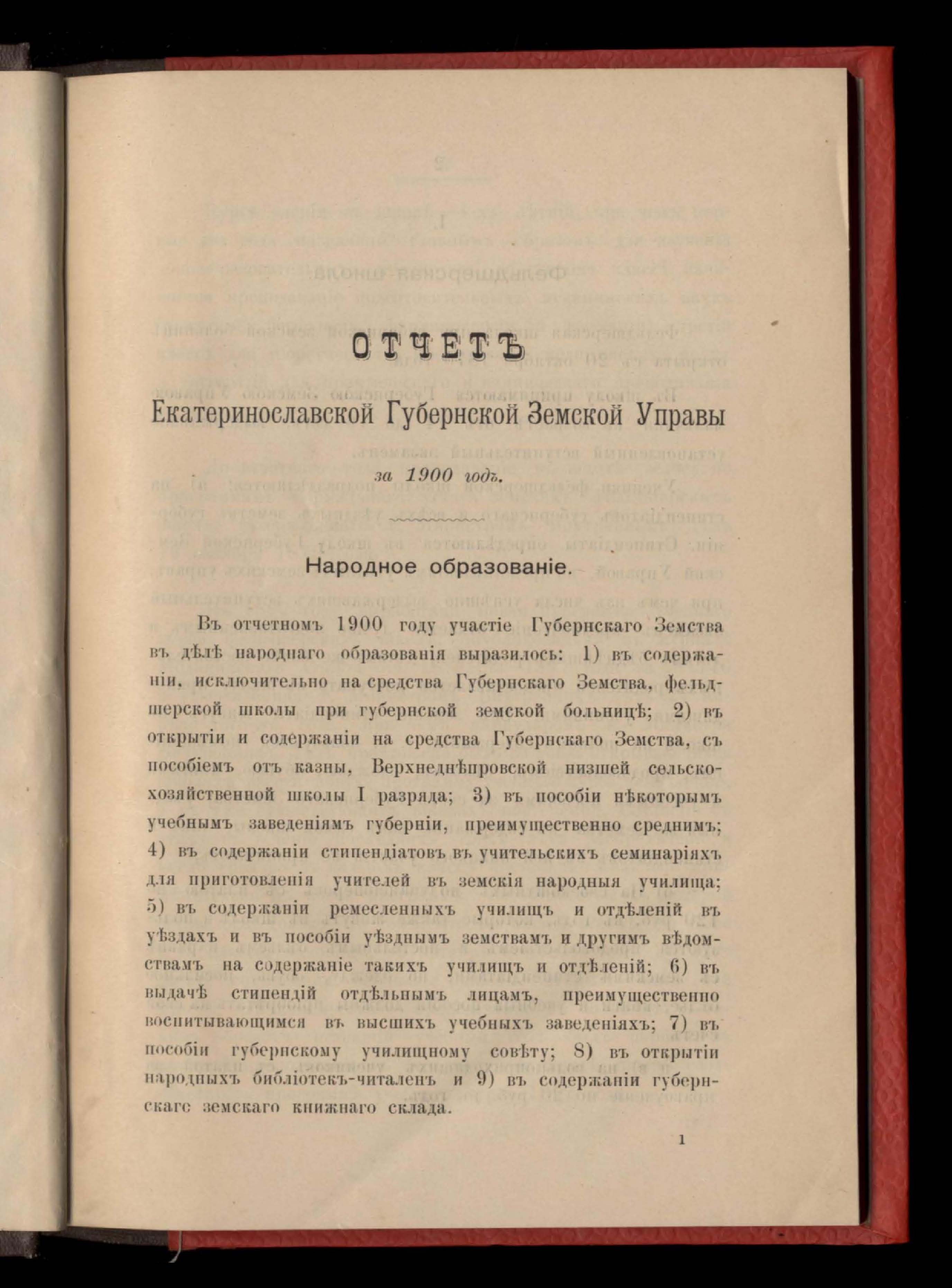 1. Отчетъ Екатеринославской Губернской Земской Управы за 1900 годъ.Часть вторая