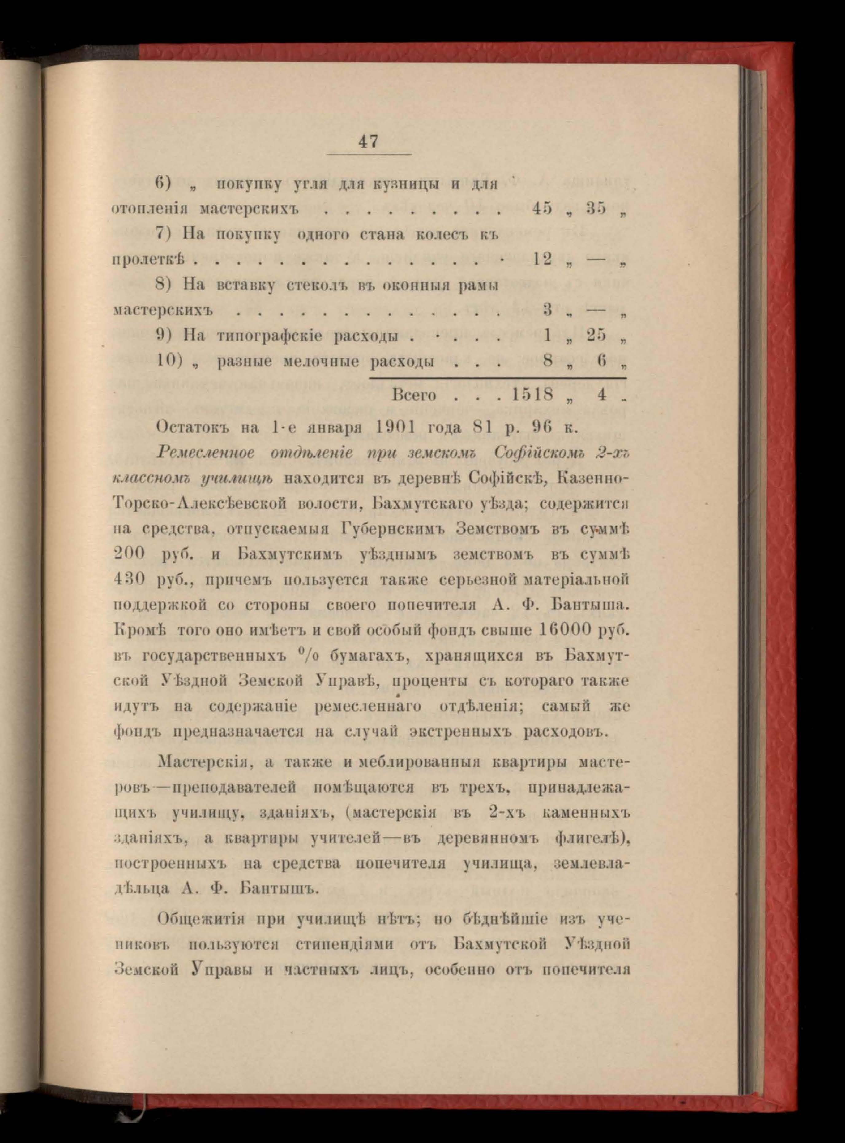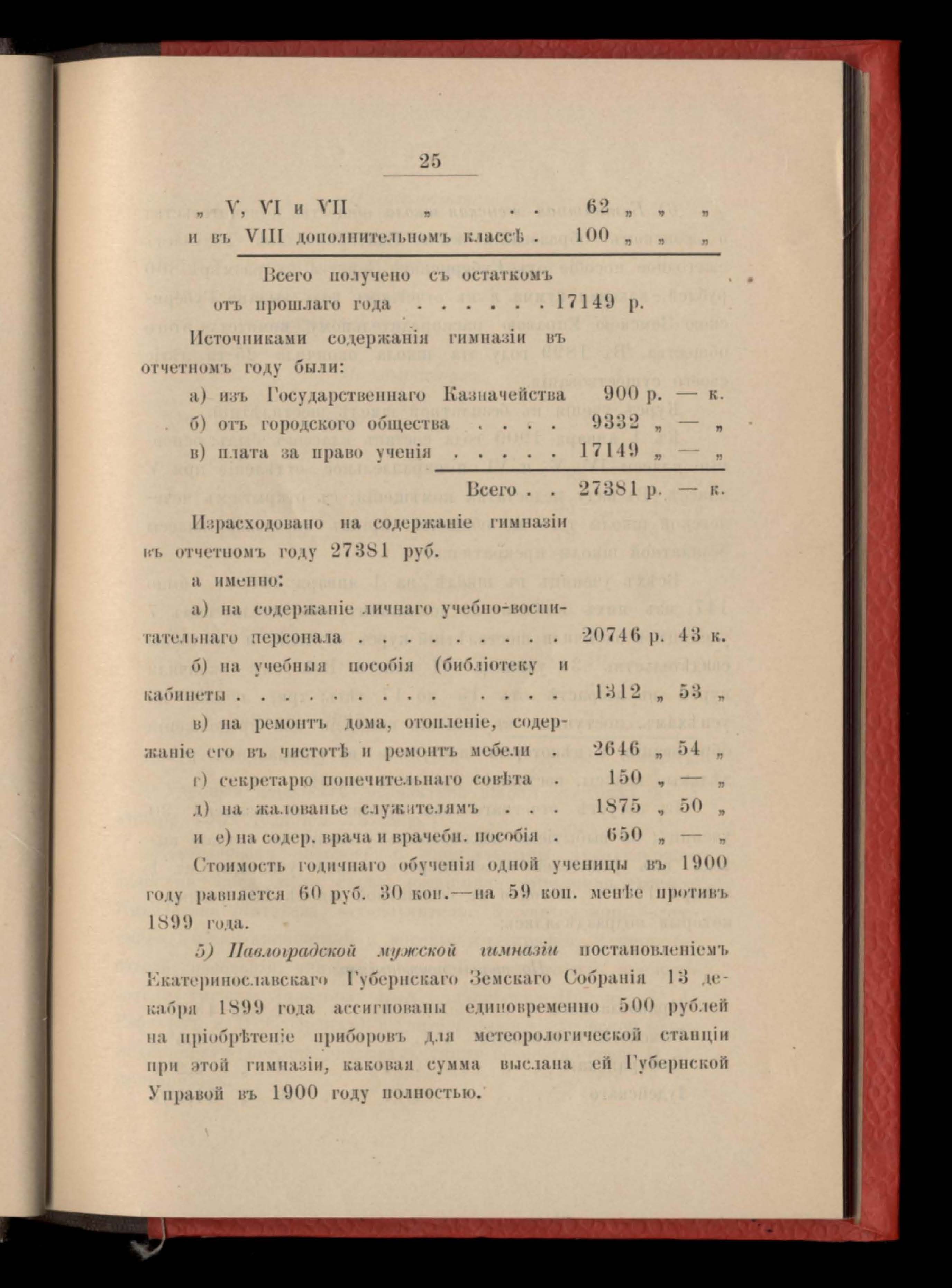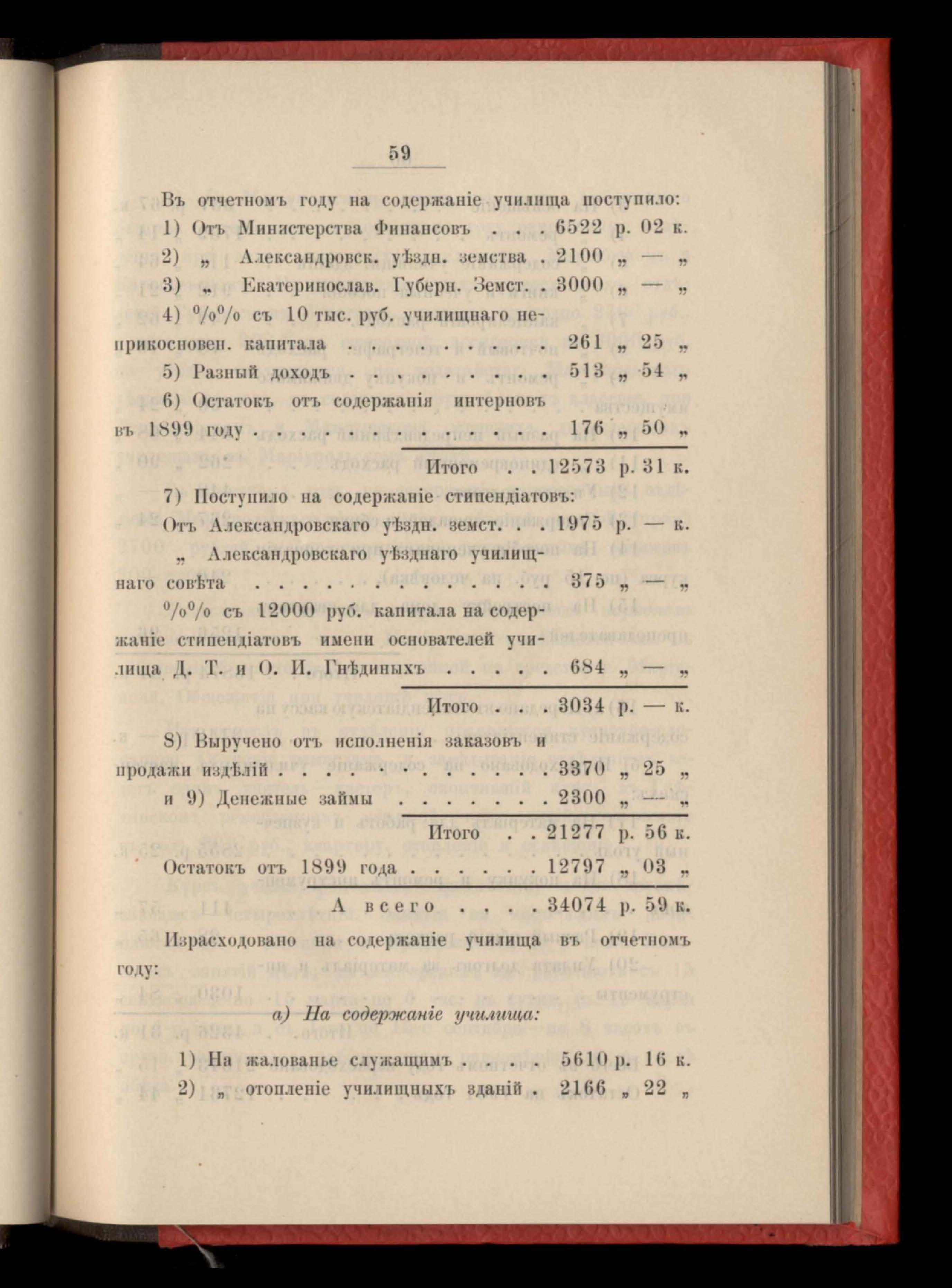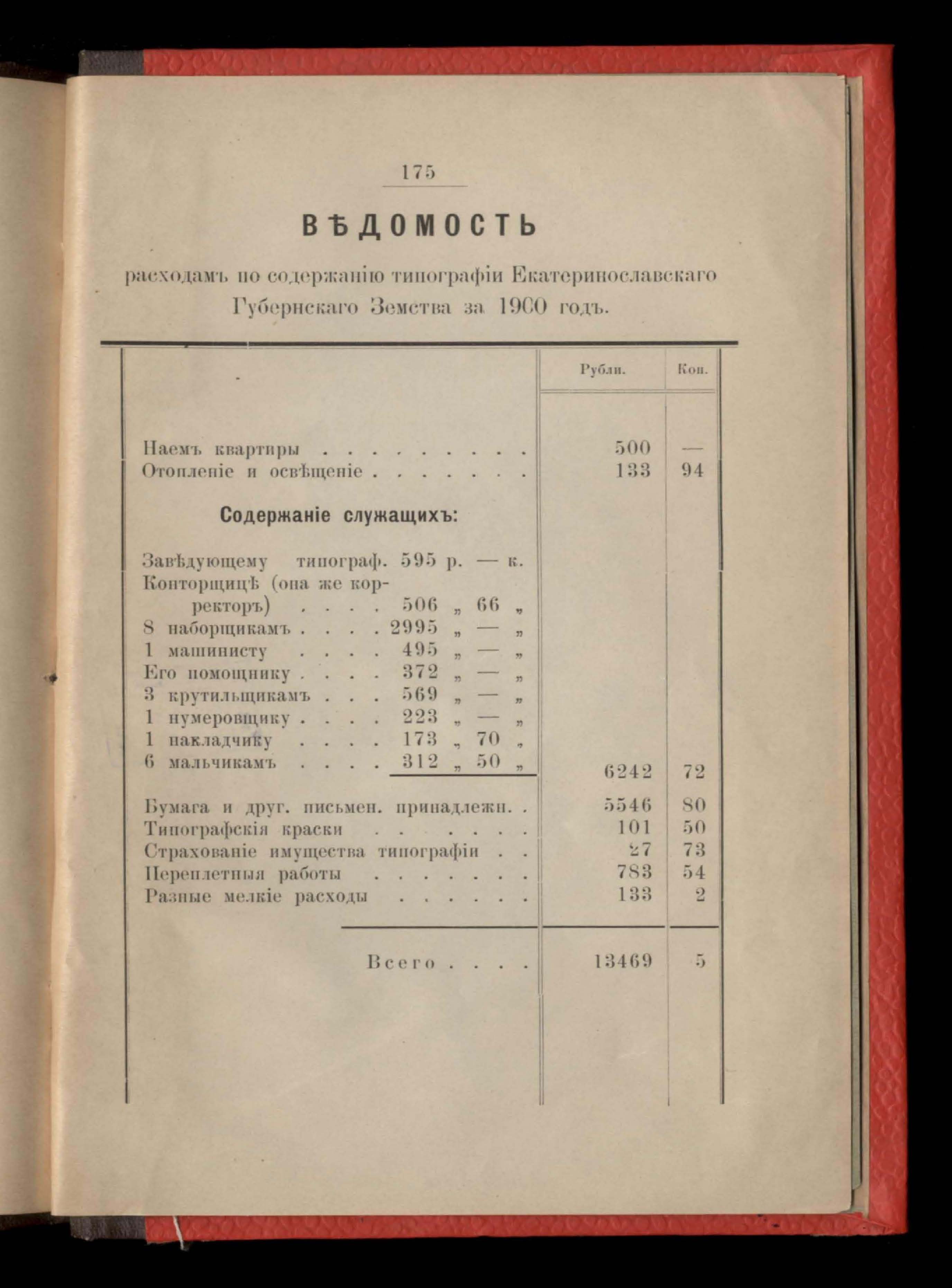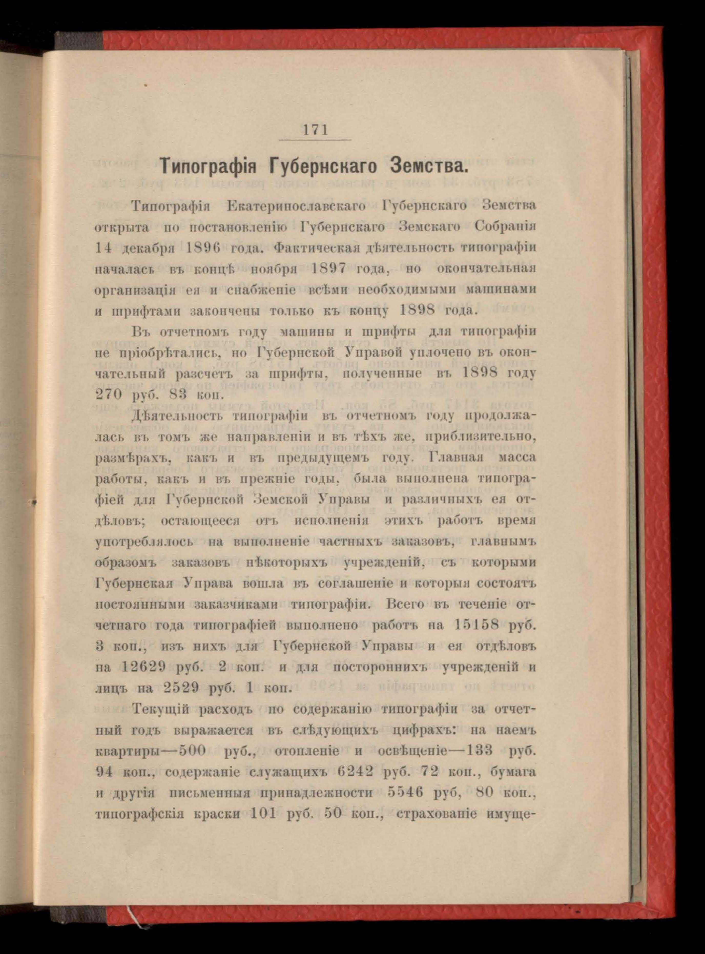 Въдомость расходамъ по содержанію типографіи Екатеринославскаго Губернскаго Земства за 1900 годъ