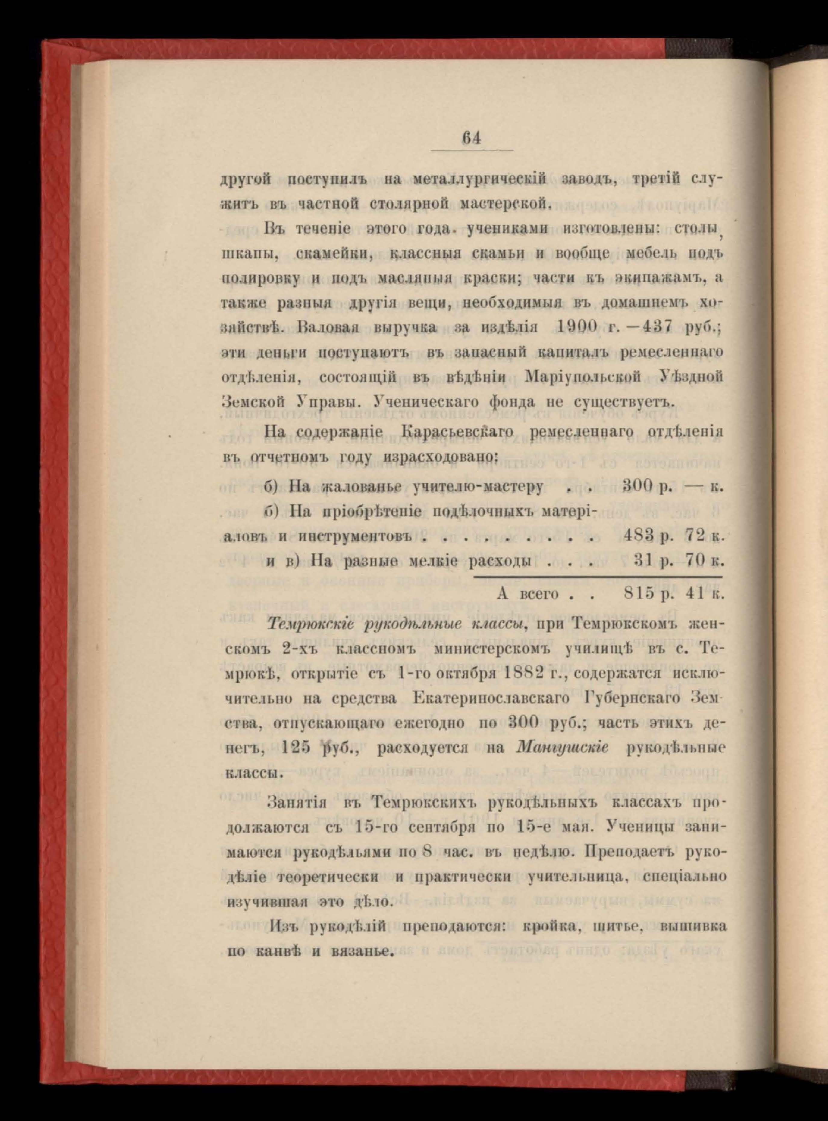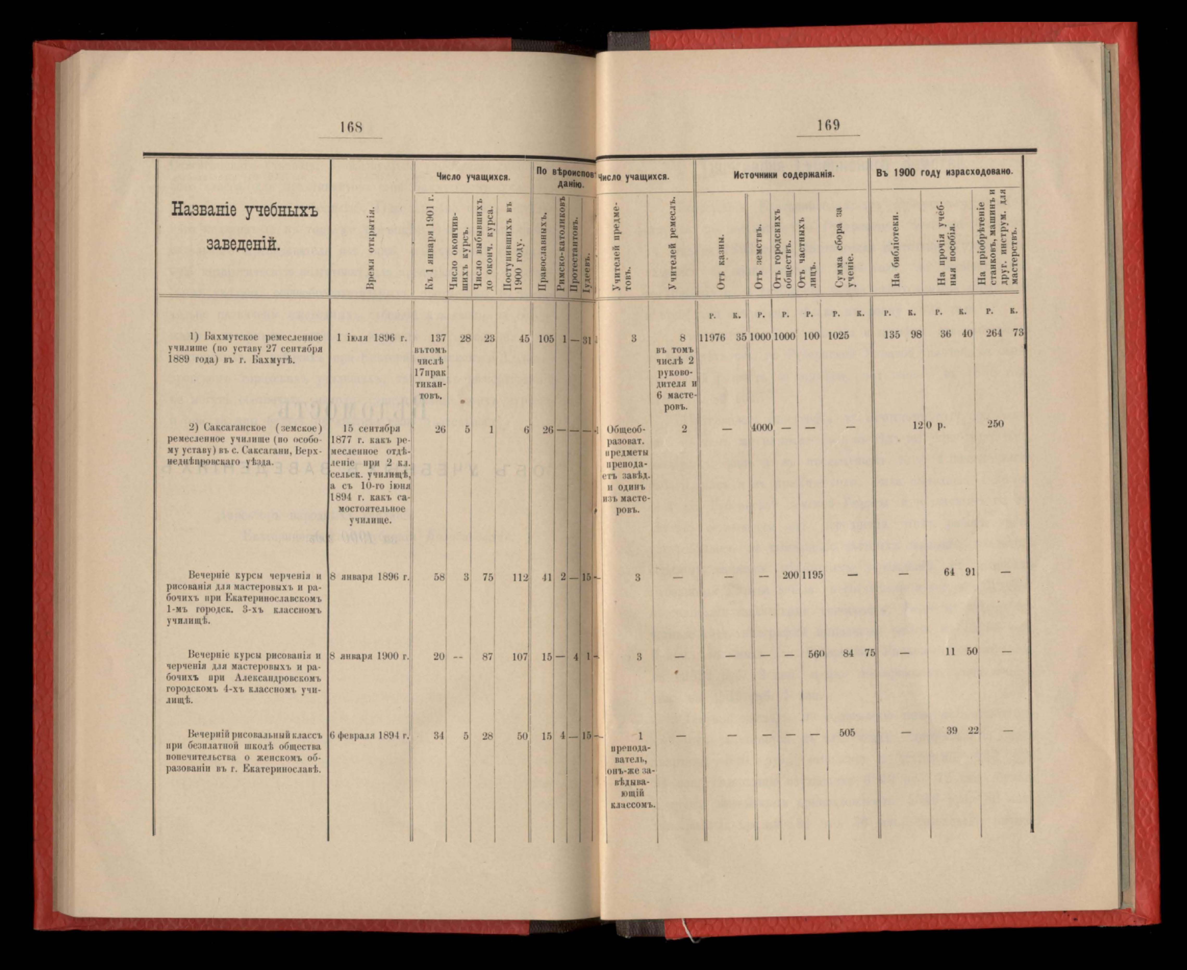 158. Отчетъ о состояніи ремесленныхъ училищъ и техническихъ курсовъ въ въденіи Екатеринославской дирекціи народныхъ училищъ за 1900 годъ