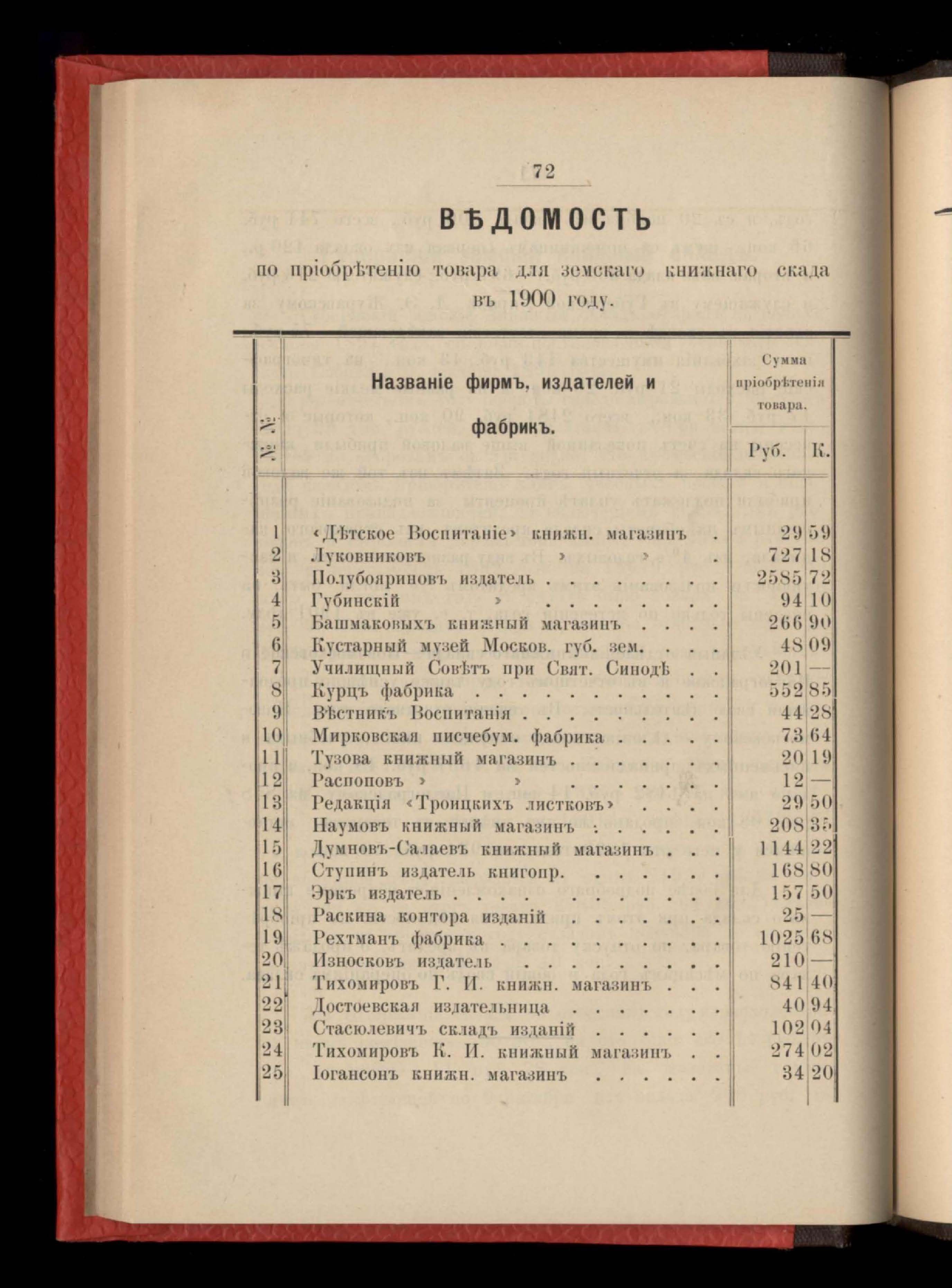 78. Въдомостъ по пріобрътенію товара для земскаго книжнаго склада въ 1900 году