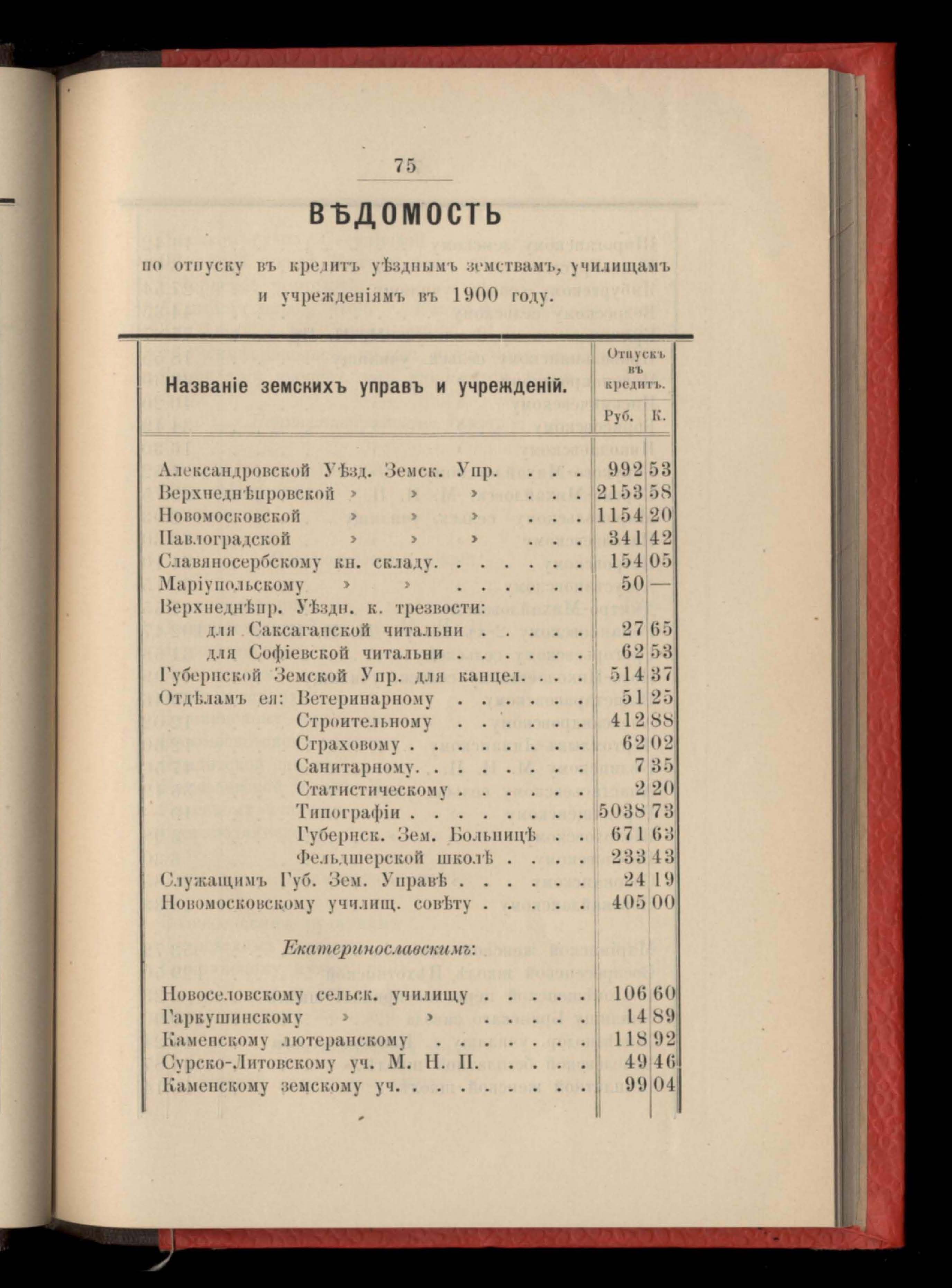 81. Въдомостъ по отпуску въ кредитъ уъзднымъ земствамъ, училищамъ и учрежденіямъ въ 1900 году