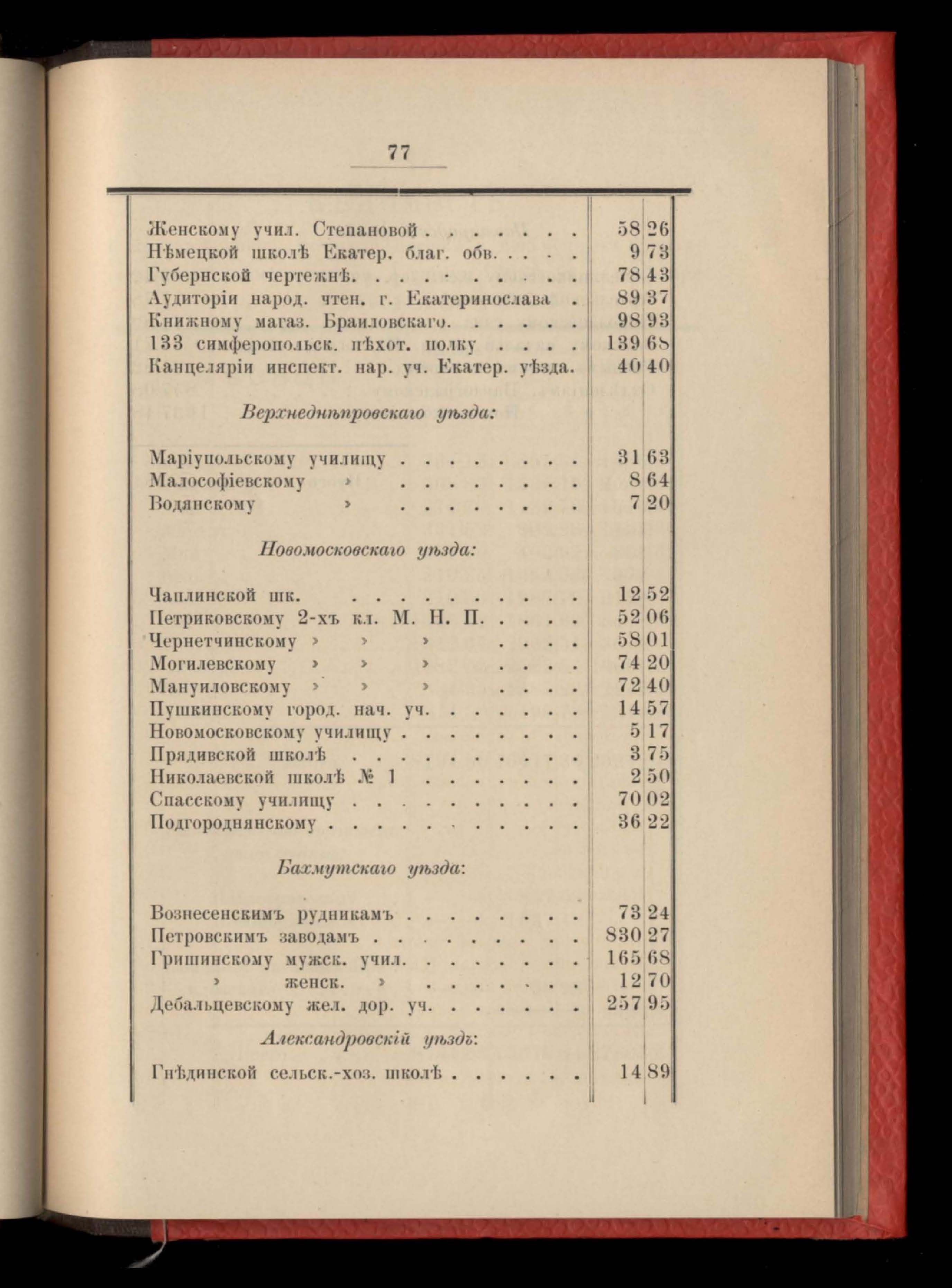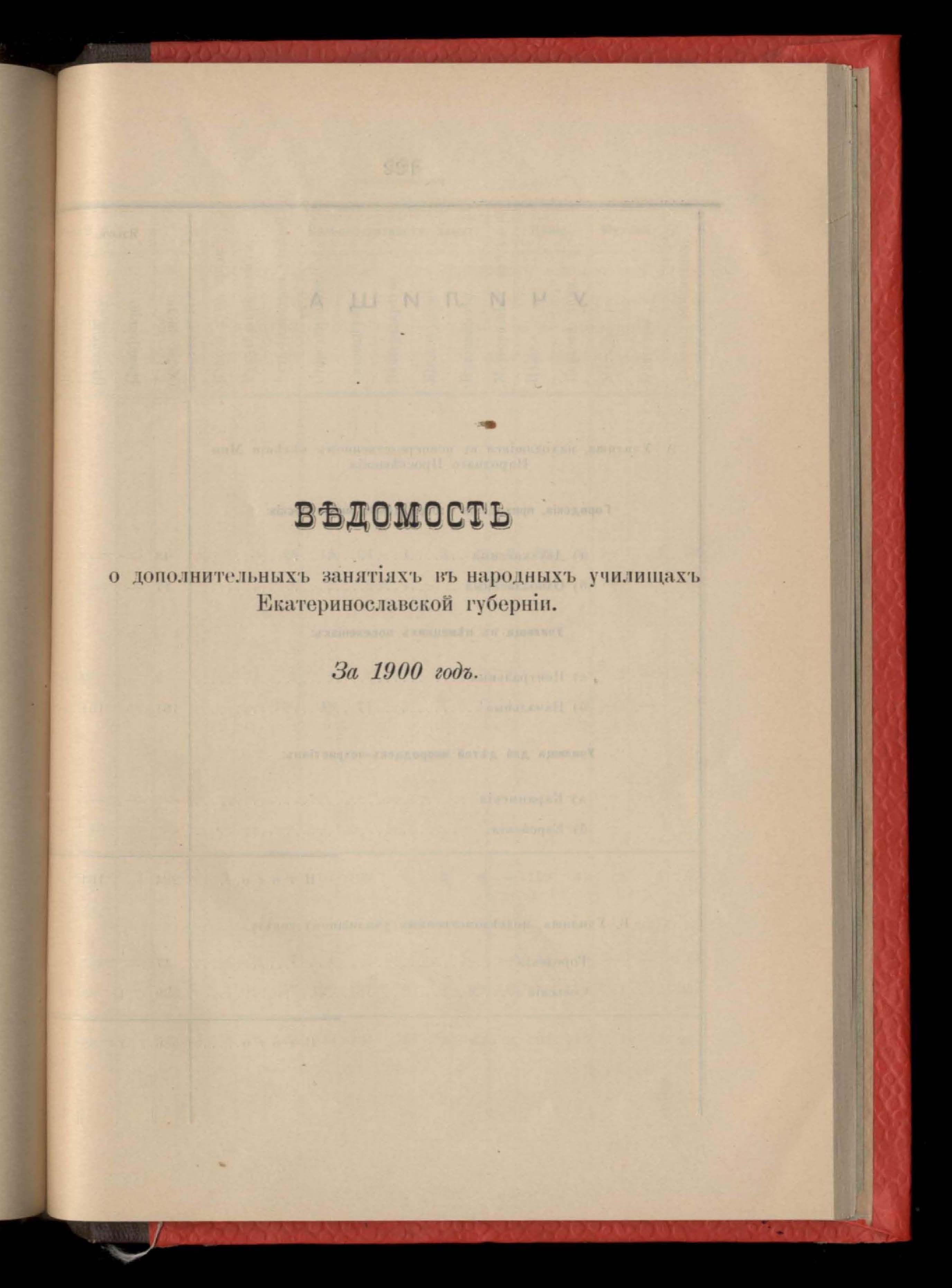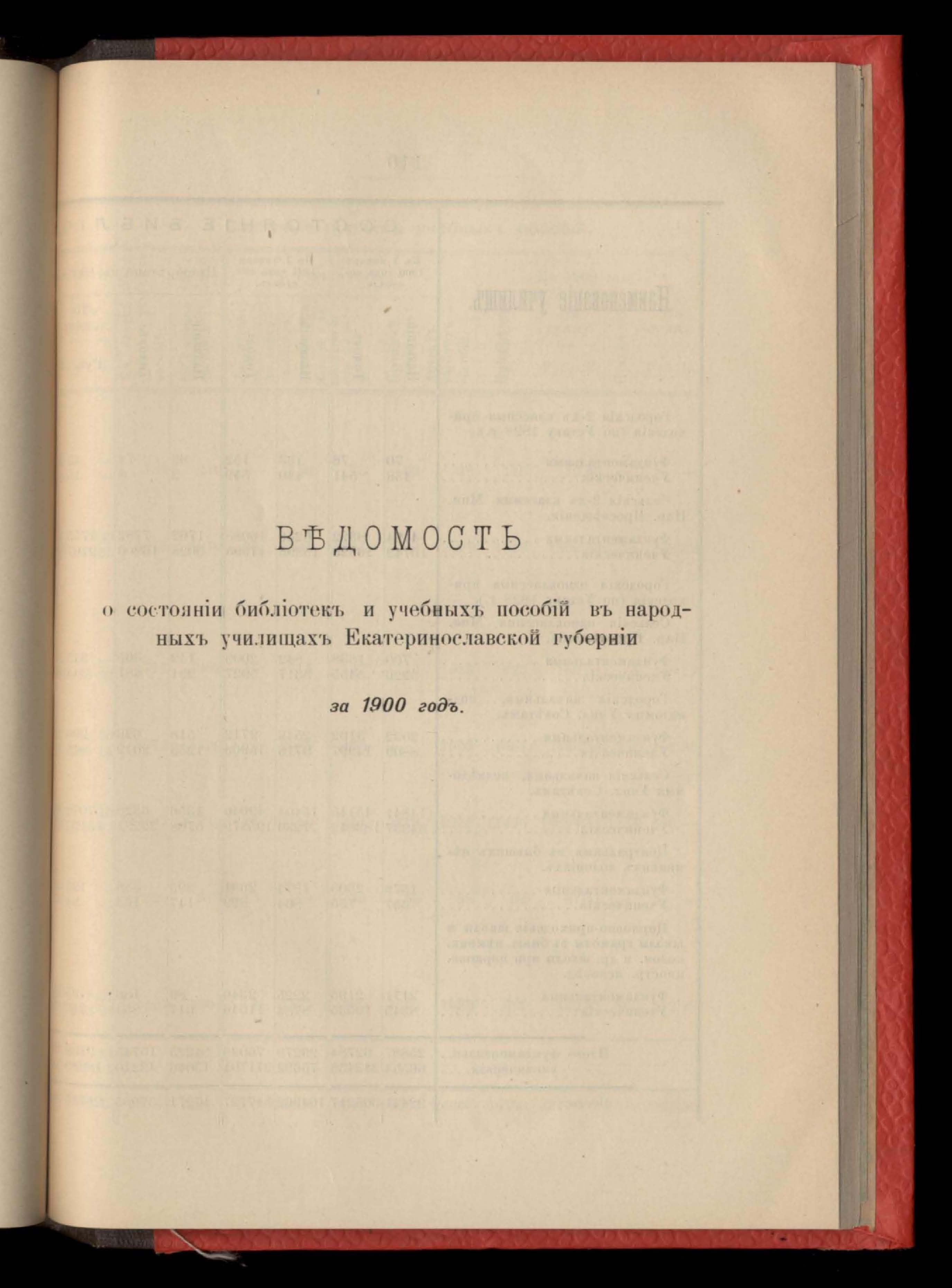 Въдомость о состояніи библіотекъ и учебныхъ пособій въ народныхъ училищахъ Екатеринославской губерніи за 1900 годъ