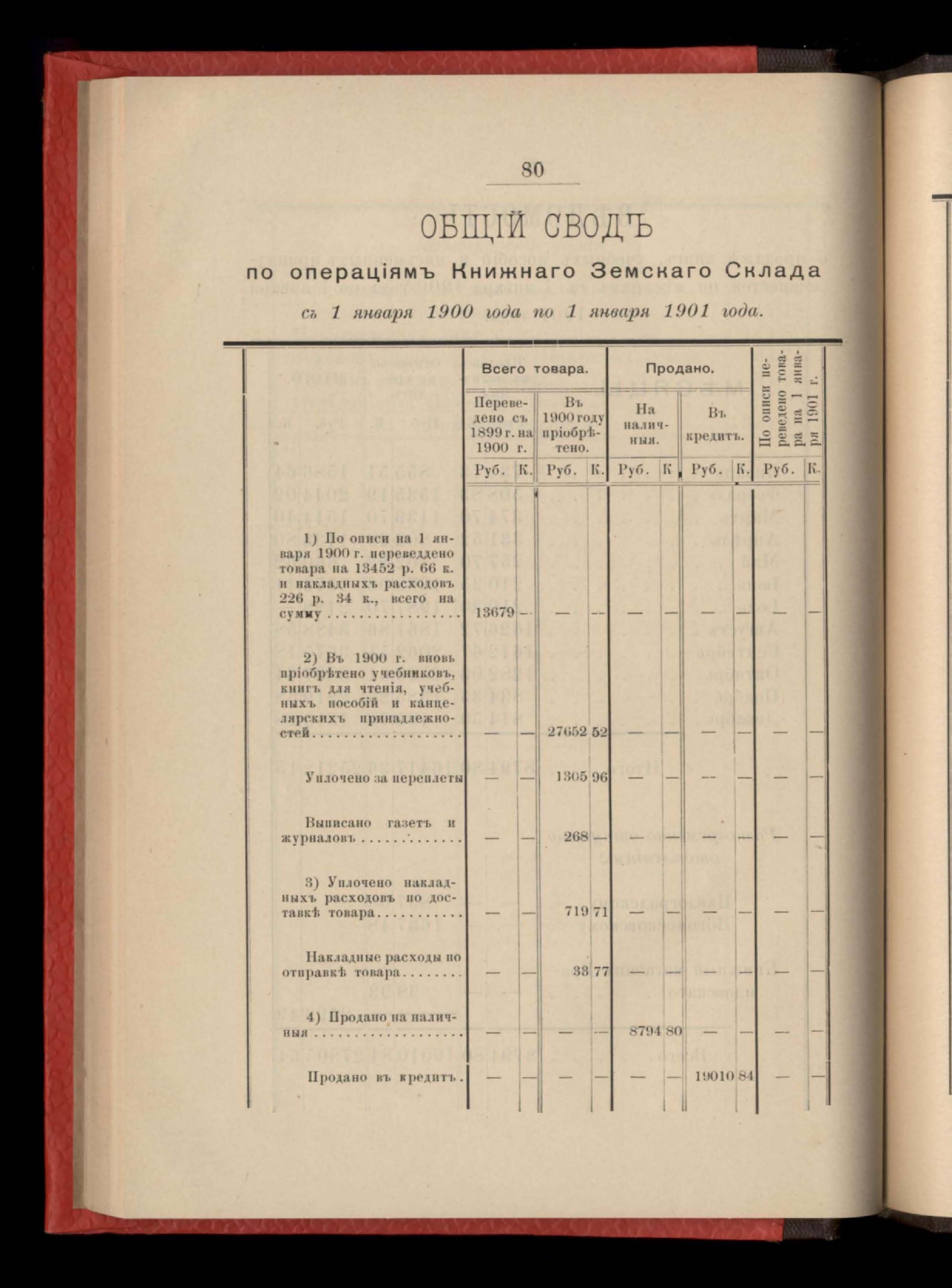 86. Общій сводъ по операціямъ Книжнаго Земскаго Склада съ 1 января 1900 г. по 1 января 1901 года