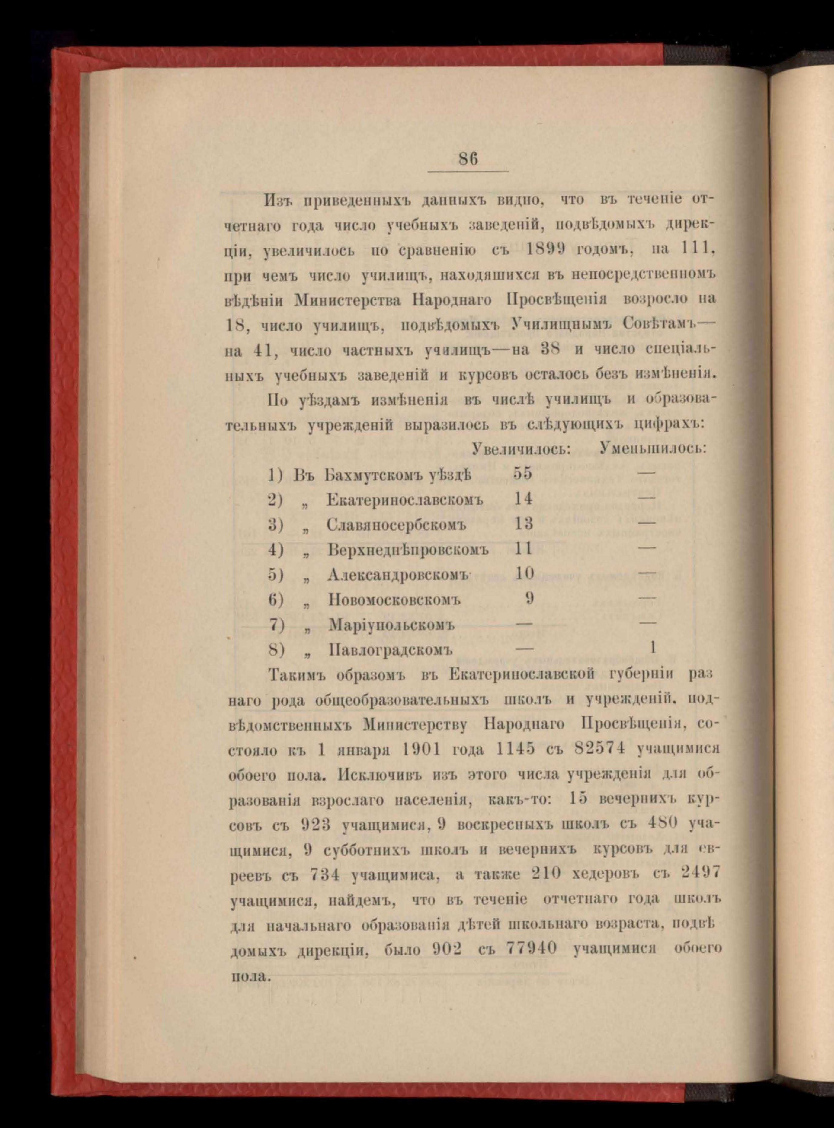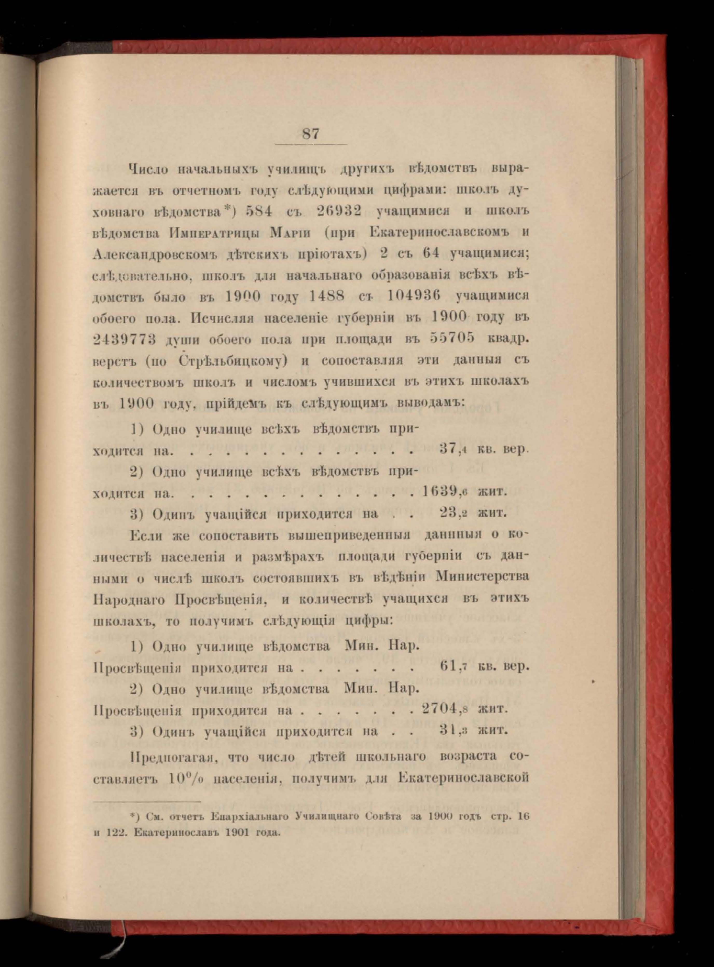 89. Отчетъ о состояніи народныхъ училищъ Екатеринославской дирекціи на 1900 годъ