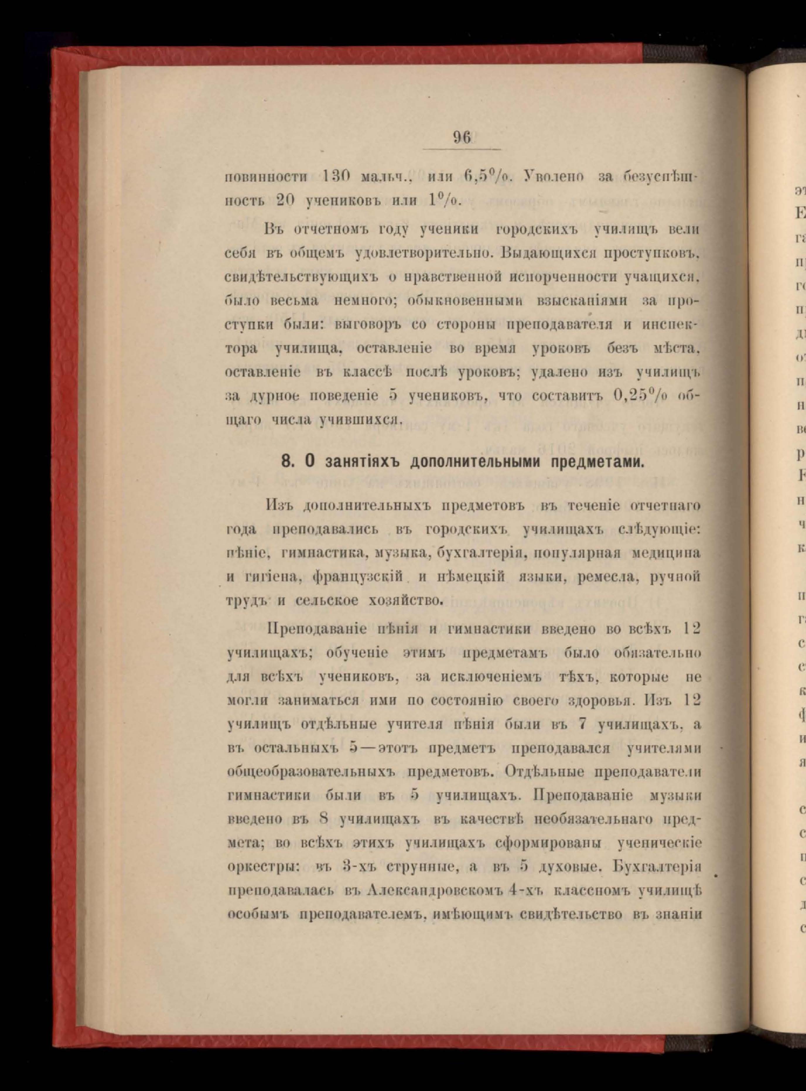 Въдомость о дополнительныхъ занятіяхъ въ народныхъ училищахъ Екатеринославской губерніи за 1900 годъ
