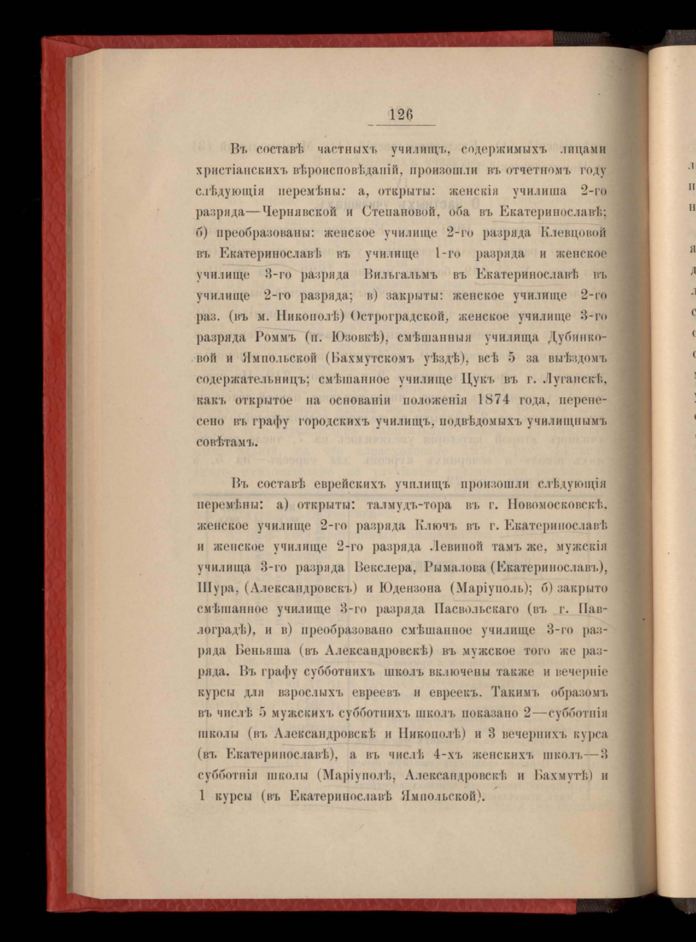 126. Въдомость о дополнительныхъ занятіяхъ въ народныхъ училищахъ Екатеринославской губерніи за 1900 годъ
