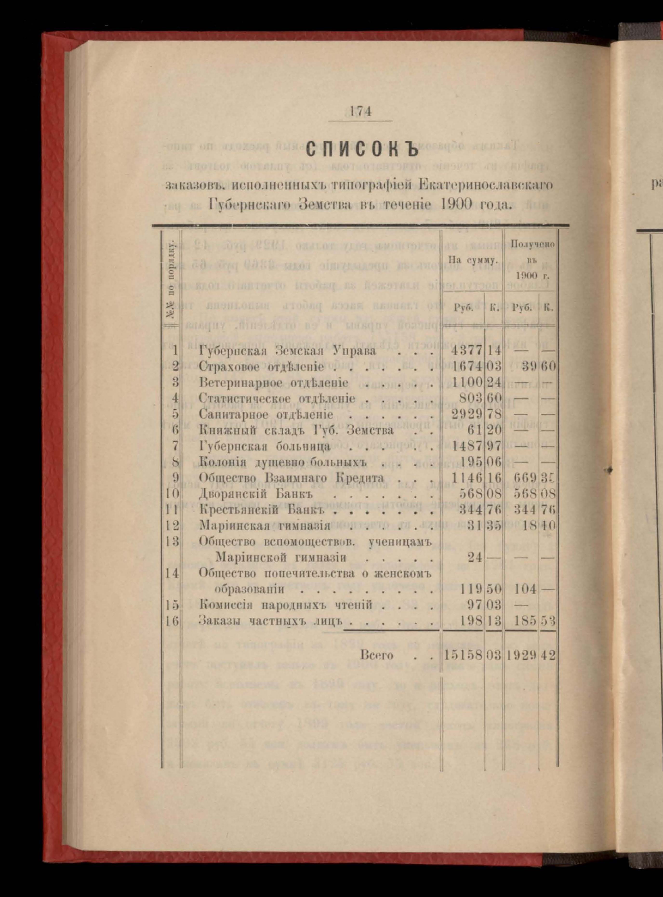 177. Списокъ заказовъ, исполненныхъ типографіей Екатеринославскаго Губернскаго Земства въ теченіе 1900 года