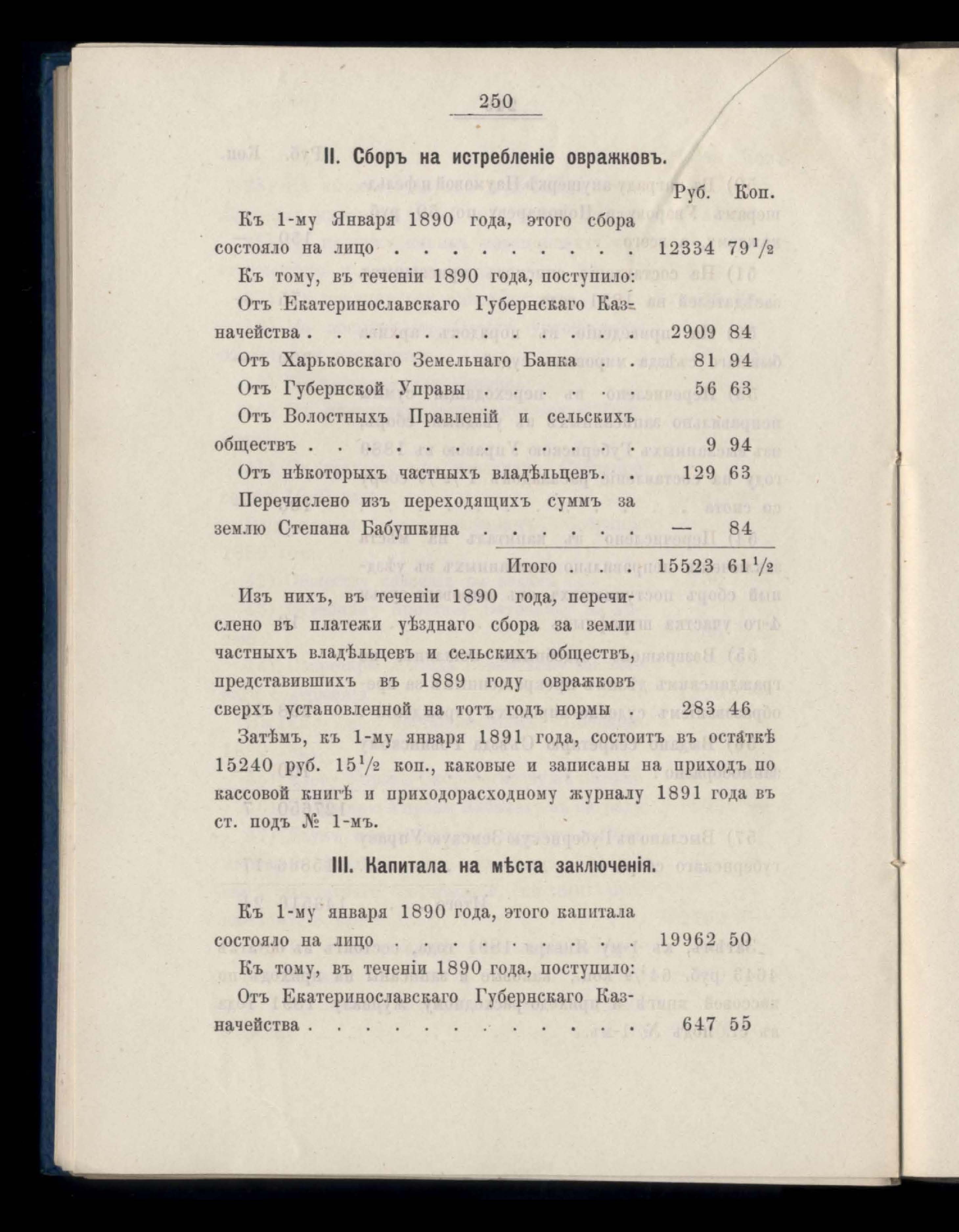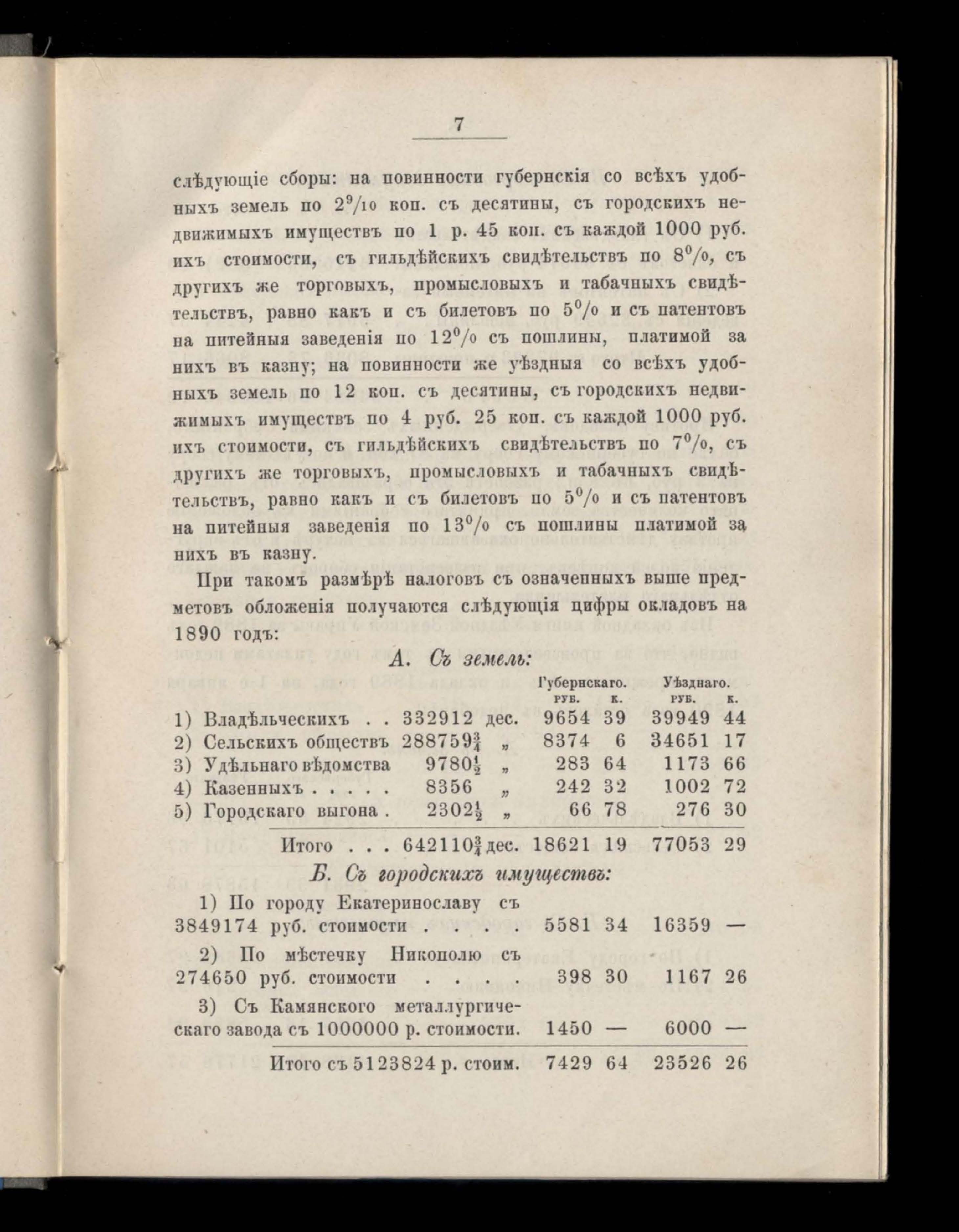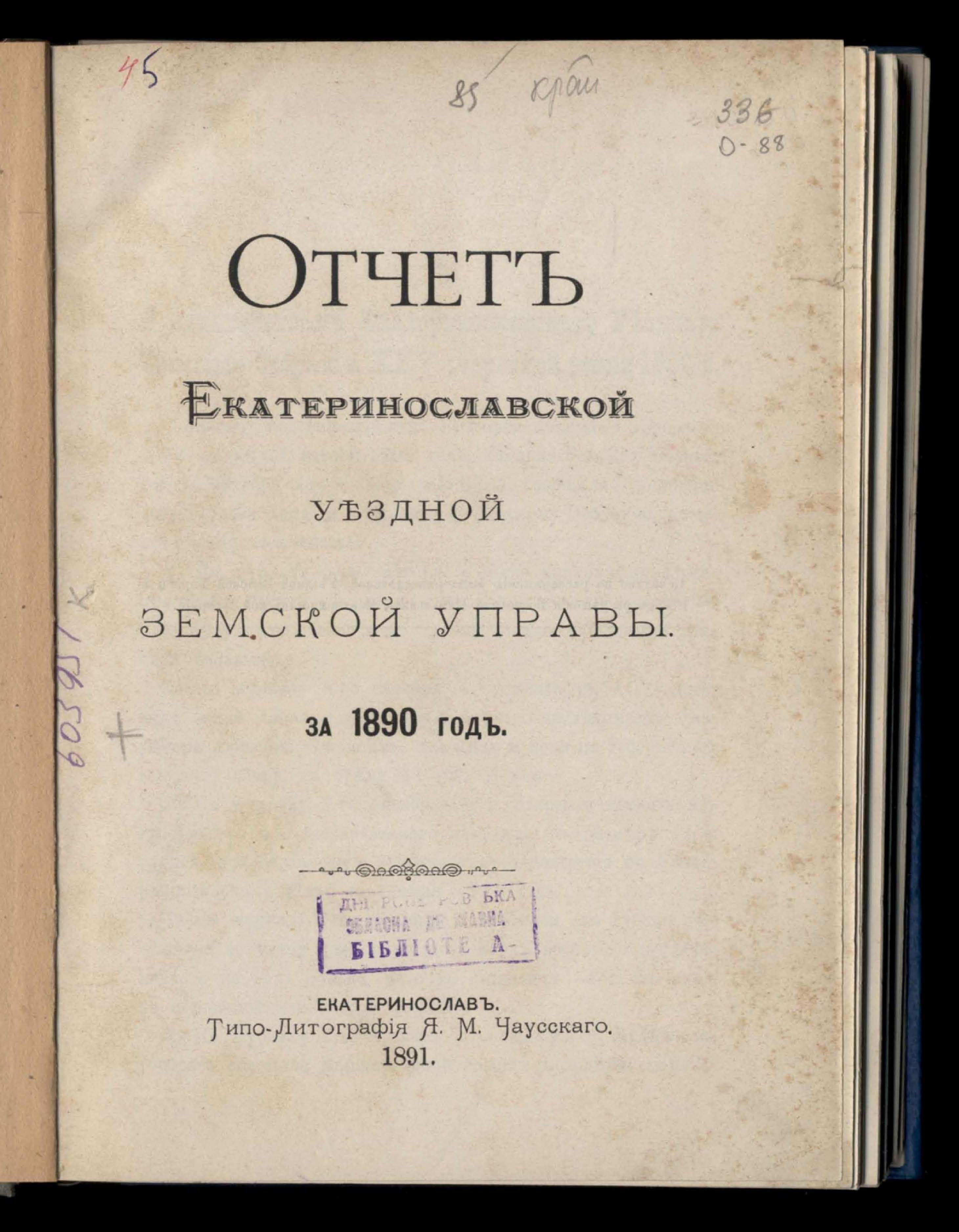 Отчетъ Екатеринославской Уъздной Губернской Земской Управы за 1890 годъ