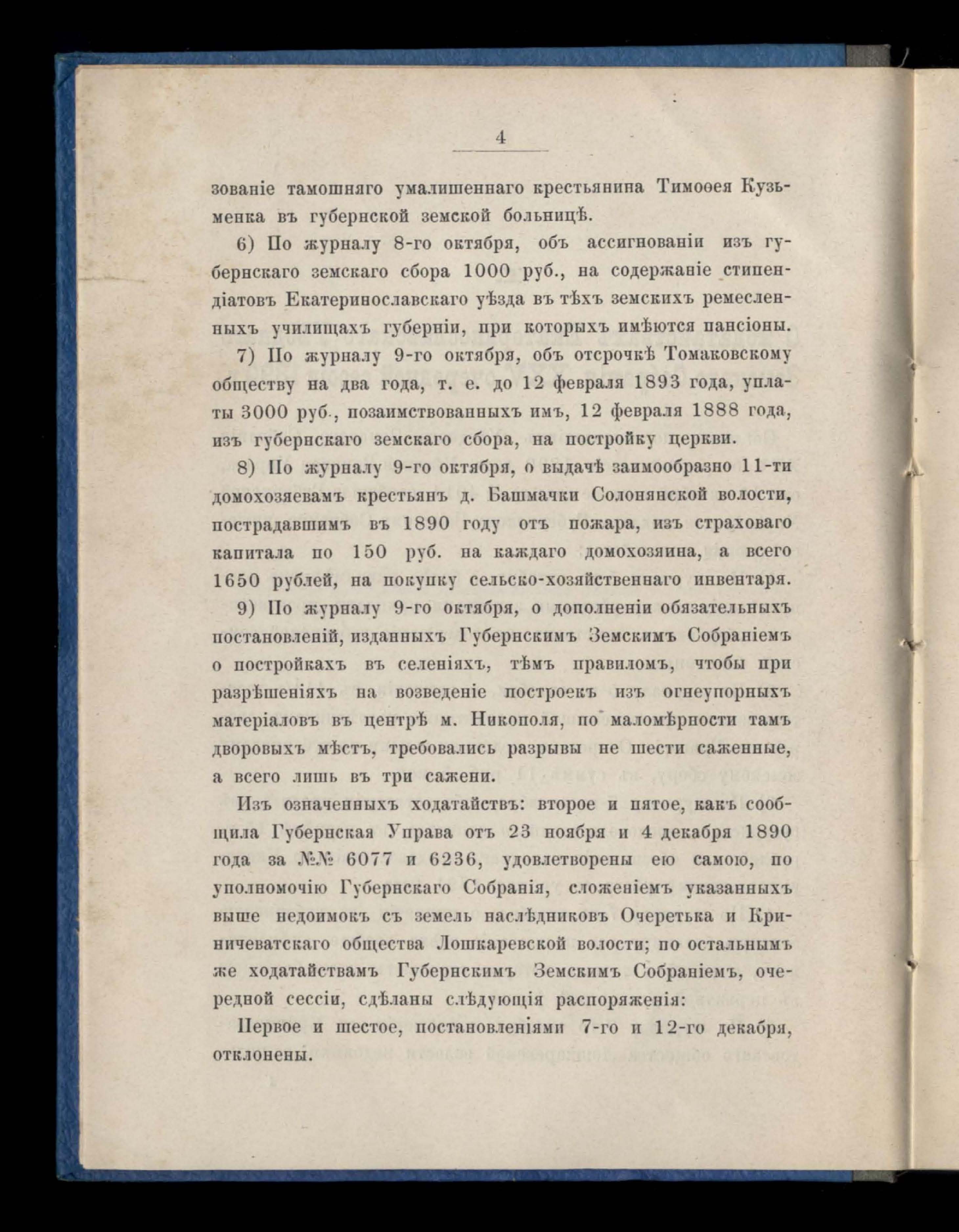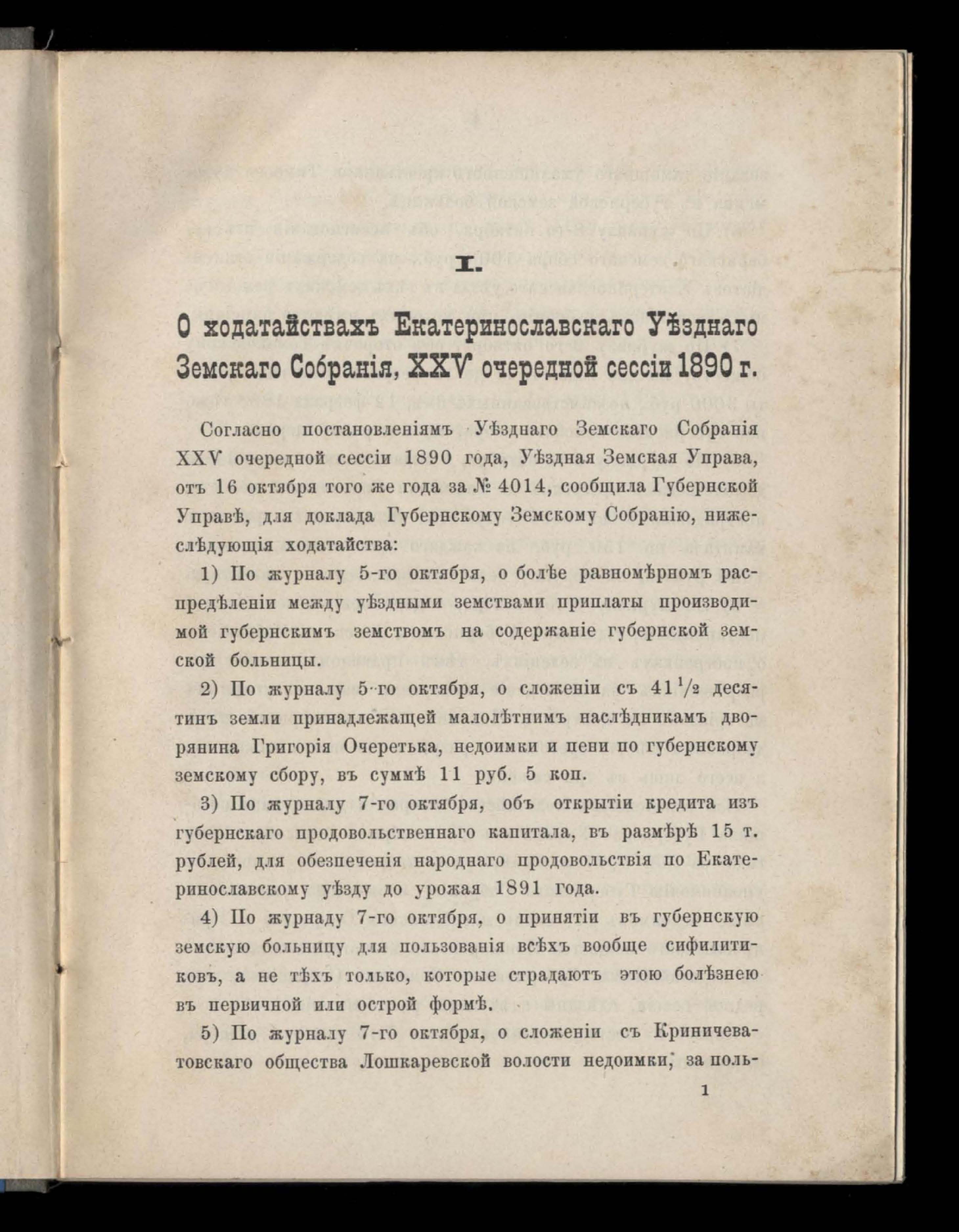О ходатайствахъ Екатеринославскаго Уъзднаго Земскаго Собранія, XXV очередной сессіи 1890 года