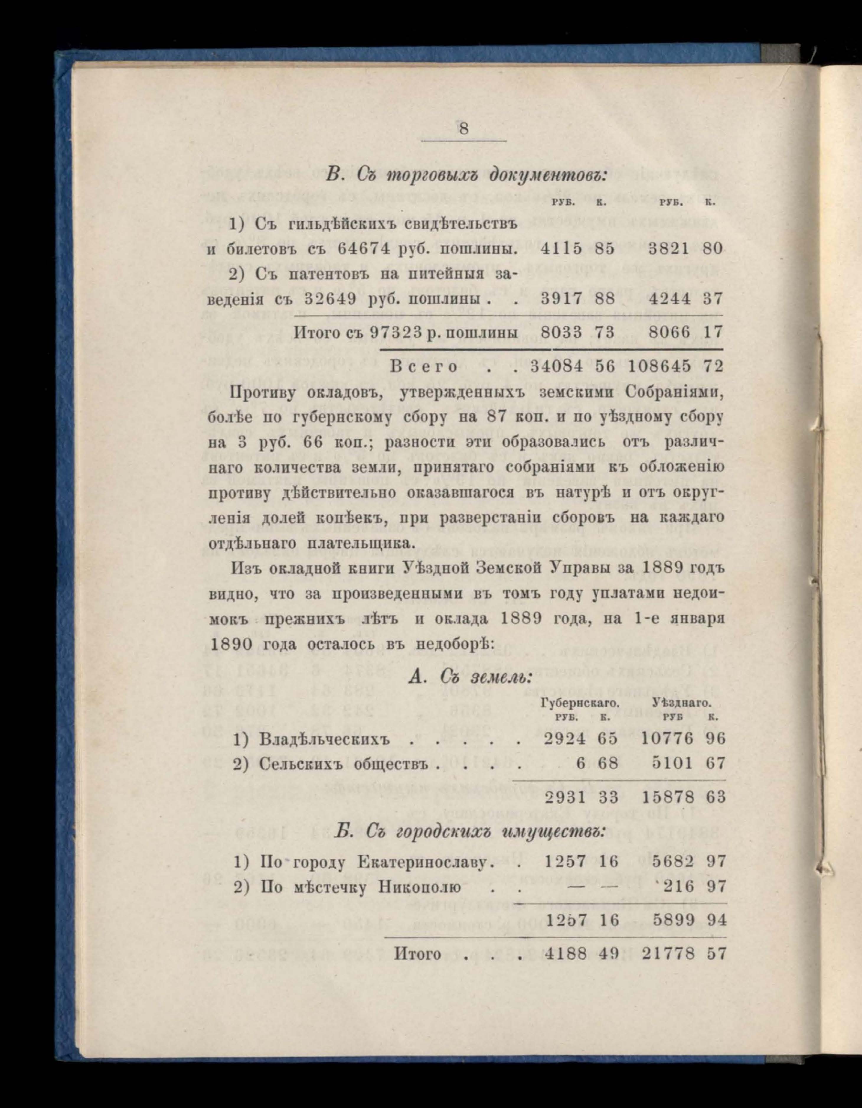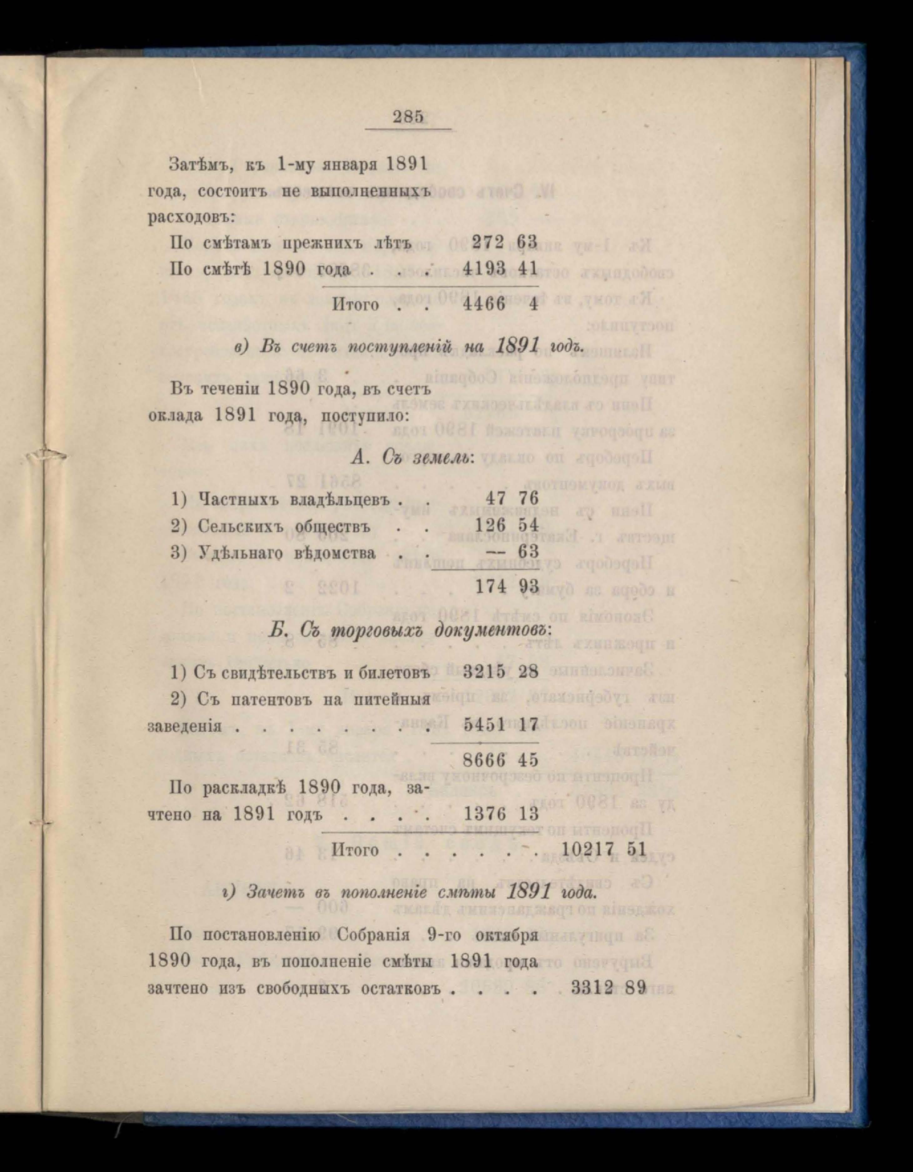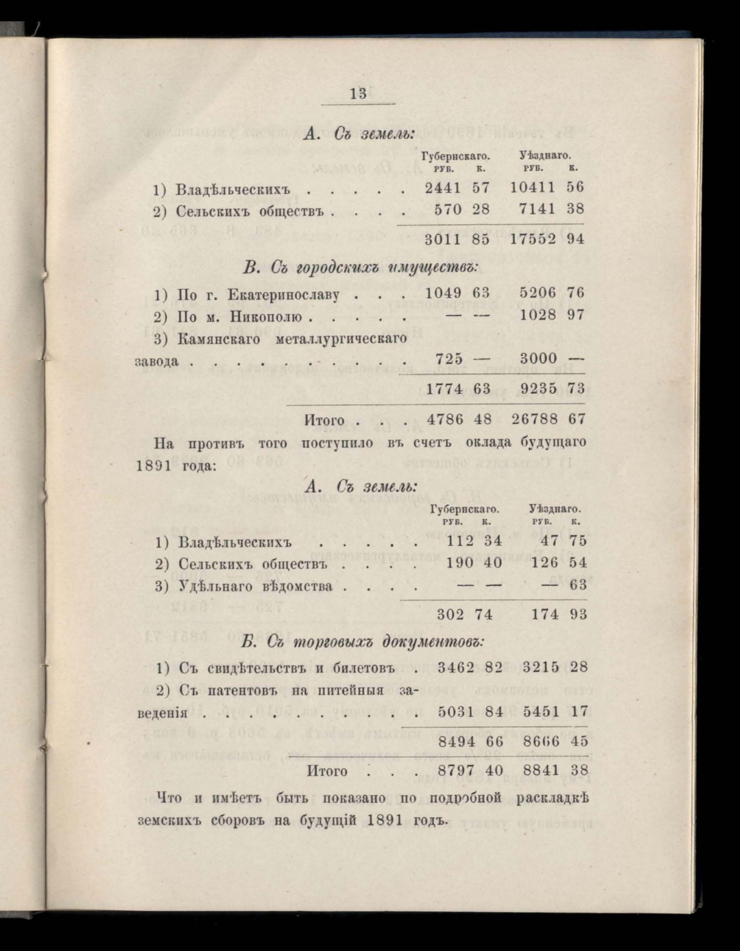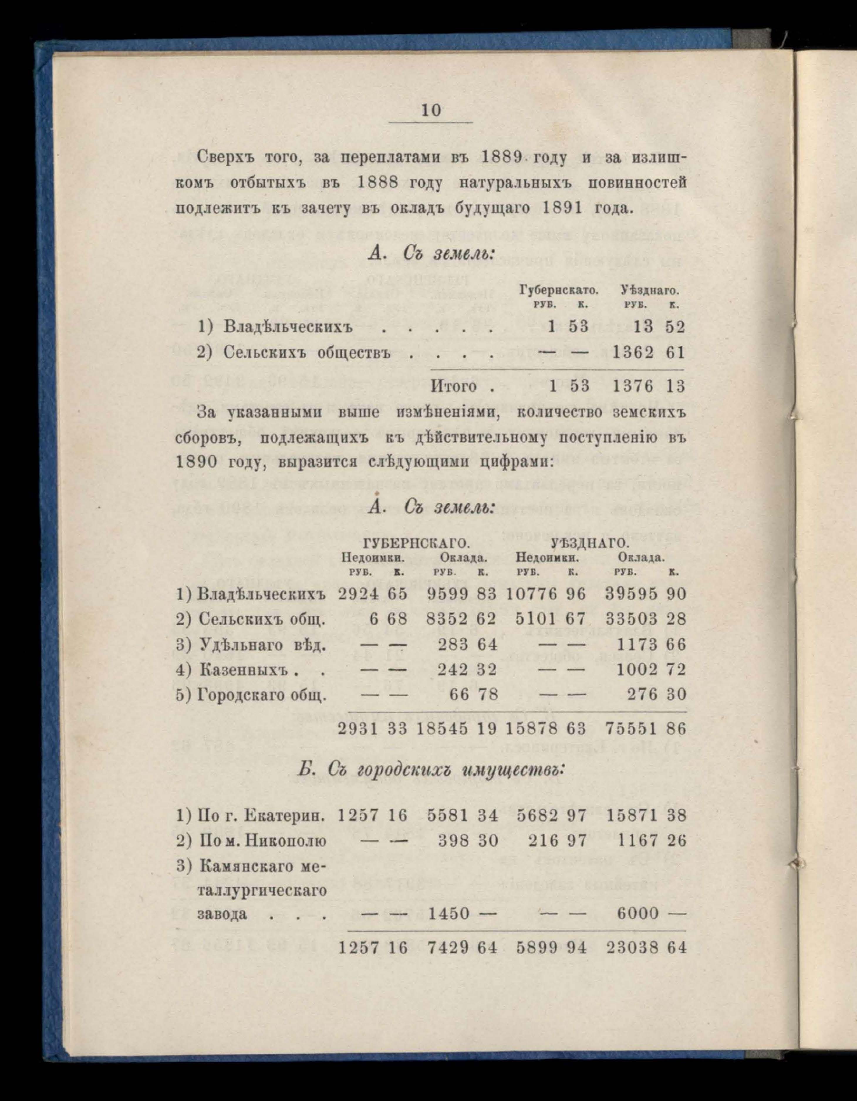О раскладкъ и поступленіи земскимъ сборовъ въ теченіи 1890 года