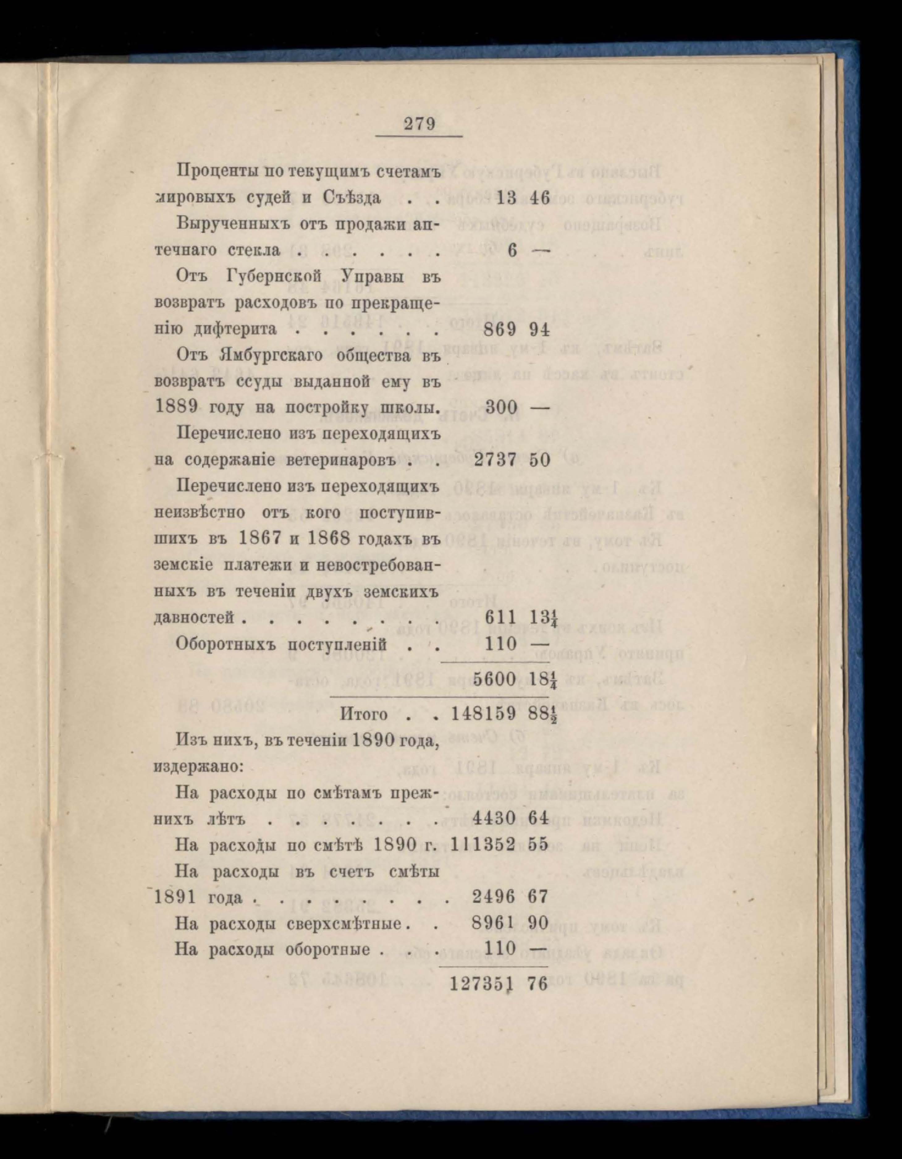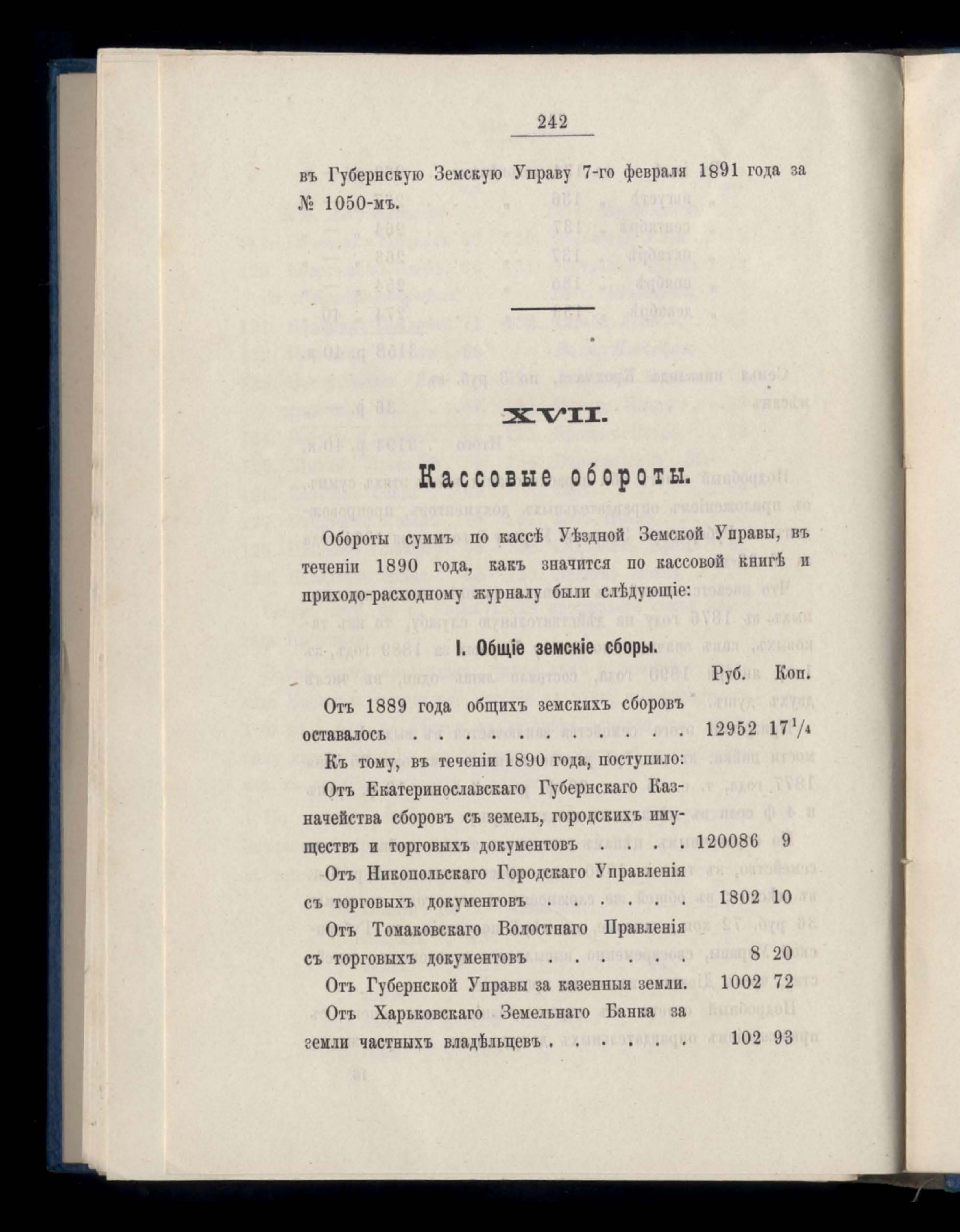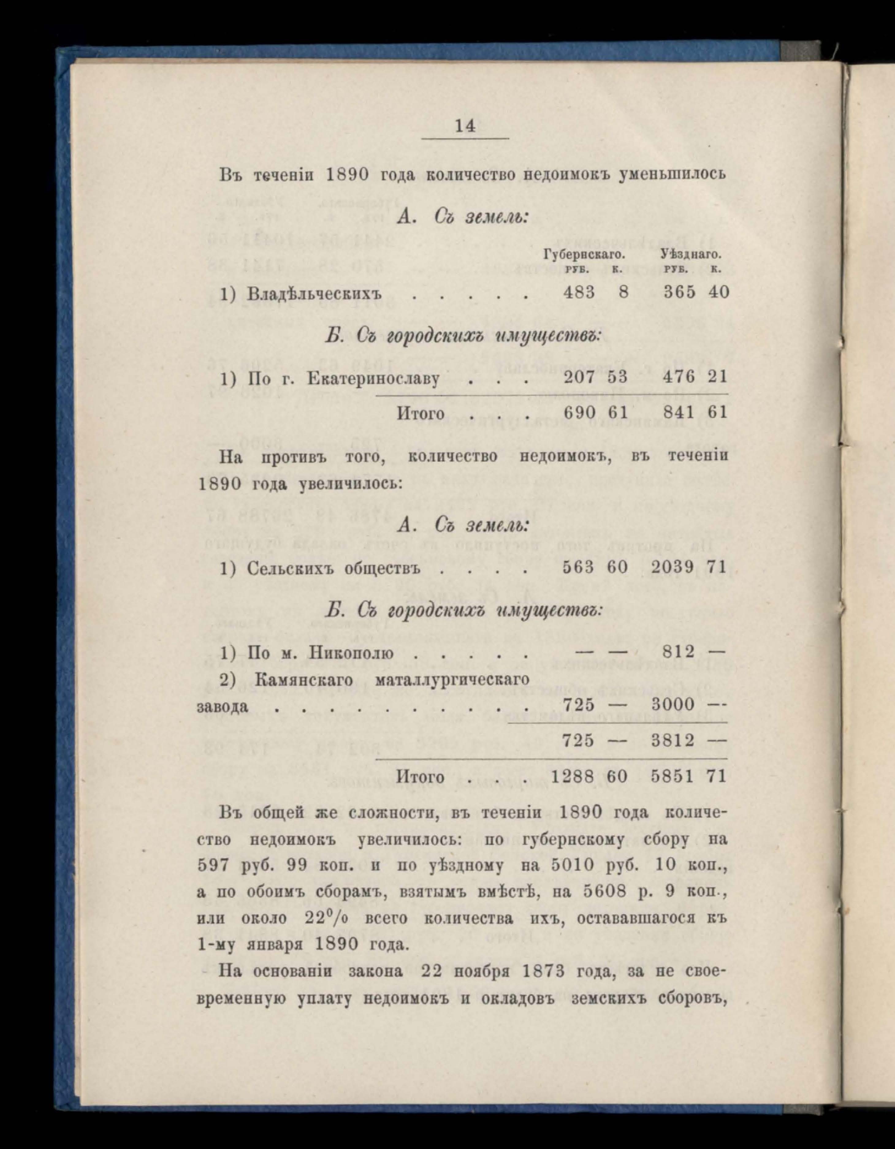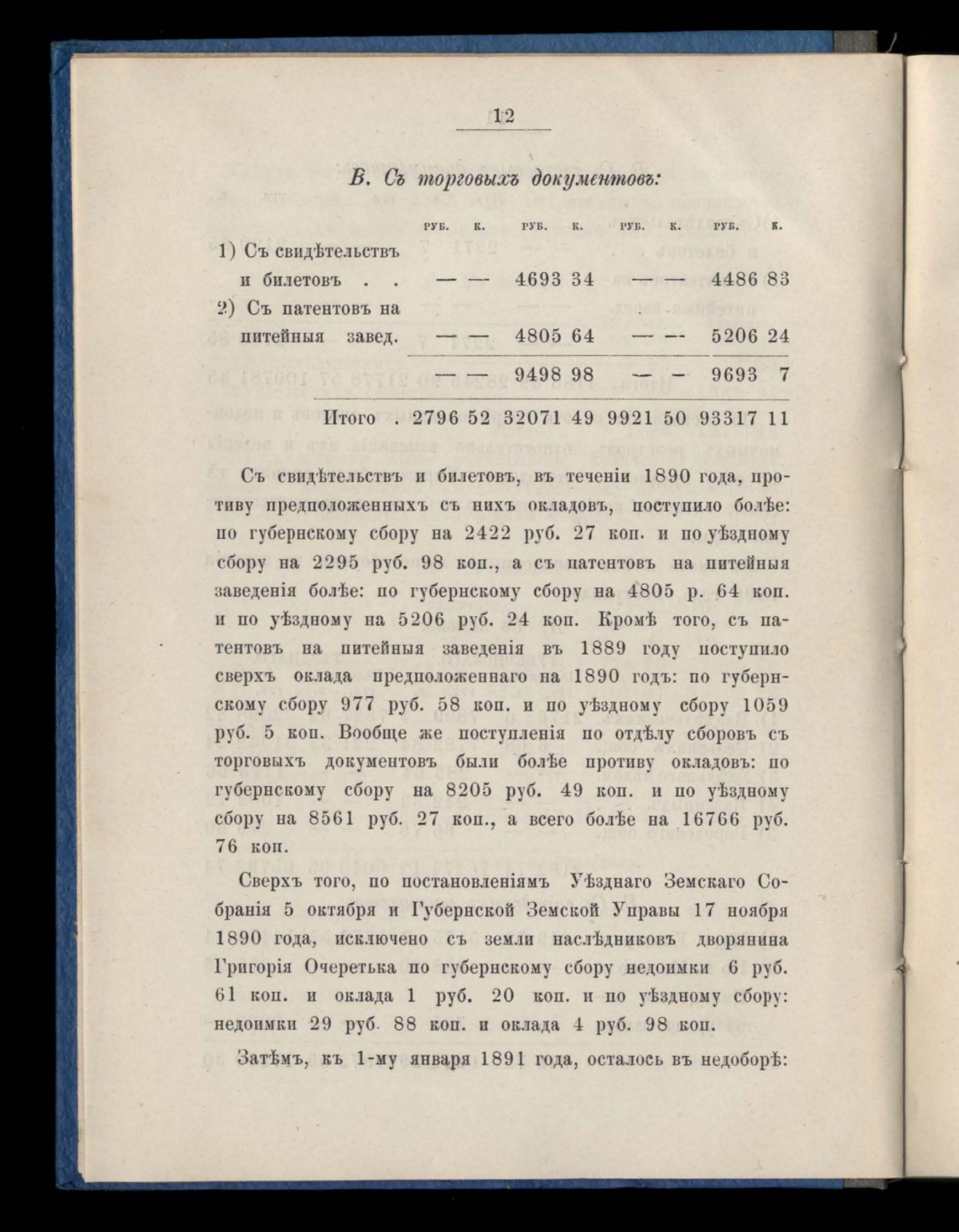 О раскладкъ и поступленіи земскимъ сборовъ въ теченіи 1890 года