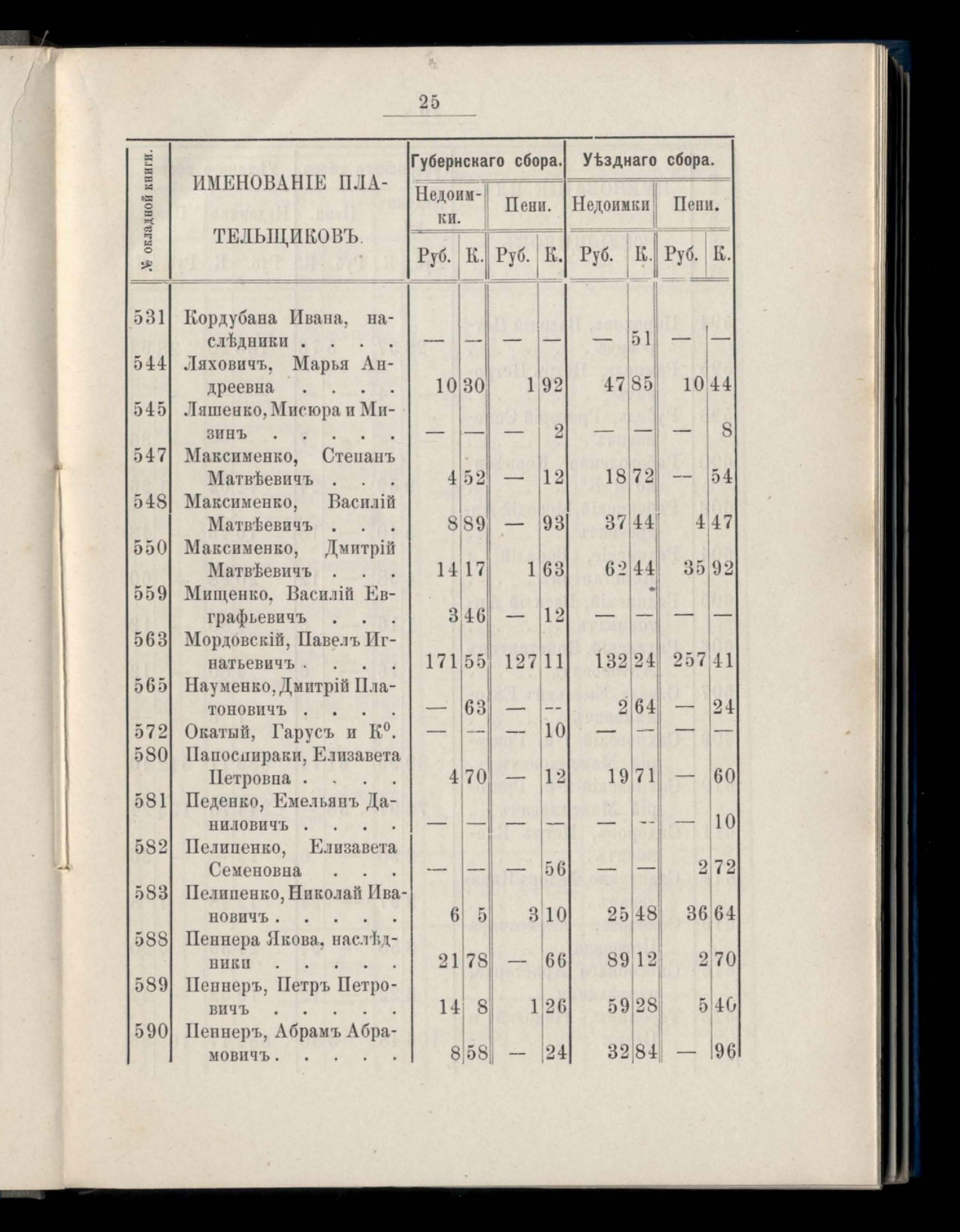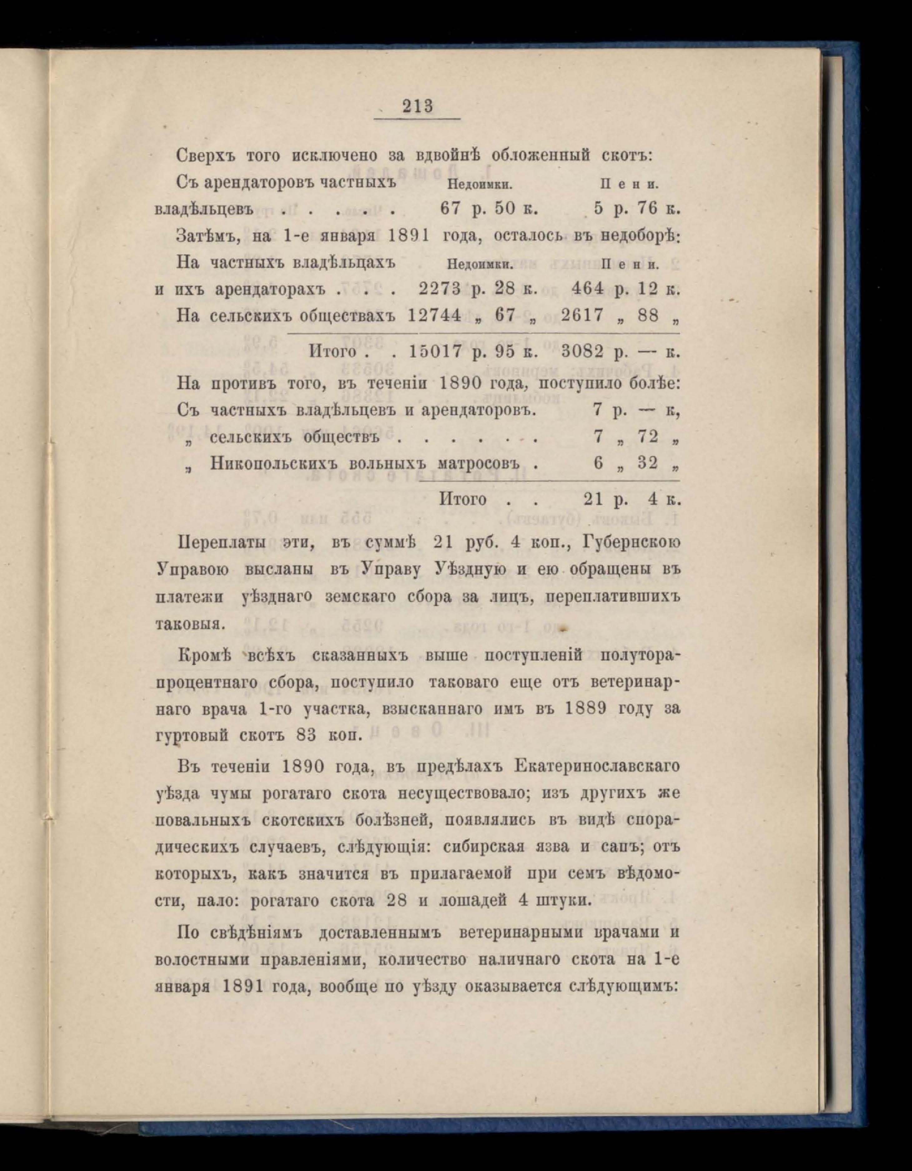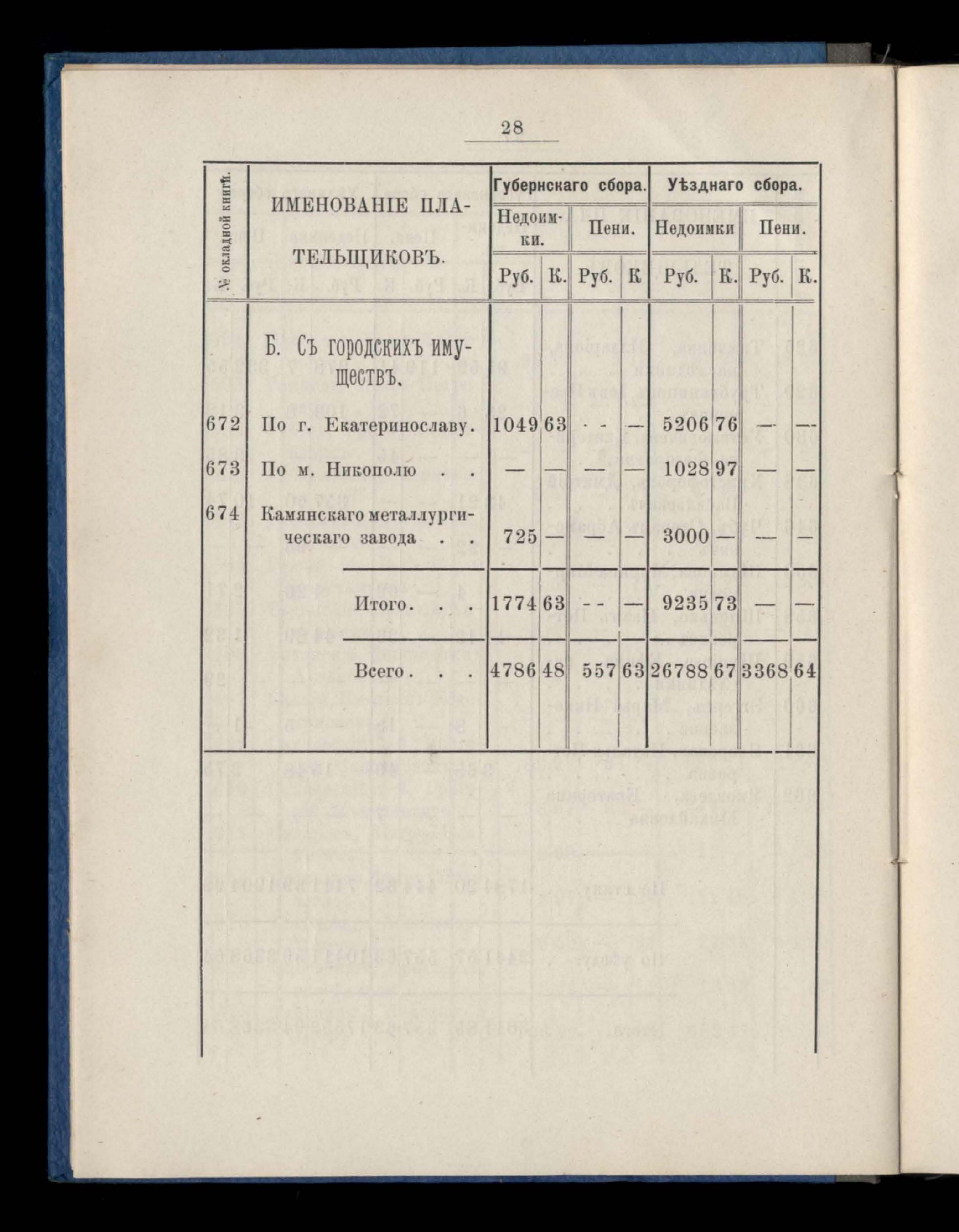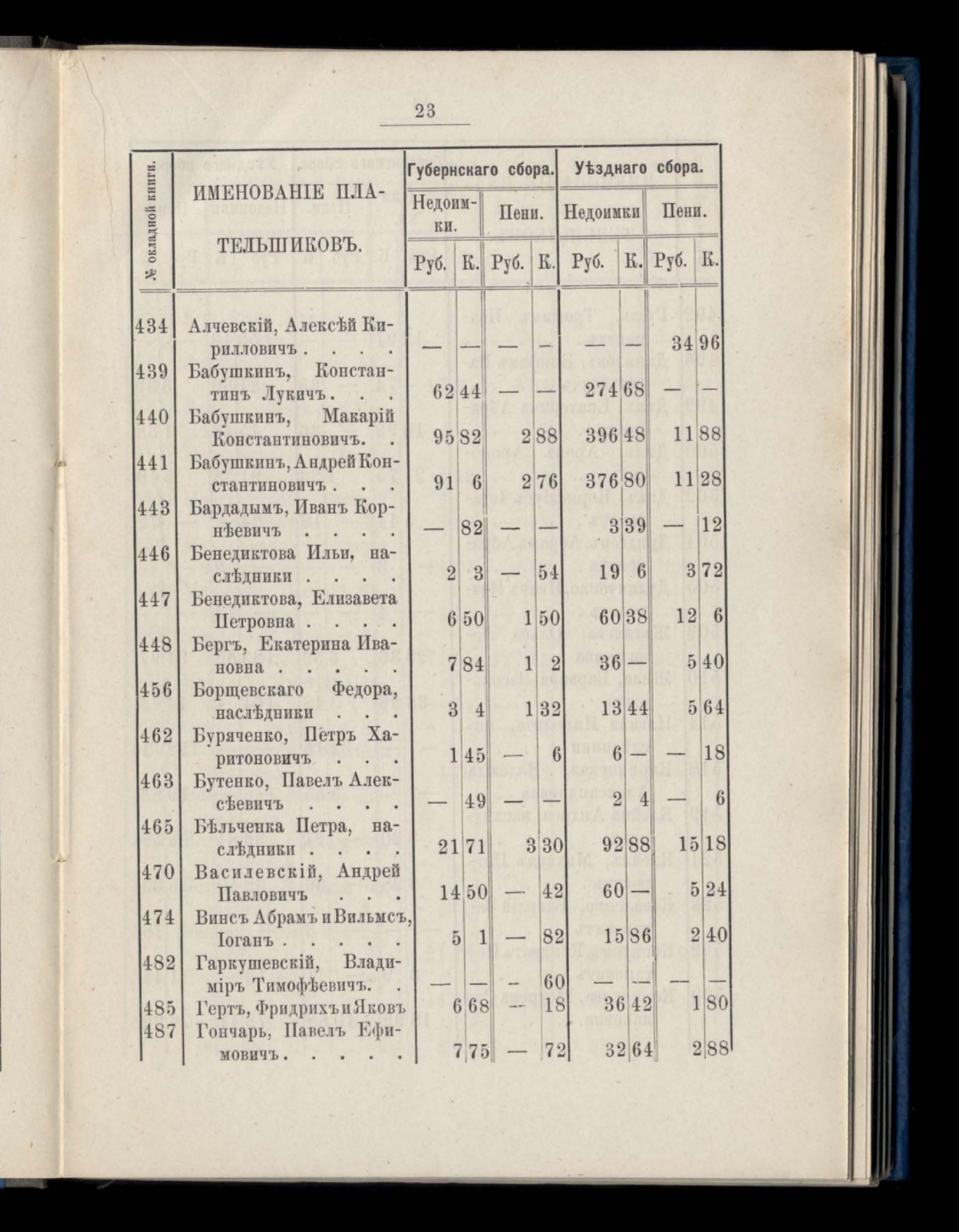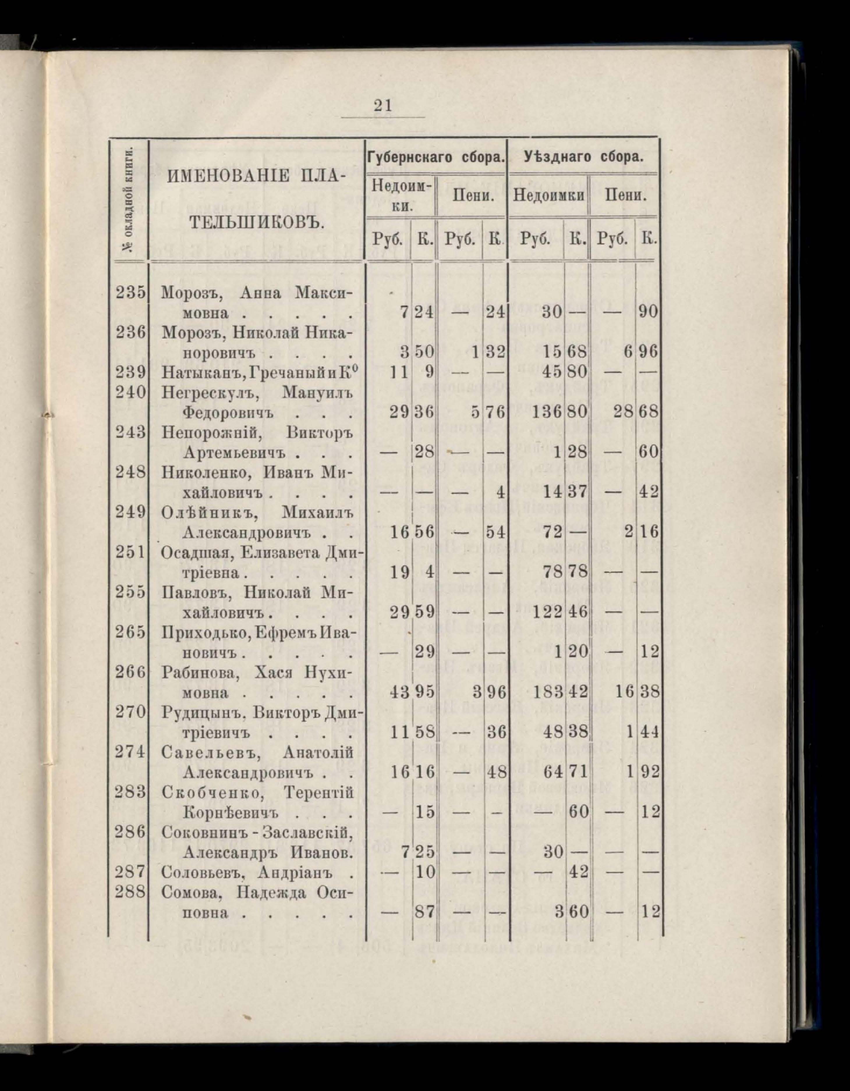 Въдомостъ о недоимкахъ и пеняхъ по губернскому и уъздному земскимъ сборамъ, уплаченныхъ въ первой половинъ 1891 года