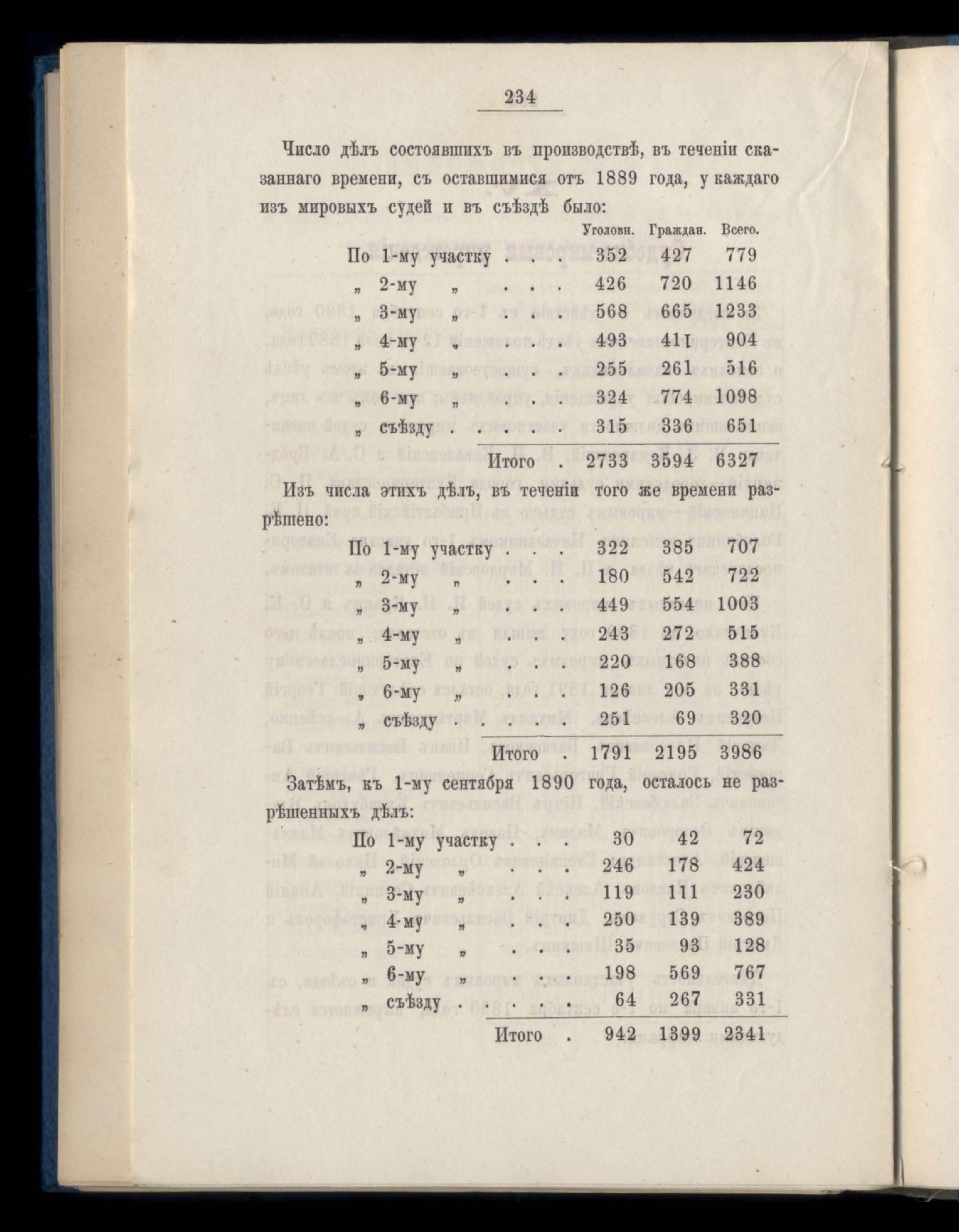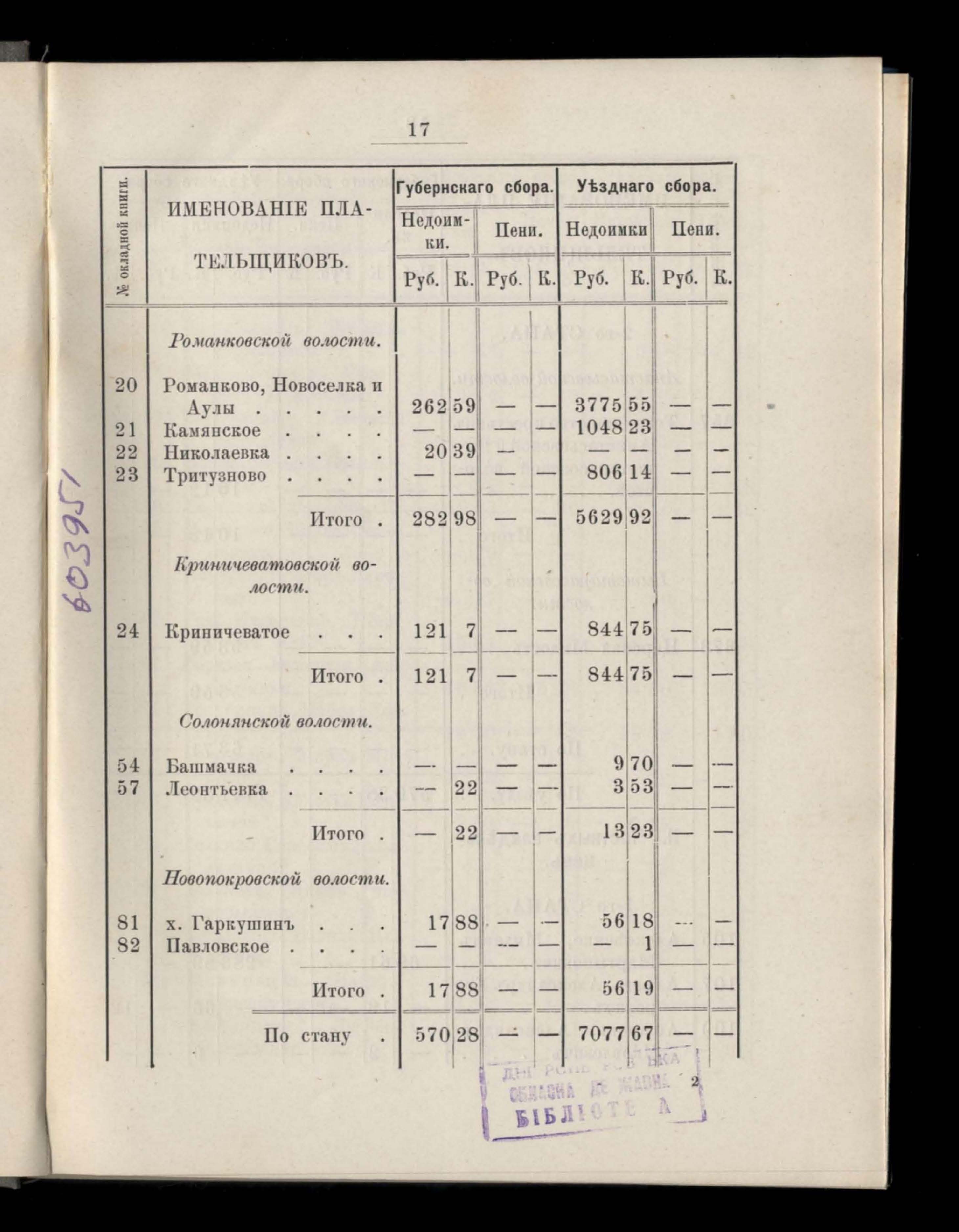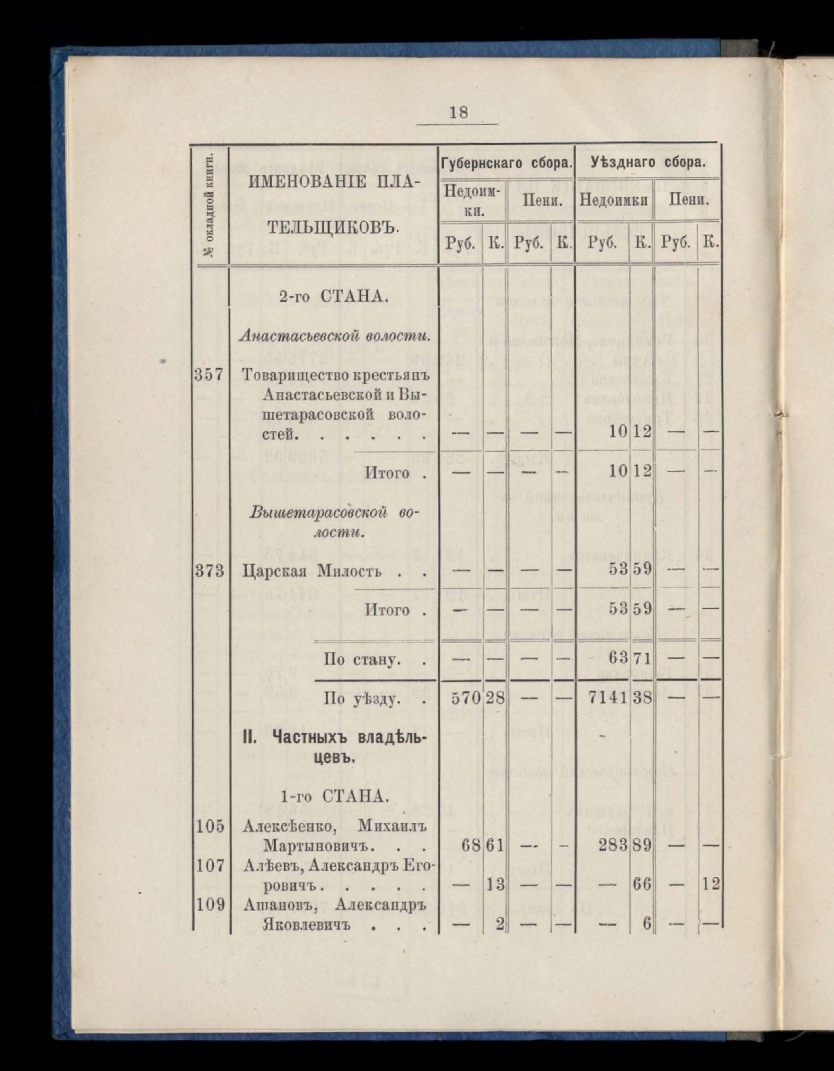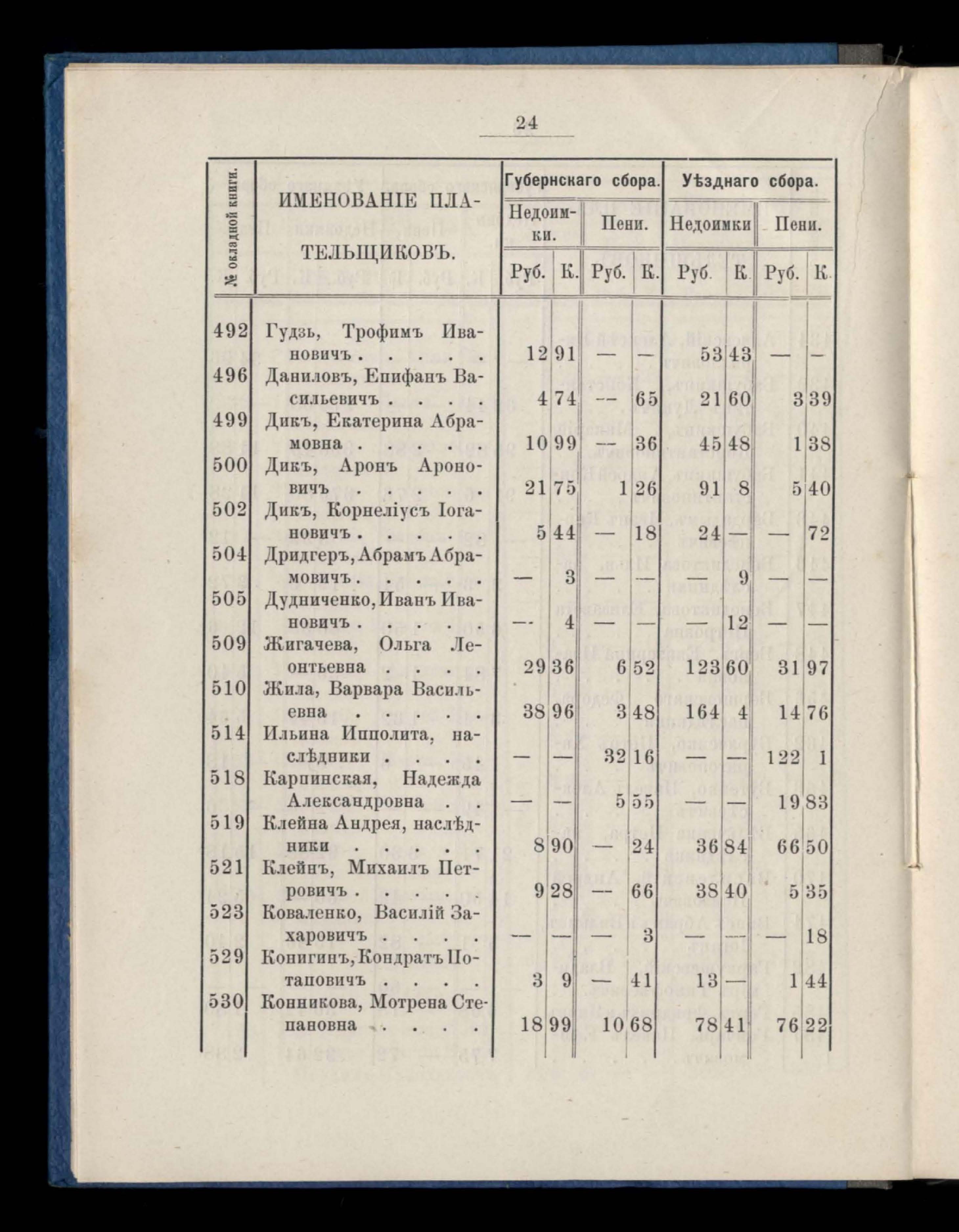 Въдомостъ о недоимкахъ и пеняхъ по губернскому и уъздному земскимъ сборамъ, уплаченныхъ въ первой половинъ 1891 года