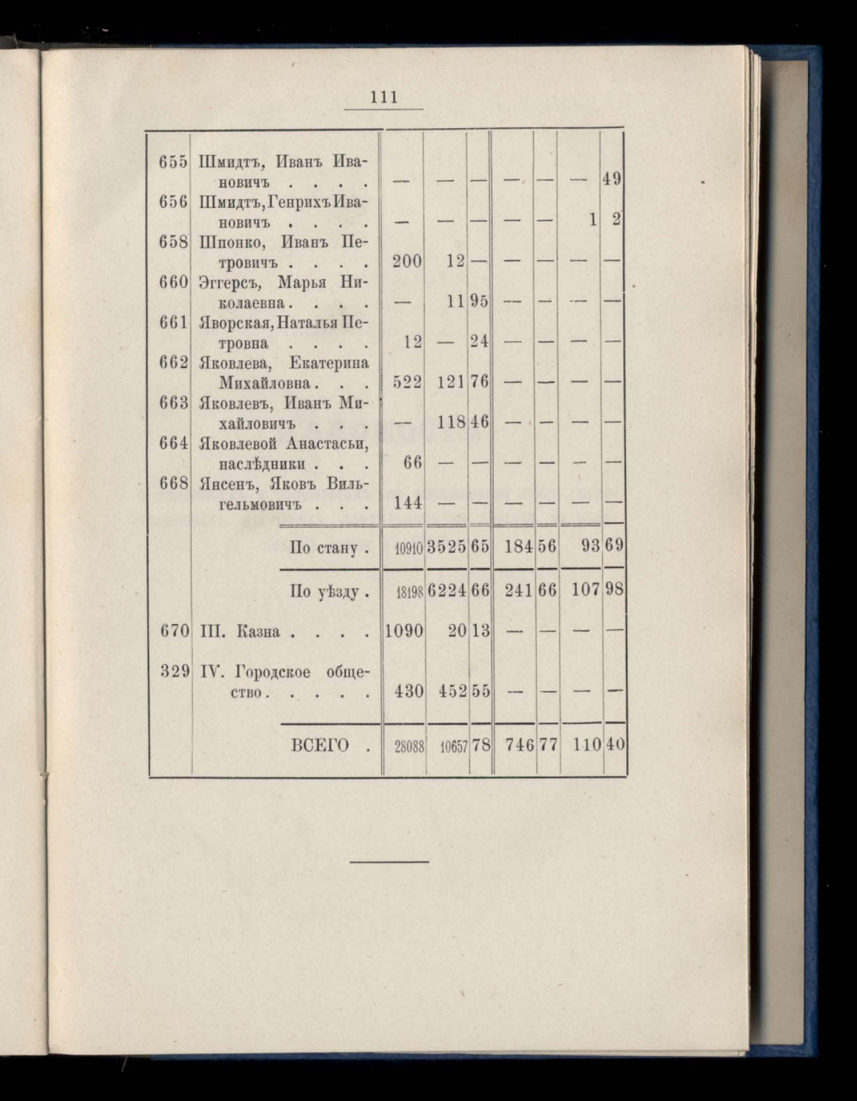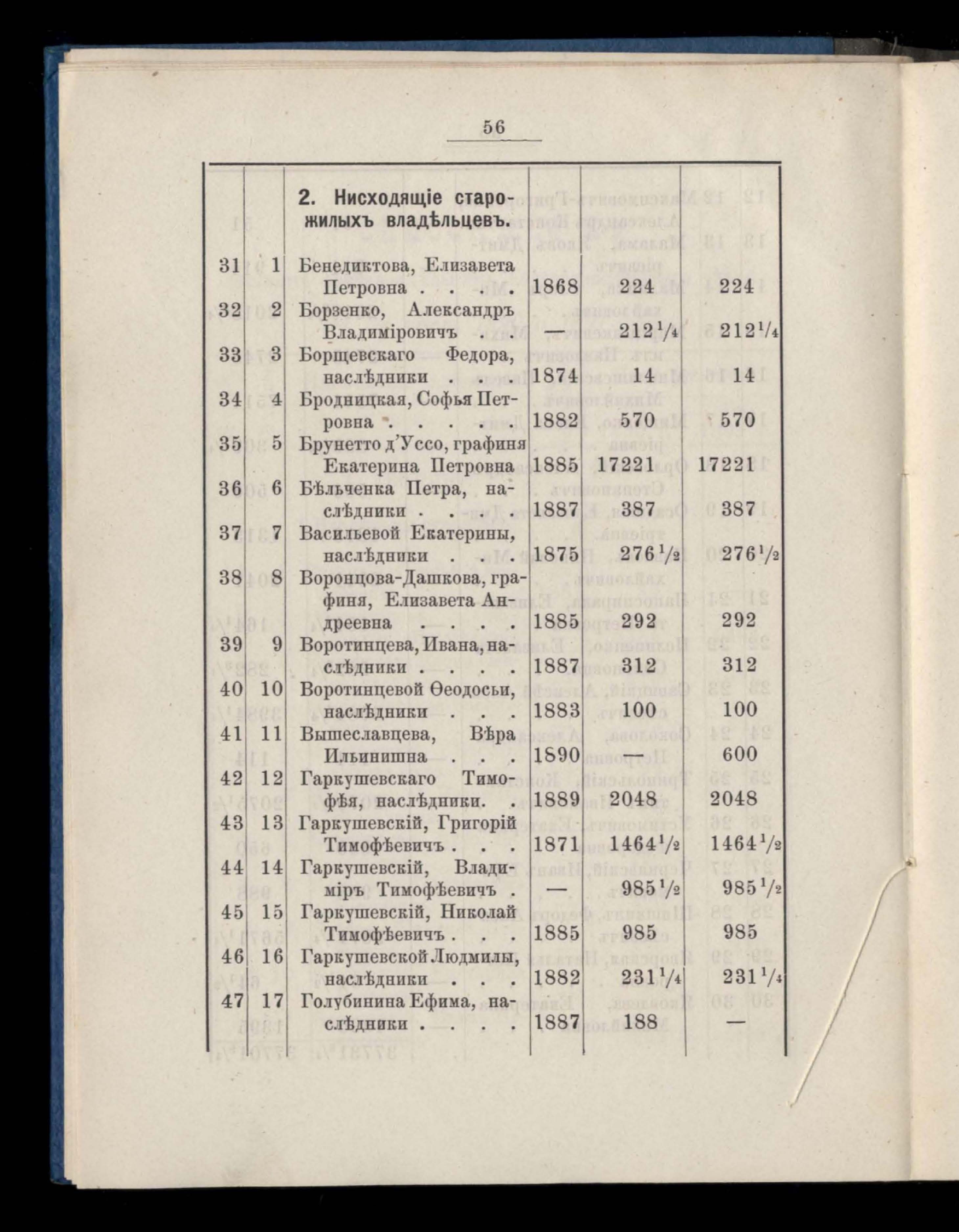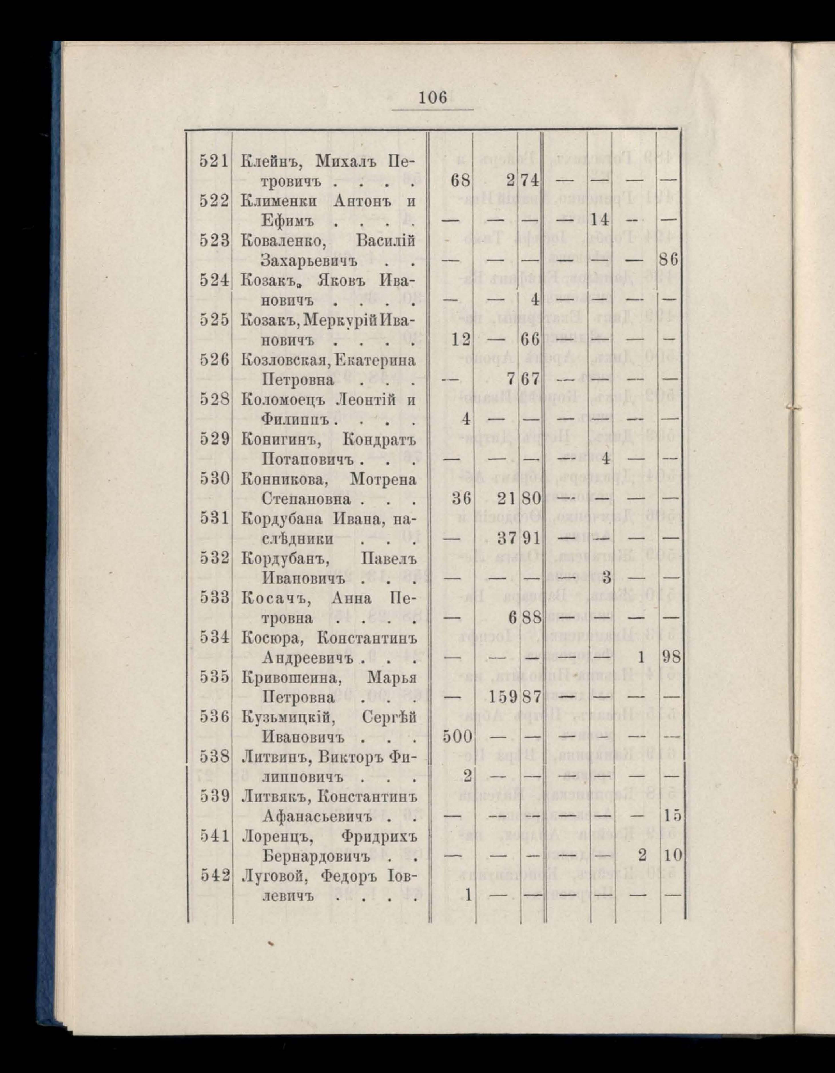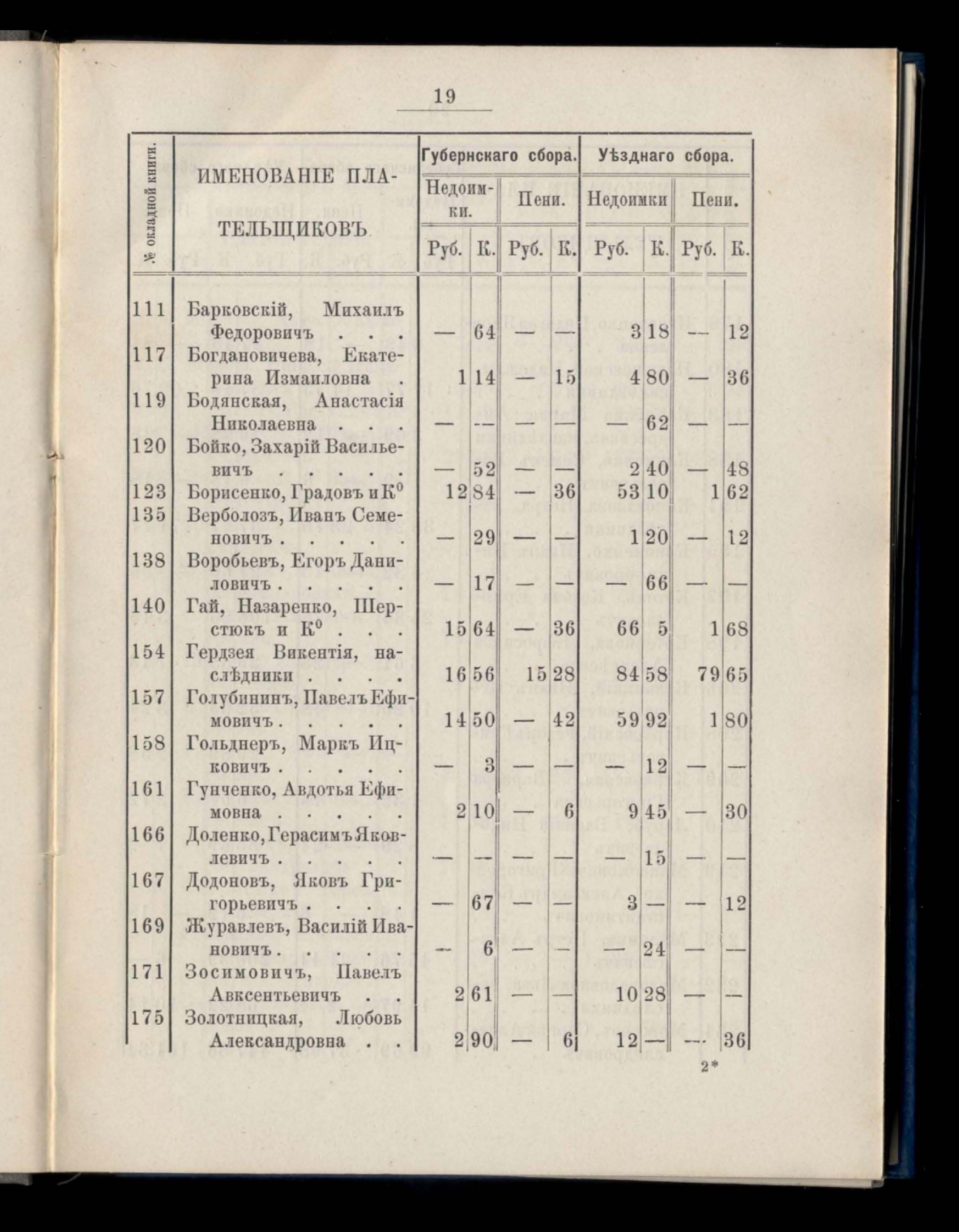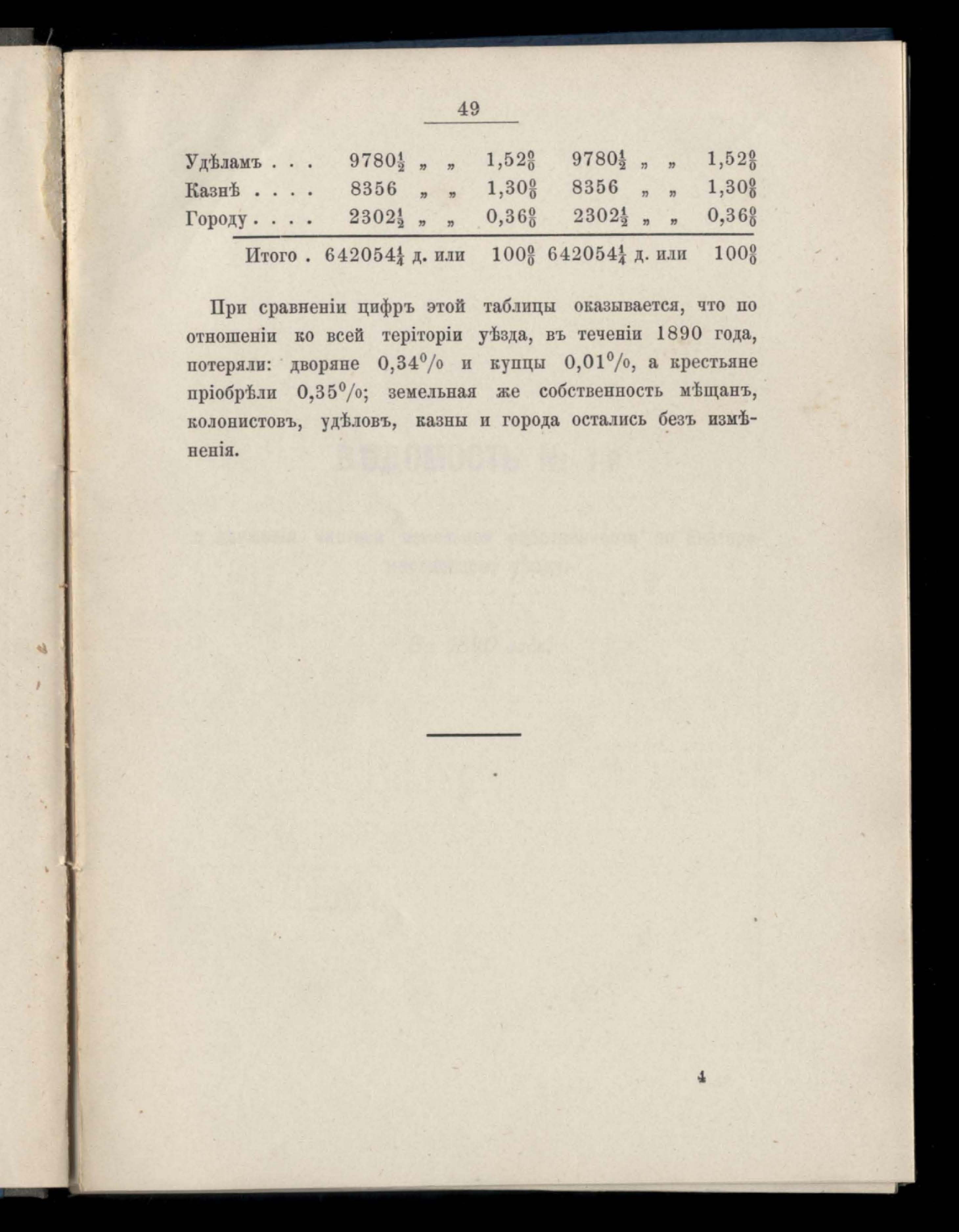 Въдомостъ о недоимкахъ и пеняхъ губернскаго и уъзднаго земскихъ сборовъ, перечисленныхъ съ однихъ владъльцевъ на другихъ за переходомъ земель. Въ теченіи 1890 года