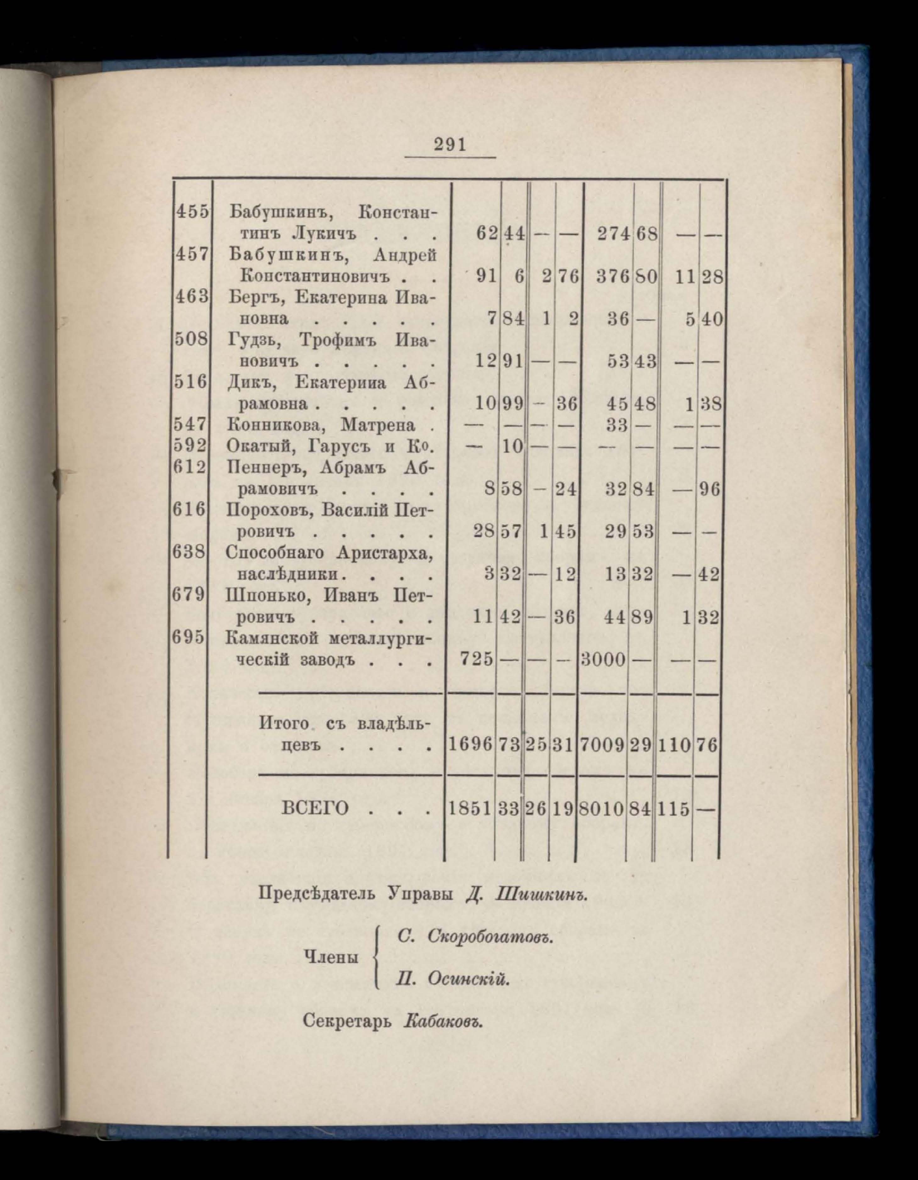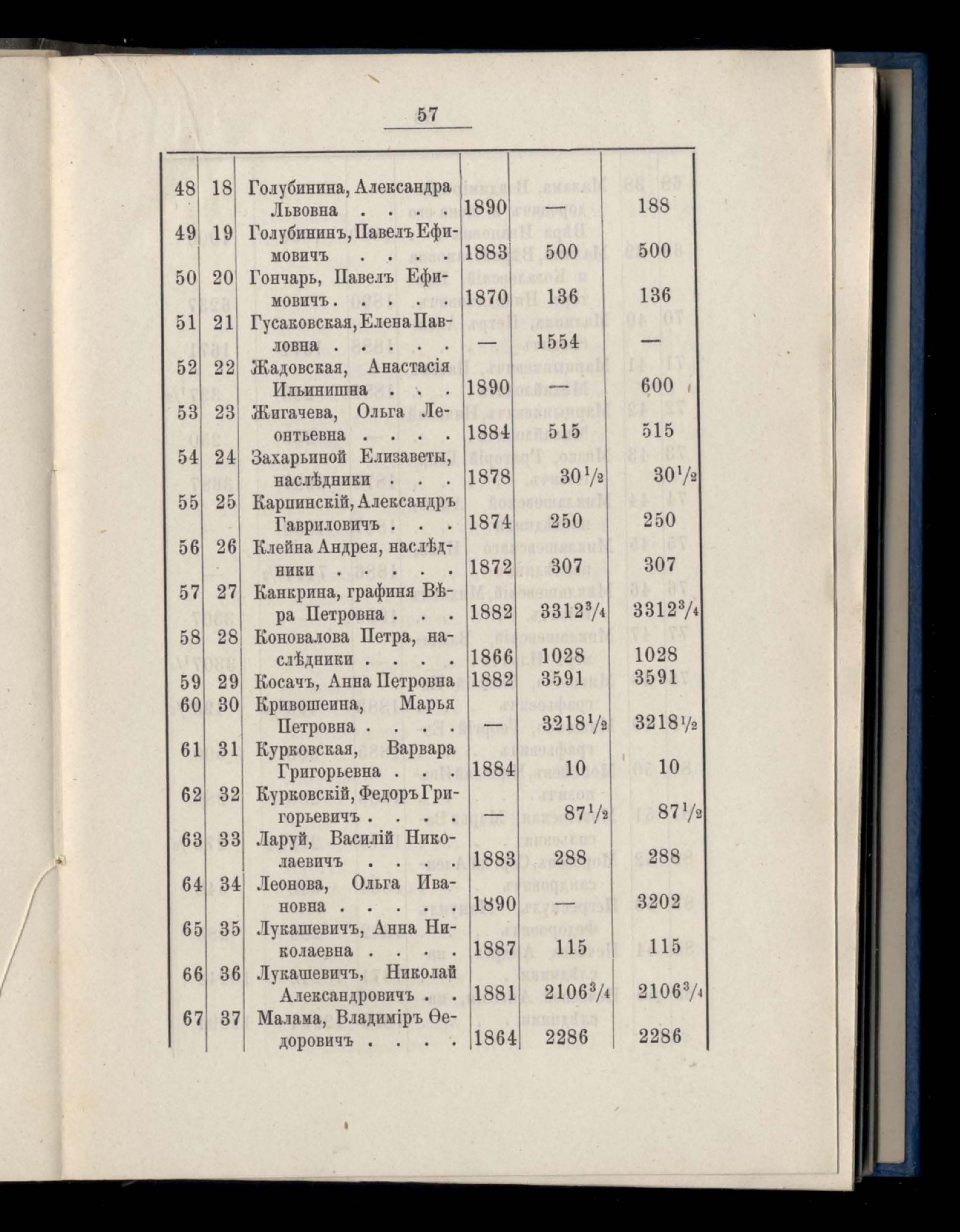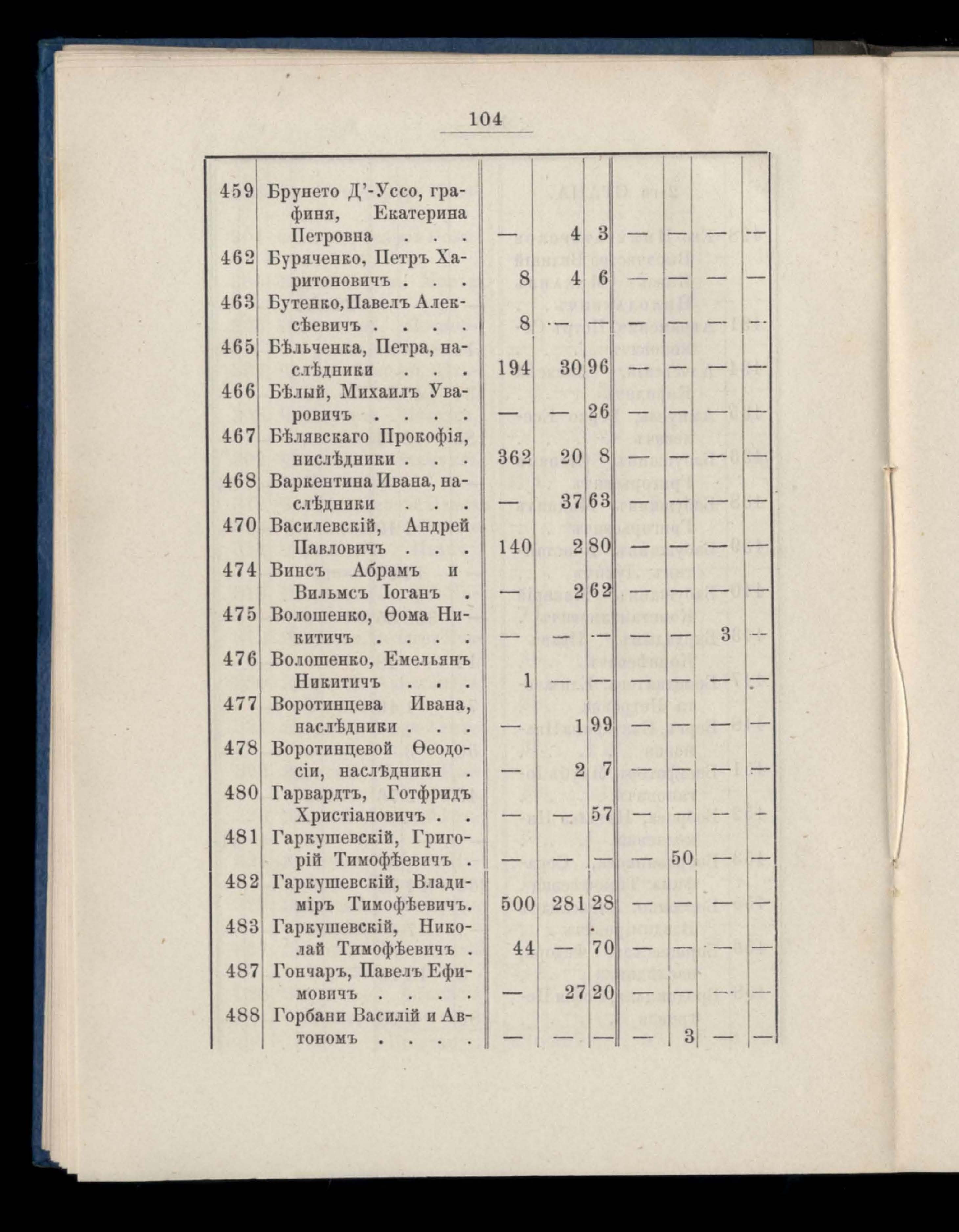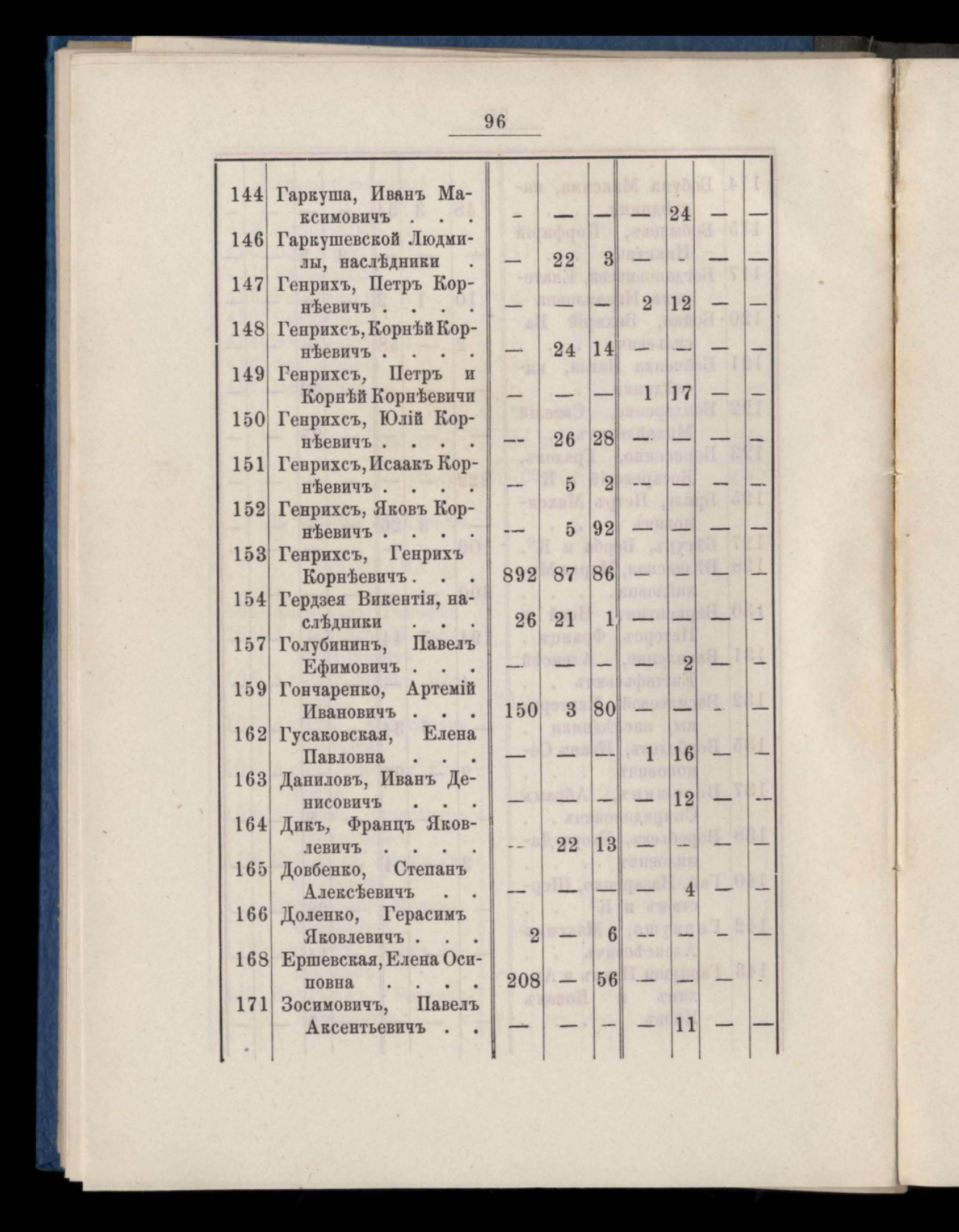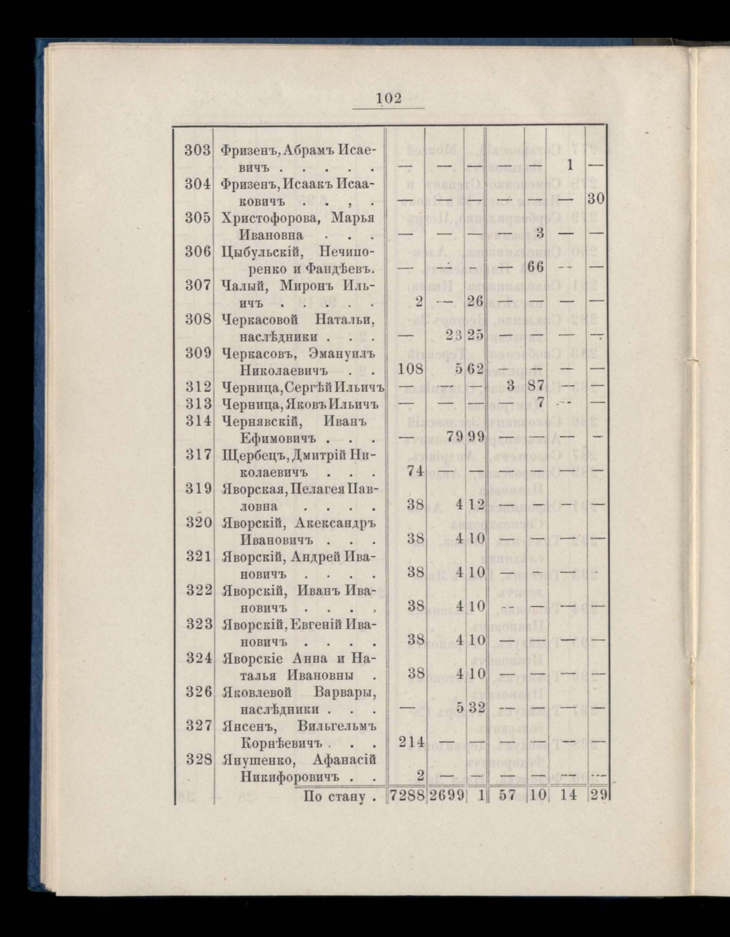 Въдомостъ о недоимкахъ и пеняхъ губернскаго и уъзднаго земскихъ сборовъ, перечисленныхъ съ однихъ владъльцевъ на другихъ за переходомъ земель. Въ теченіи 1890 года