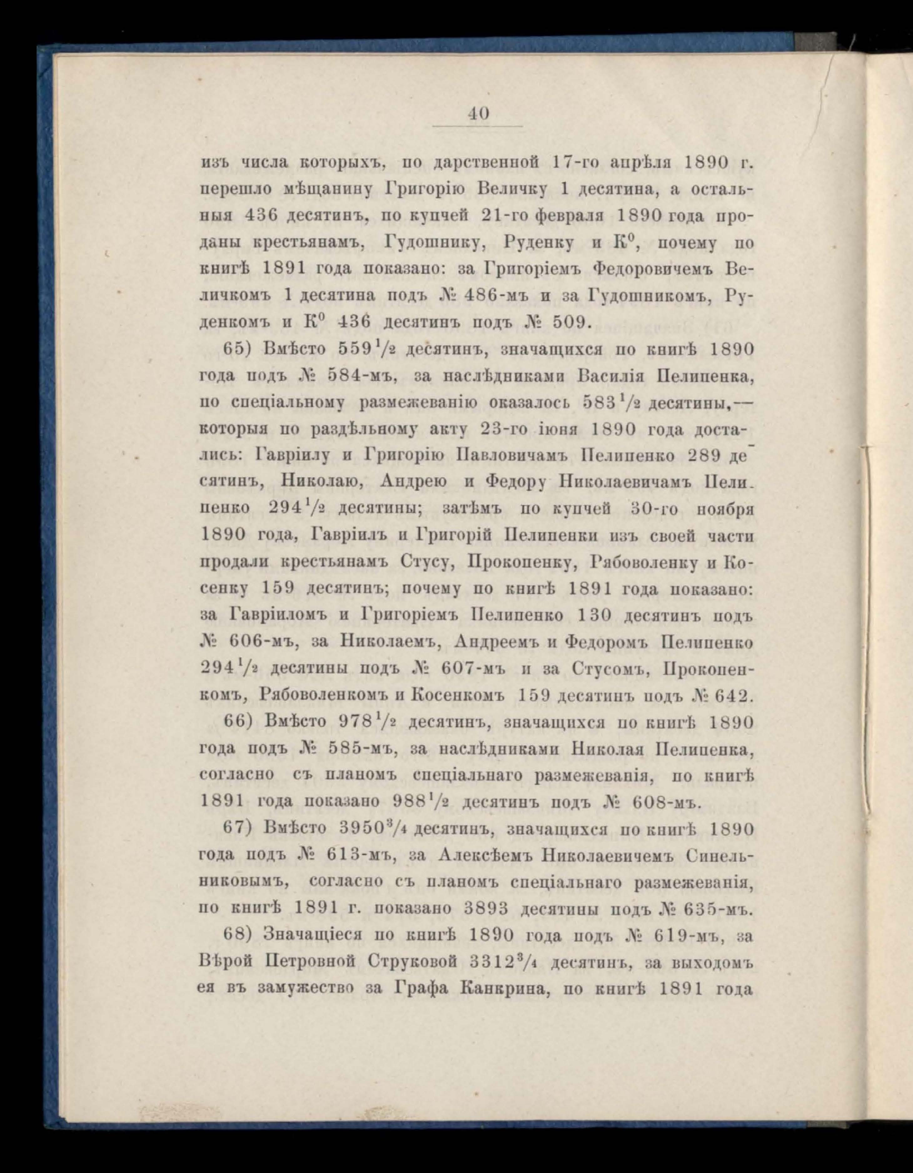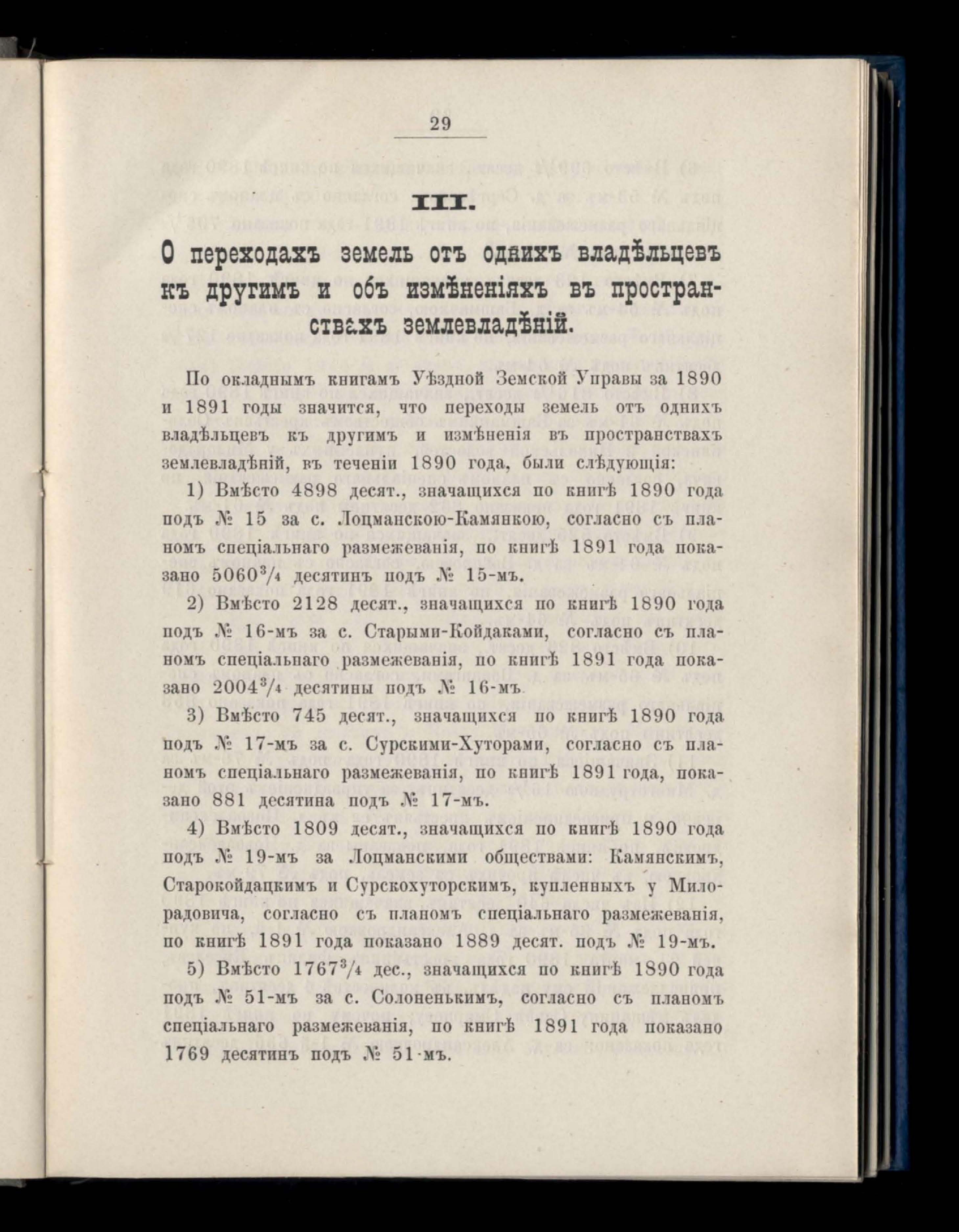О переходахъ земель отъ однихъ владельцевъ къ другимъ и объ измъненіяхъ въ пространствахъ землевладъній