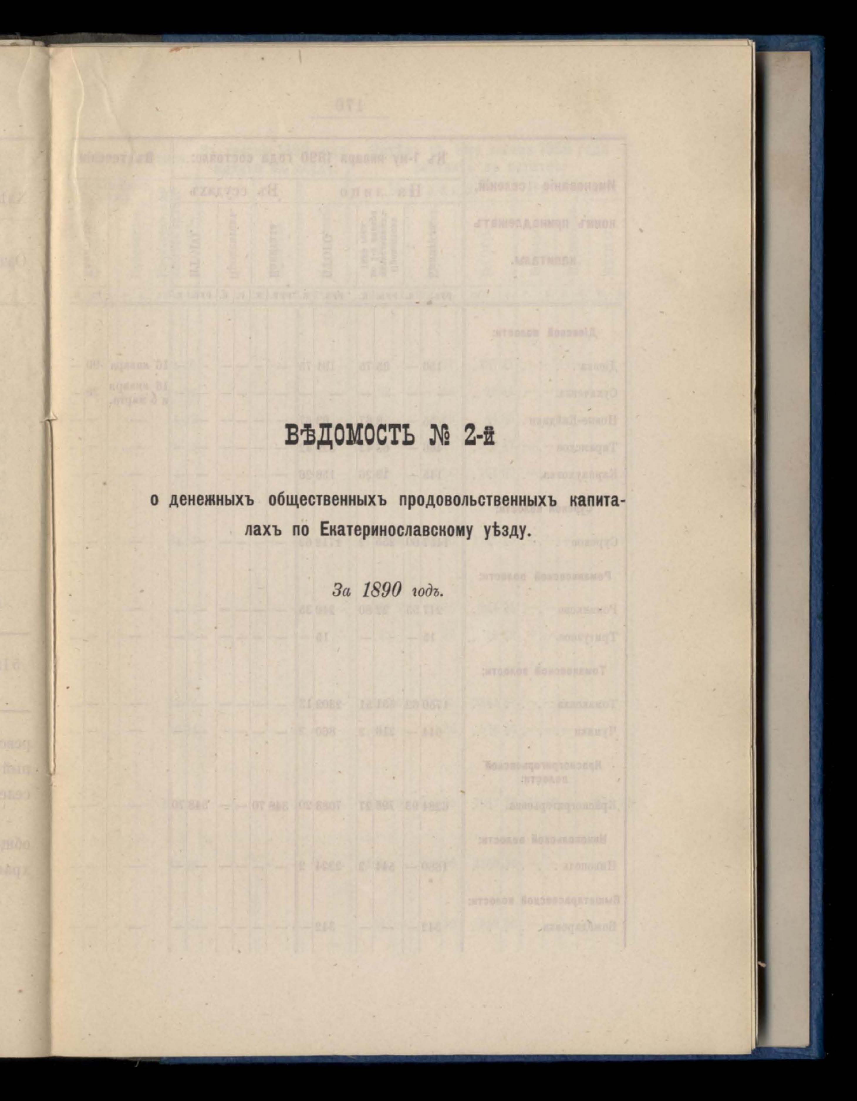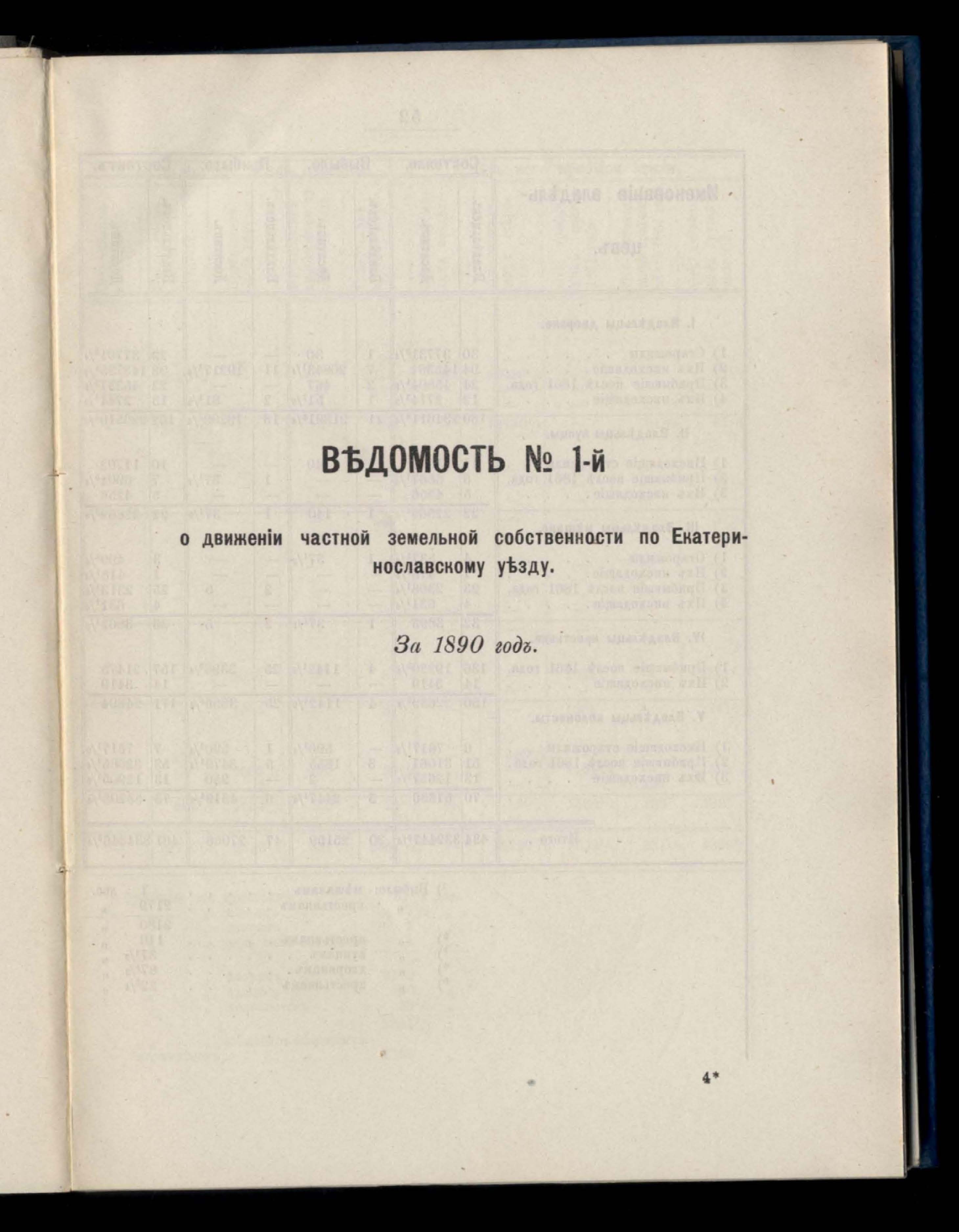 Въдомостъ № 1-й о движеніи частной земельной собственности по Екатеринославскому уъзду за 1890 годъ