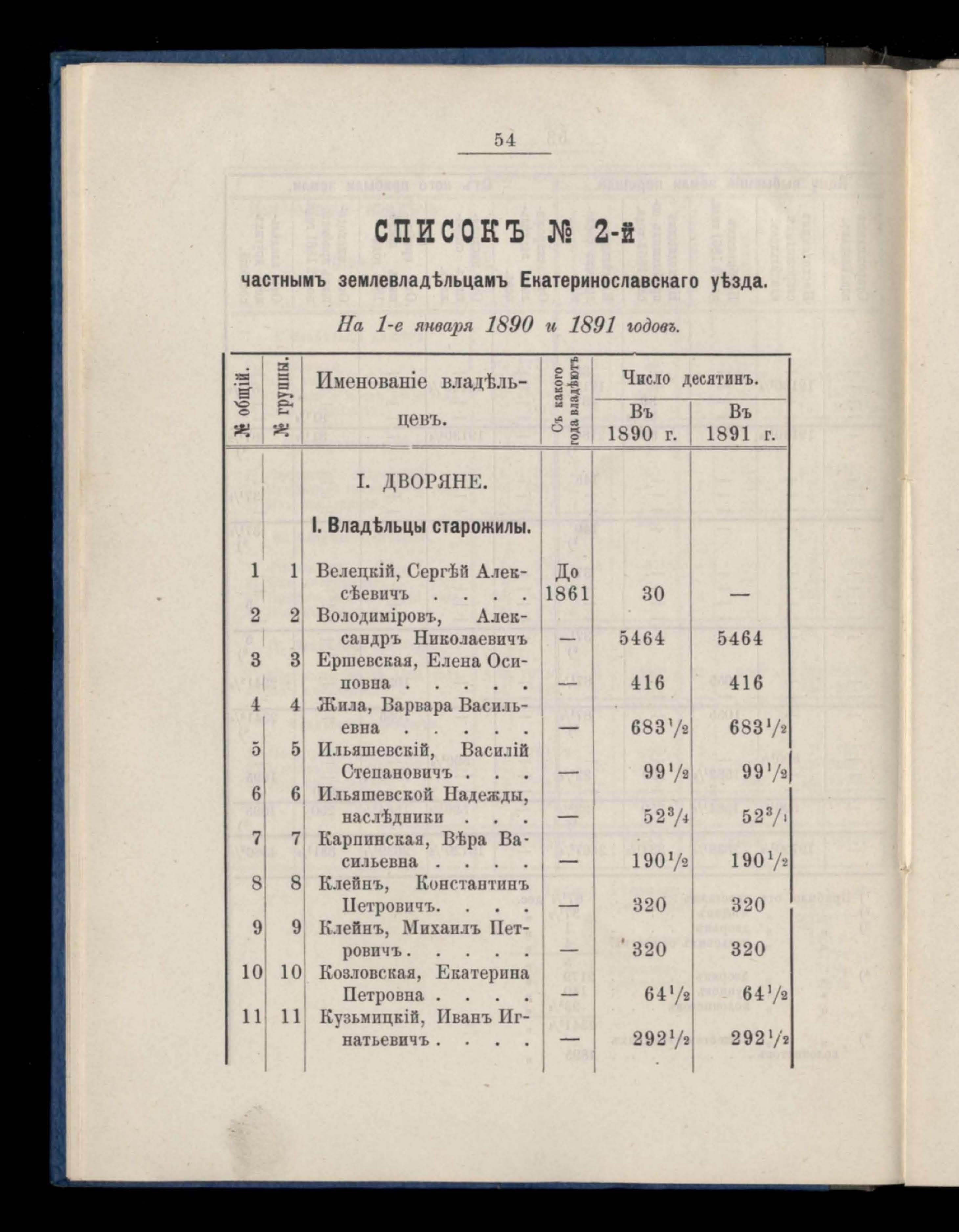 Списокъ № 2-й частнымъ землевладъльцамъ Екатеринославскаго уъзда. На 1-е января 1890 и 1891 годовъ