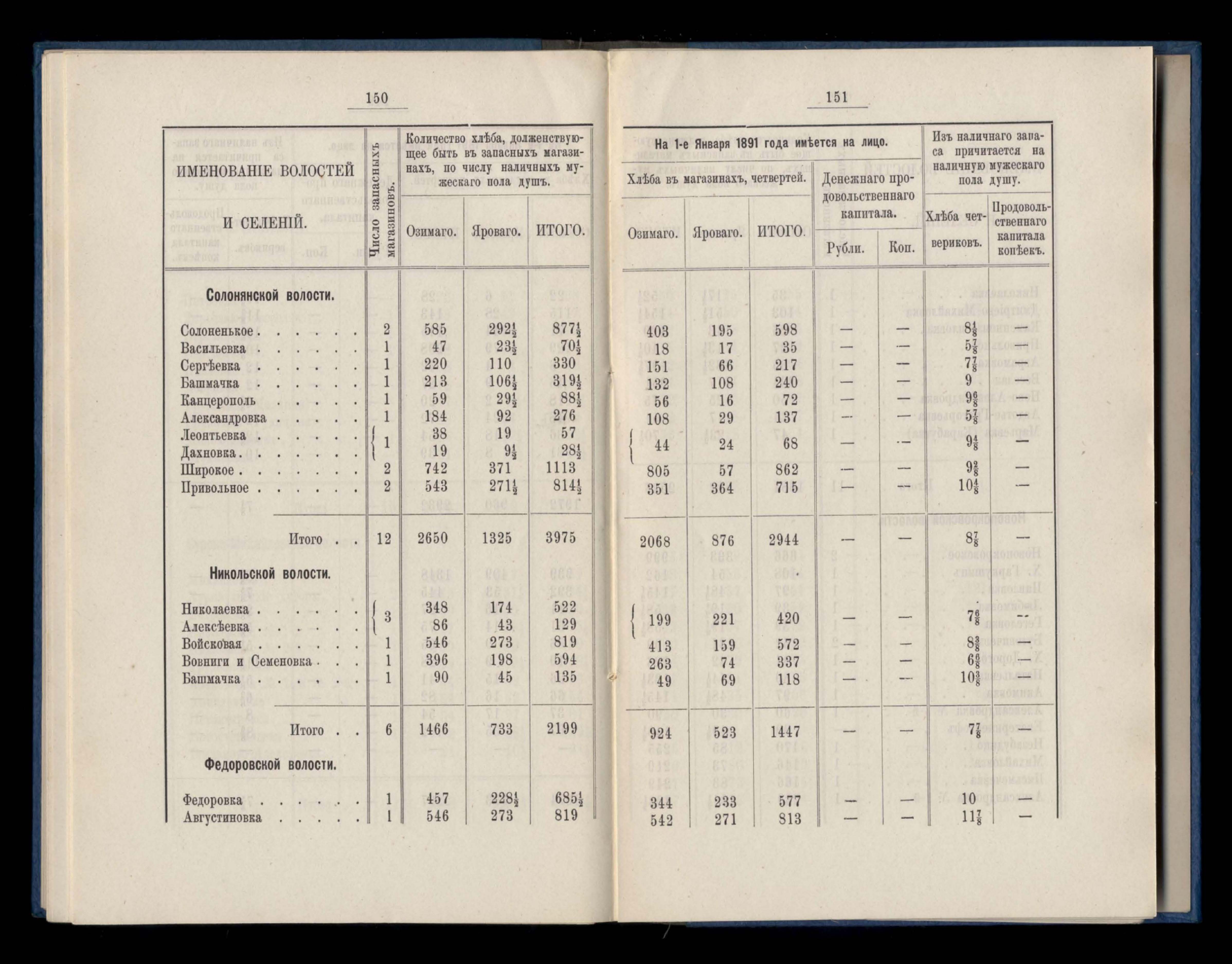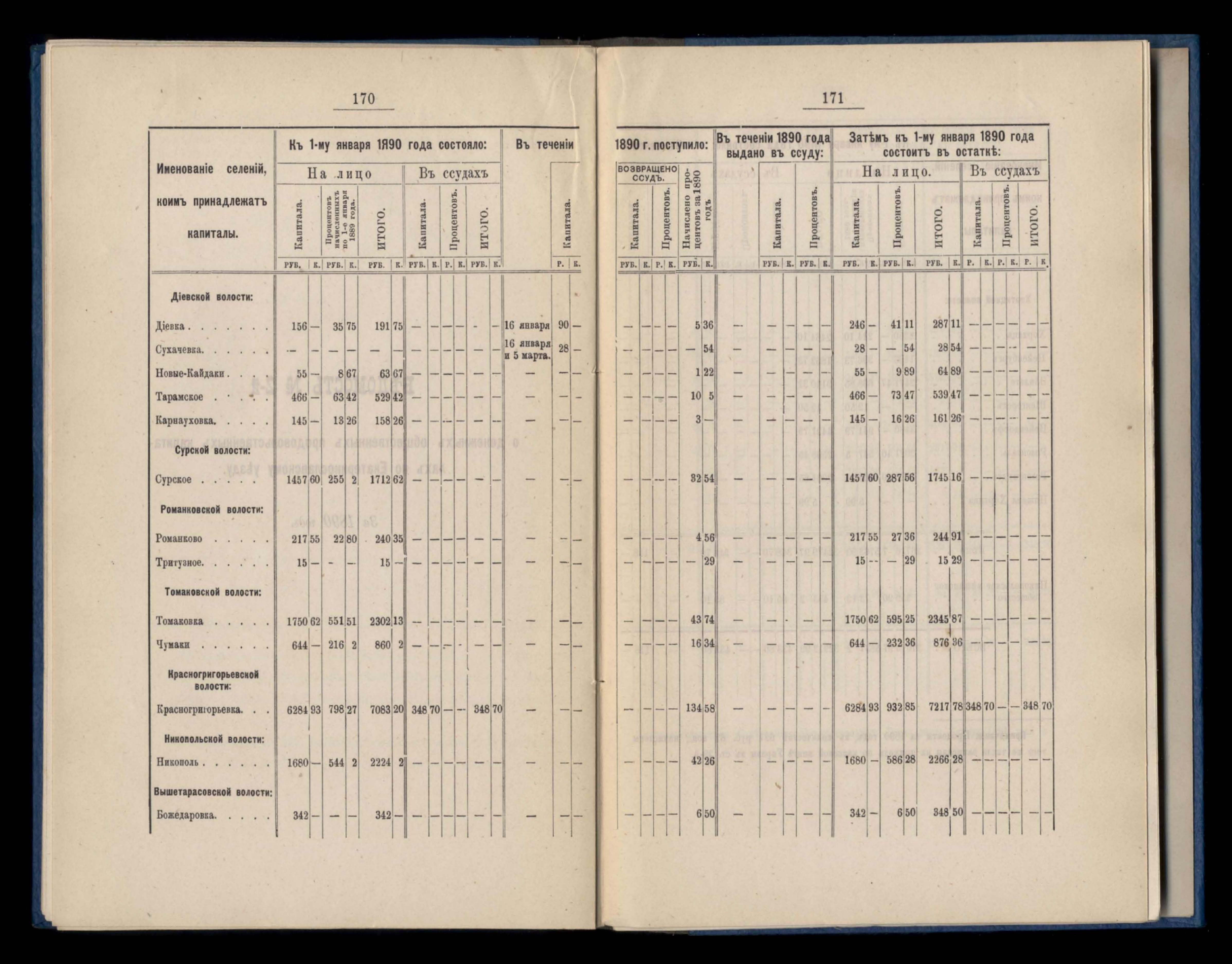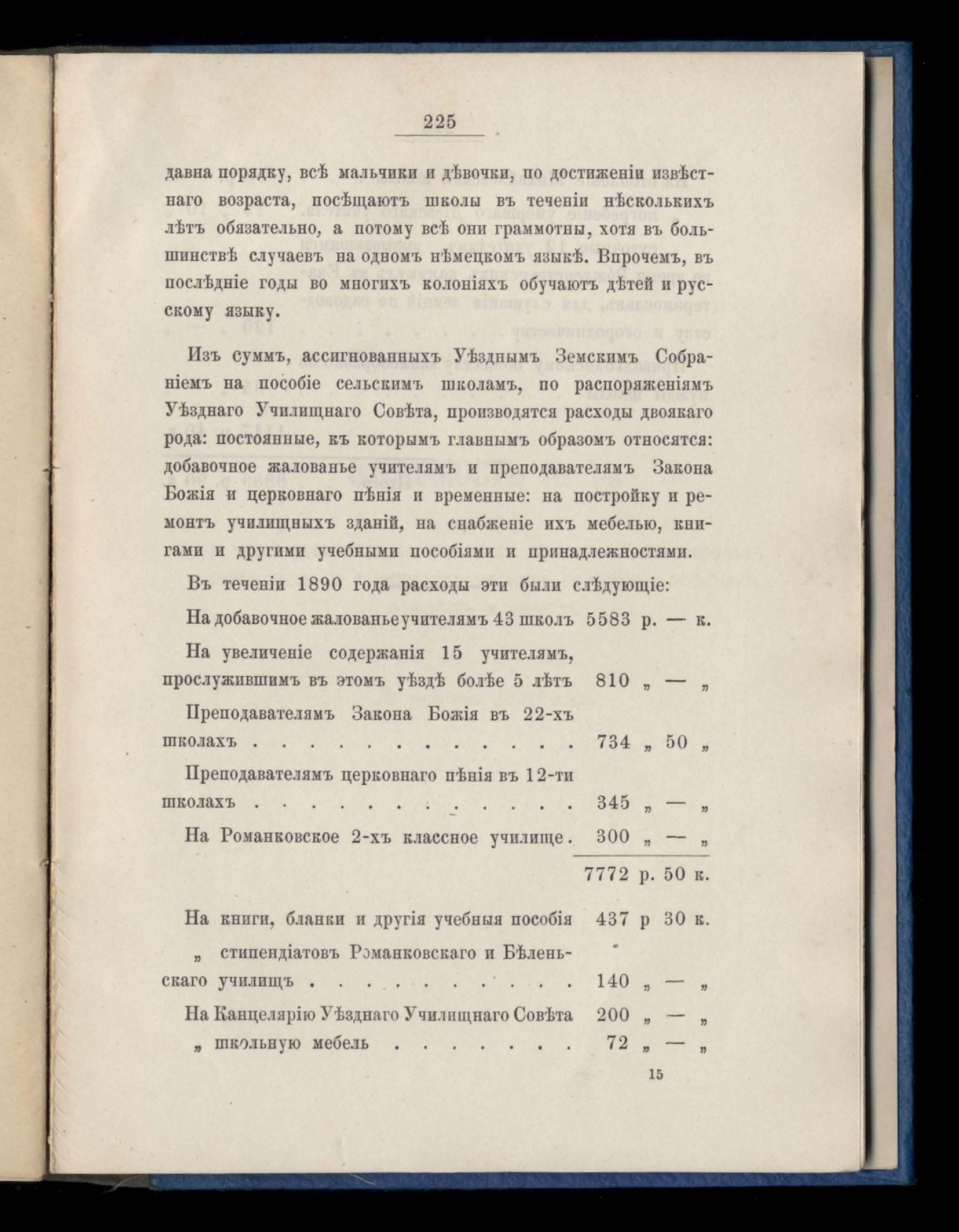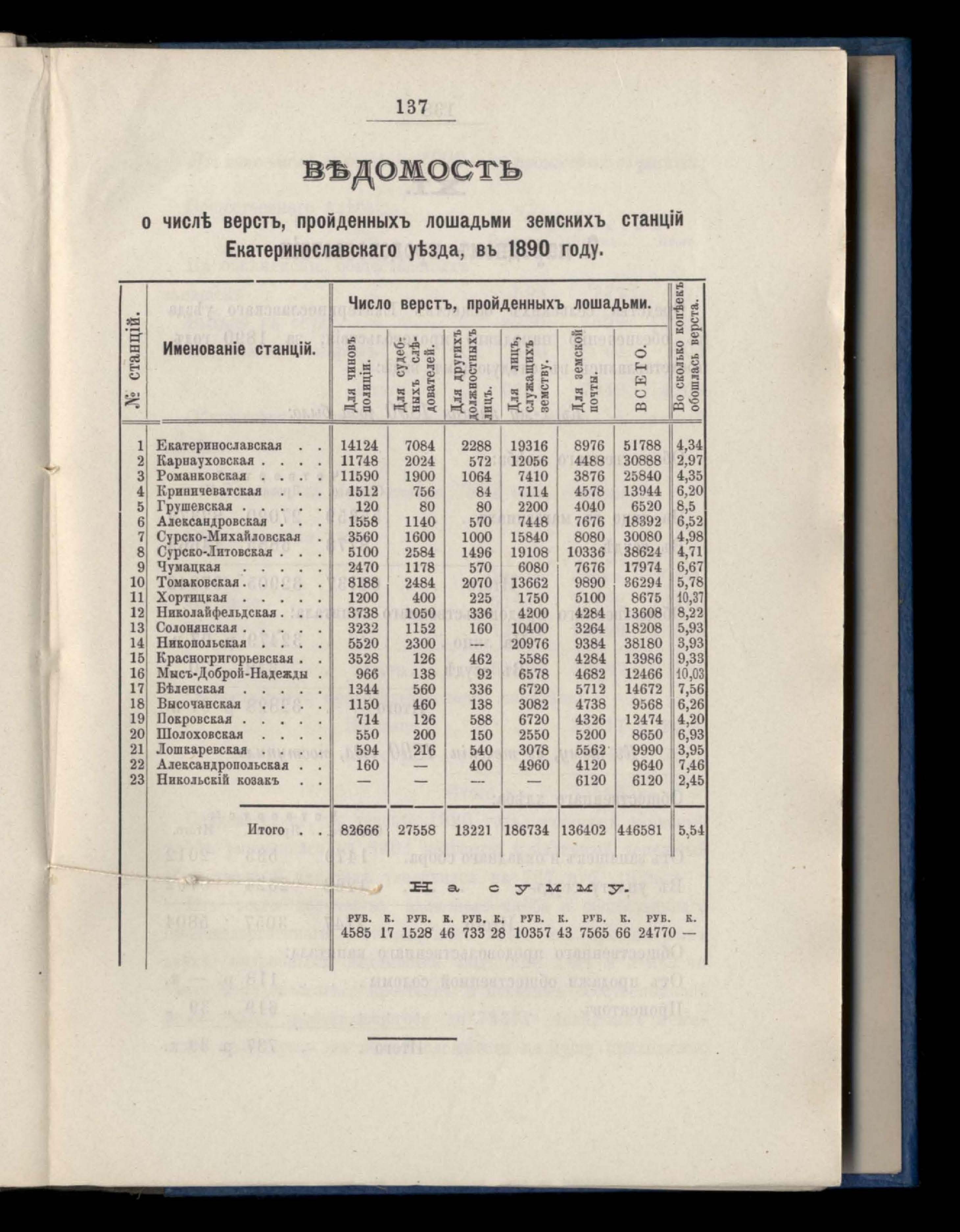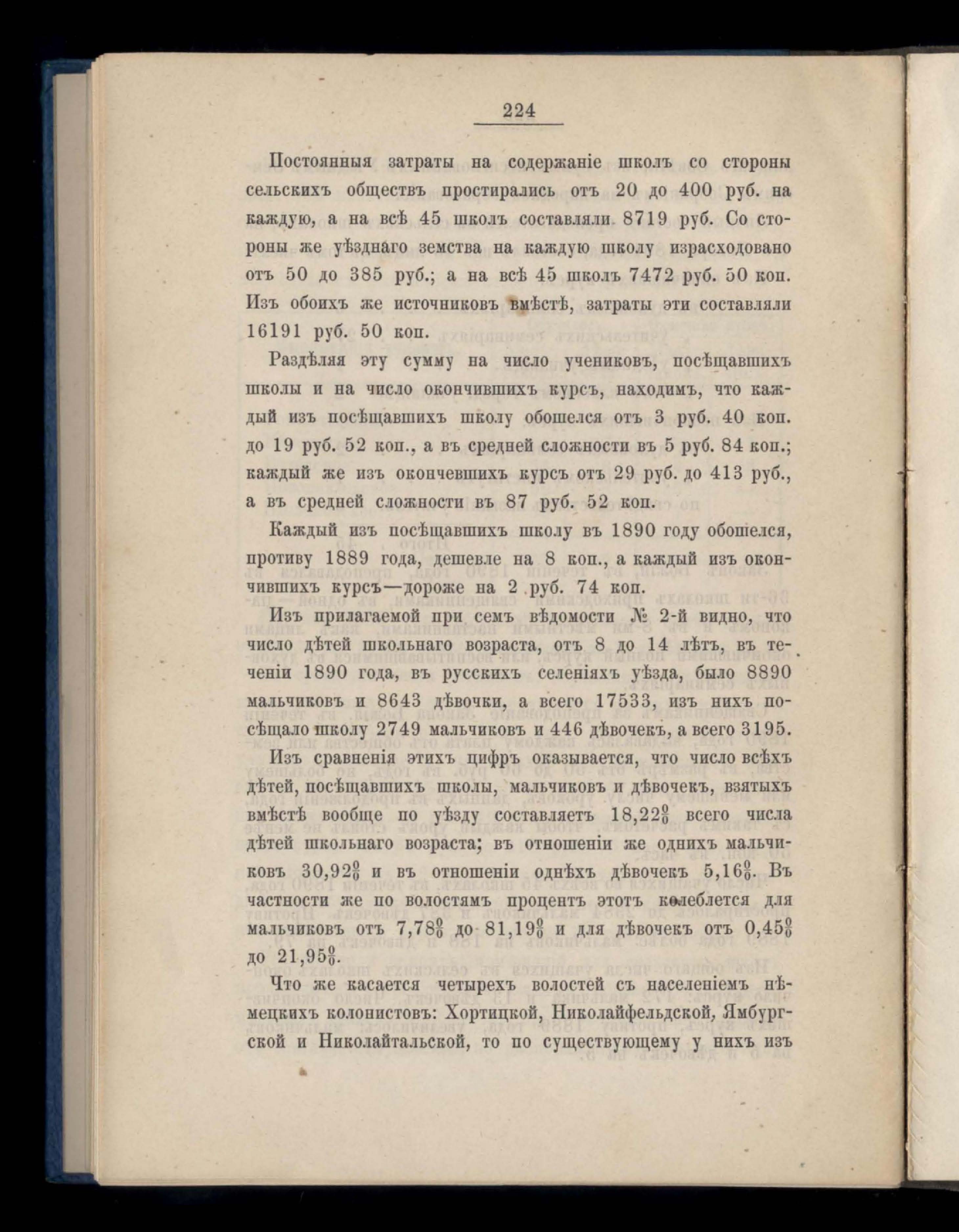 Въдомостъ № 1-й о числъ учащихся въ сельскихъ школахъ Екатеринославскаго уъзда и о затратахъ на нихъ со стороны сельскихъ обществъ и земства въ теченіи 1890 года