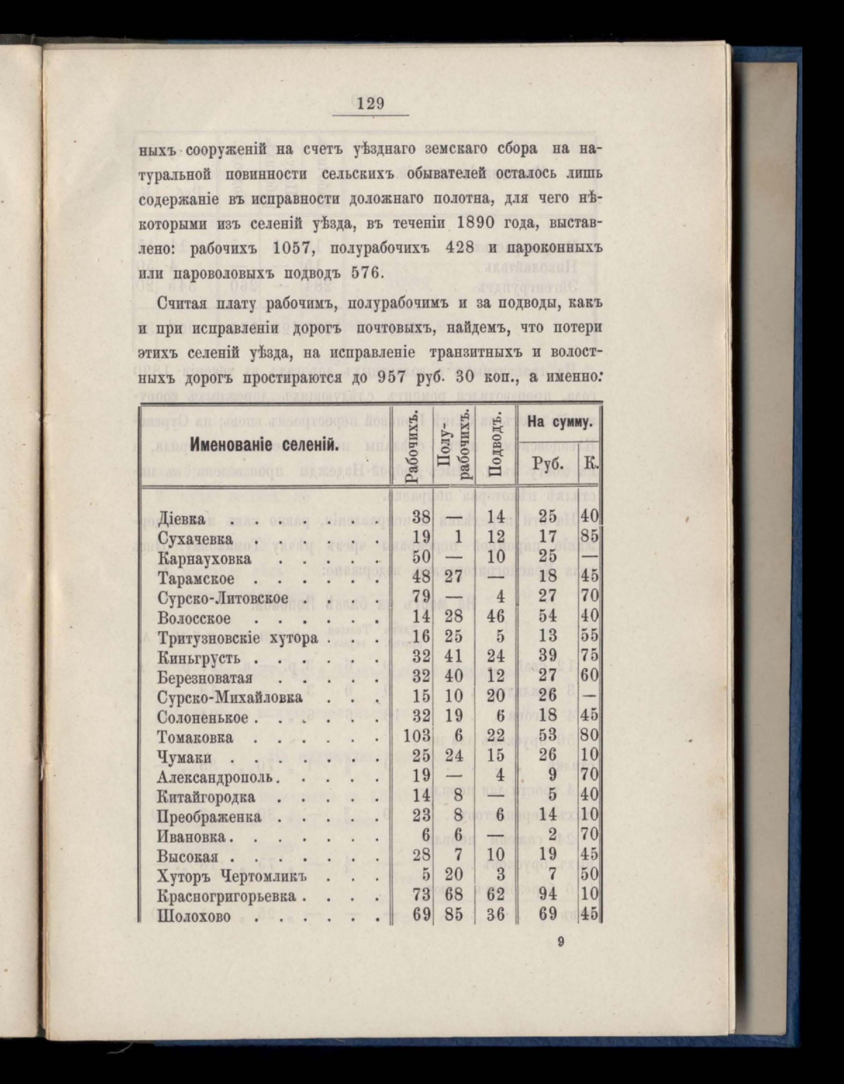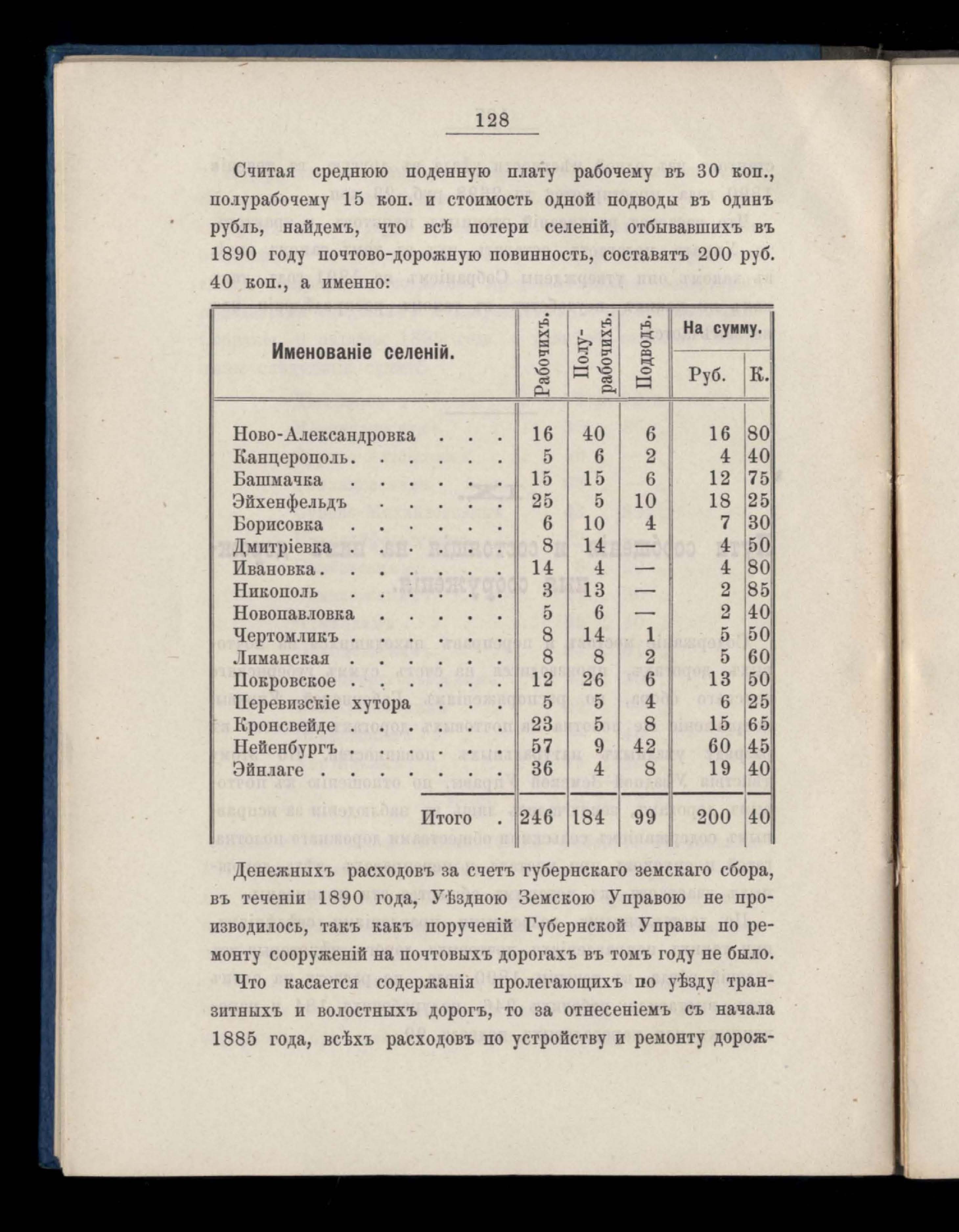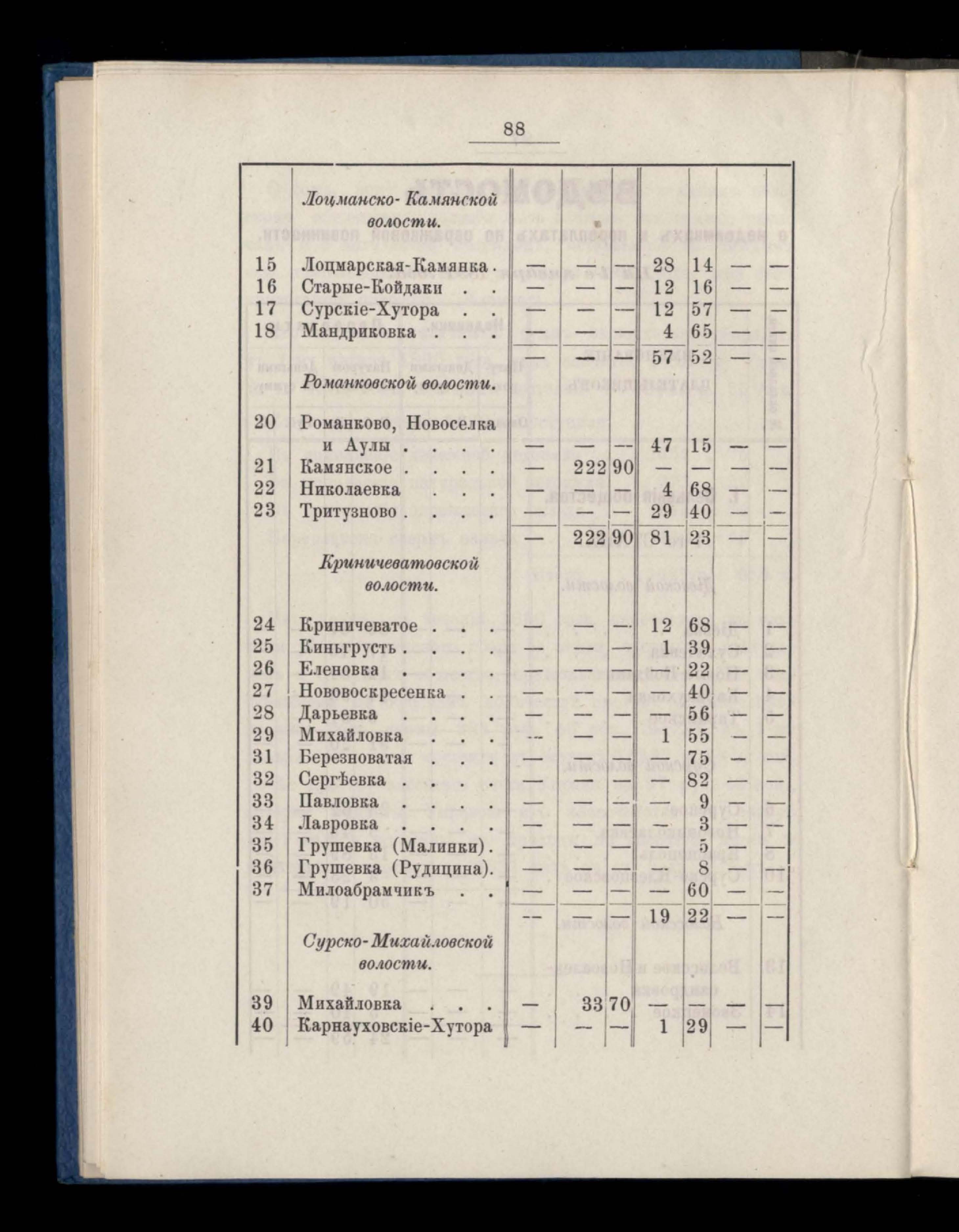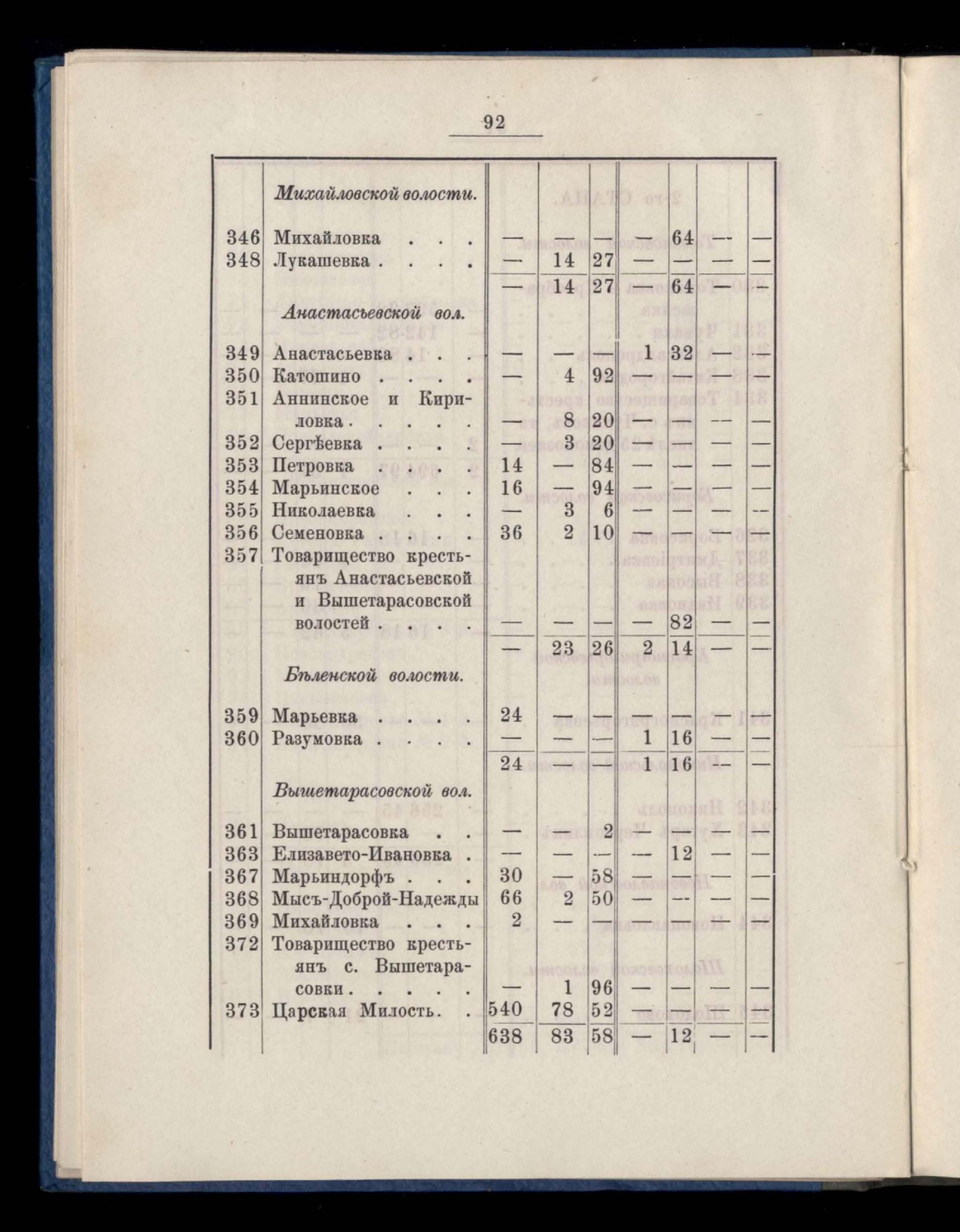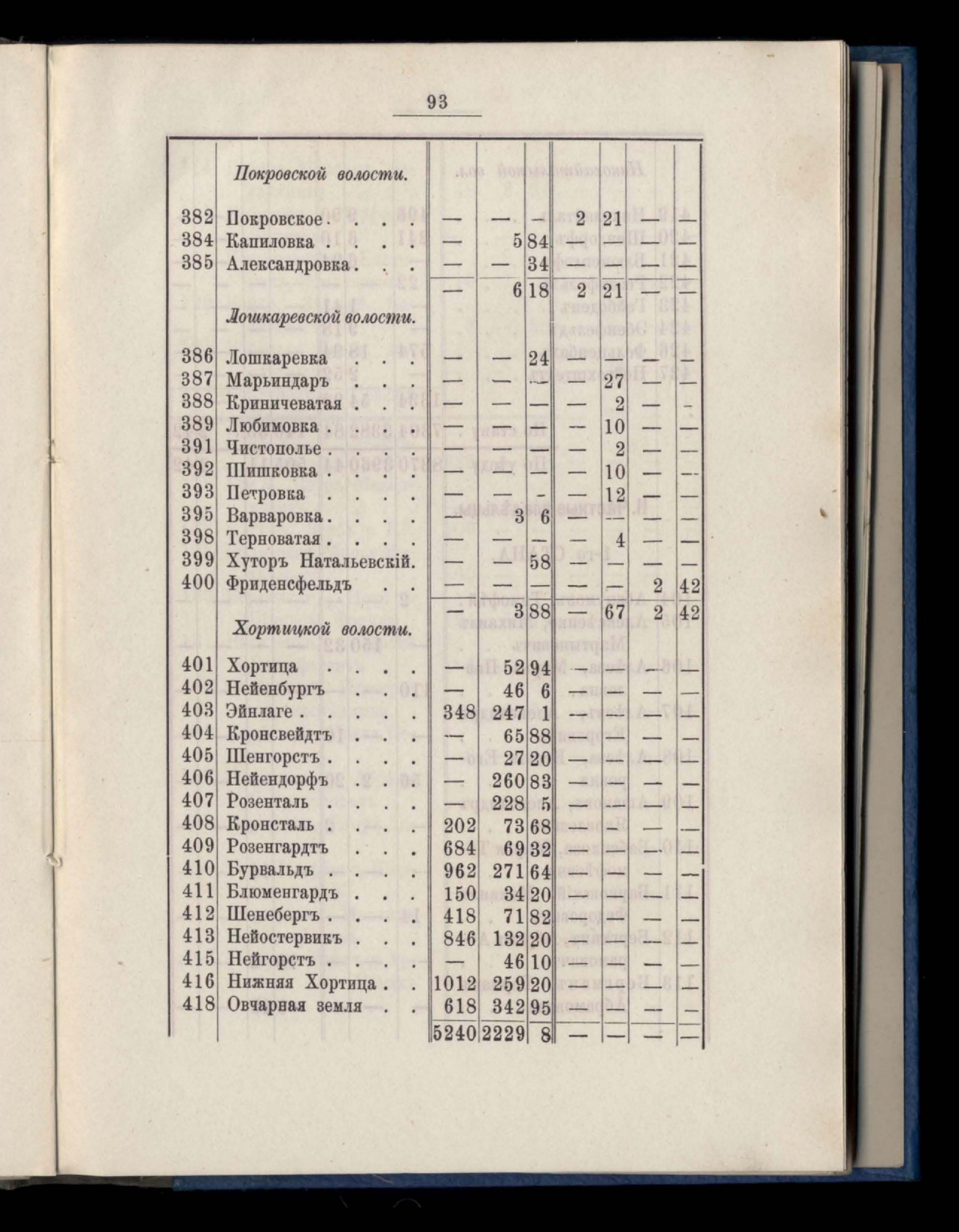 Въдомостъ № 1-й о числъ учащихся въ сельскихъ школахъ Екатеринославскаго уъзда и о затратахъ на нихъ со стороны сельскихъ обществъ и земства въ теченіи 1890 года