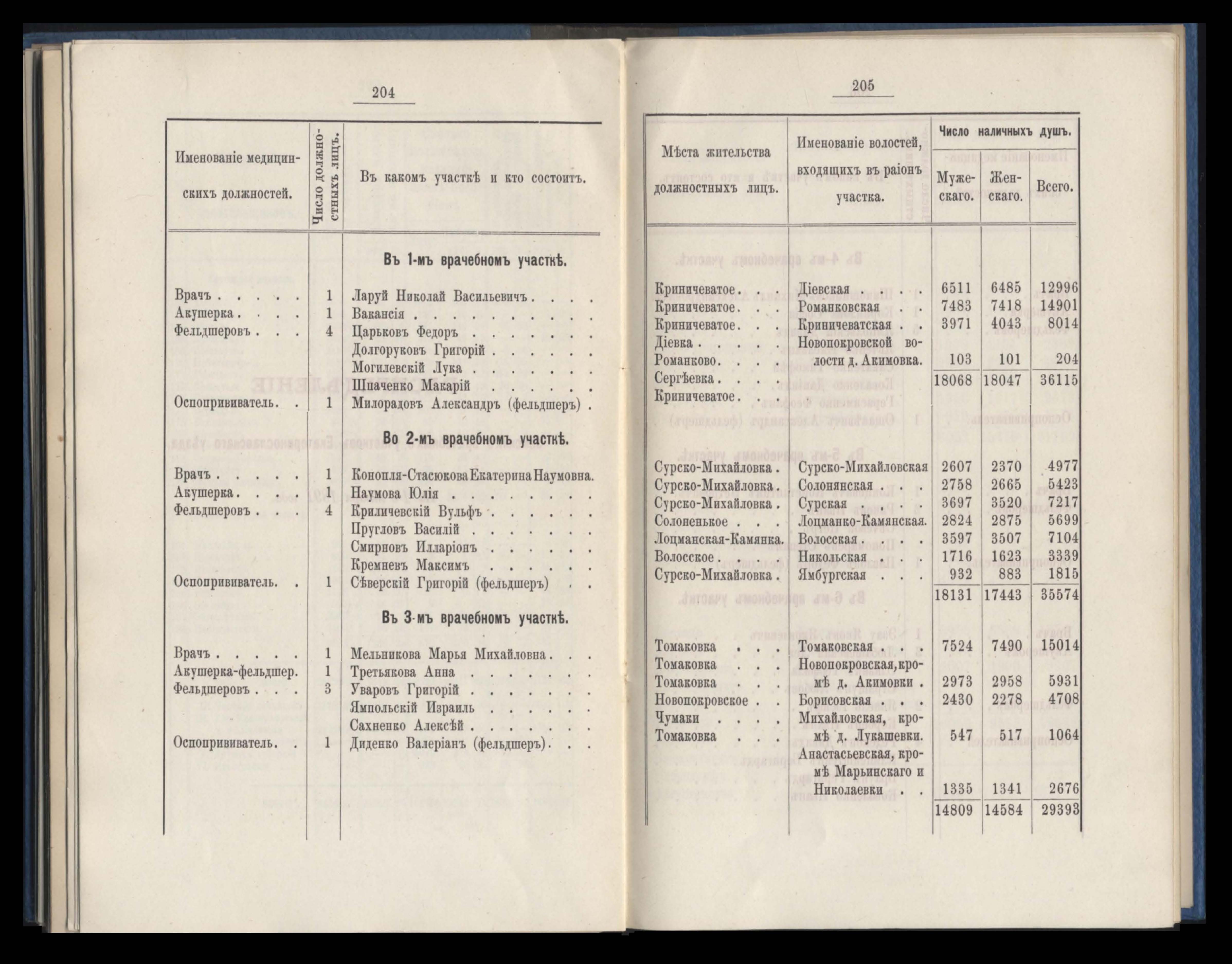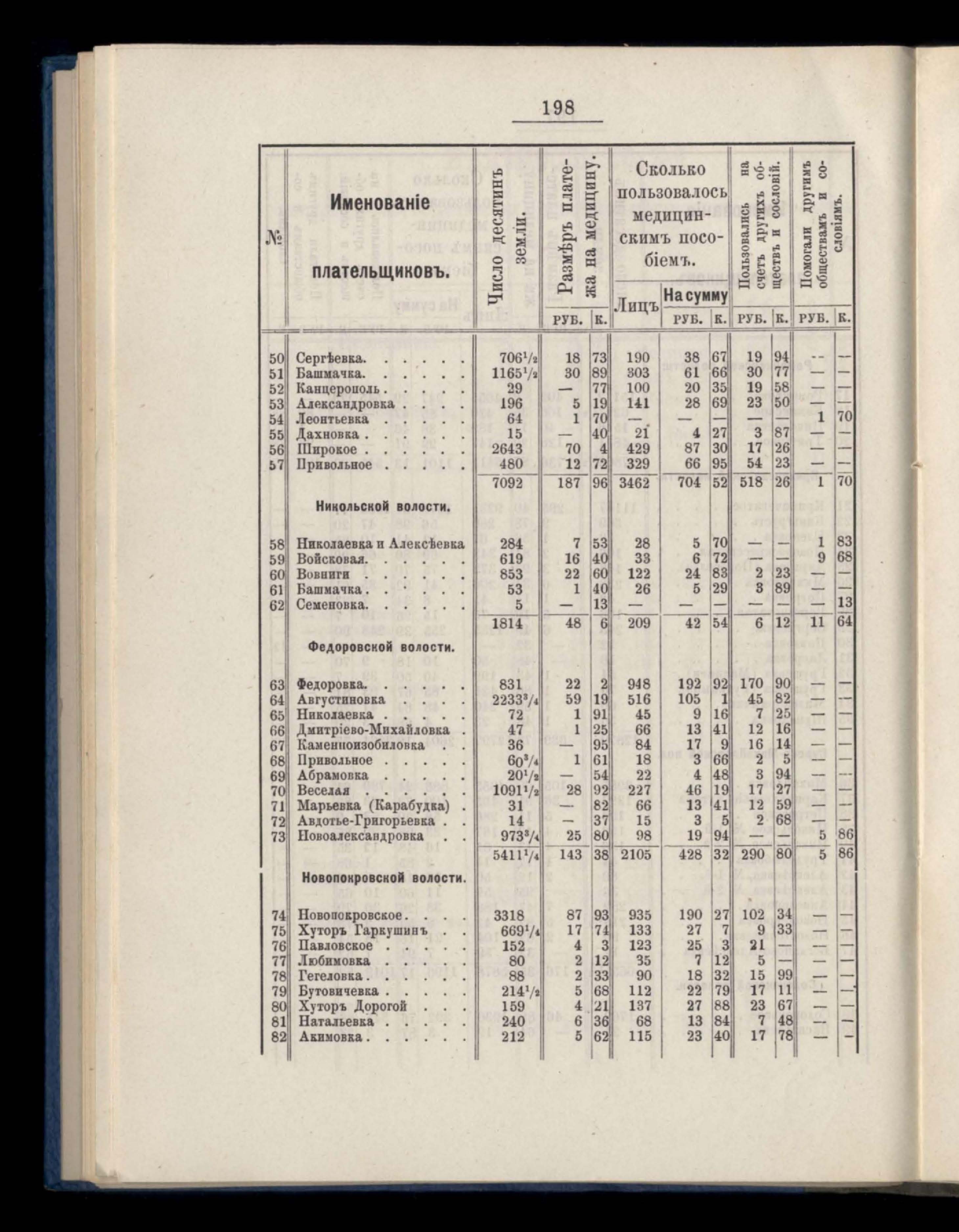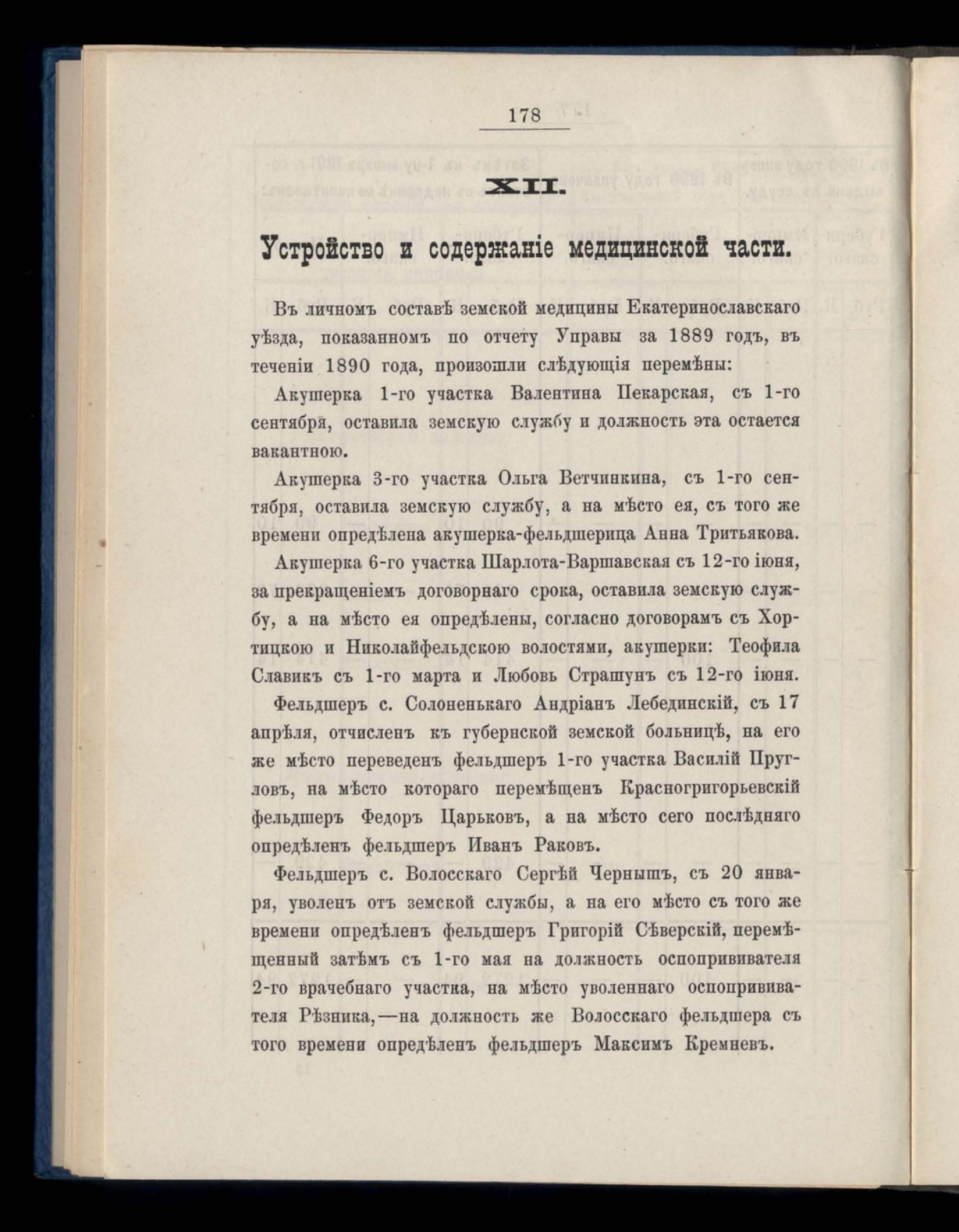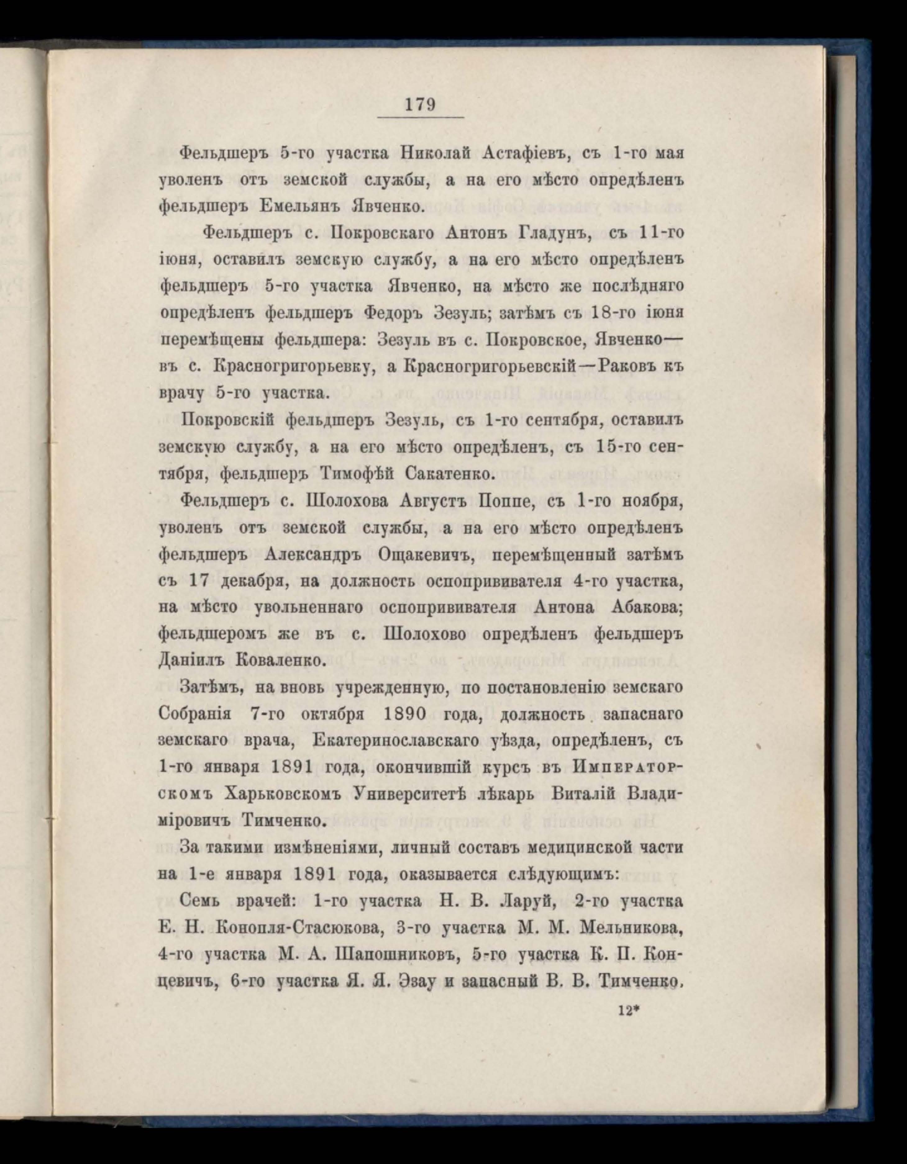 Въдомостъ № 1-й о числъ больныхъ, пользовавшихся пособіями и совътами земскихъ врачей и фельдшеровъ Екатеринославскаго уъзда за 1890 годъ