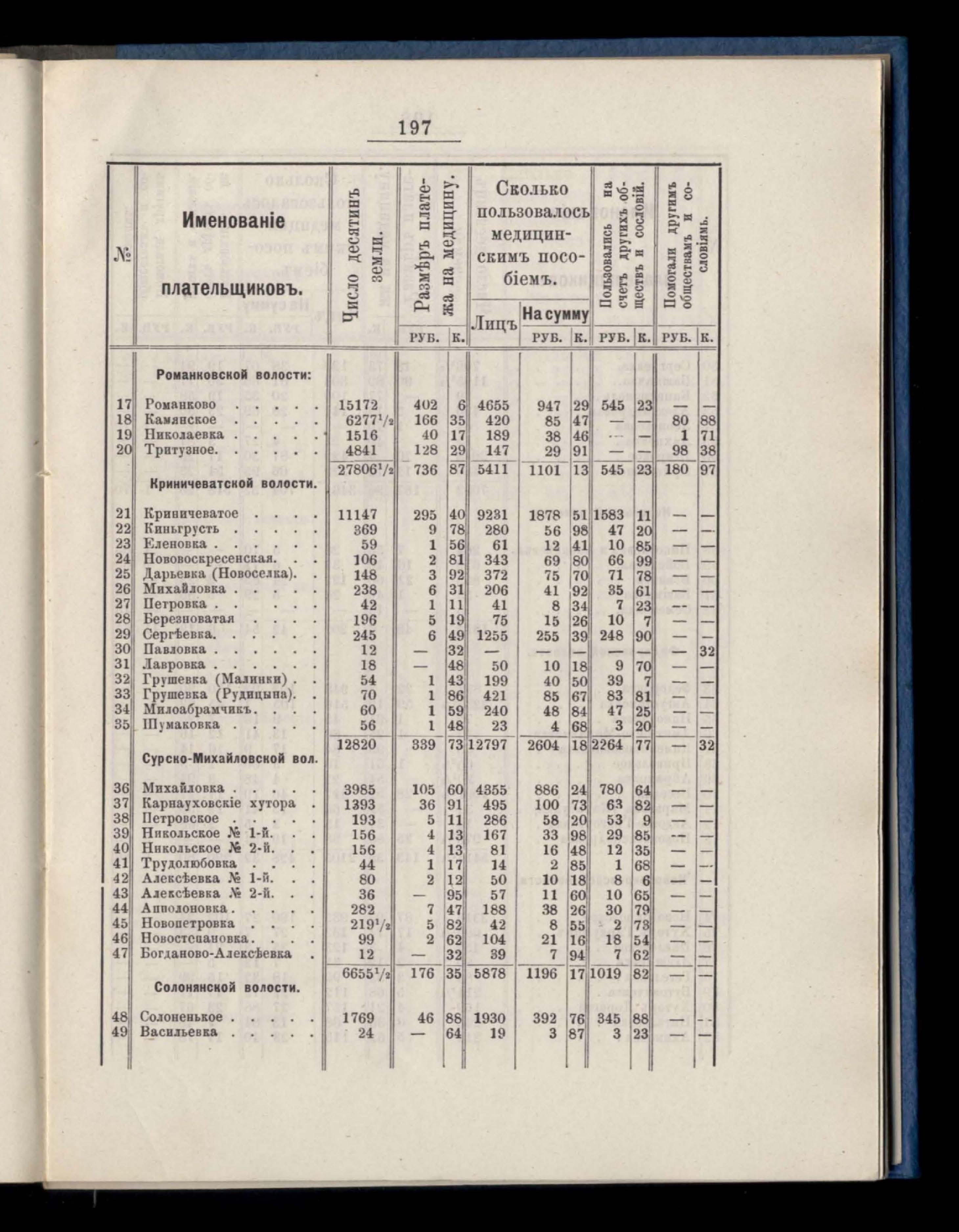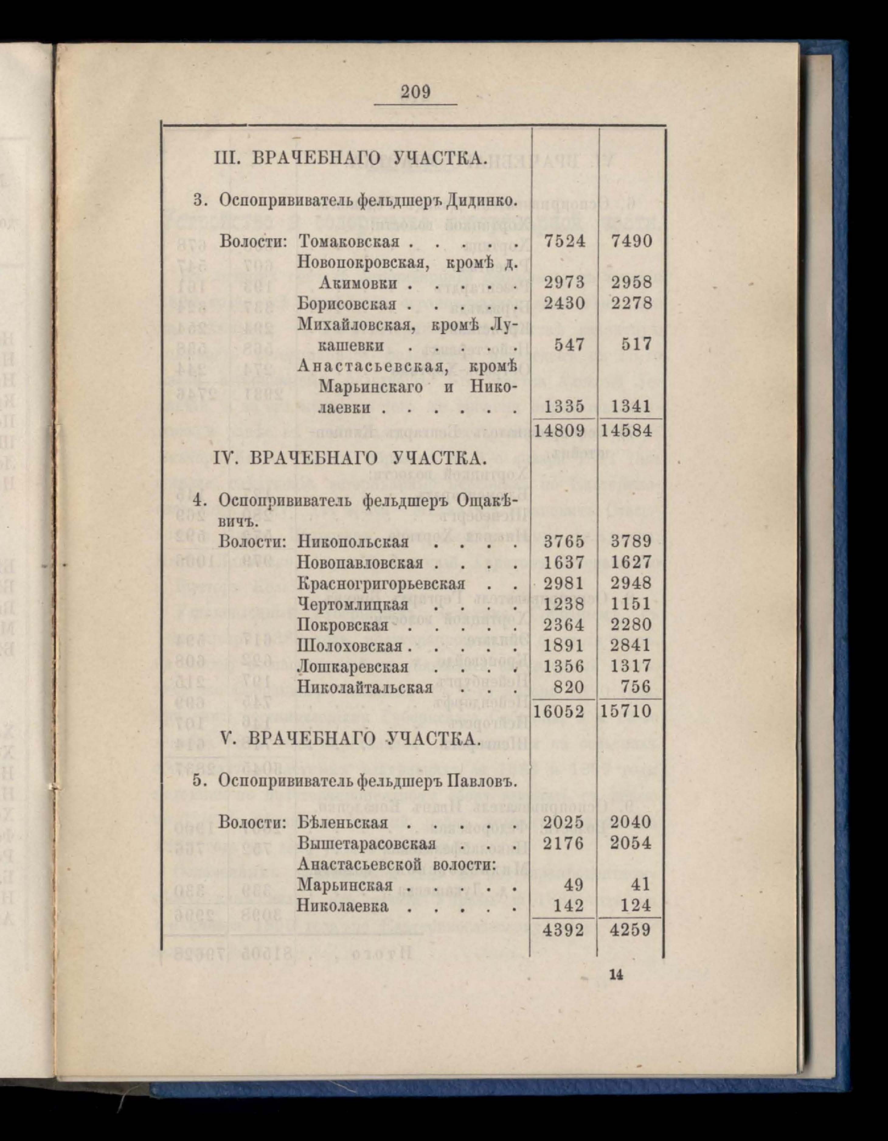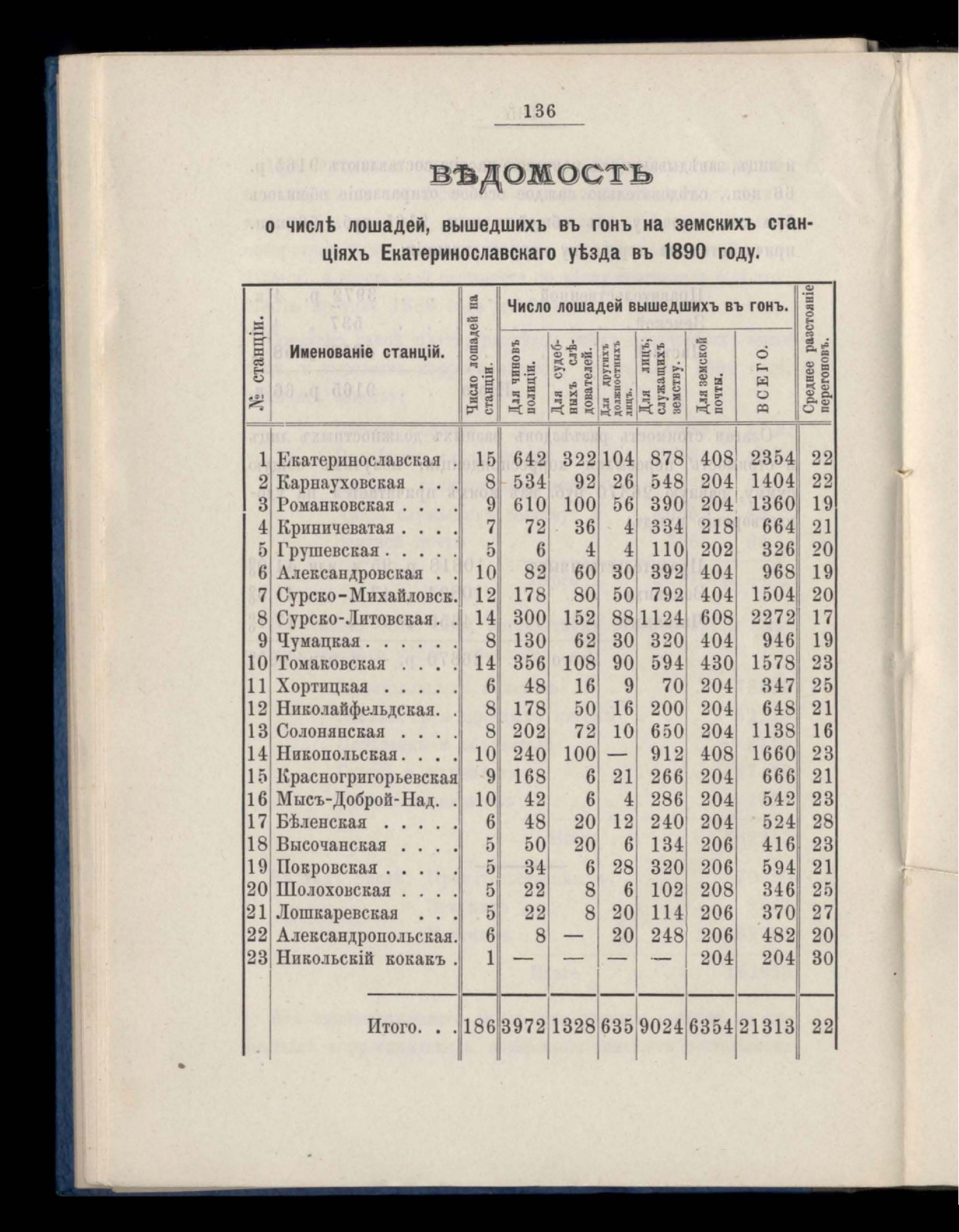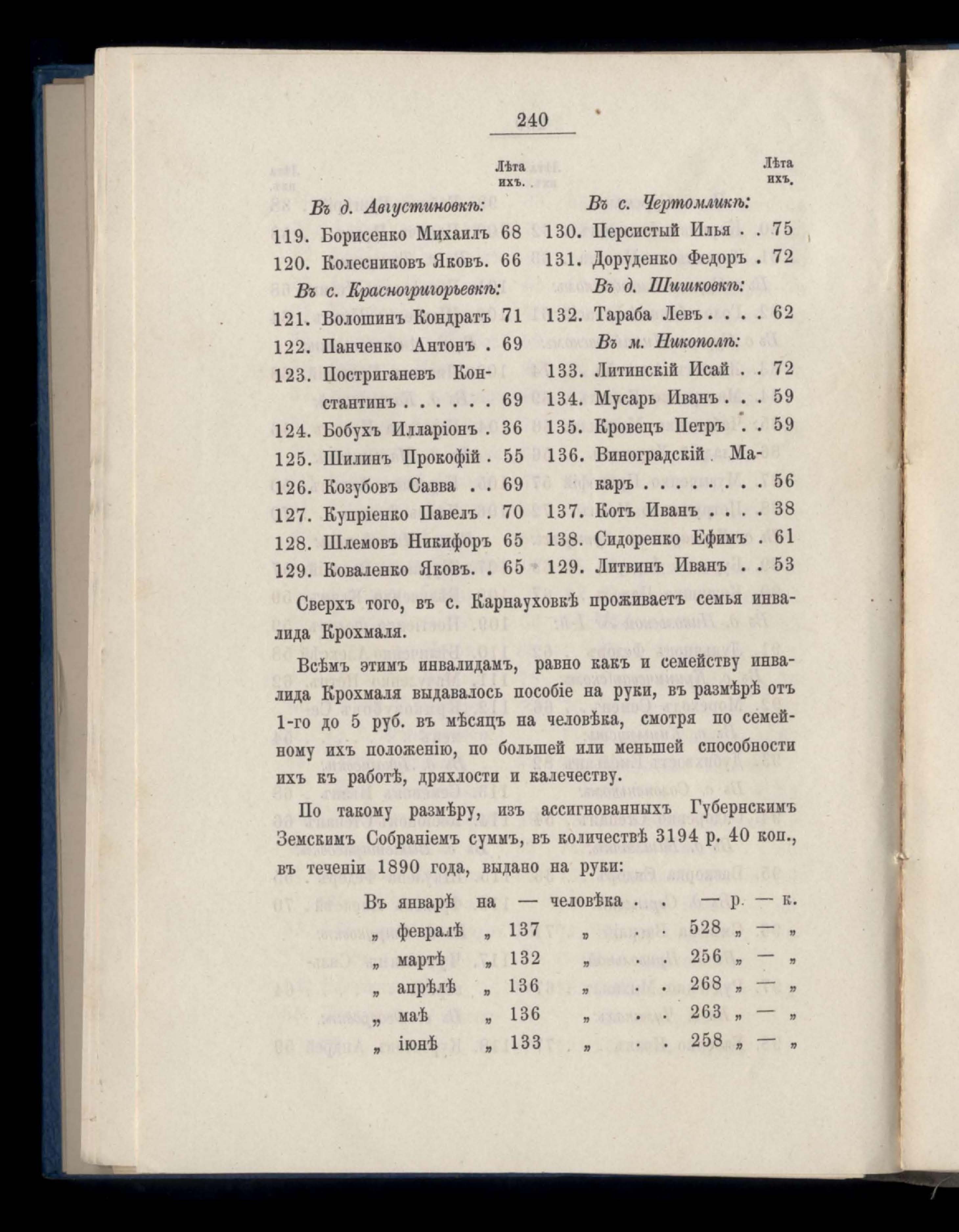 Въдомостъ № 1-й о числъ больныхъ, пользовавшихся пособіями и совътами земскихъ врачей и фельдшеровъ Екатеринославскаго уъзда за 1890 годъ