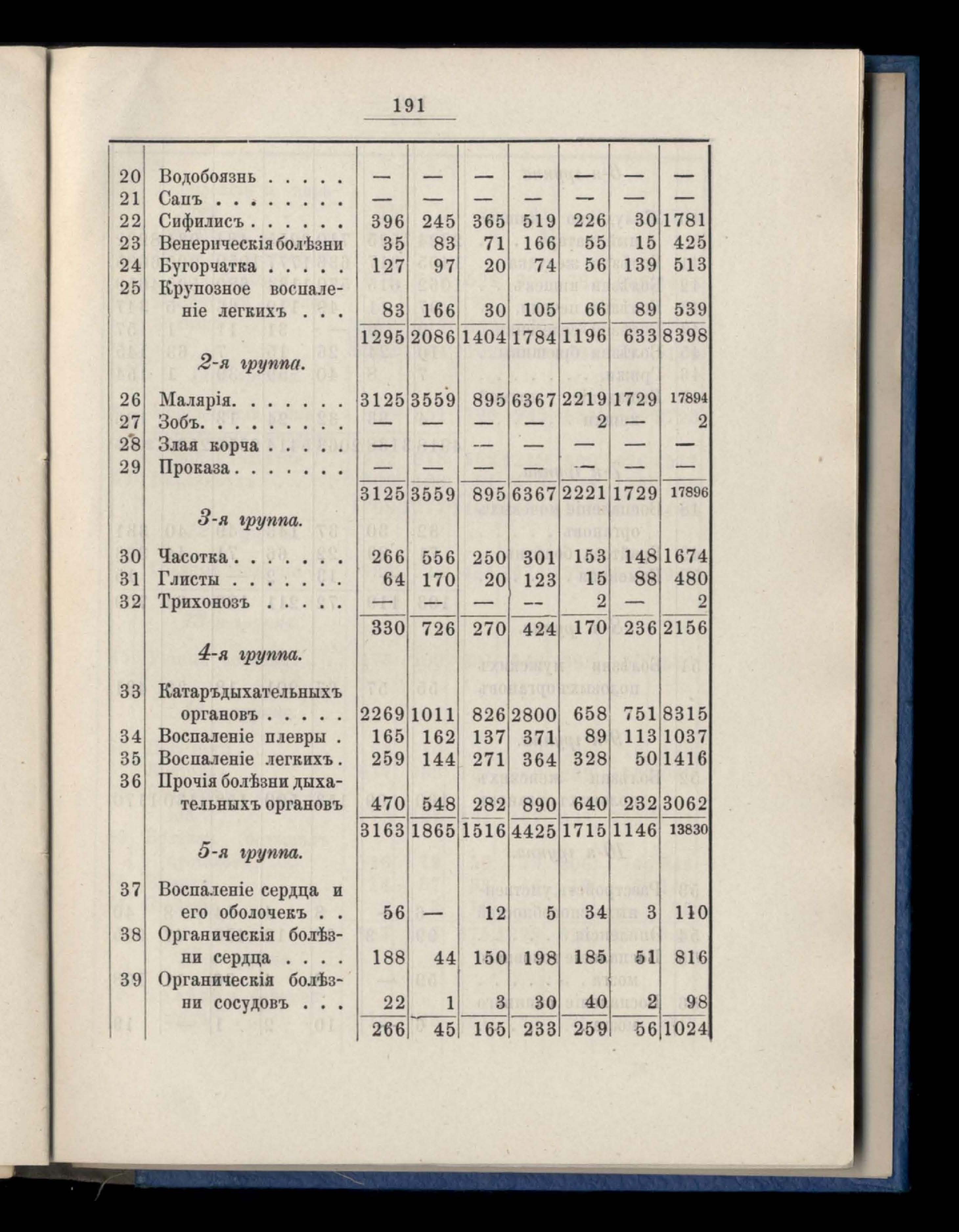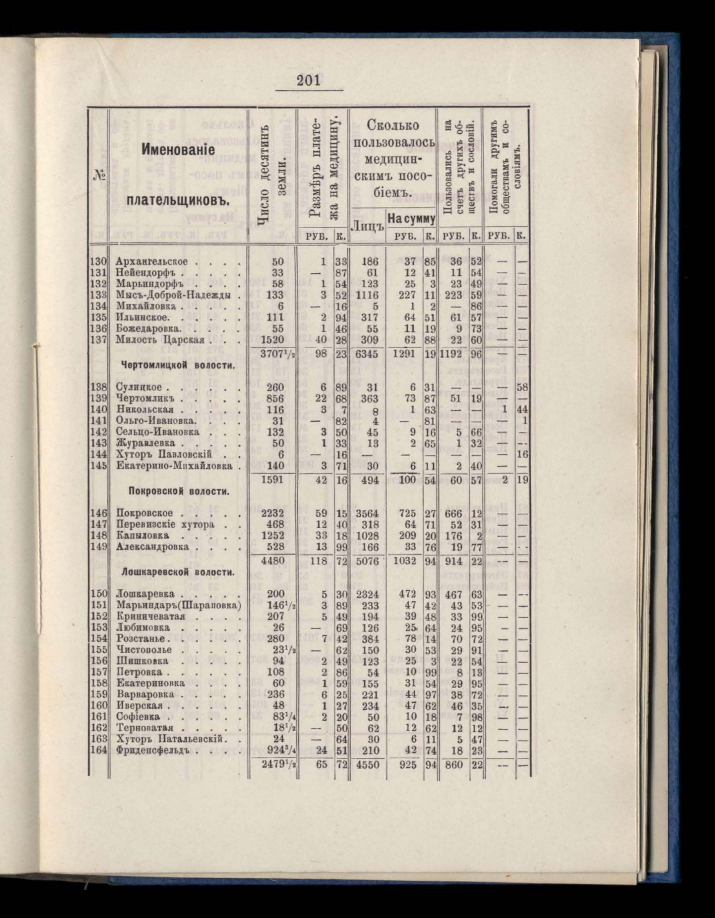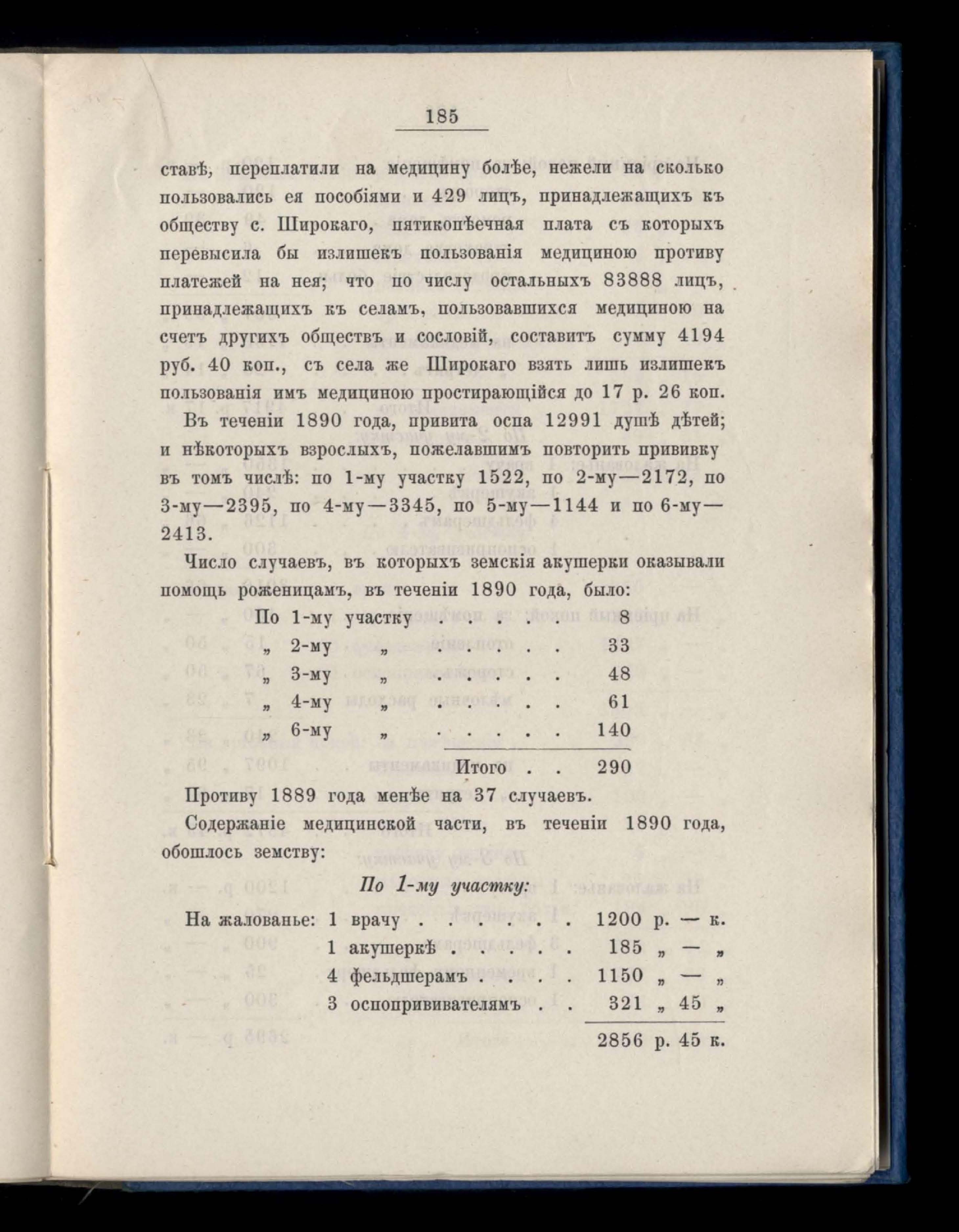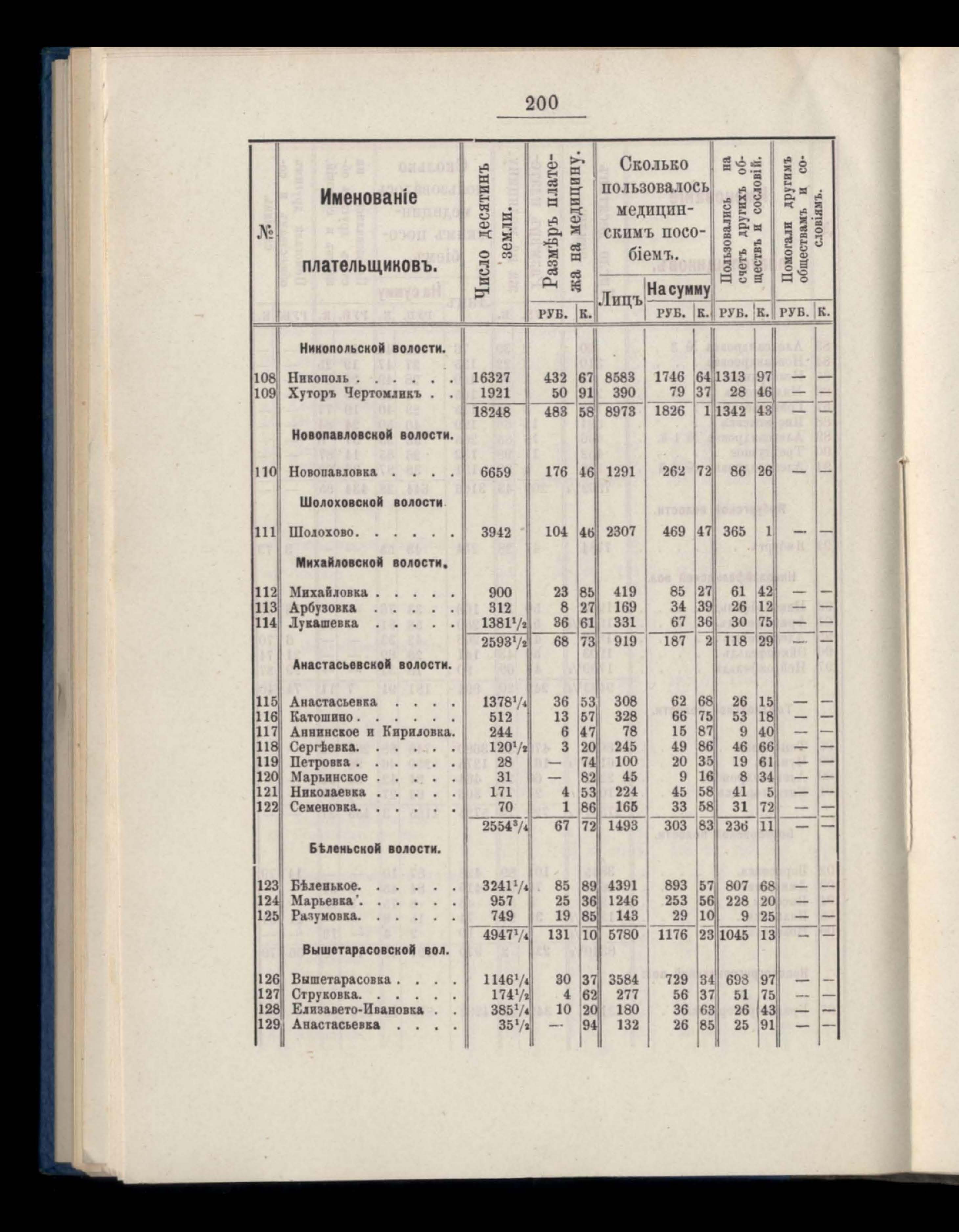 Въдомостъ № 1-й о числъ больныхъ, пользовавшихся пособіями и совътами земскихъ врачей и фельдшеровъ Екатеринославскаго уъзда за 1890 годъ
