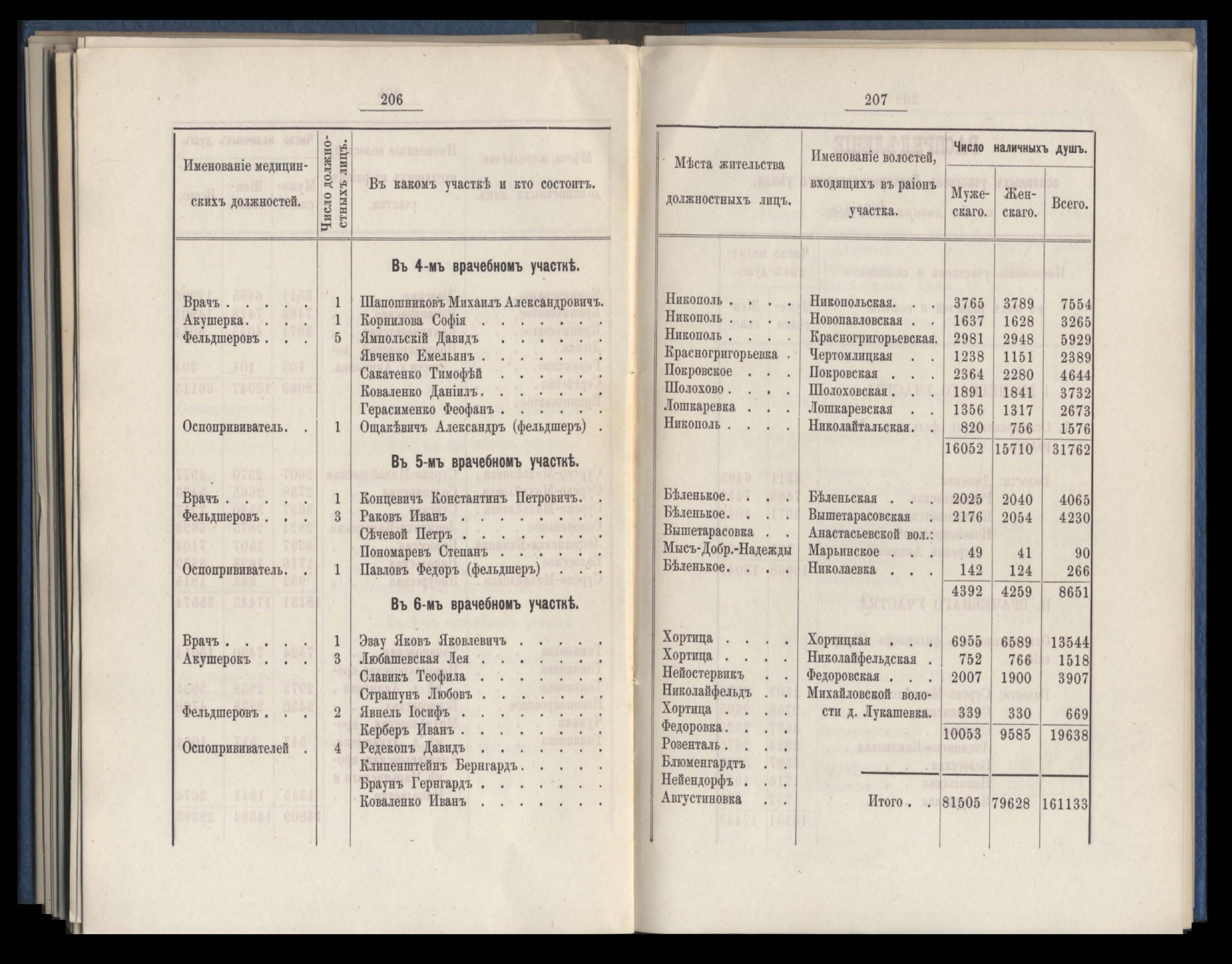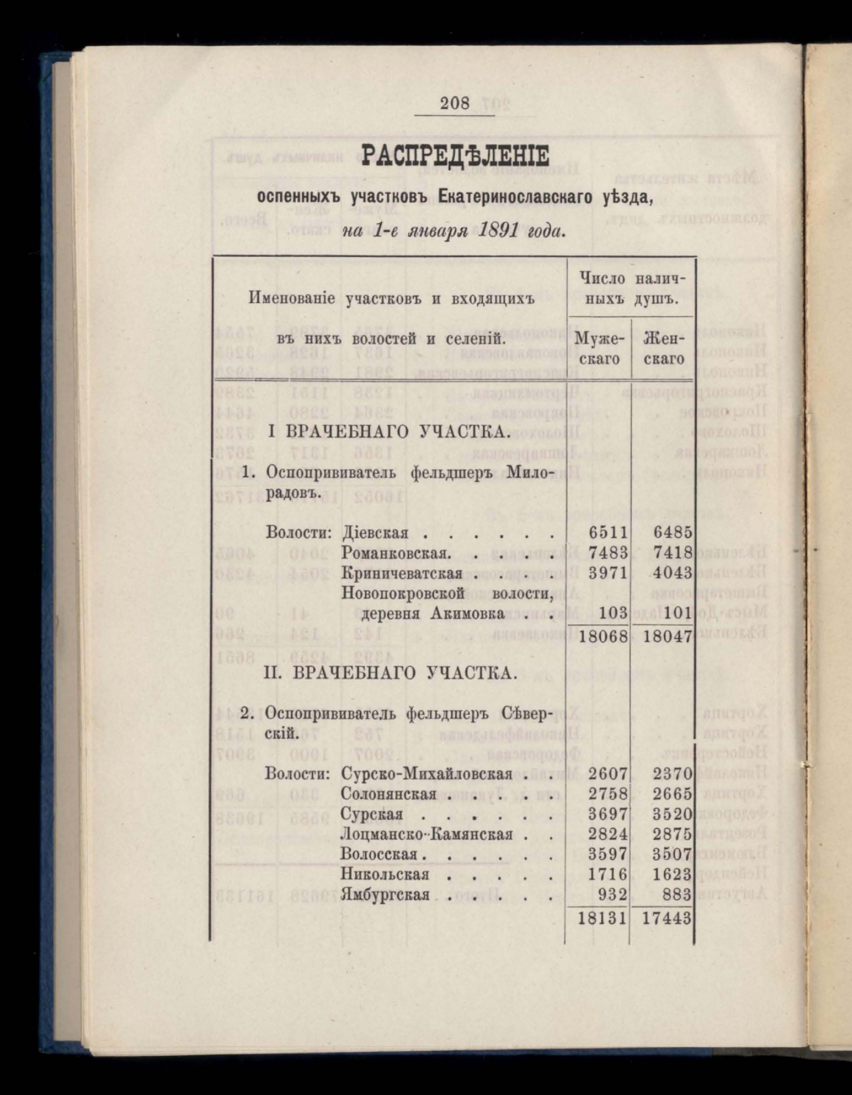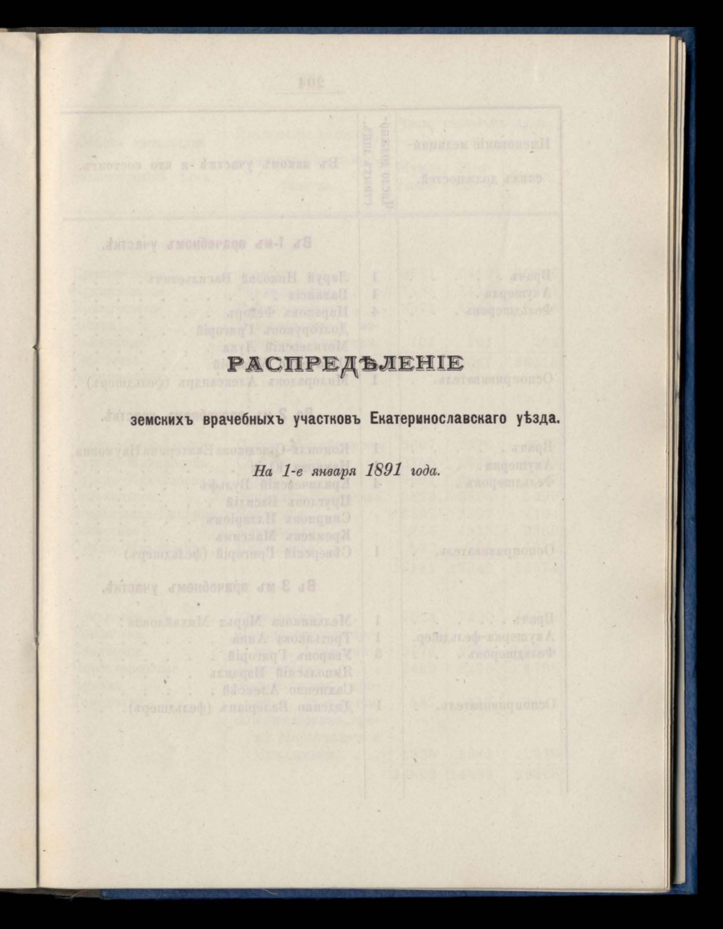 Распредъленіе земскихъ врачебныхъ участковъ Екатеринославскаго уъзда на 1-е января 1891 года