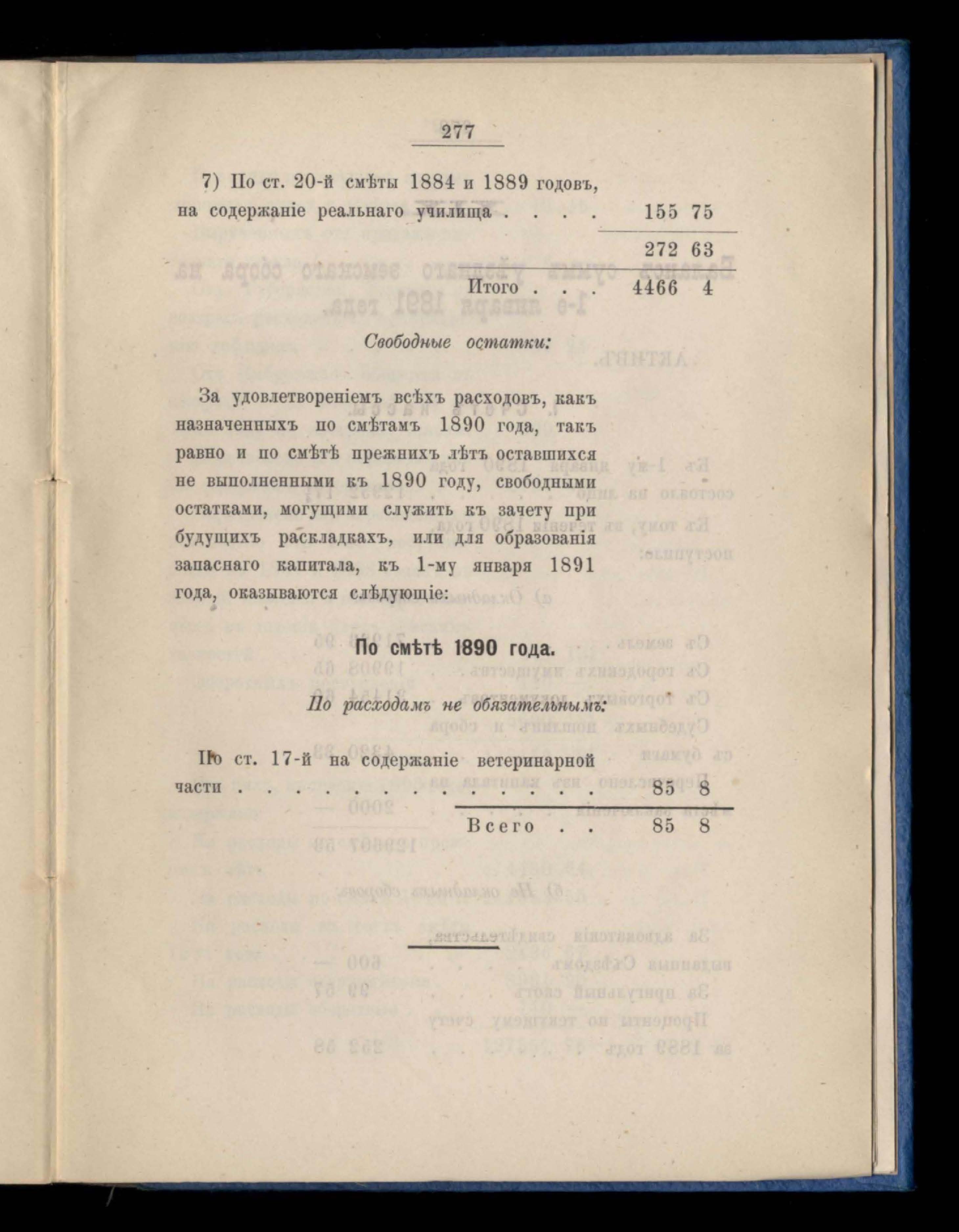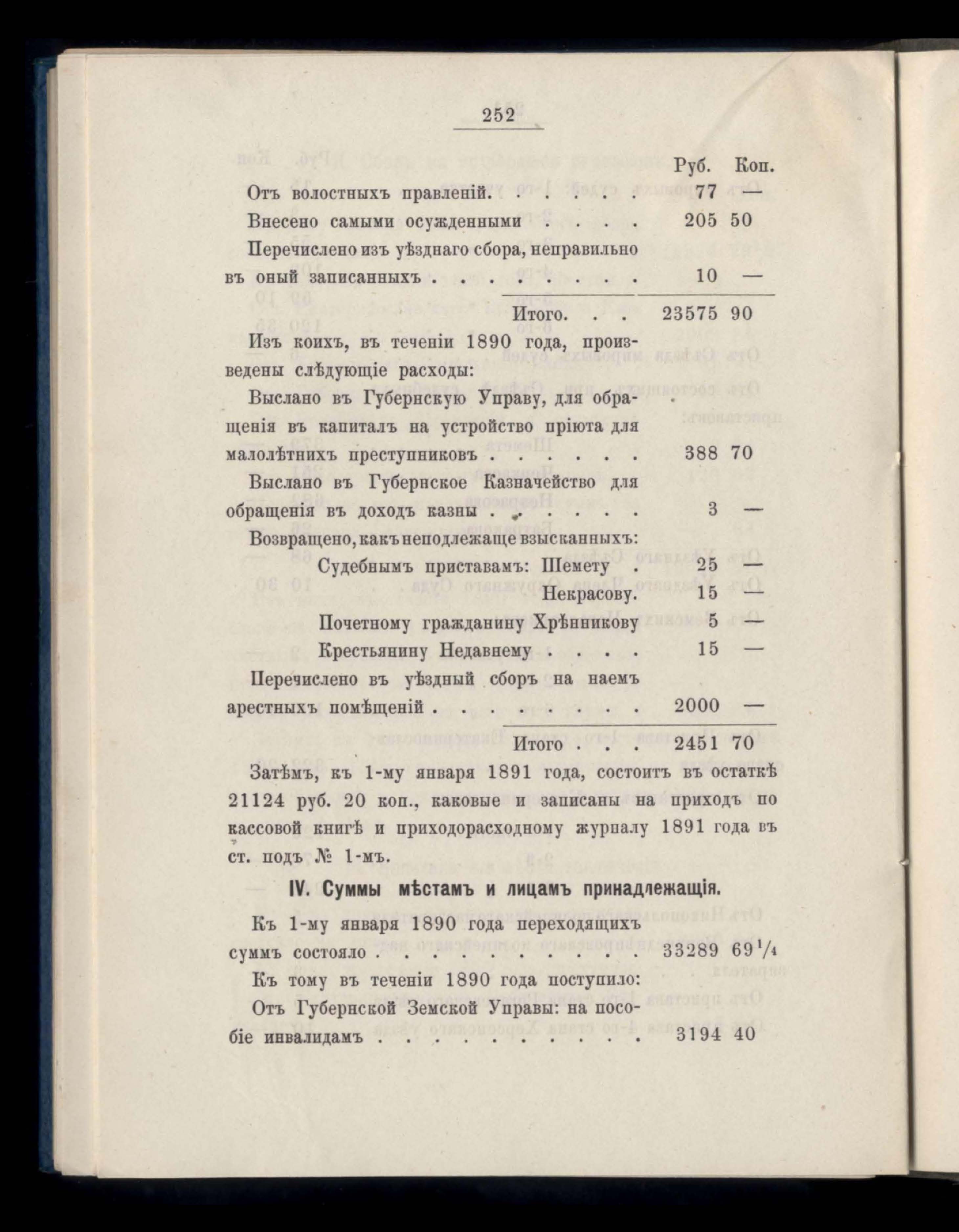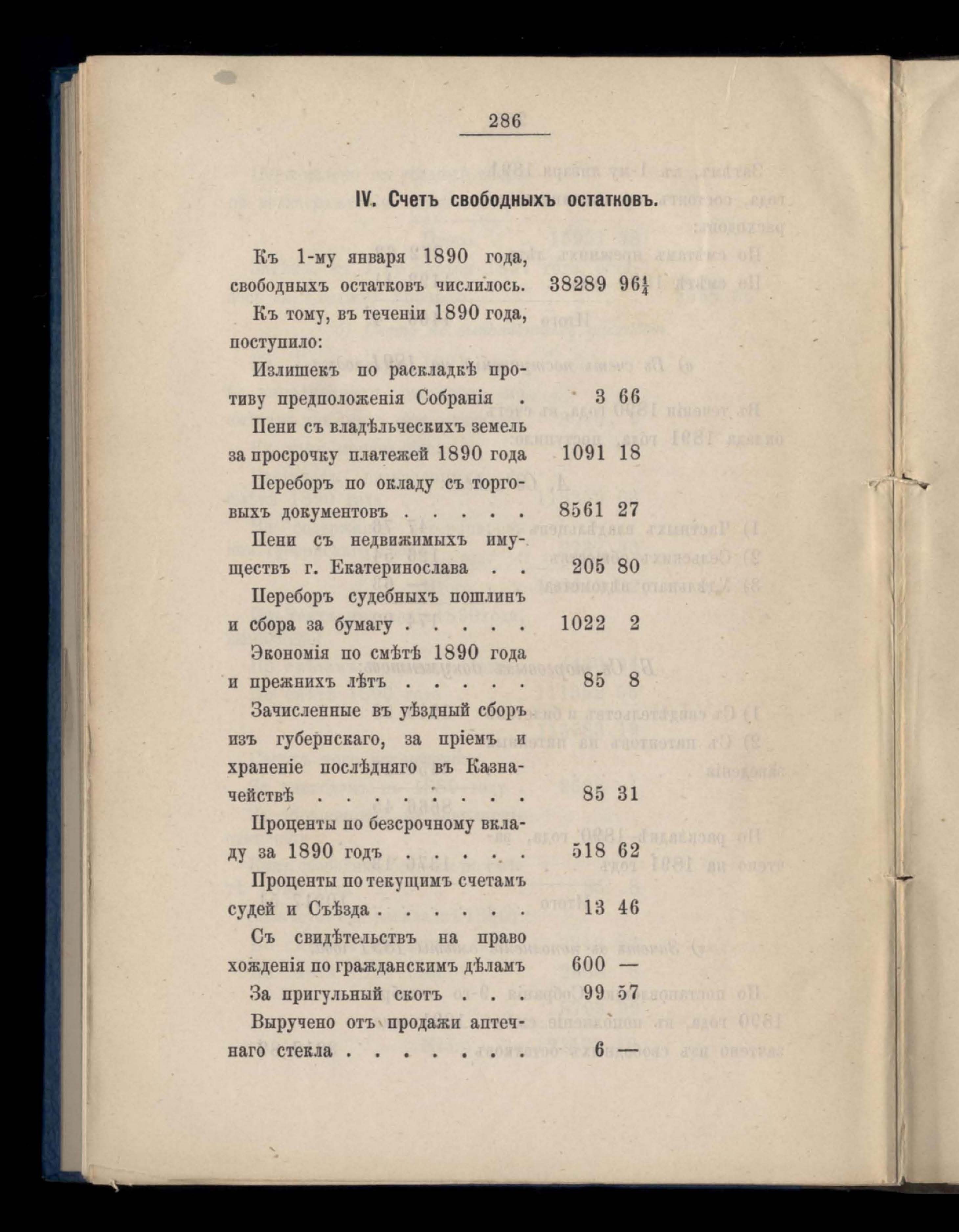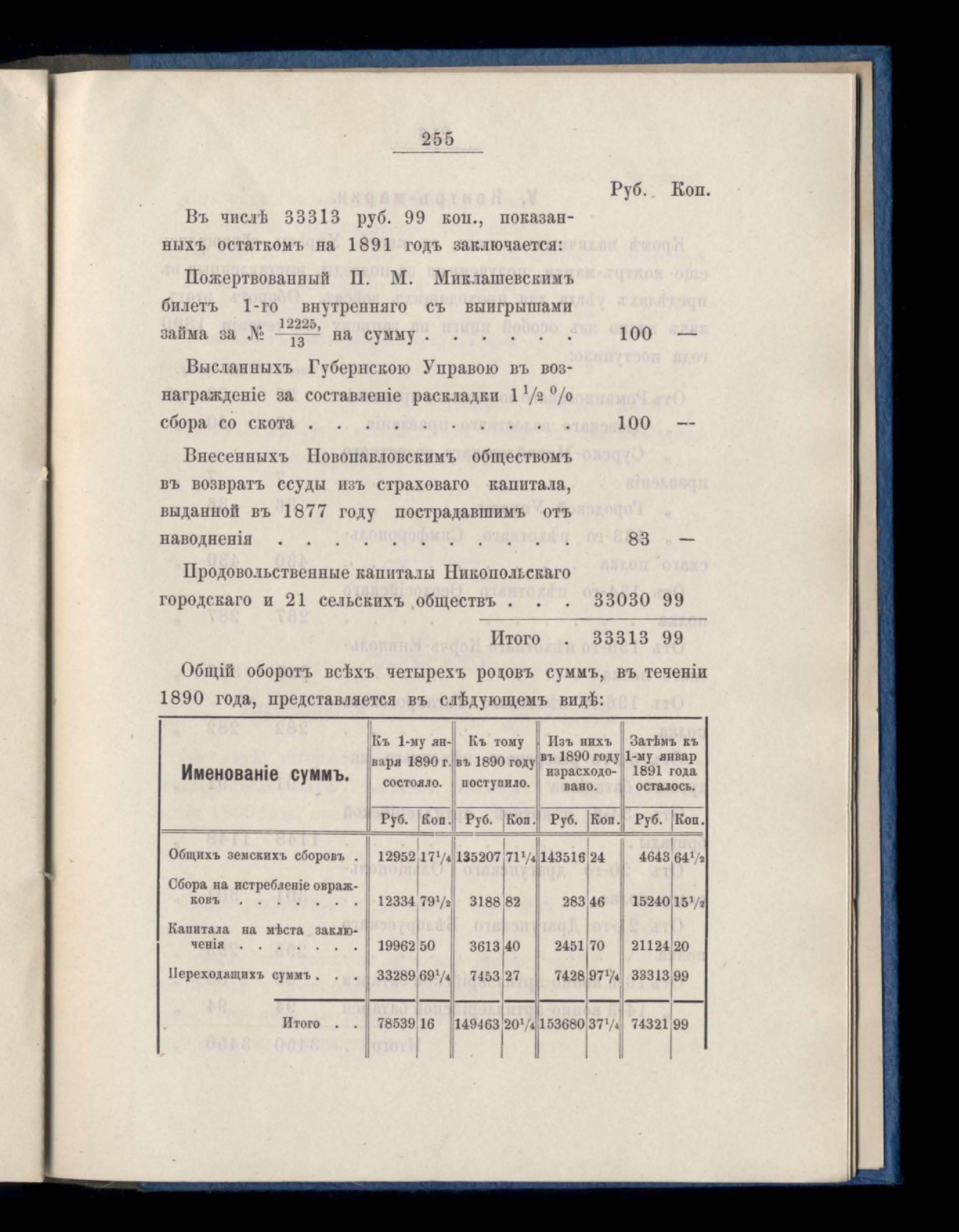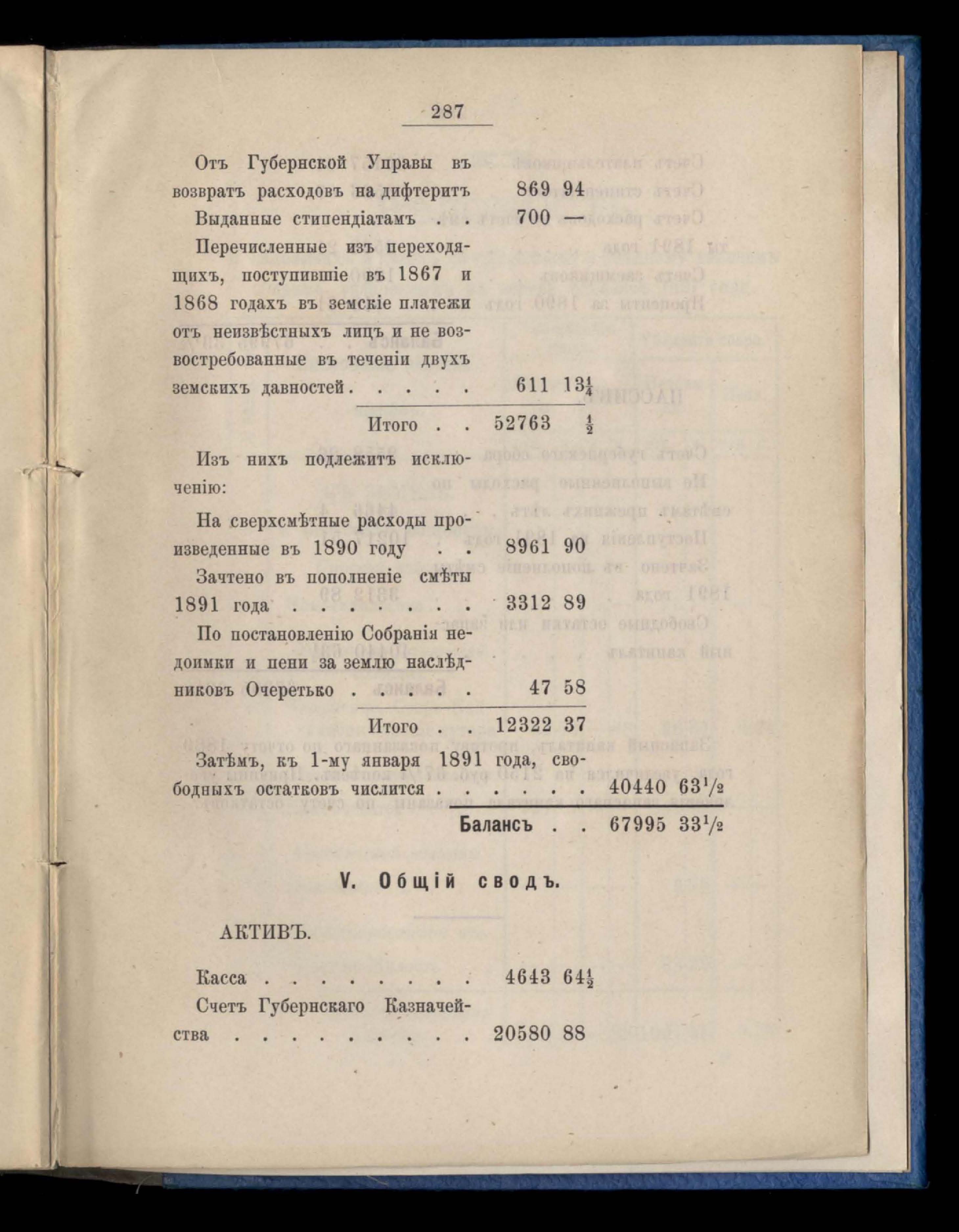 Балансъ суммъ уъзднаго земскаго сбора на 1-е января 1891 года