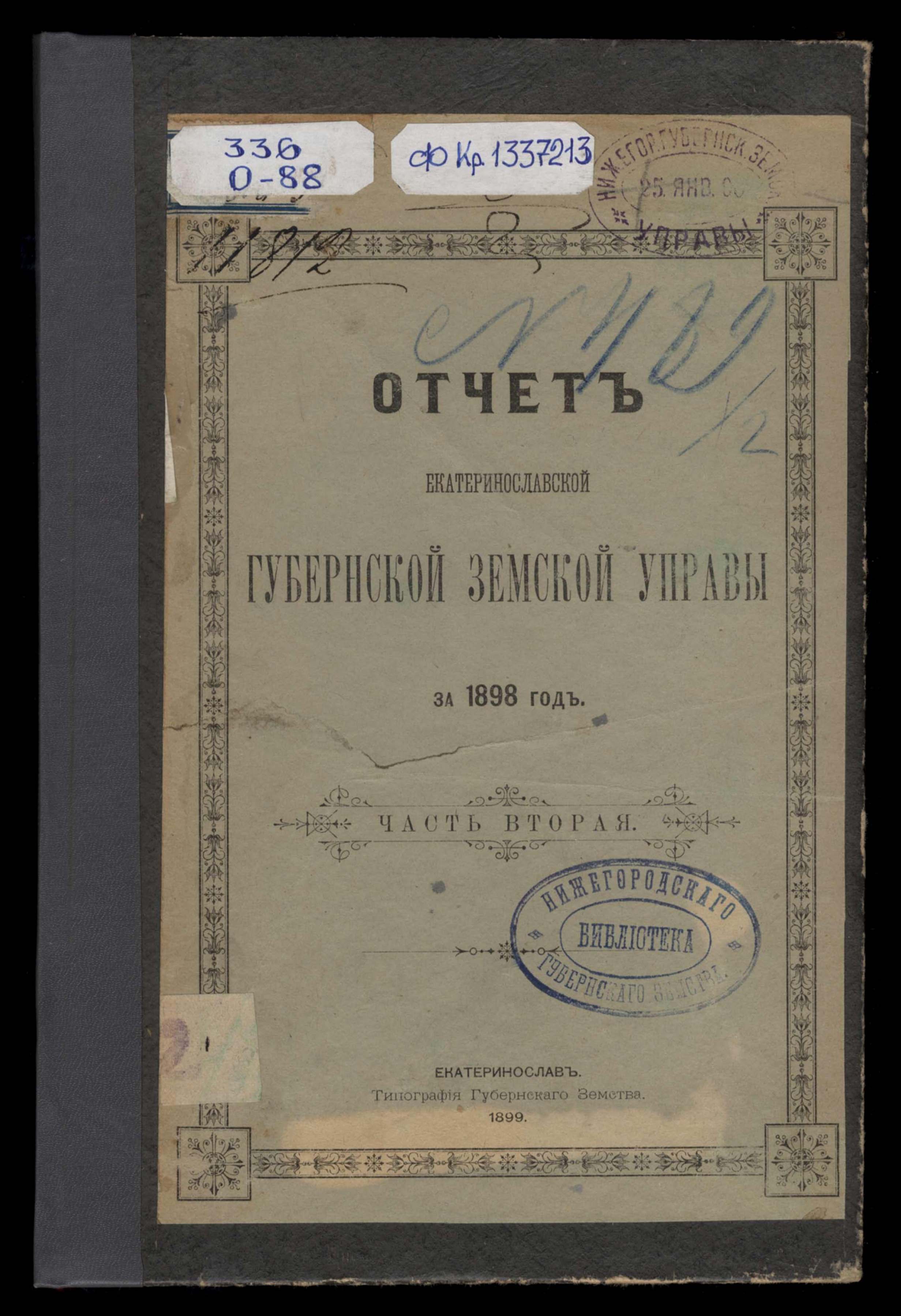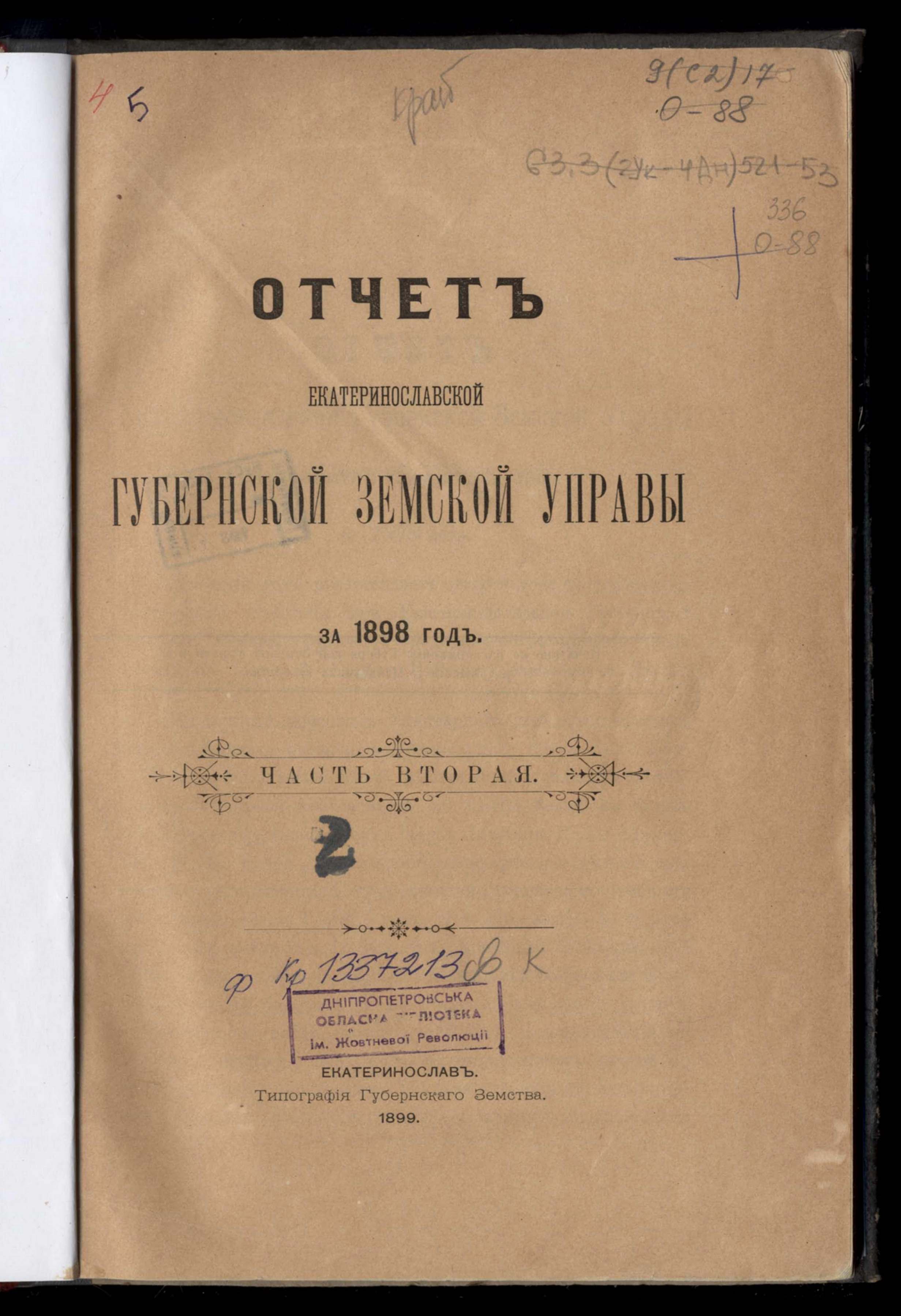 Отчетъ Екатеринославской Губернской Земской Управы за 1898 годъ. Часть вторая