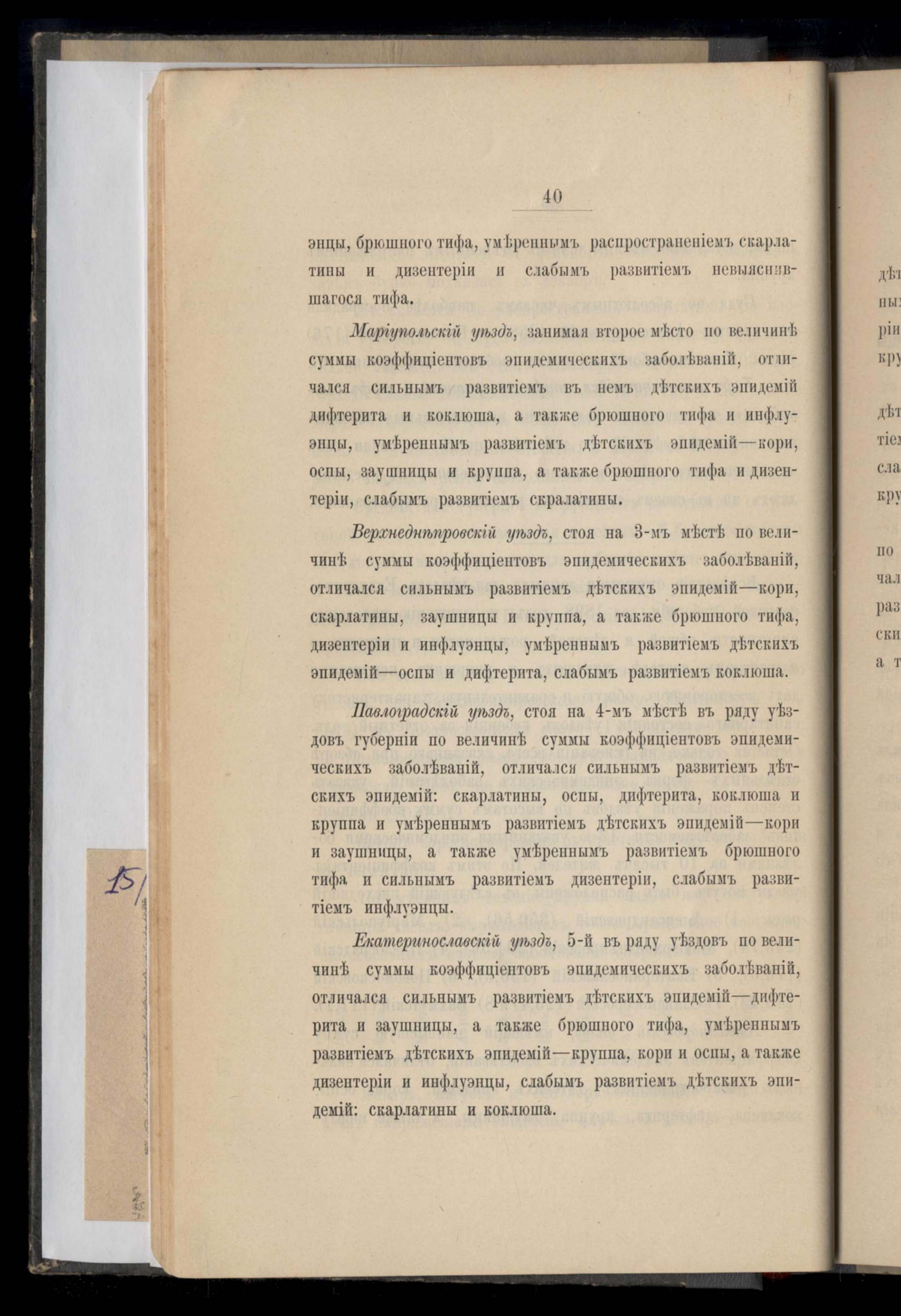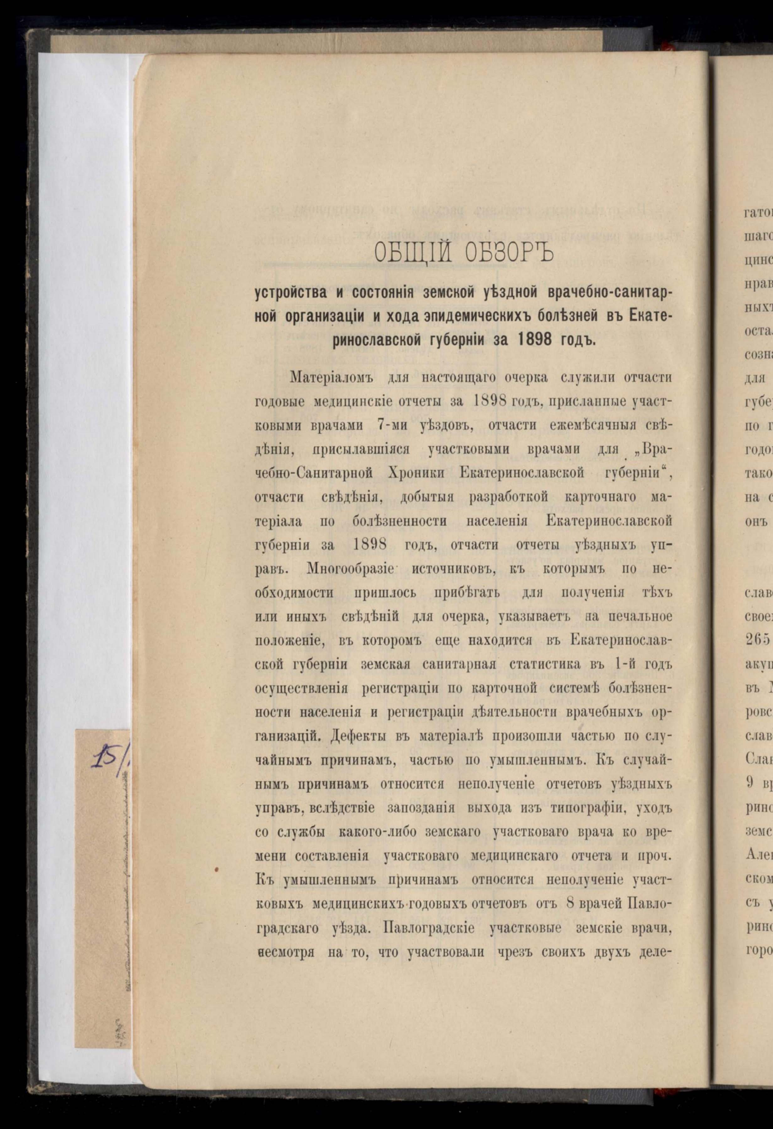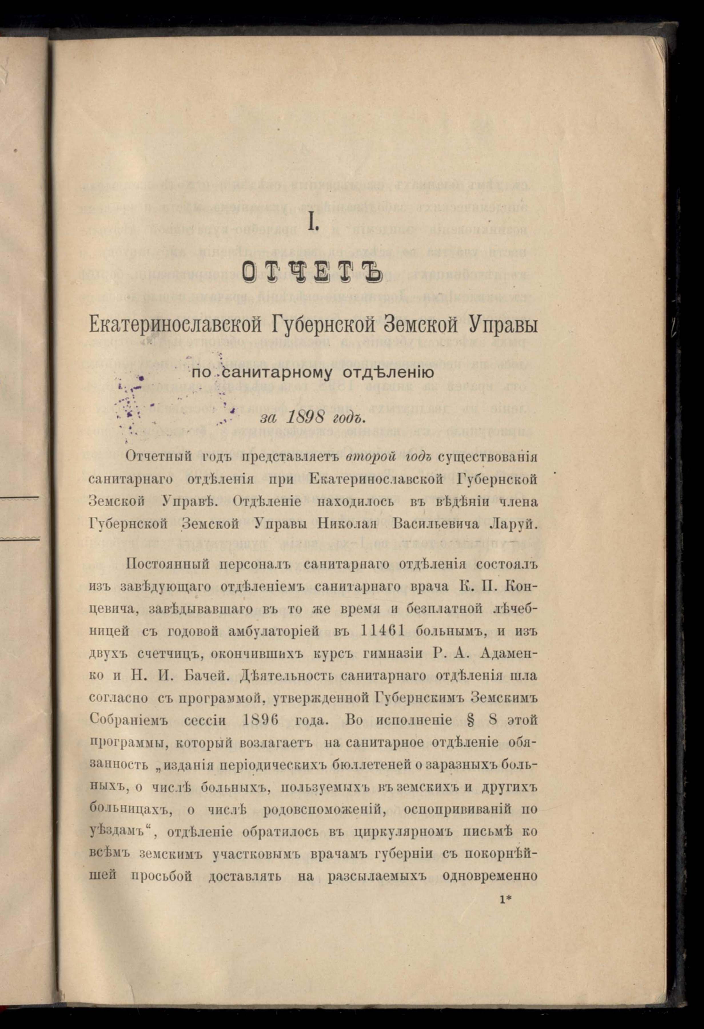 Общій обзоръ устройства и состоянія земской уездной врачебно-санитарной организаціи и хода эпидемическихъ юолезней въ Екатеринославской губерніи за 1898 годъ