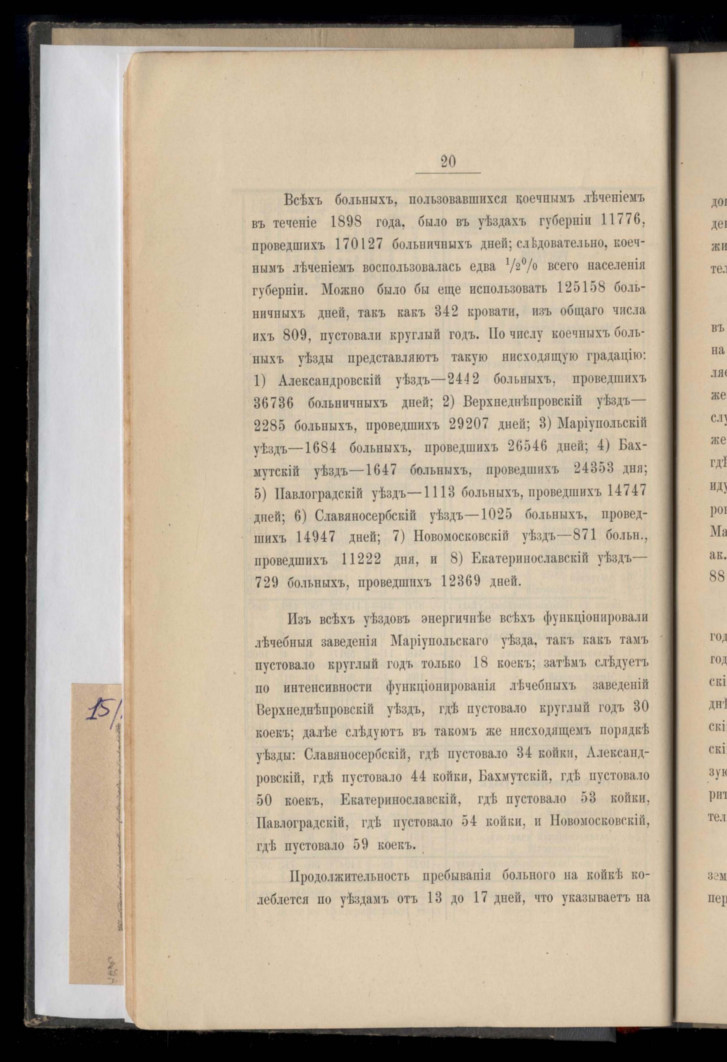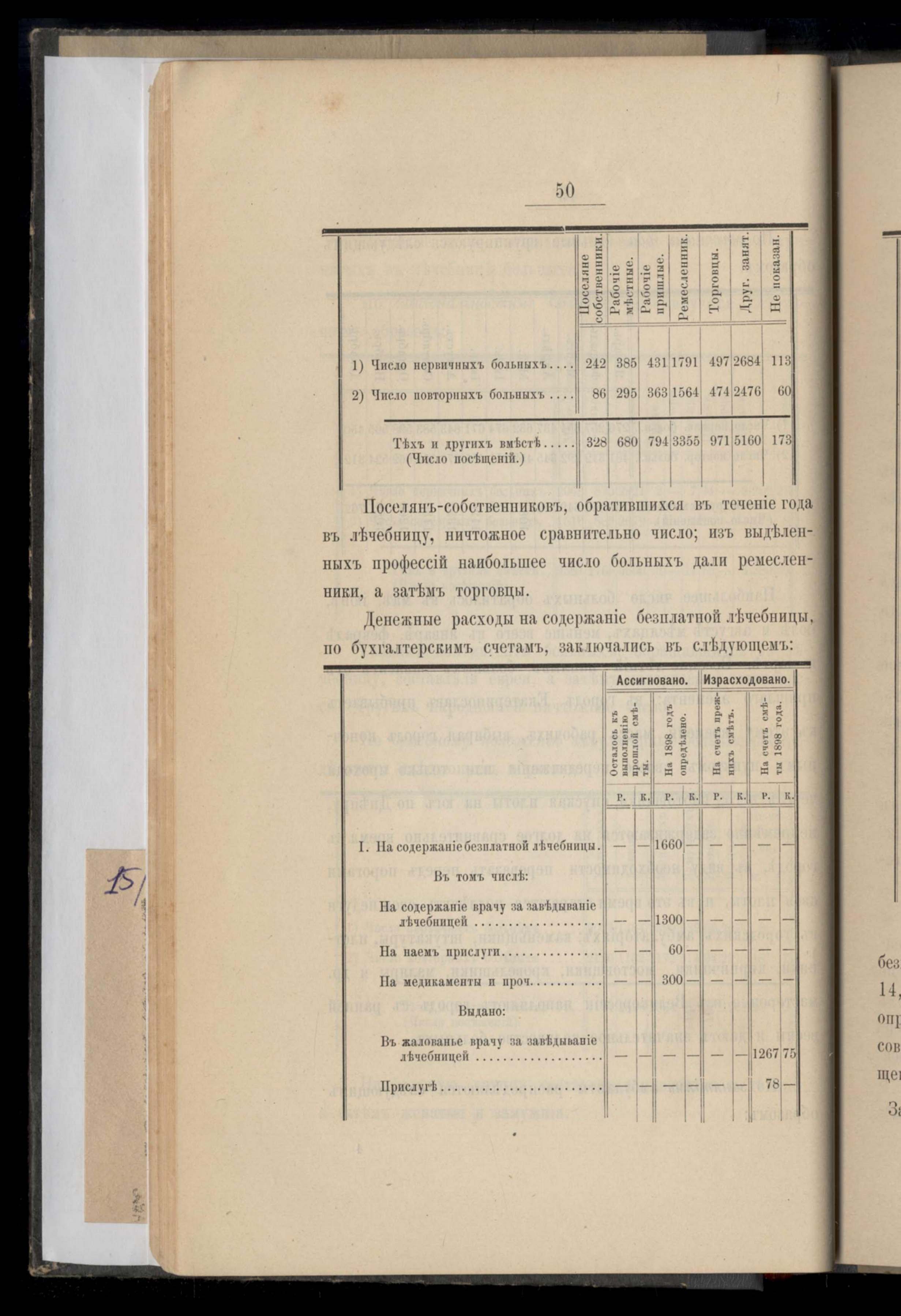 Отчетъ о деятельности и стоимости содержанія бесплатной лечебницы при Екатеринославской Губернской Земской Управе за 1898 годъ