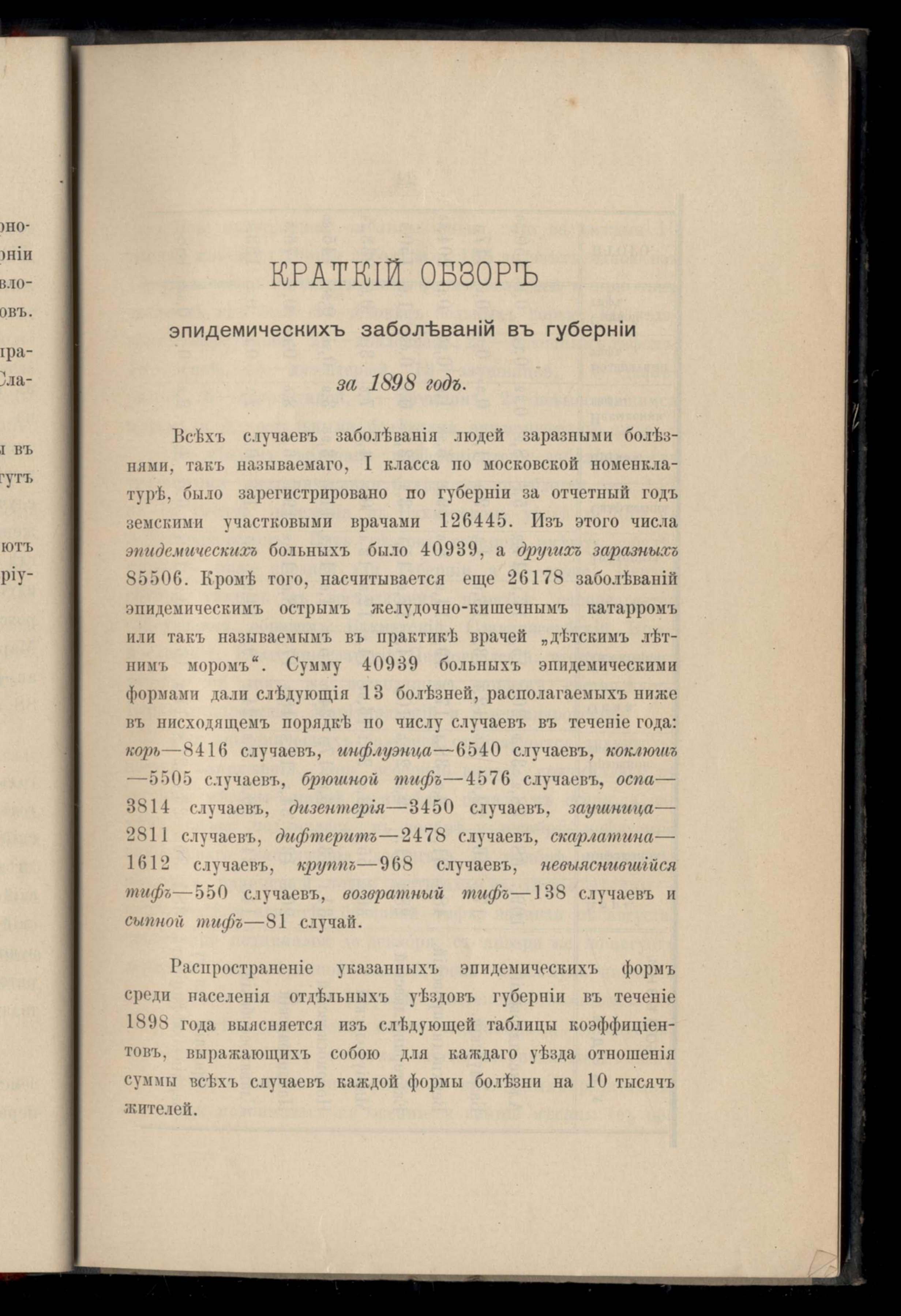Краткій обзоръ эпидемическихъ заболеваній въ губерніи за 1898 годъ