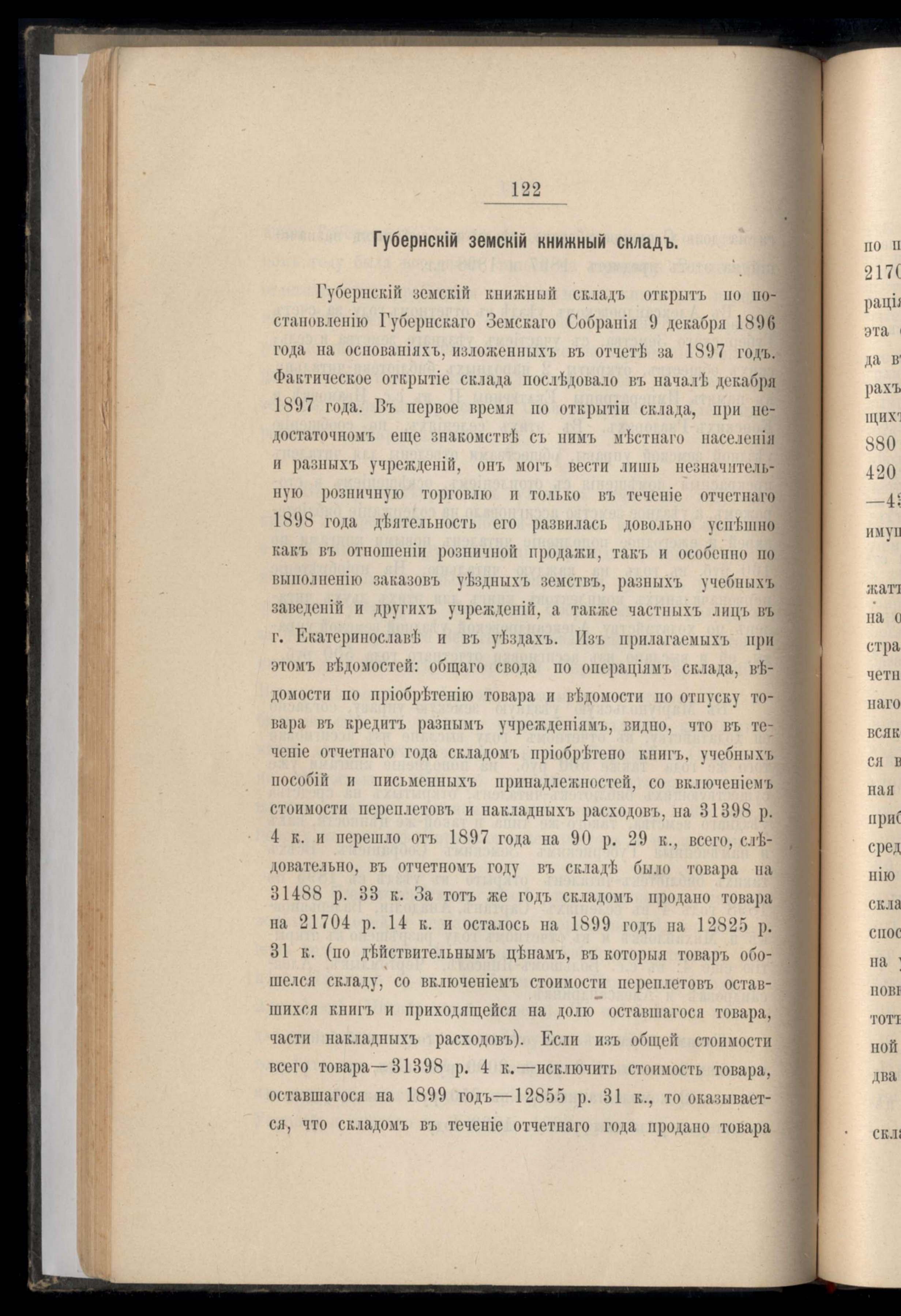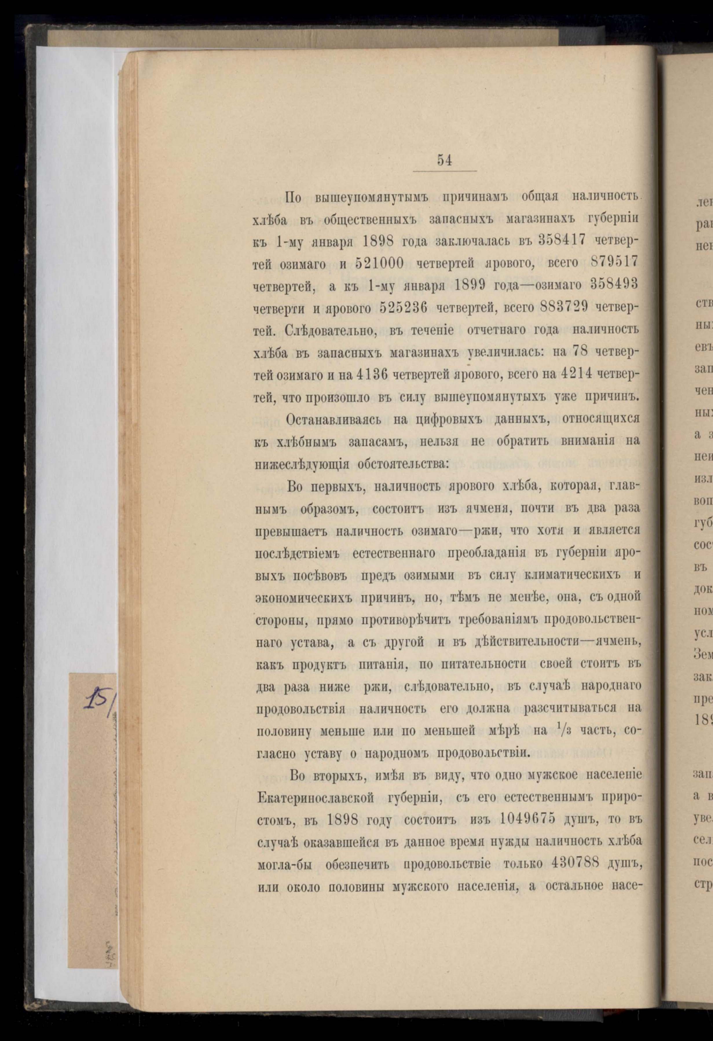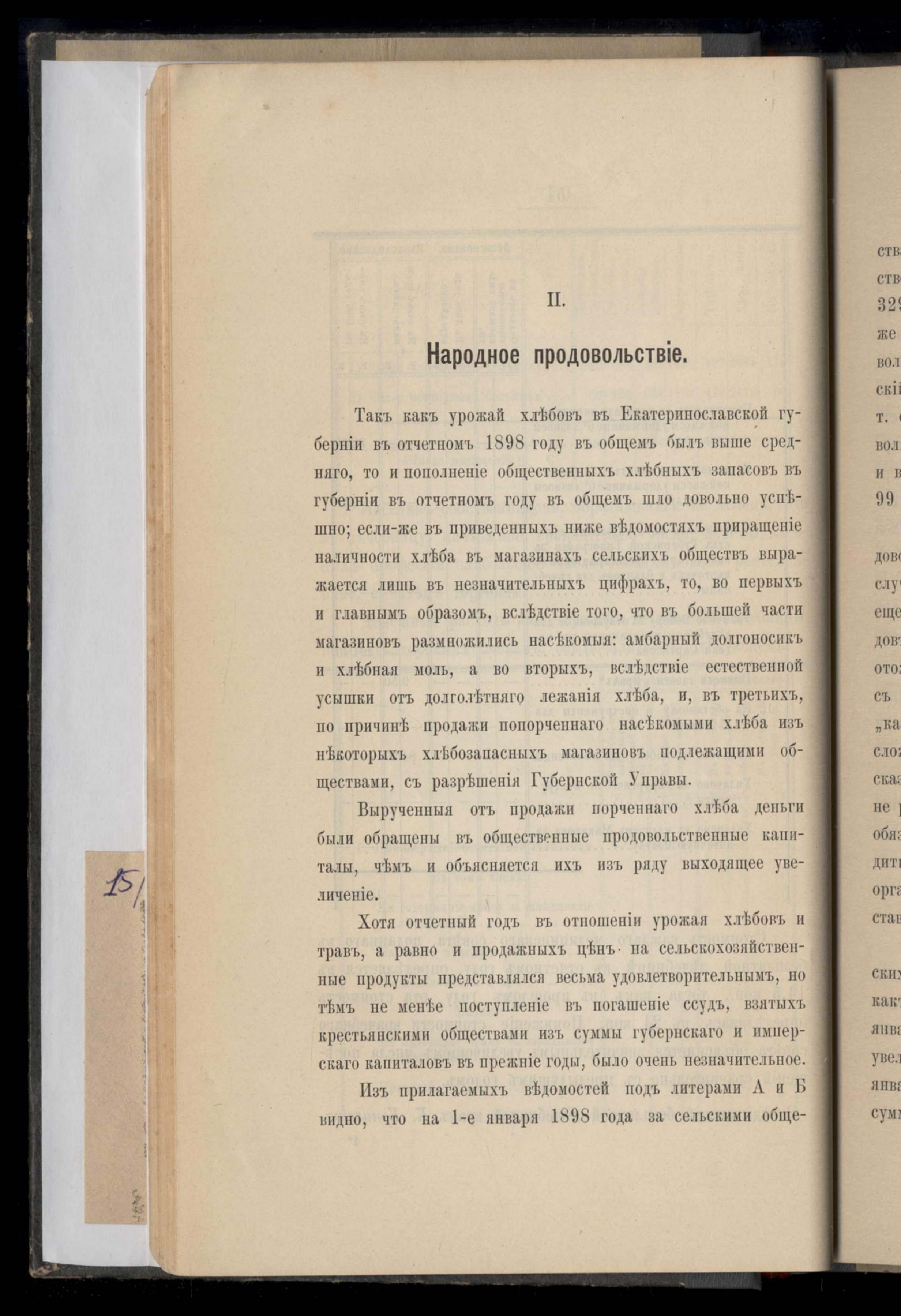 Ведомость о состояніи хлебныхъ запасовъ въ отбщественныхъ запасныхъ магазинахъ Екатеринославской губерніи за 1898 года