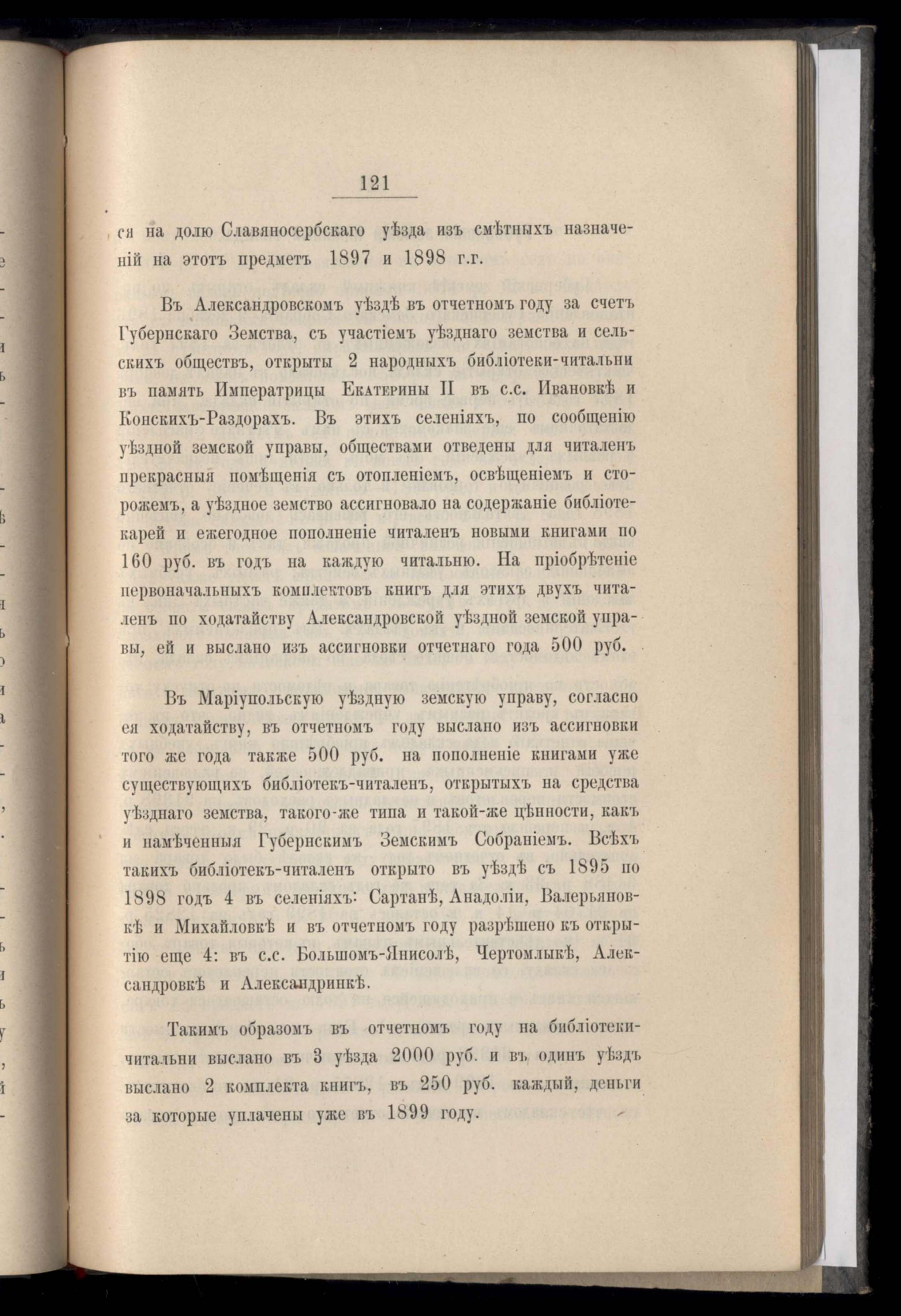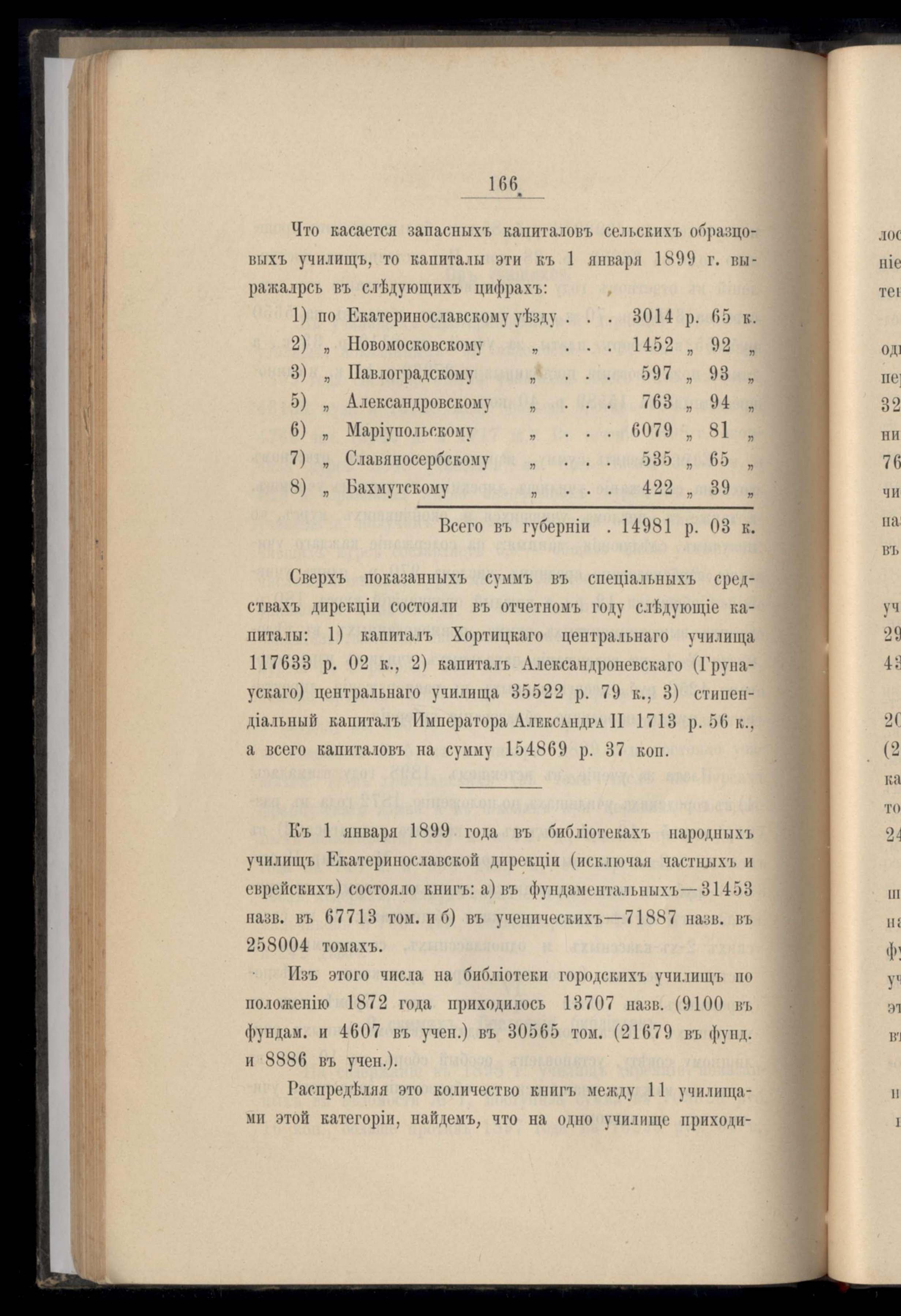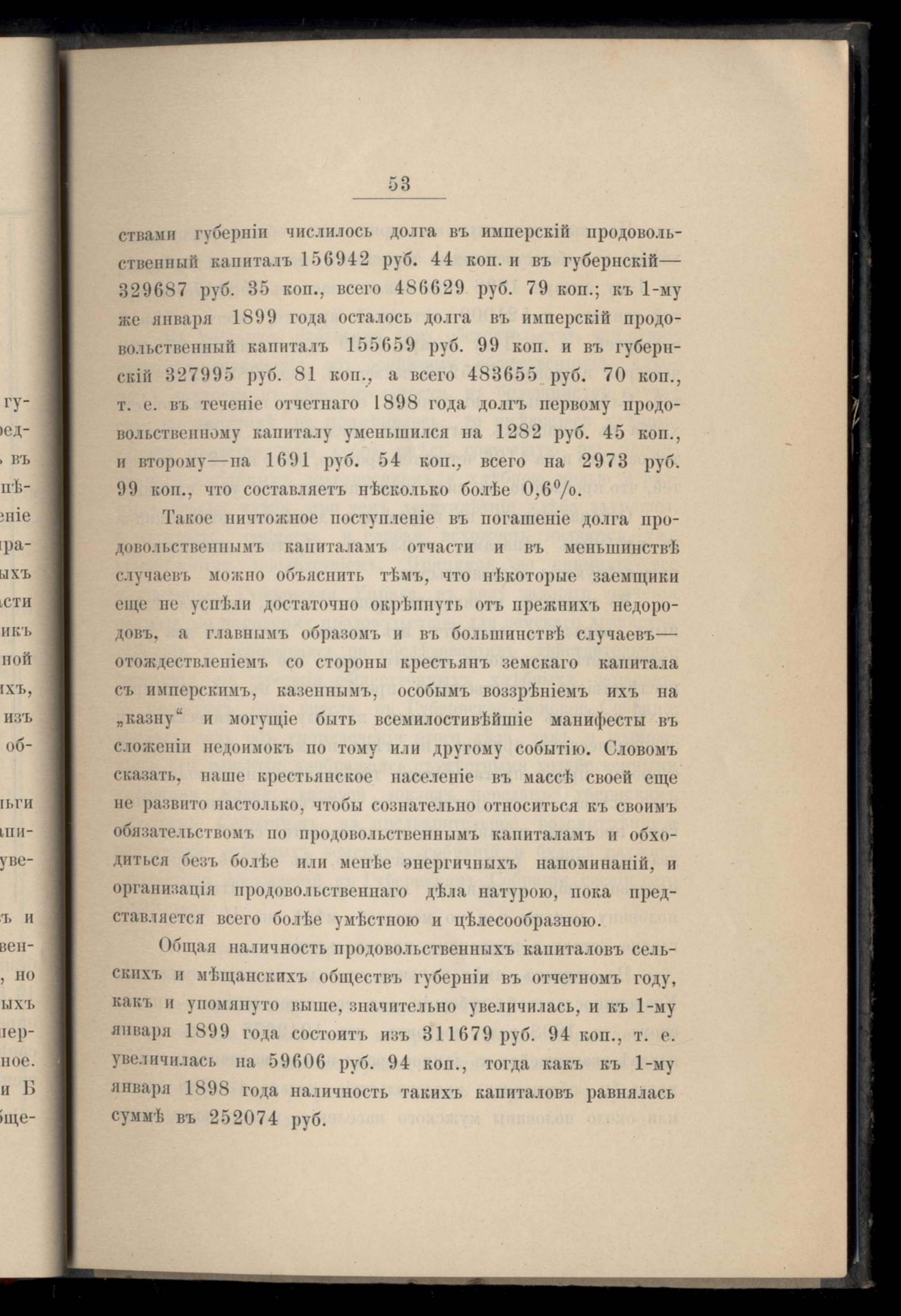 Ведомость о нальчности продовольственныхъ капиталовъ сельскихъ и мещанскихъ обществъ Екатеринославской губерніи по 1 января 1899 года