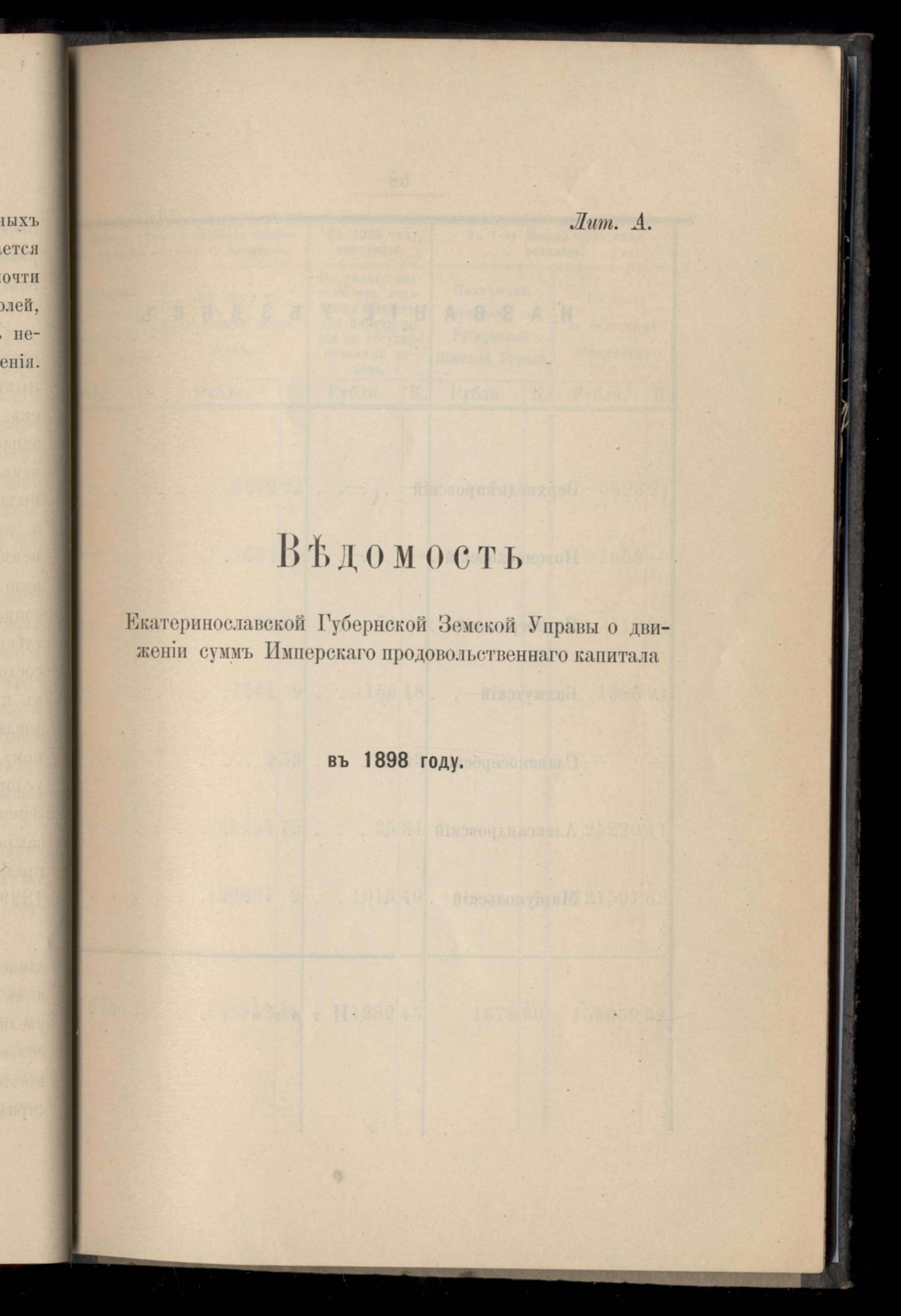 Ведомость екатеринославской Губернской Земской Управы о движеніи суммъ Имперскаго продовольственнаго капитала въ 1898 году