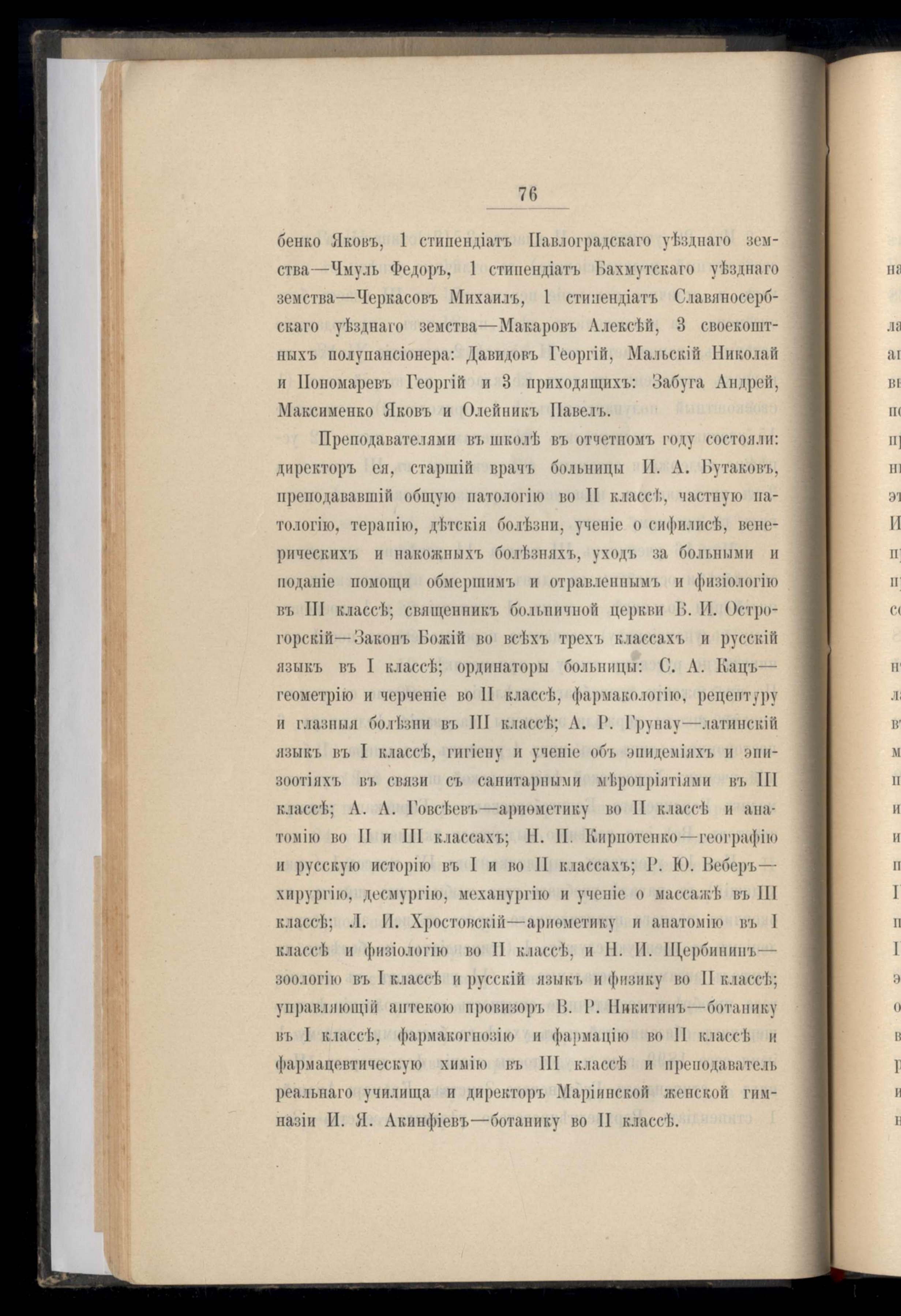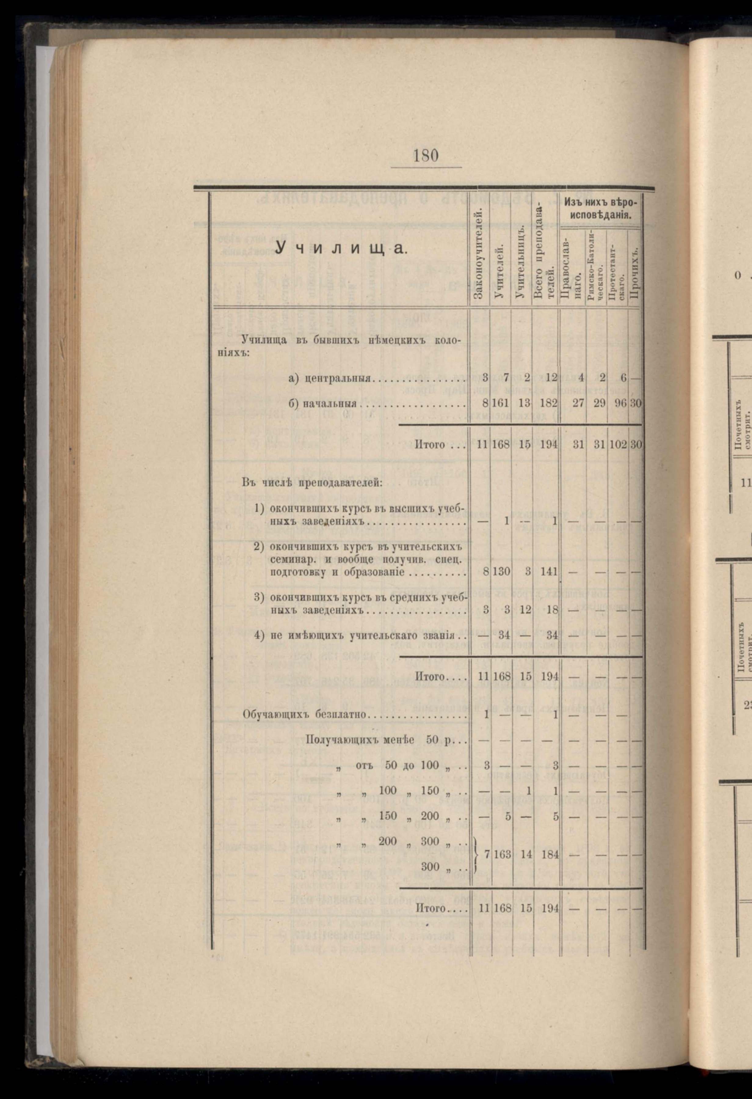 Ведомость о преподавателяхъ