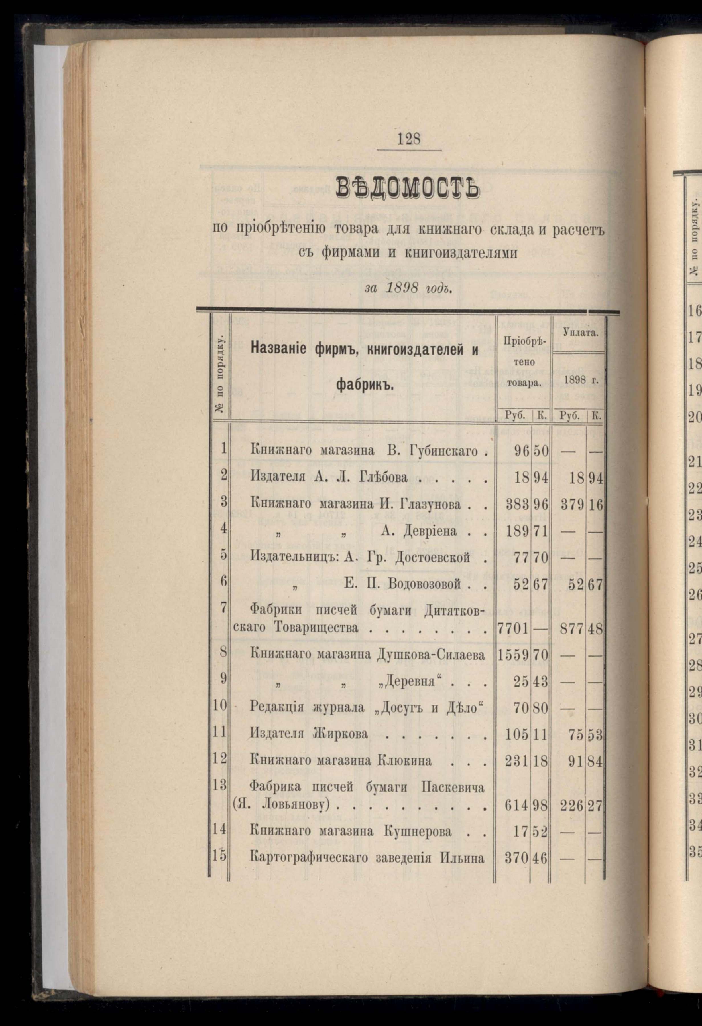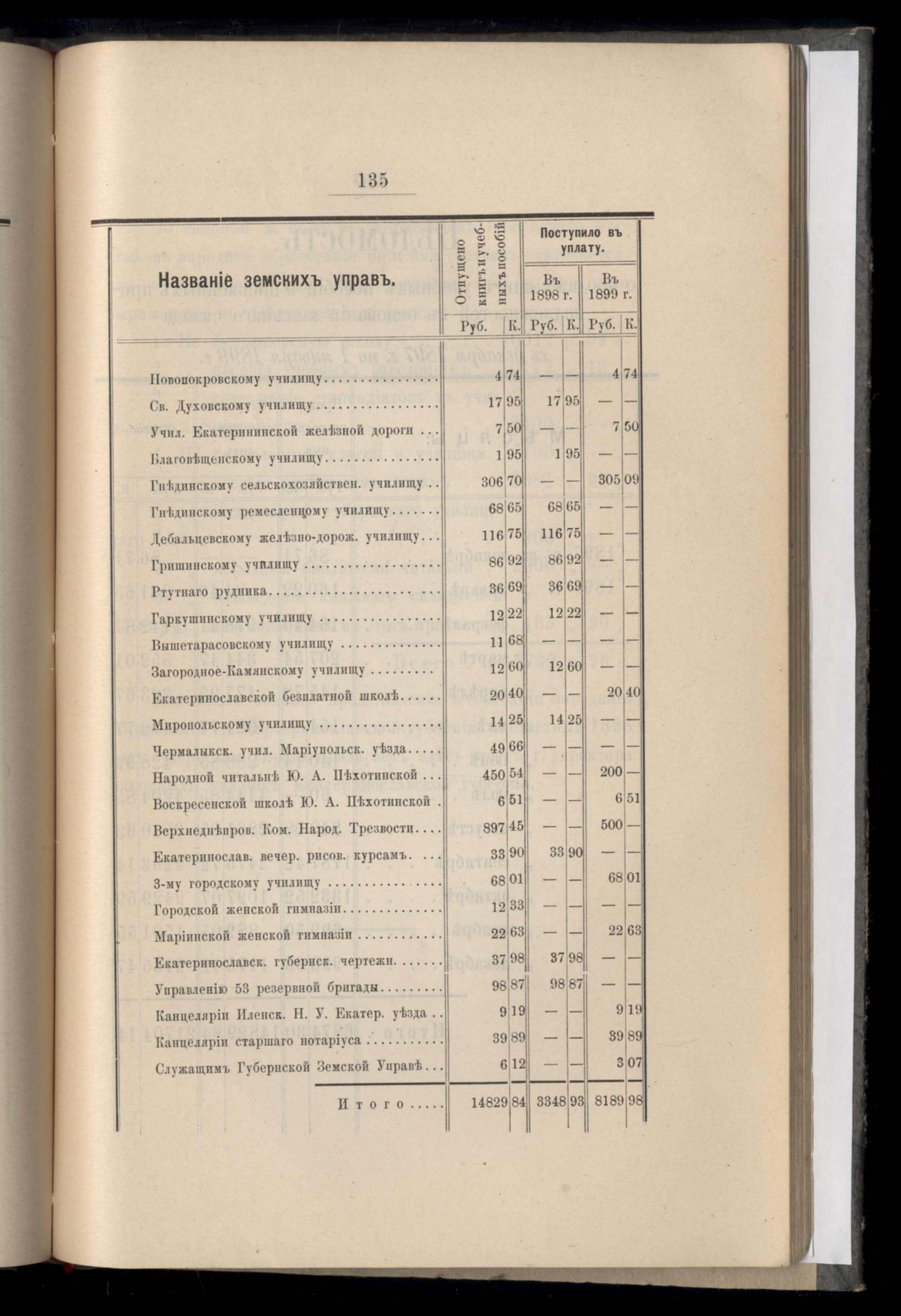 Ведомость къ отпуску въ кредитъ уезднымъ земствамъ, училищамъ и учрежденіямъ