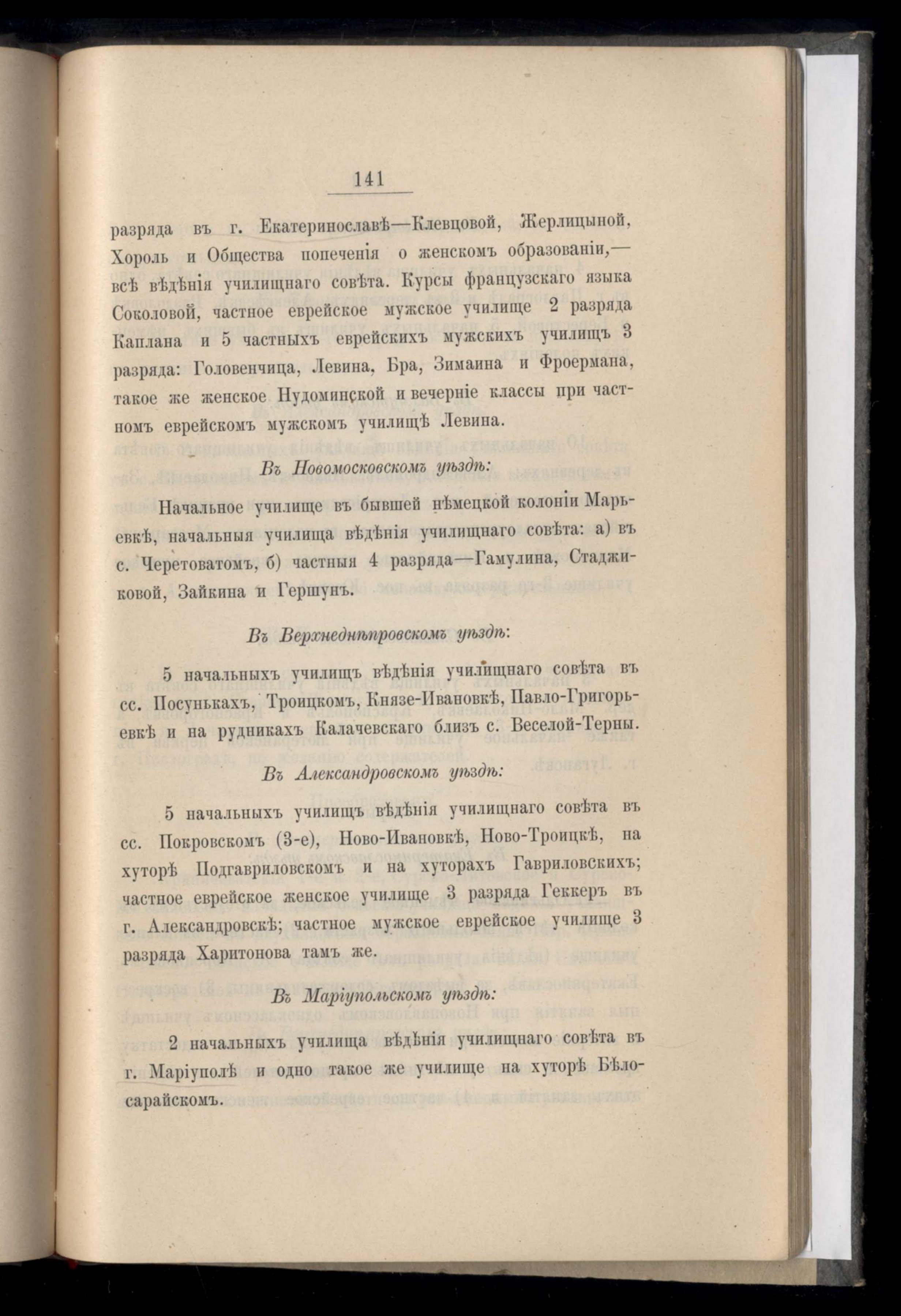 Ведомость о частныхъ и европейскихъ училищахъ