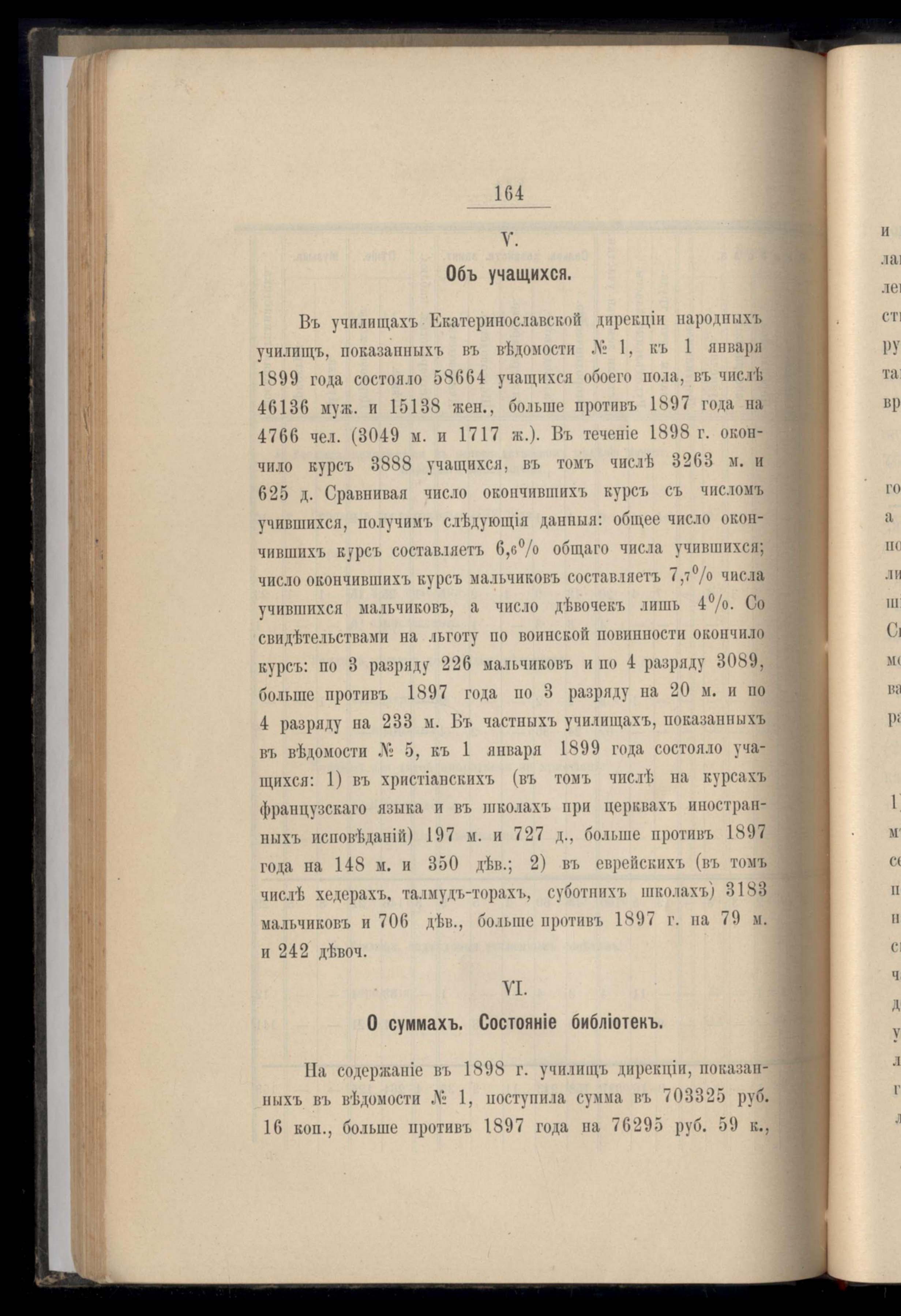 Объ учащихся. О суммахъ . Состояніе библіотекъ