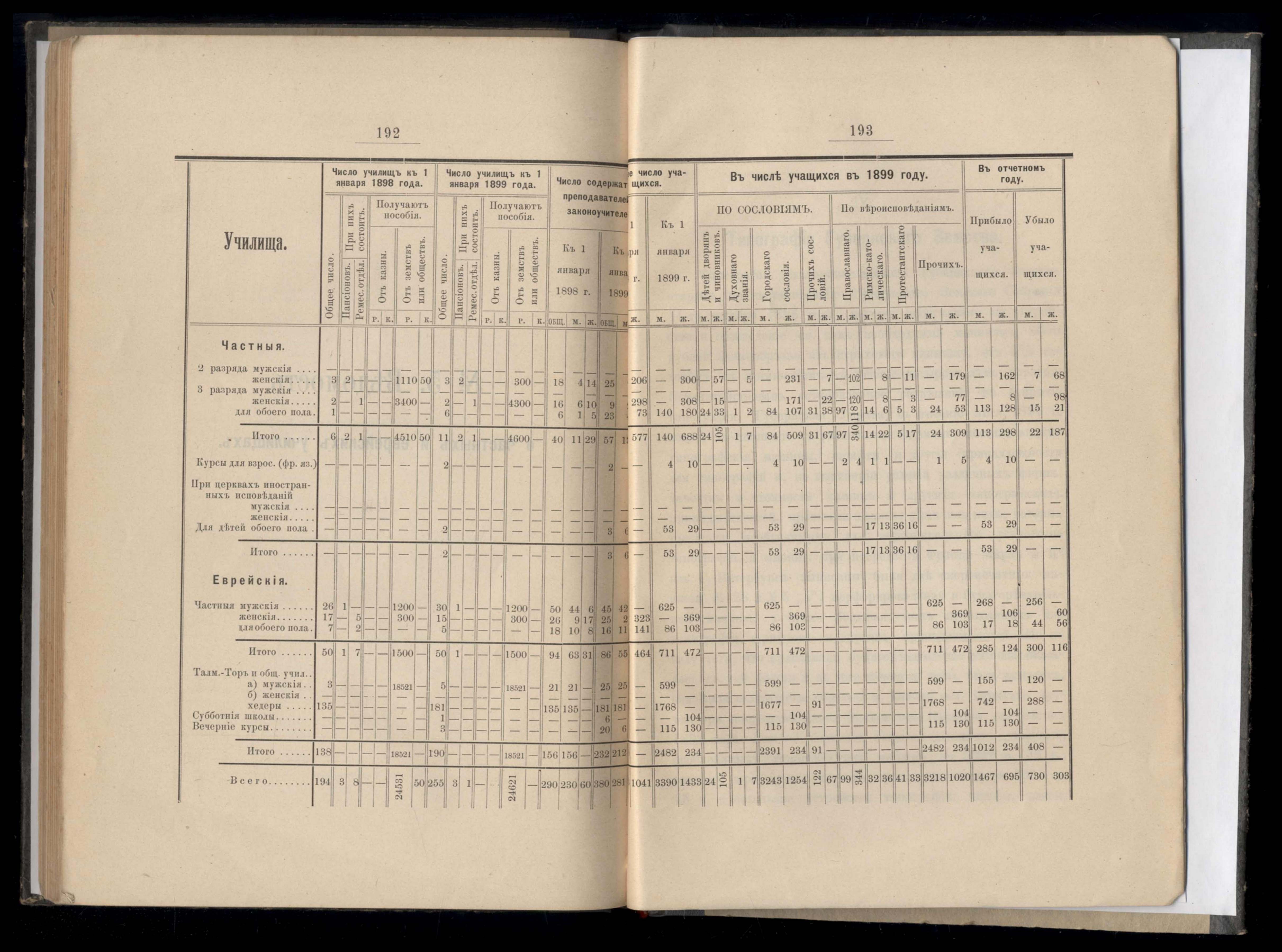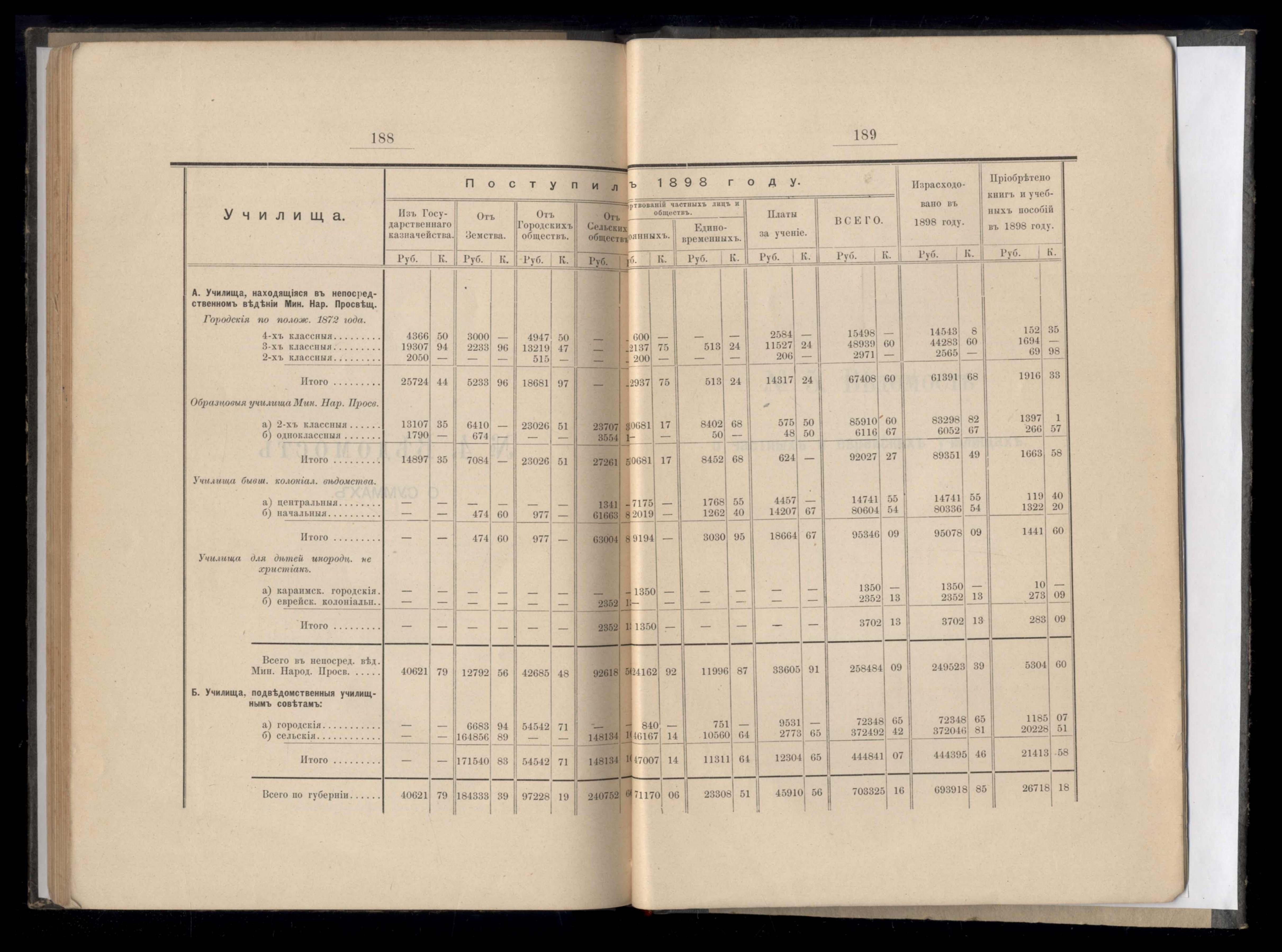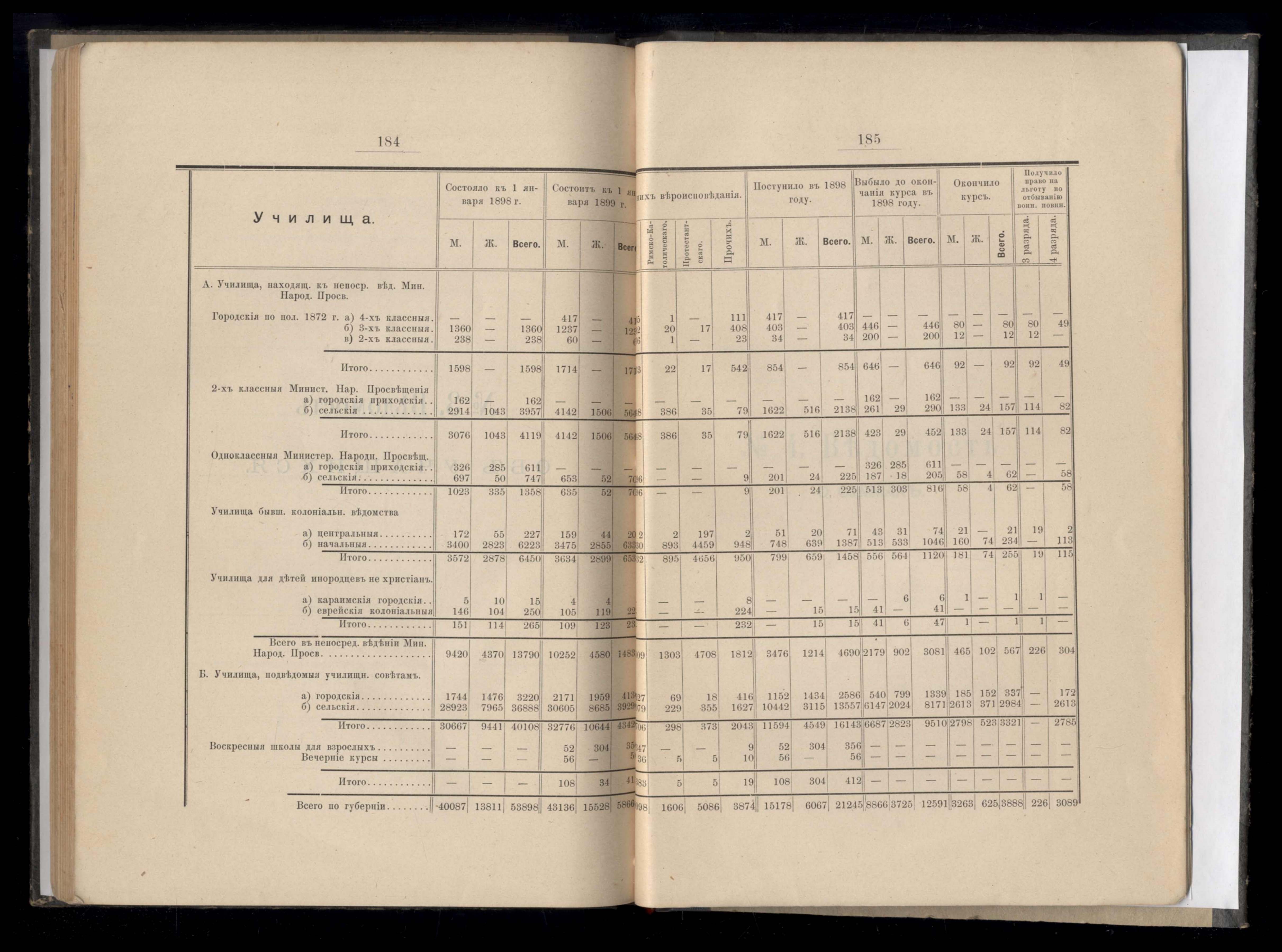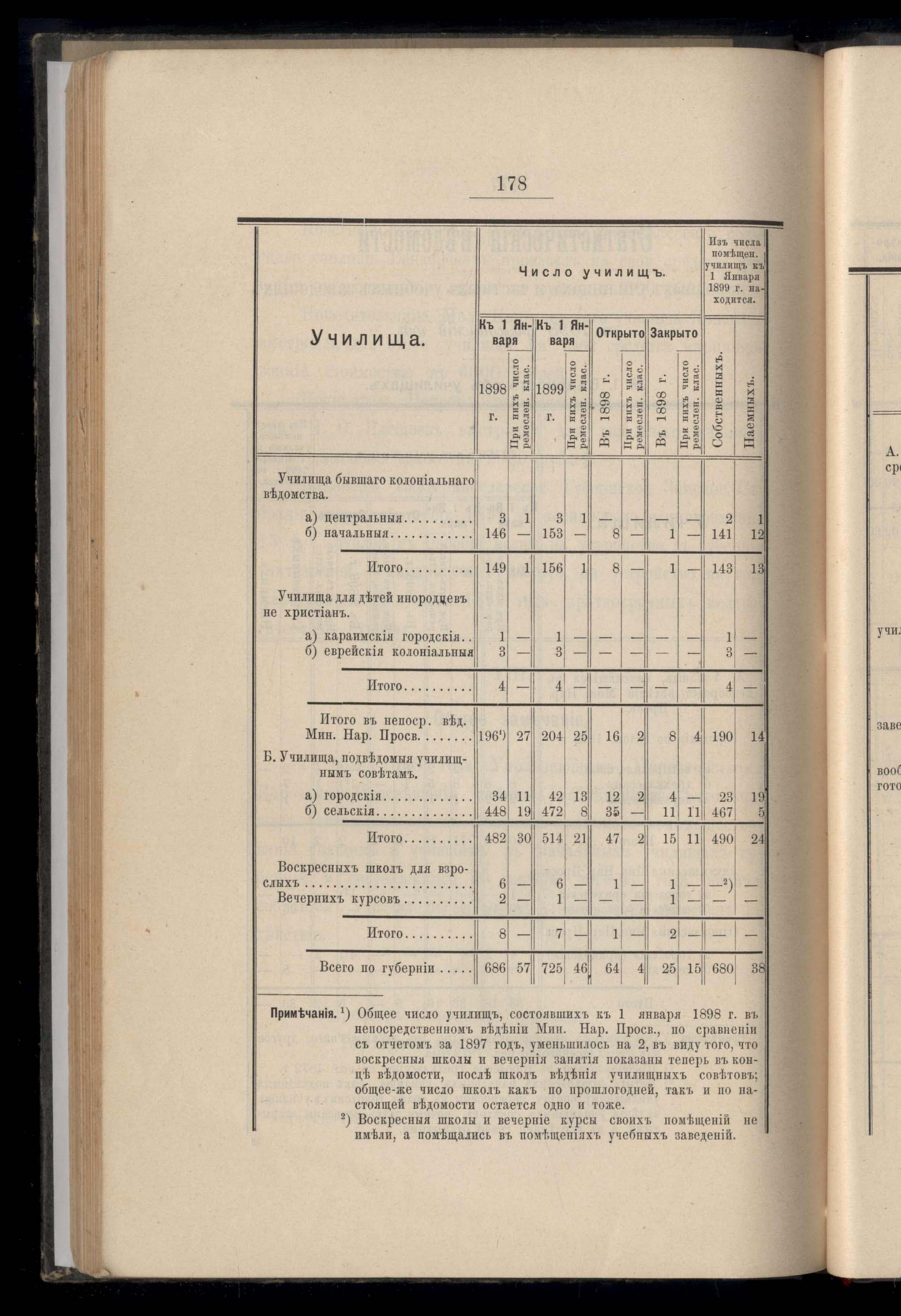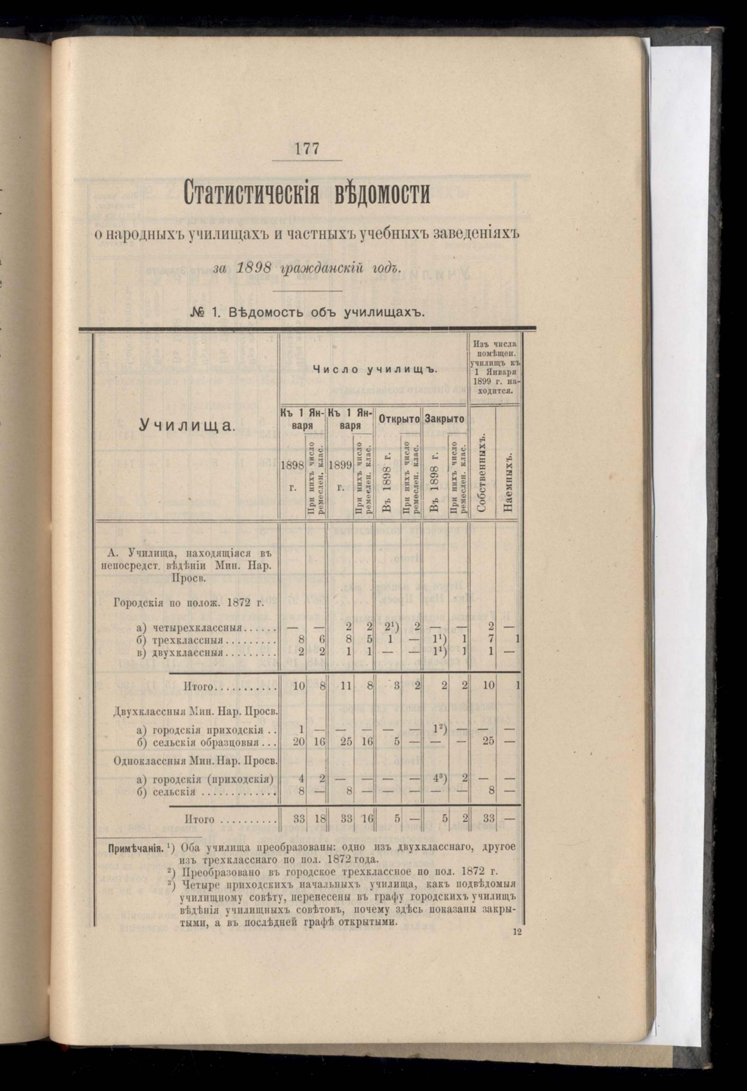 Статистическиія ведомости о народныхъ училищахъ и частныхъ учебныхъ заведеніяхъ за 1898 гражданскій годъ. №1. Ведомость объ училищахъ