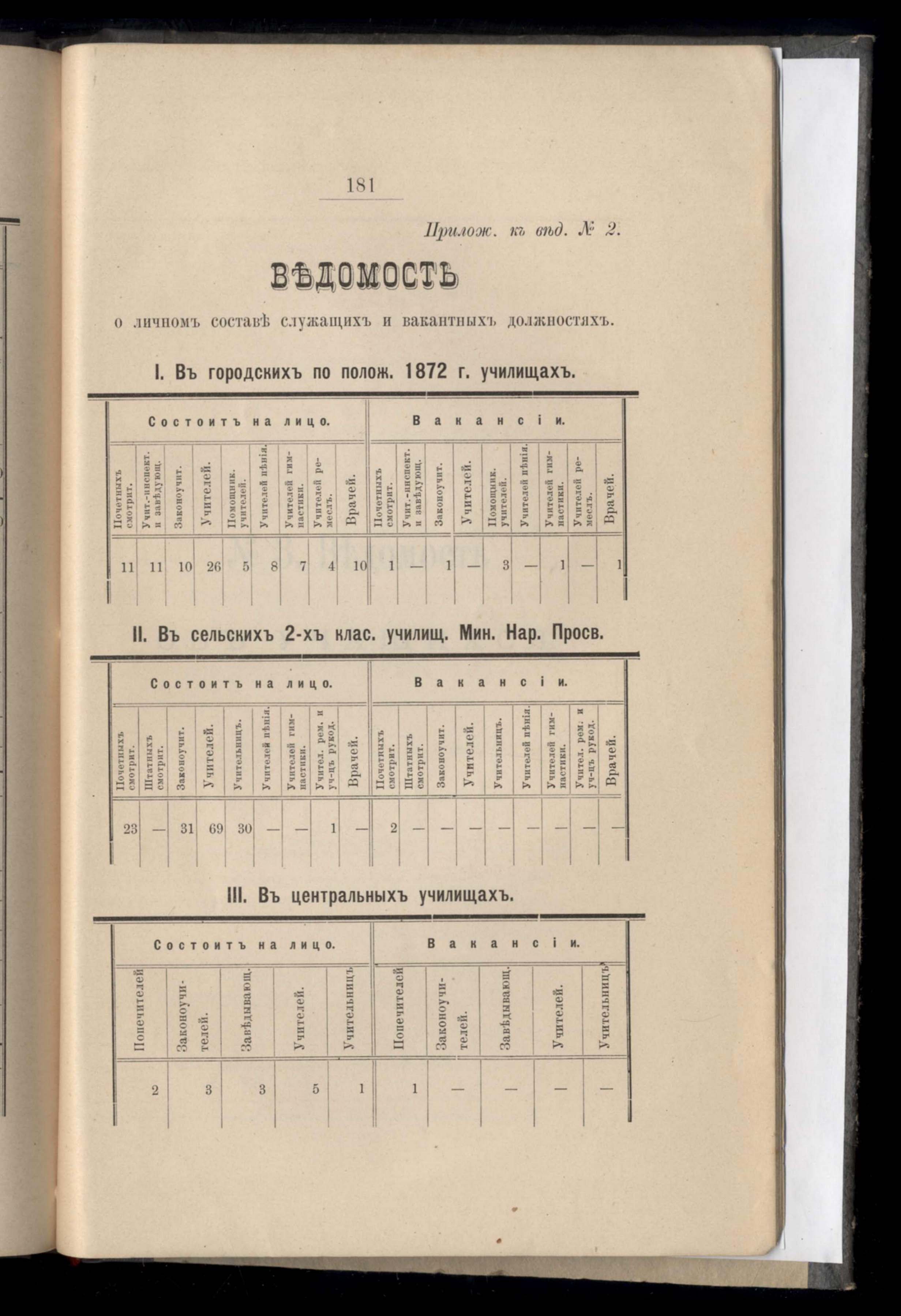 Ведомость о личномъ составе служащихъ и вакантныхъ должностяхъ