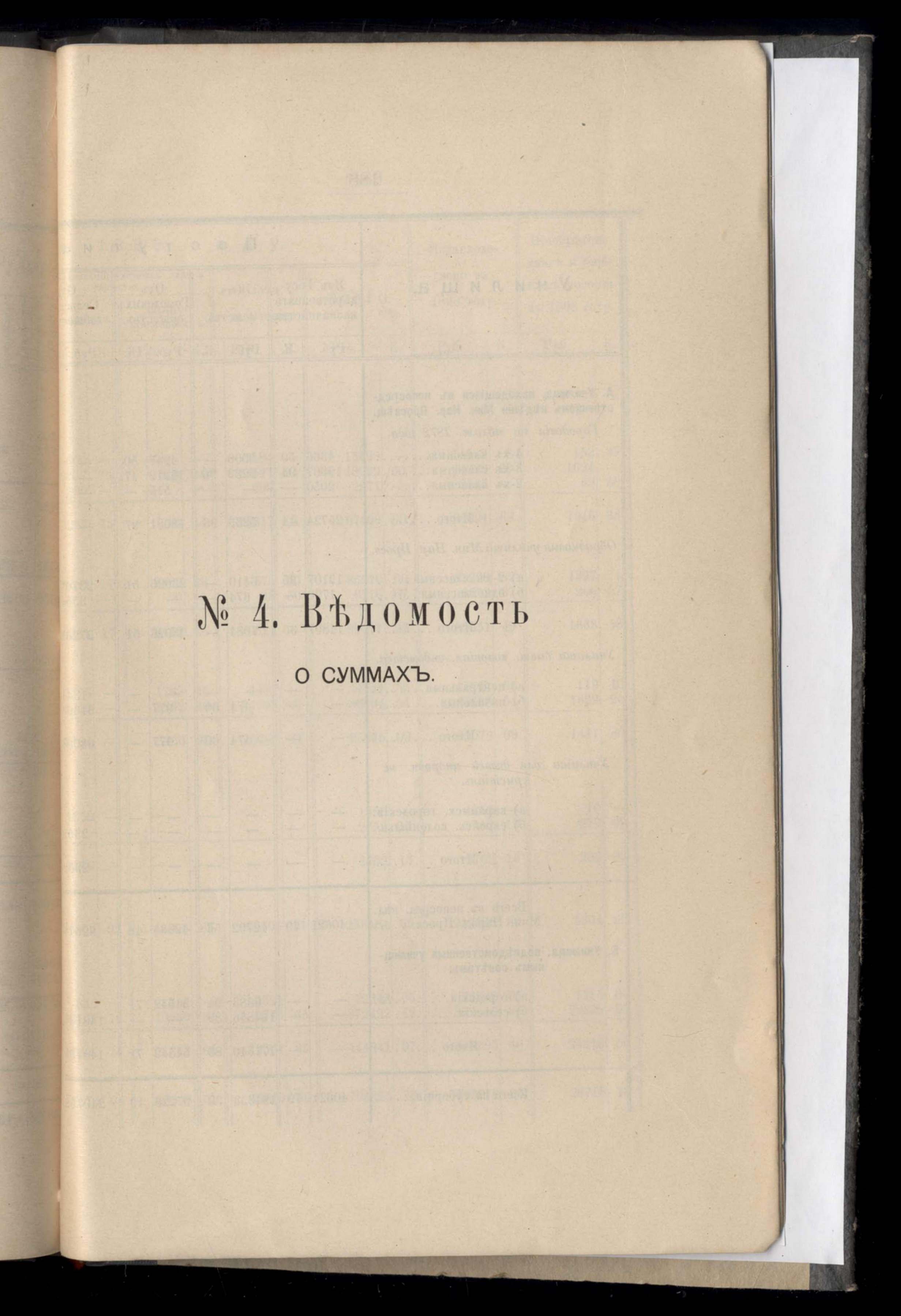 Ведомость о суммахъ