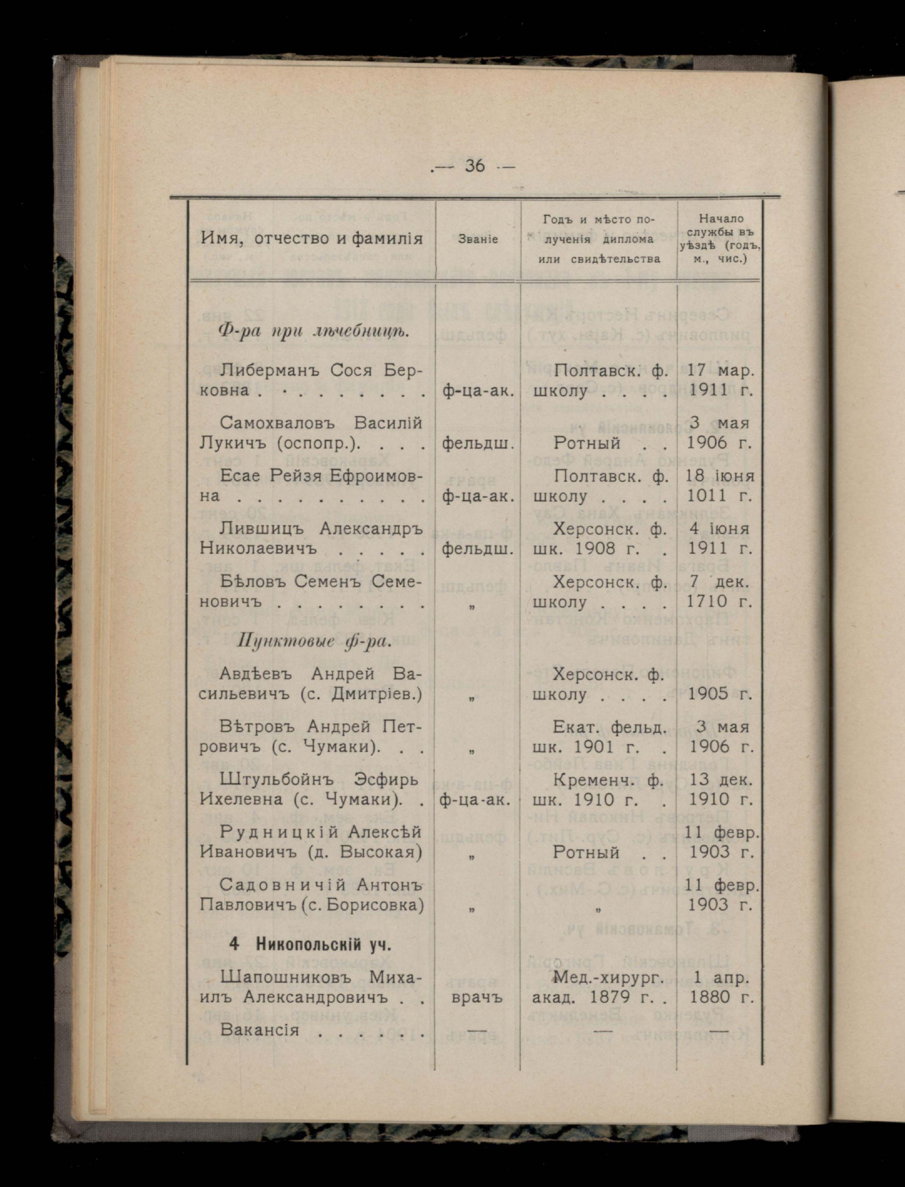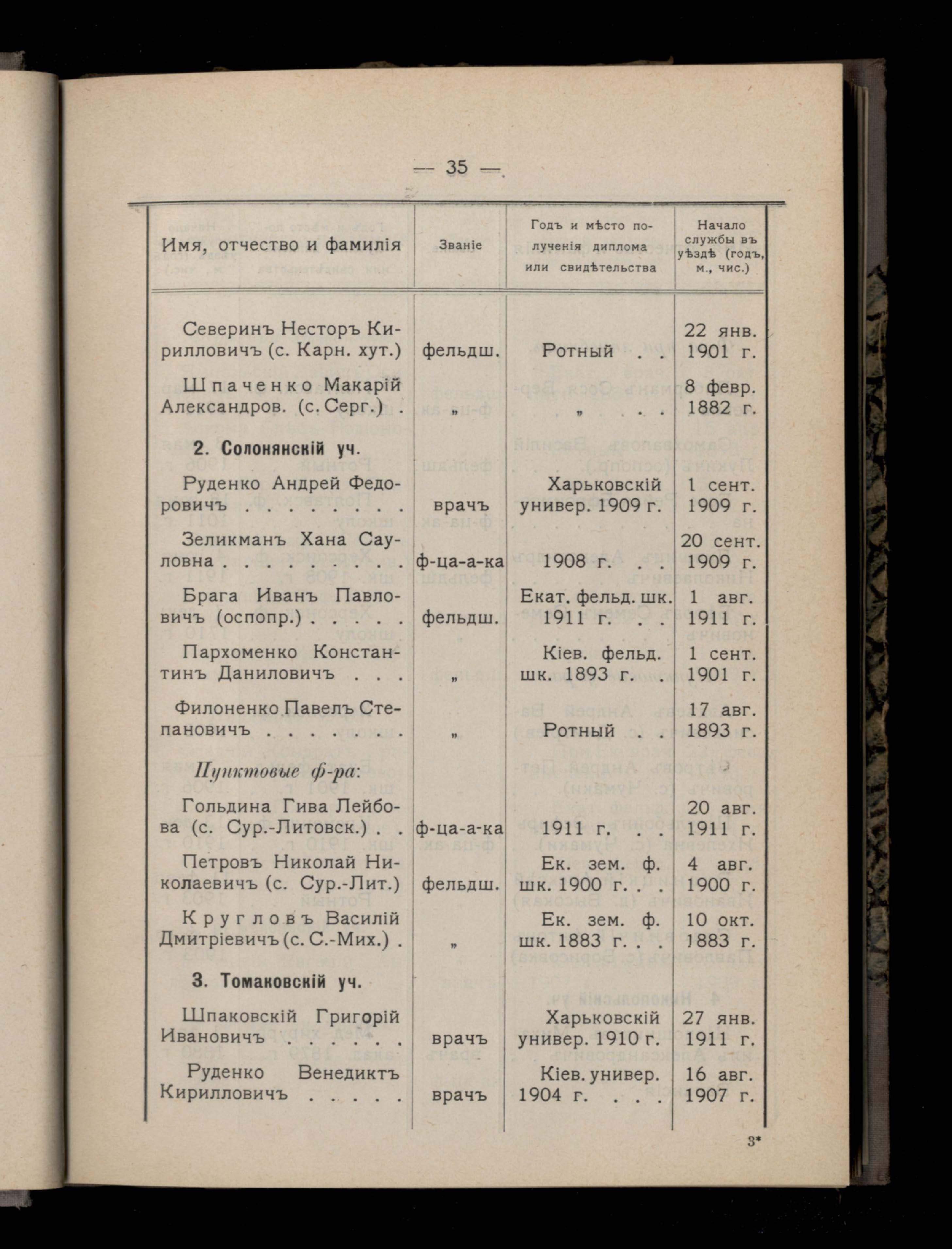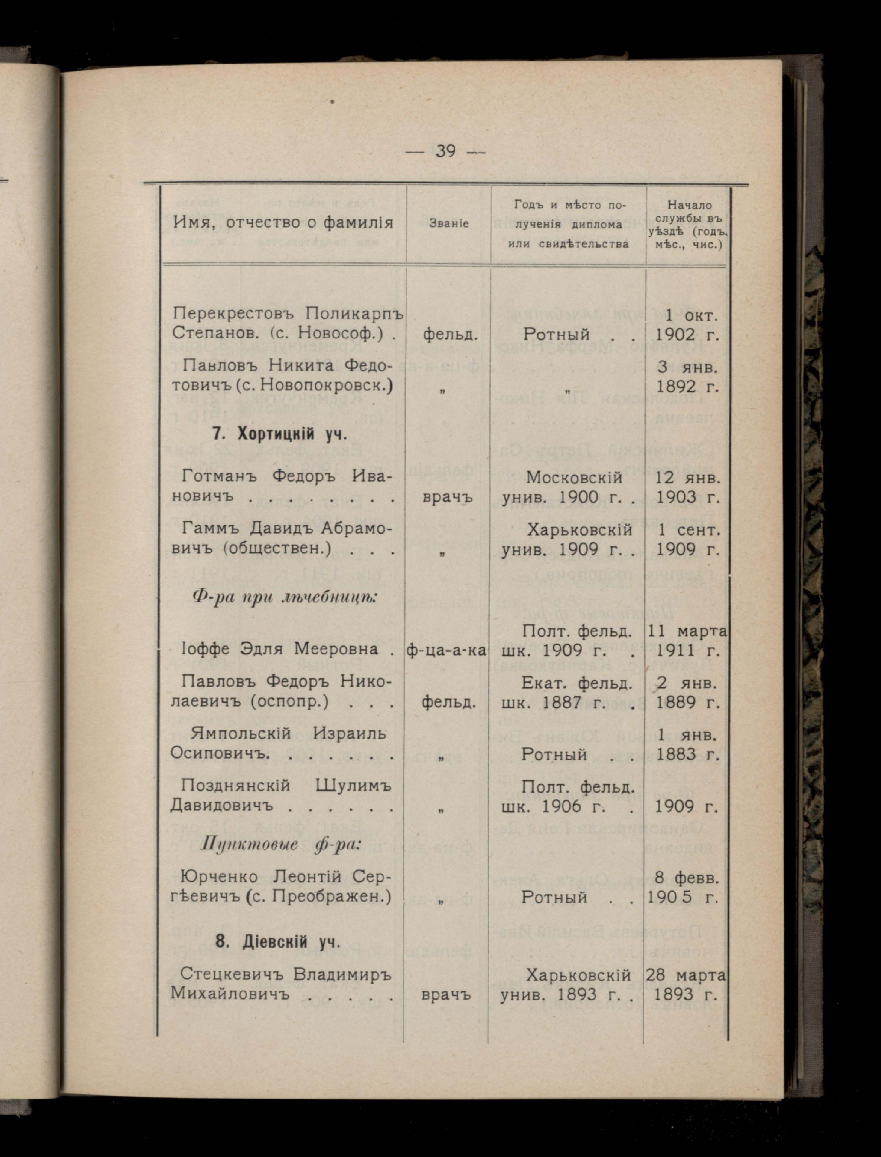 III. Личный составъ медицинскаго персонала