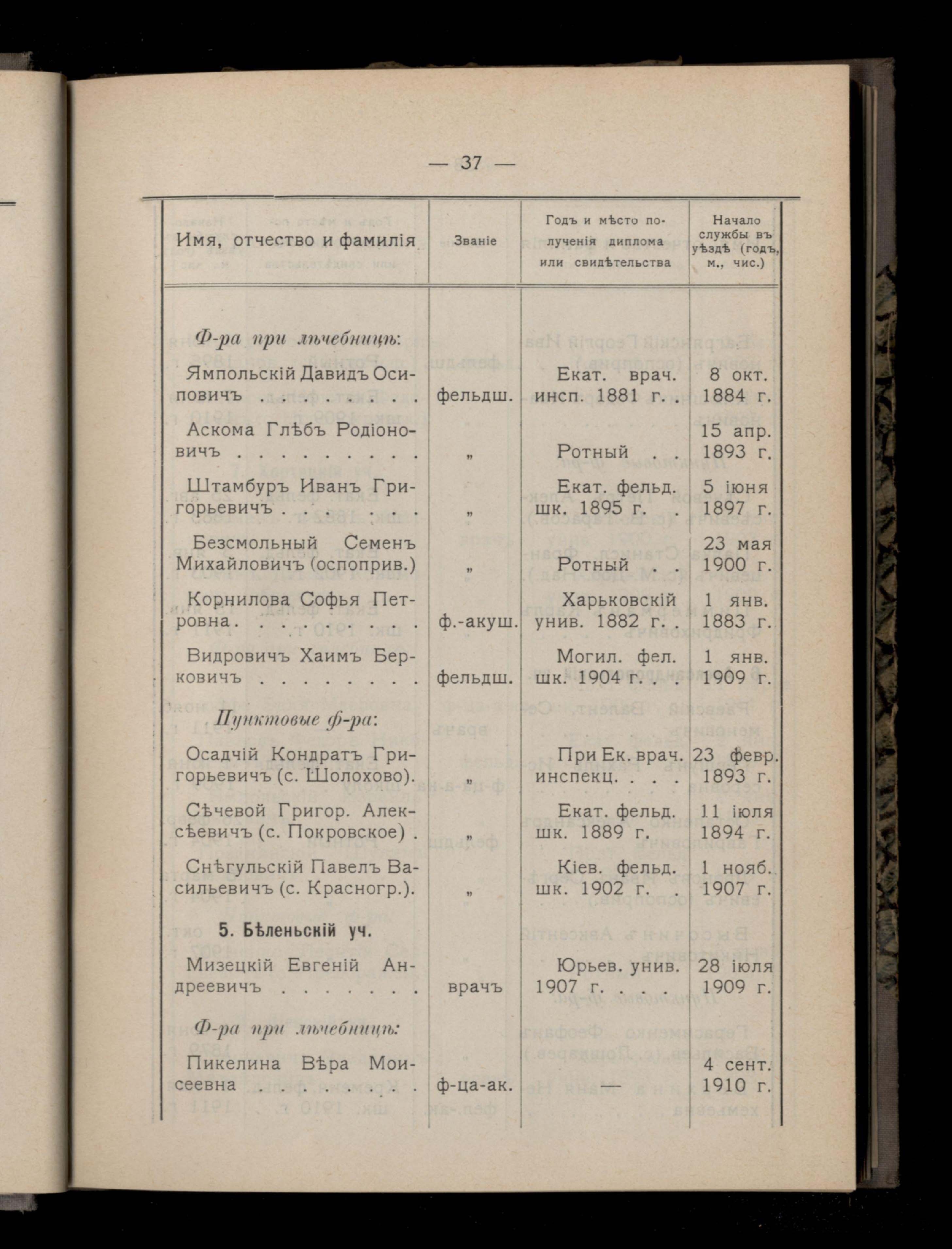 37. III. Личный составъ медицинскаго персонала
