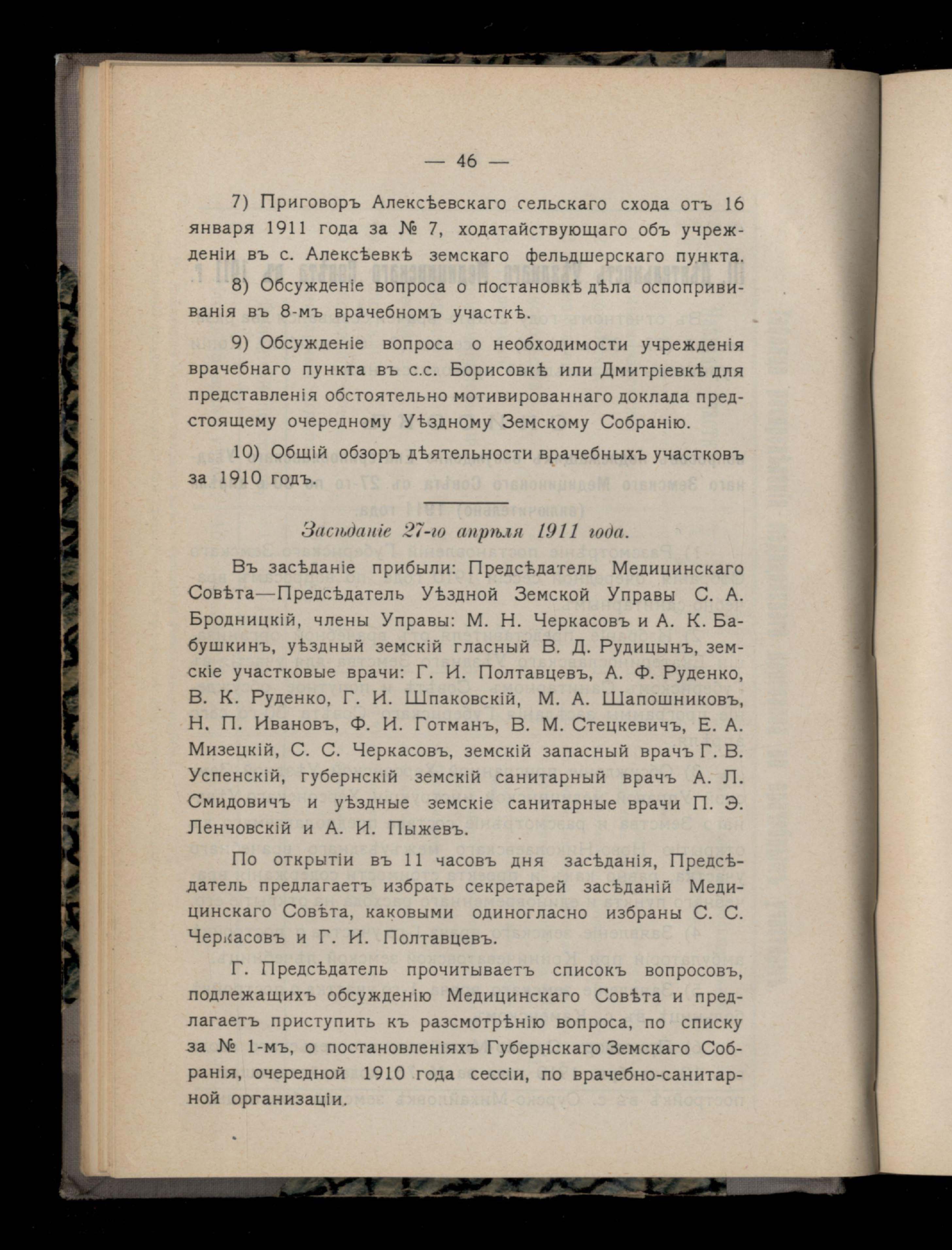 51. III. Деятельность Уезднаго Медицинскаго Совета въ 1911г. Списокъ вопросовъ подлежащихъ обсужденію