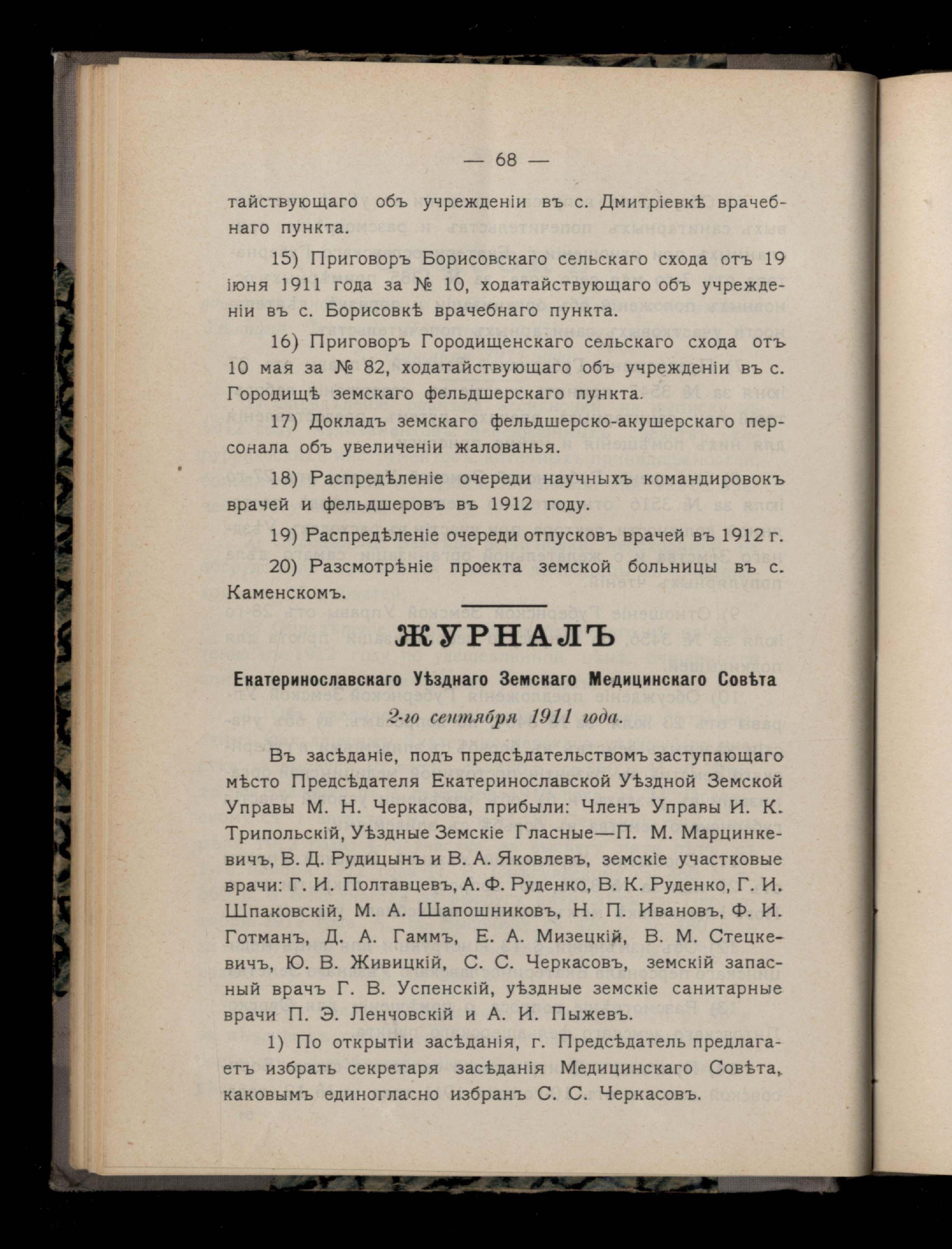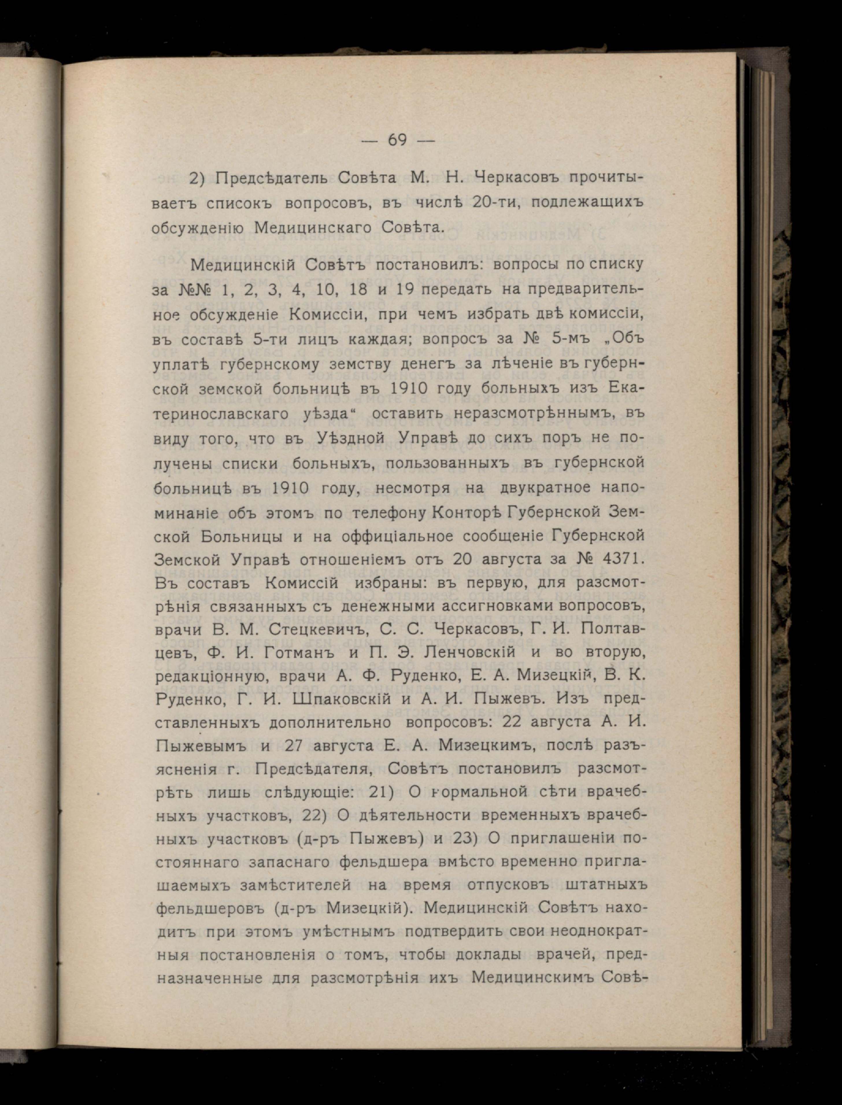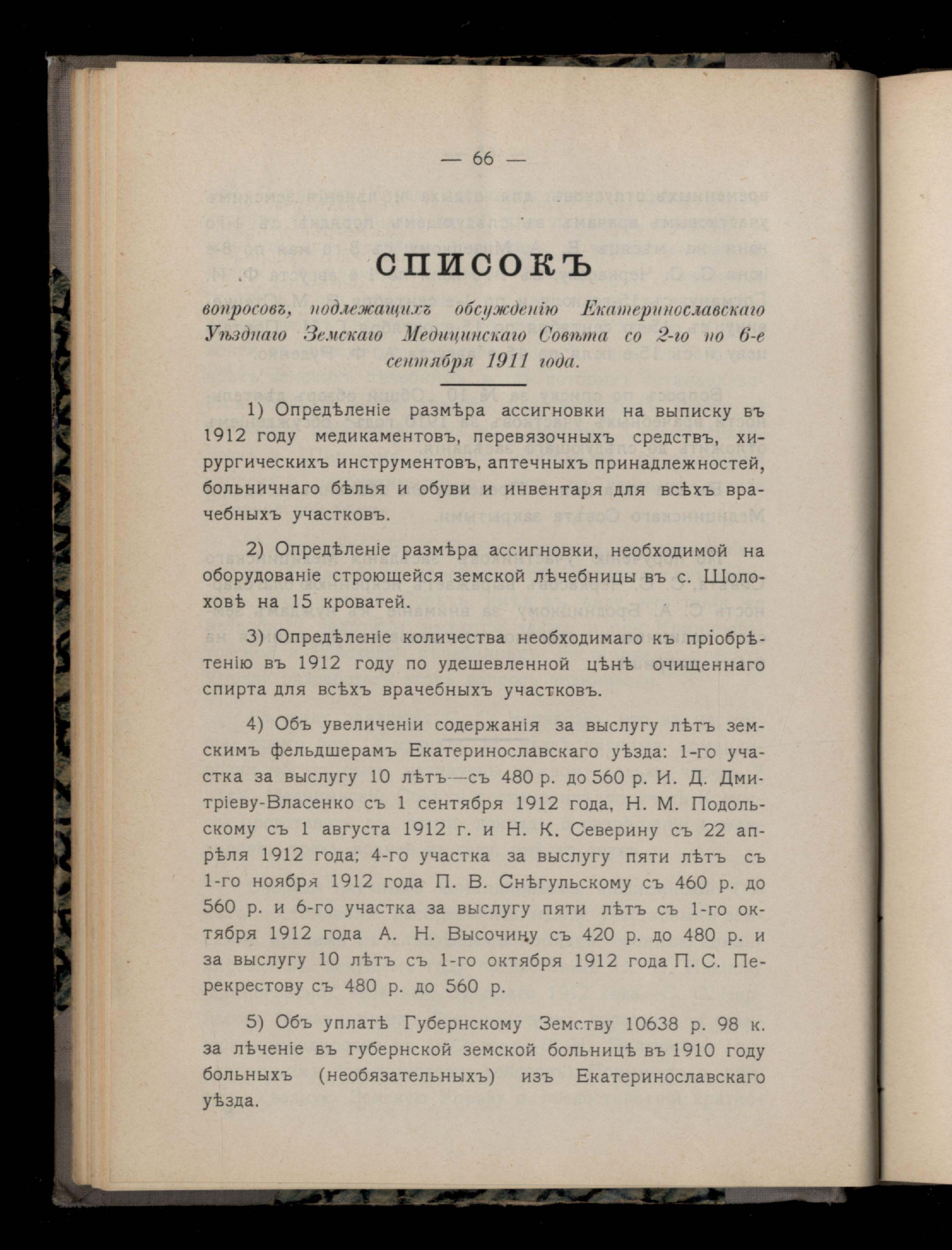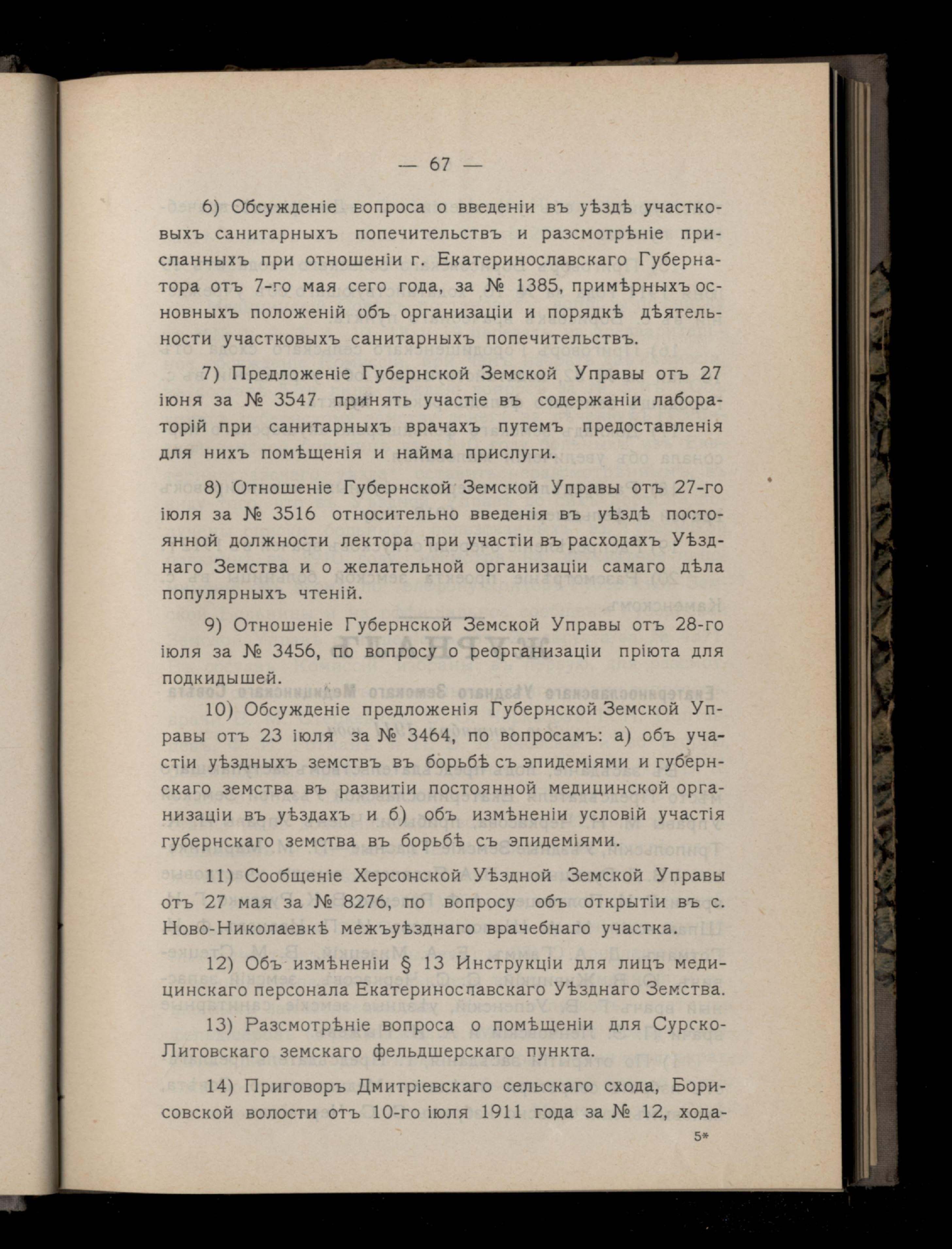 72. Списокъ вопросовъ, надлежащихъ обсужденію Екатеринославскаго Земскаго Медицинскаго Совета со 2-го по 6-е сентября 1911 года
