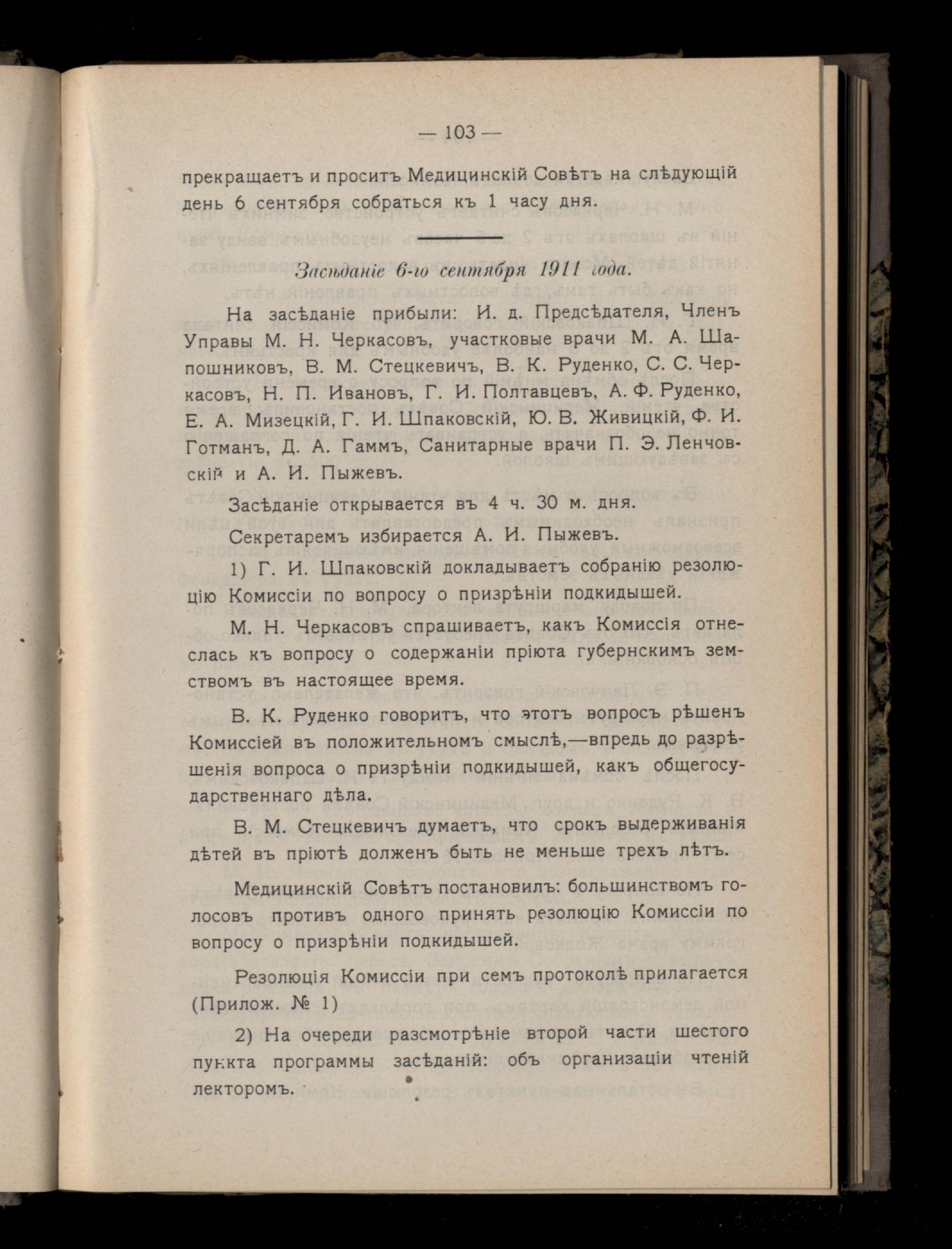 109. Заседаніе 6-го сентября 1911 года