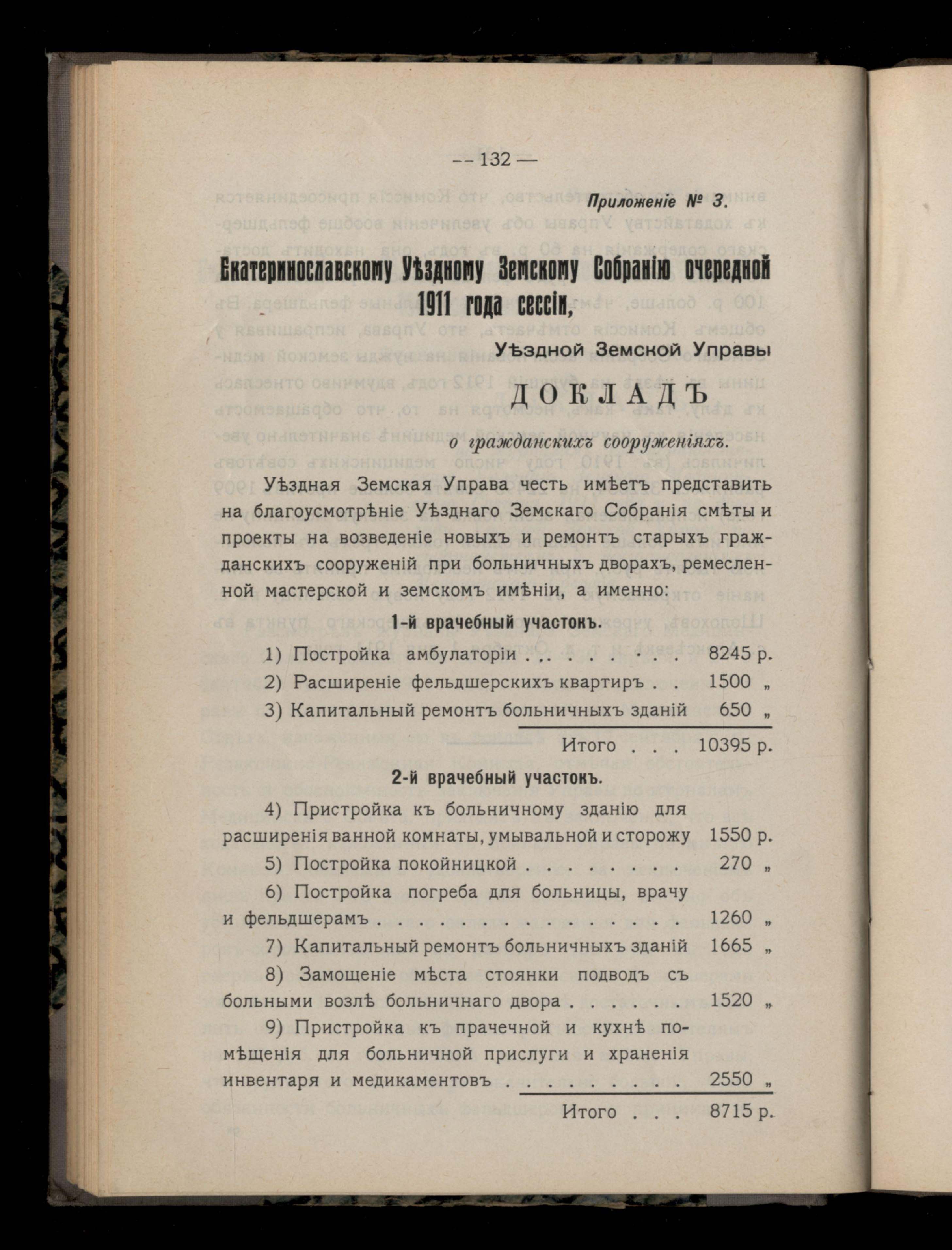 138. Приложеніе № 3. Екатеринославскому Уездному Земскому Собранію очередной 1911 года сессіи, Уездной Земской Управы Докладъ