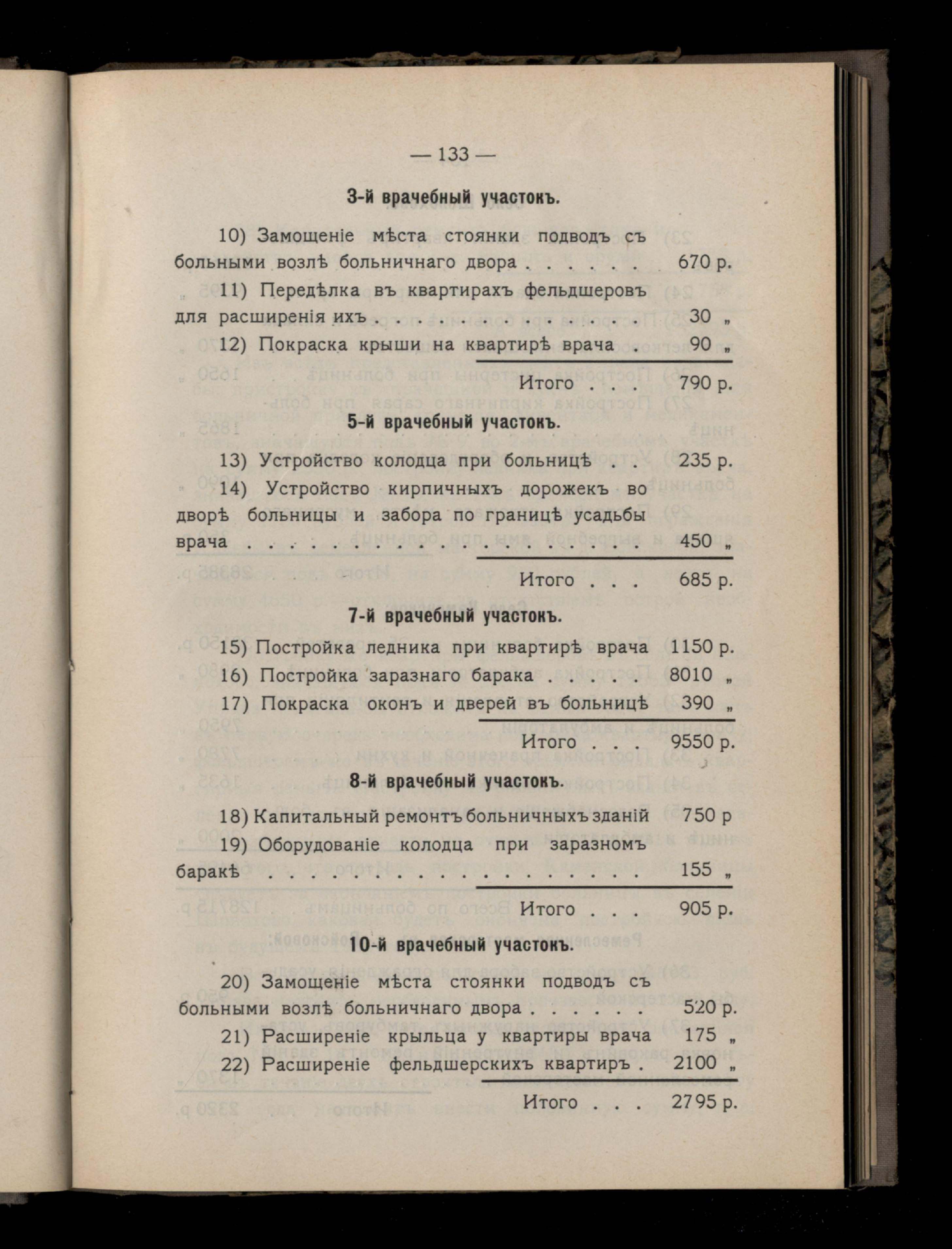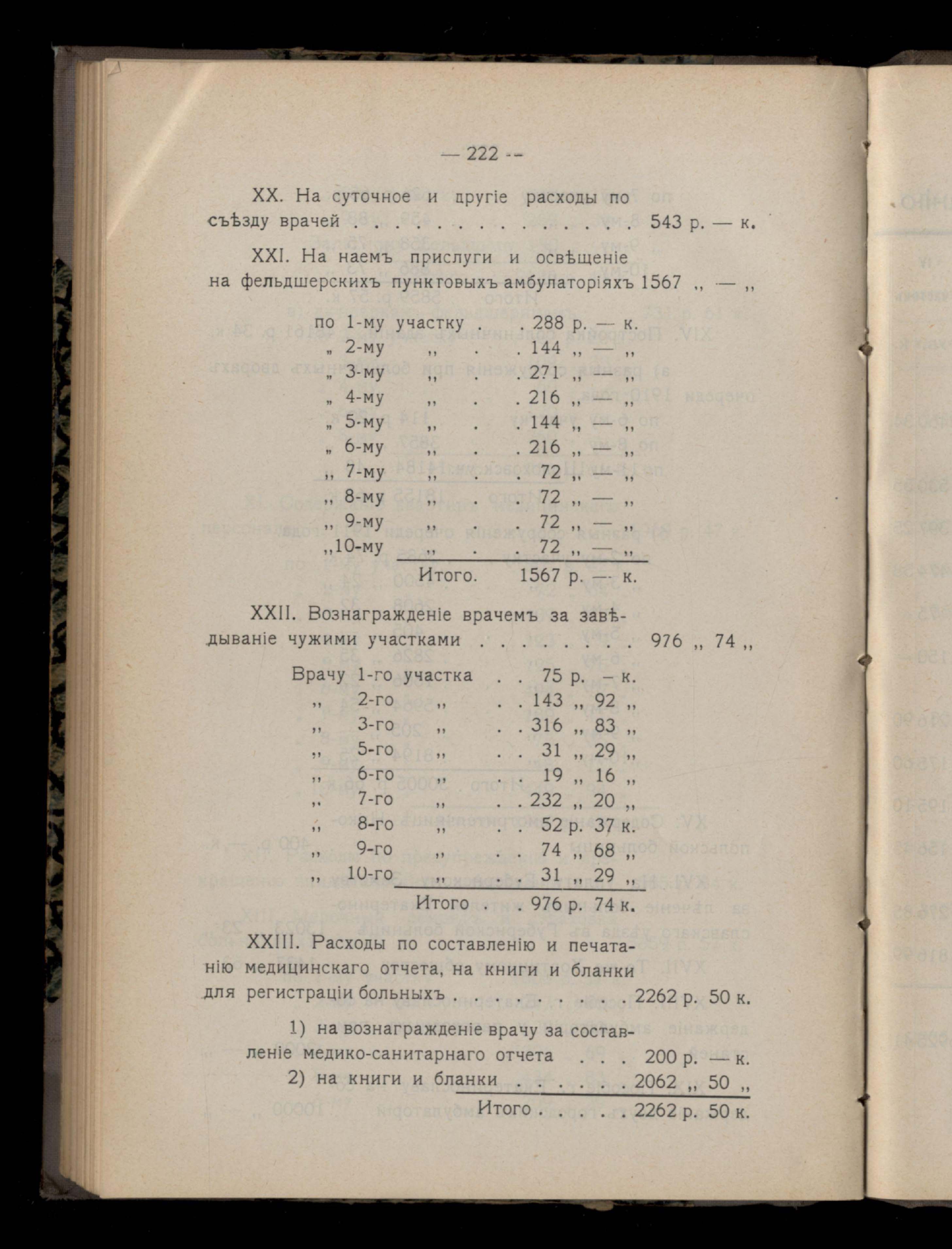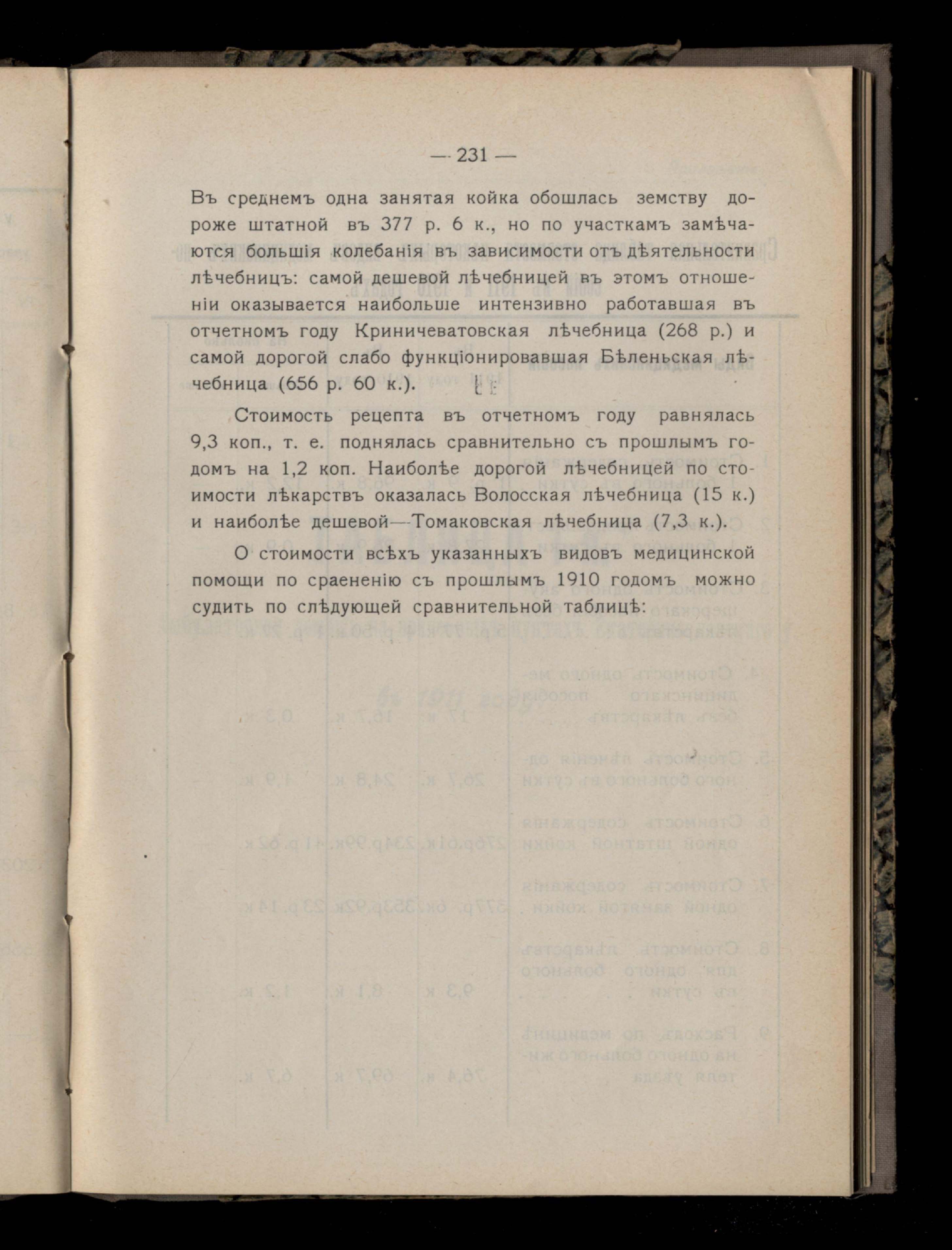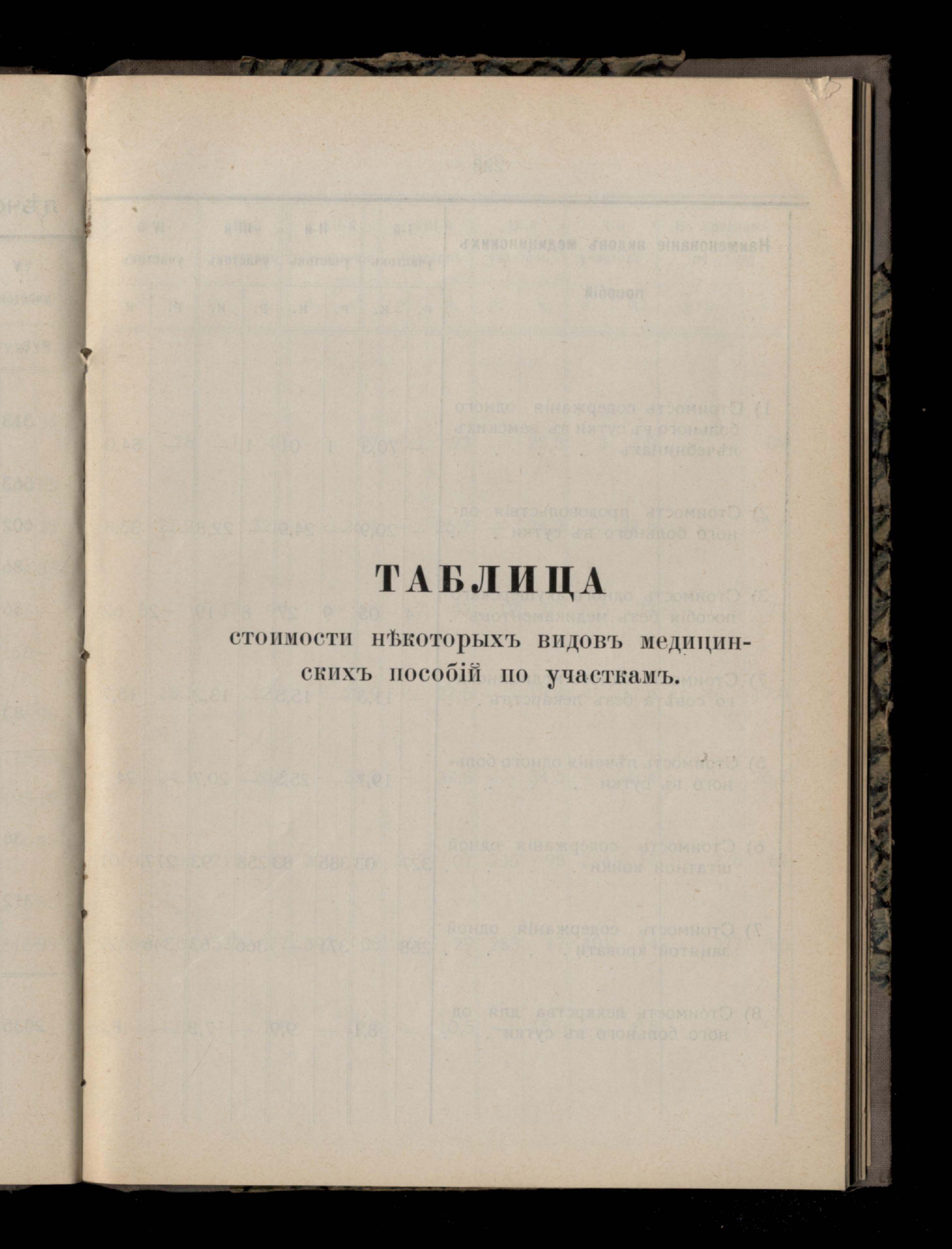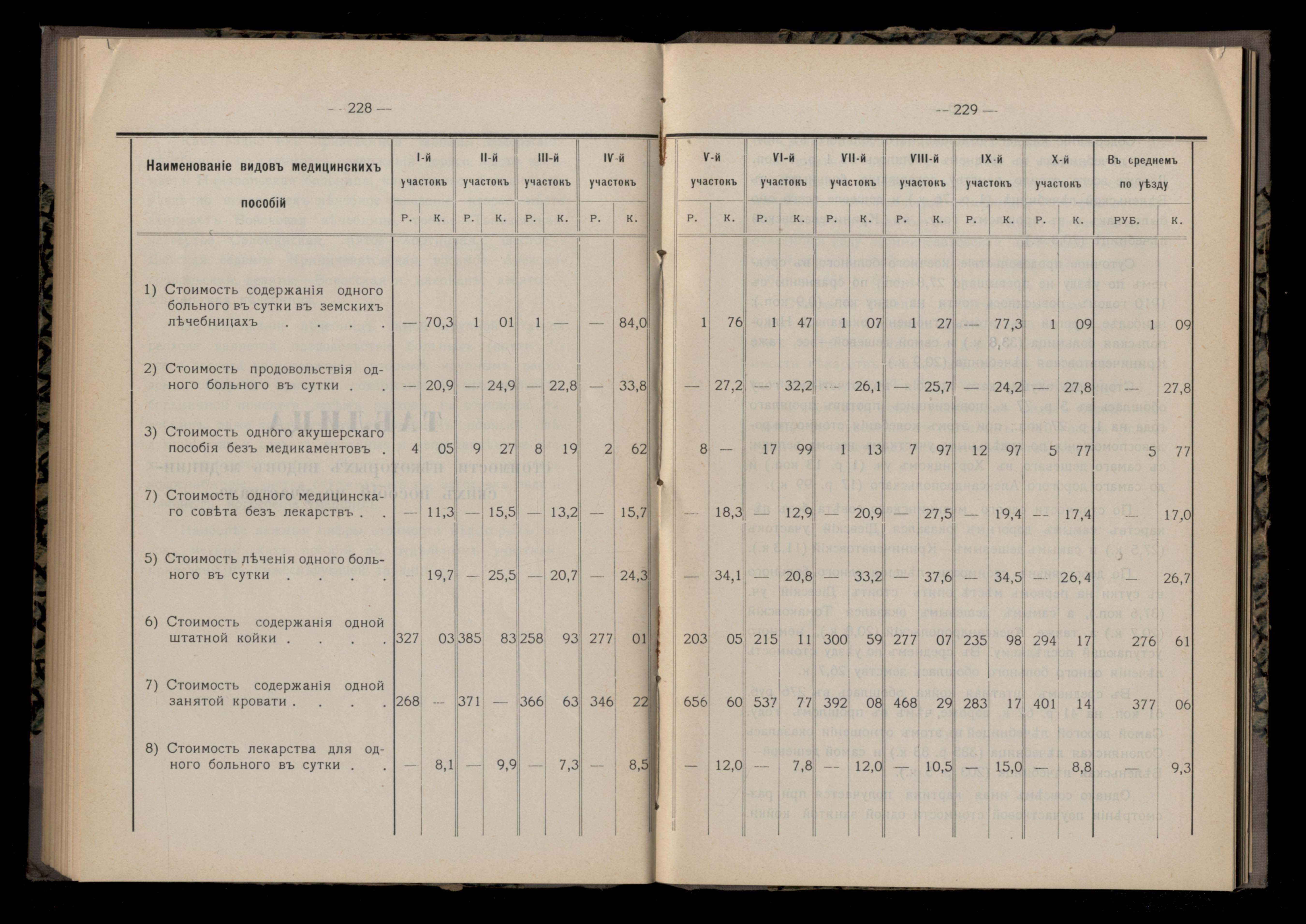 231. Таблица стоимости некоторыхъ видовъ медицинскихъ пособій по участкамъ